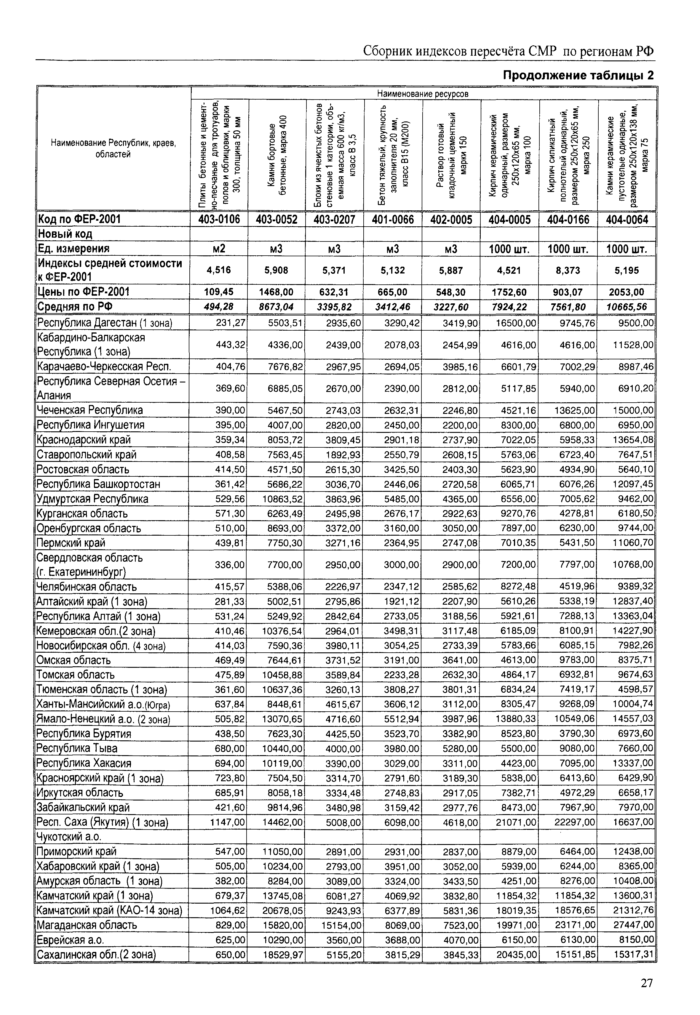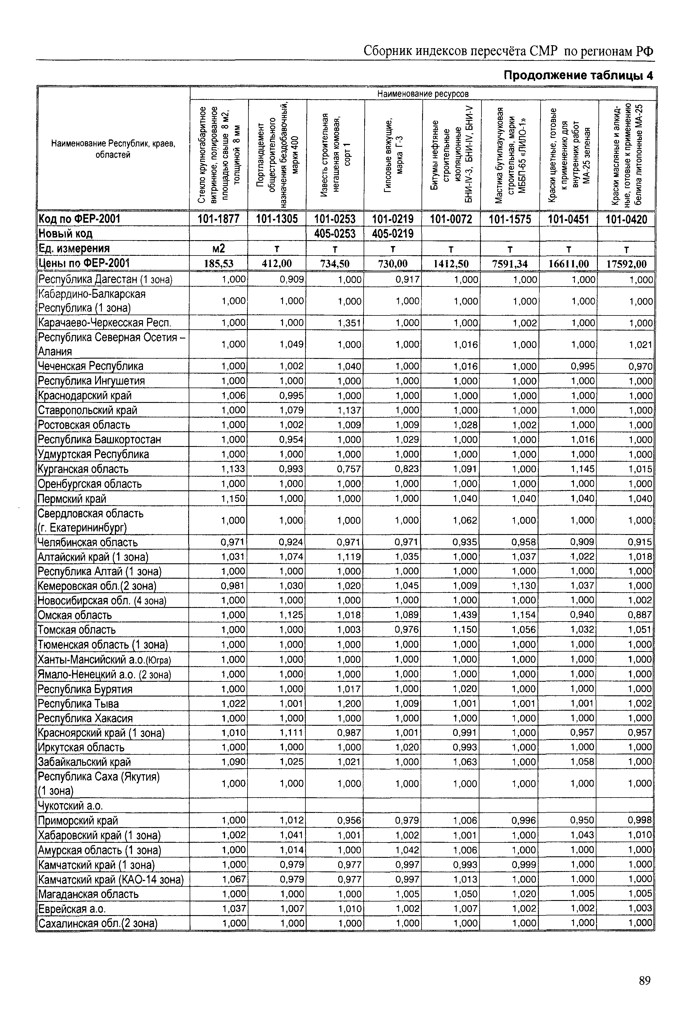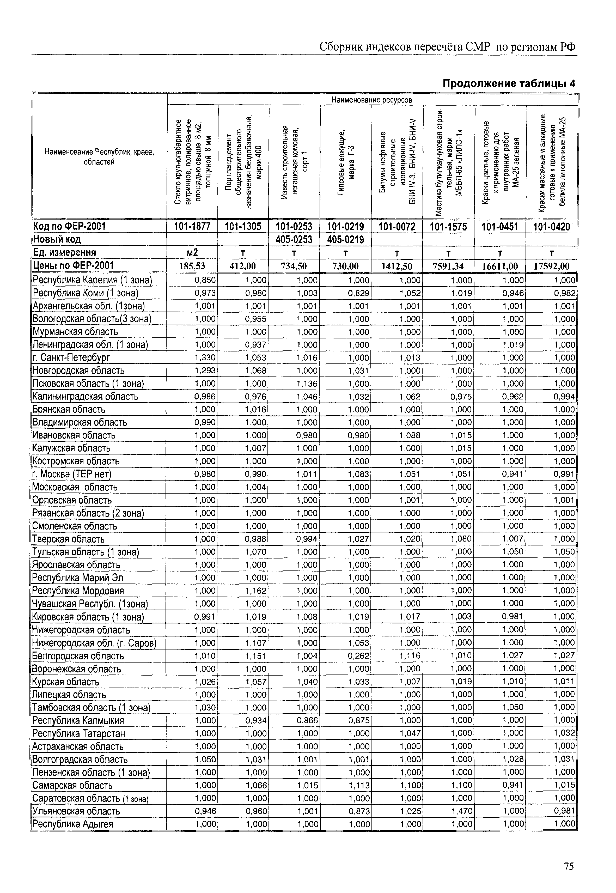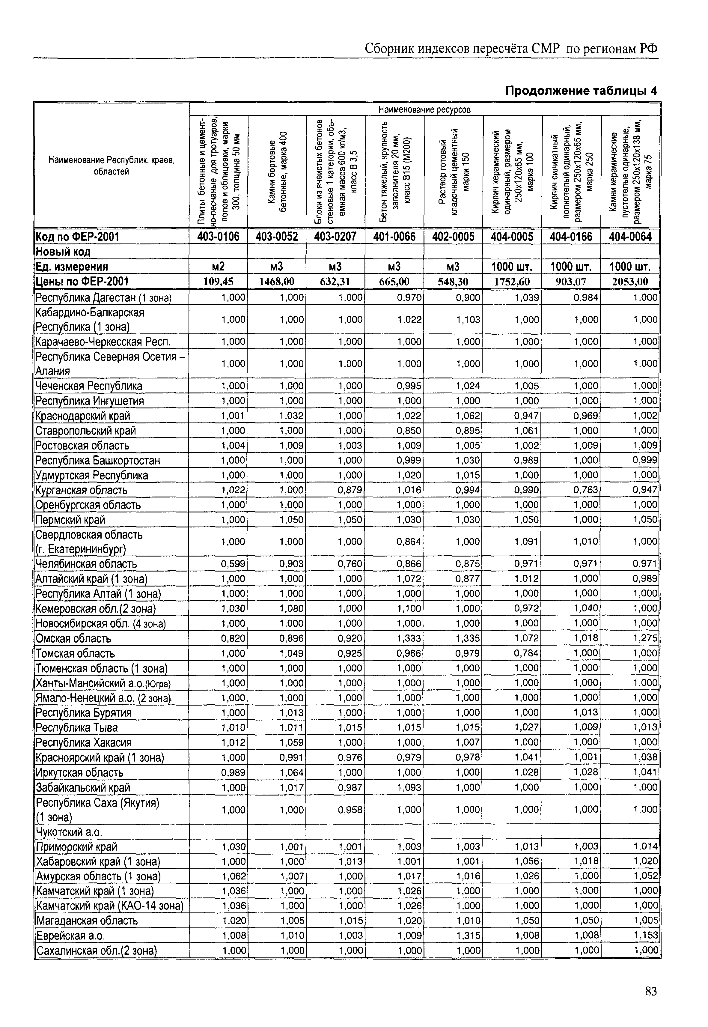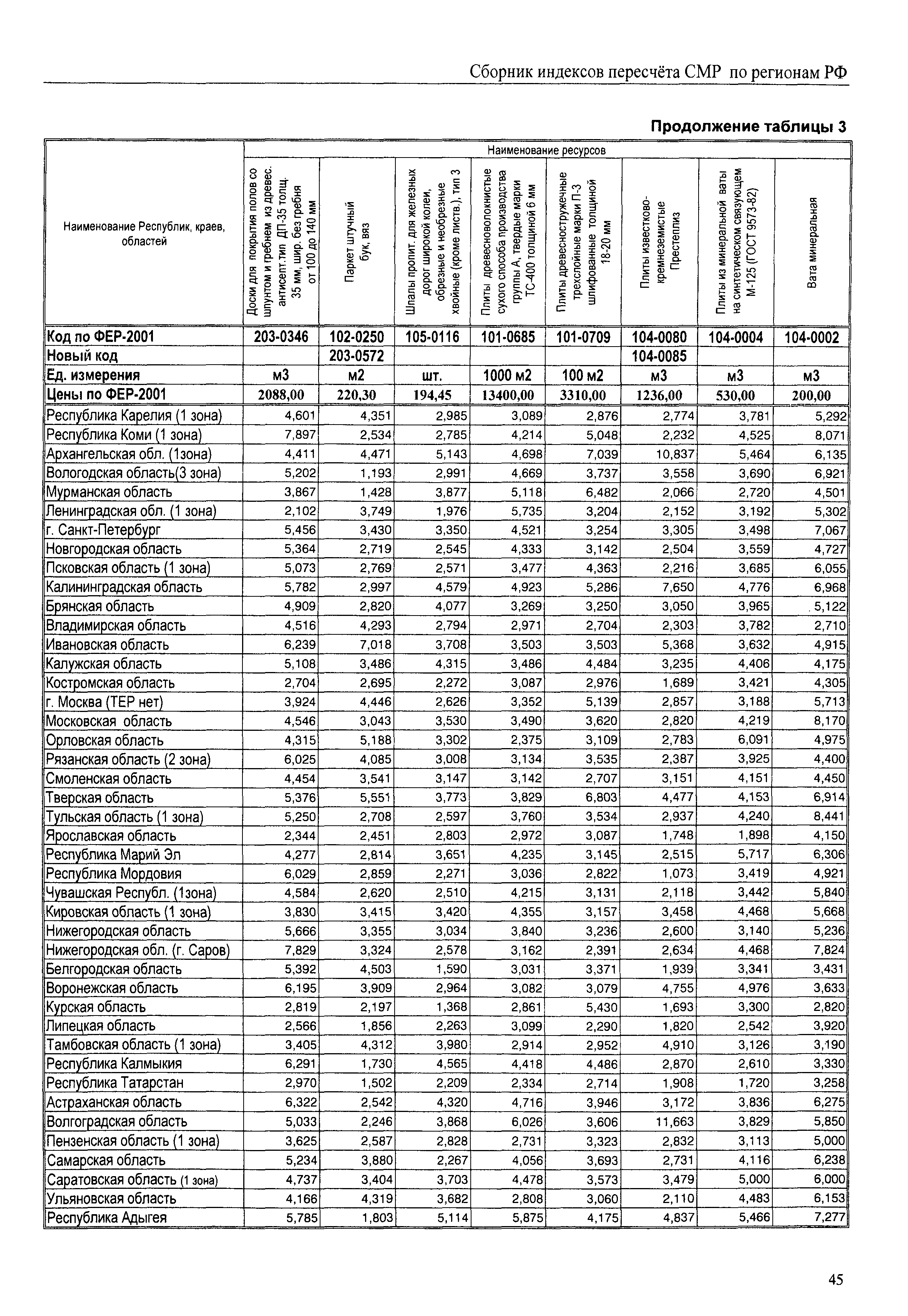 Межрегиональный сборник индексов пересчета сметной стоимости строительно-монтажных работ по субъектам Российской Федерации на IV квартал 2010 г.| Статус: | не действует | | Название рус.: | Межрегиональный сборник индексов пересчета сметной стоимости строительно-монтажных работ по субъектам Российской Федерации на IV квартал 2010 г. | | Дата добавления в базу: | 01.09.2013 | | Дата актуализации: | 01.09.2013 | | Область применения: | В сборнике приведены сводные таблицы текущих (IV квартал 2010 г.) региональных цен на основные ресурсы, применяемые в строительстве, региональные индексы пересчета базисной стоимости строительно-монтажных работ, определяемой с использованием сборников сметно-нормативной базы (ФЕР-2001, ТЕР-2001 в редакции 2003 г. с учетом дополнений и изменений 1 - 4), в территориальный текущий уровень цен. Индексы разработаны по единой методике, на основании отчетных данных региональных органов по ценообразованию в строительстве о стоимости строительных ресурсов в регионе. | | Оглавление: | Общая часть Техническая часть (к таблицам 1, 2, 3, 4) Цены на строительную продукцию в IV квартале 2010 г. Анализ роста индексов и стоимости 1м2 по субъектам Российской Федерации в IV кв. 2010 года. - таблица А Расчетная стоимость 1 м2 общей площади квартир и индексы изменения стоимости строительства по субъектам Российской Федерации за IV квартал 2010 г. -Таблица 1 Сметная стоимость строительных ресурсов (без НДС) в руб. -Таблица 2 Индексы на отдельные виды ресурсов (к заложенным в ФЕР-2001) -Таблица 3 Индексы роста стоимости строительных ресурсов к предыдущему кварталу -Таблица 4 Региональные индексы к ФЕР-2001 по основным видам объектов строительства - Таблица 5 Индексы на оборудование за IV квартал 2010 г Индексы на прочие работы и затраты за IV квартал 2010 г |