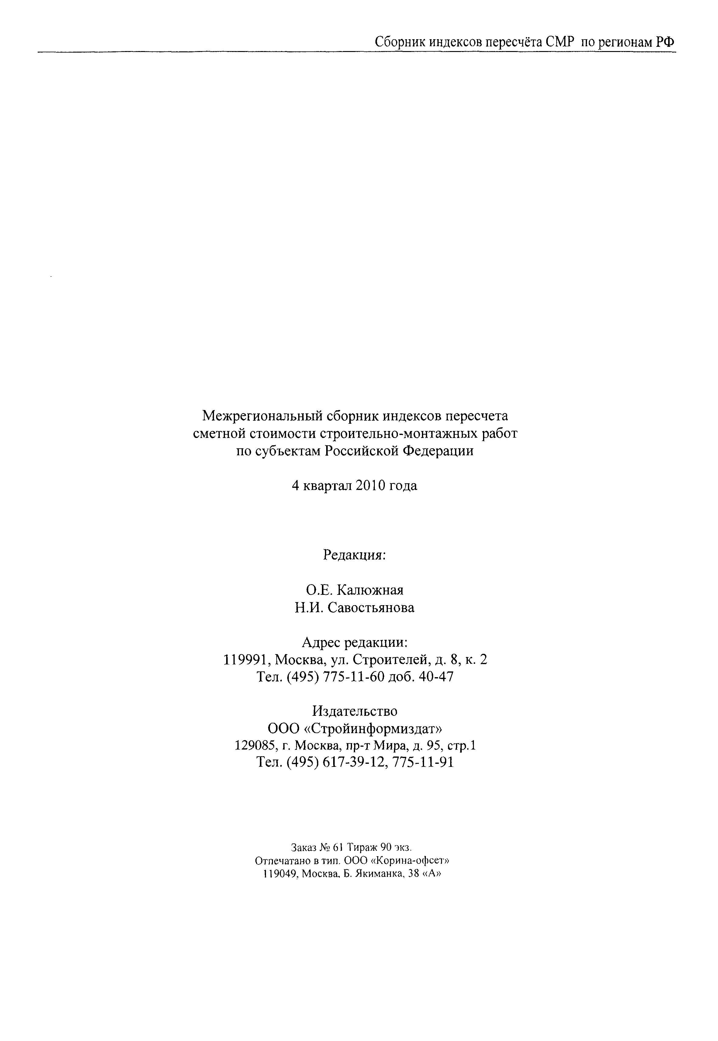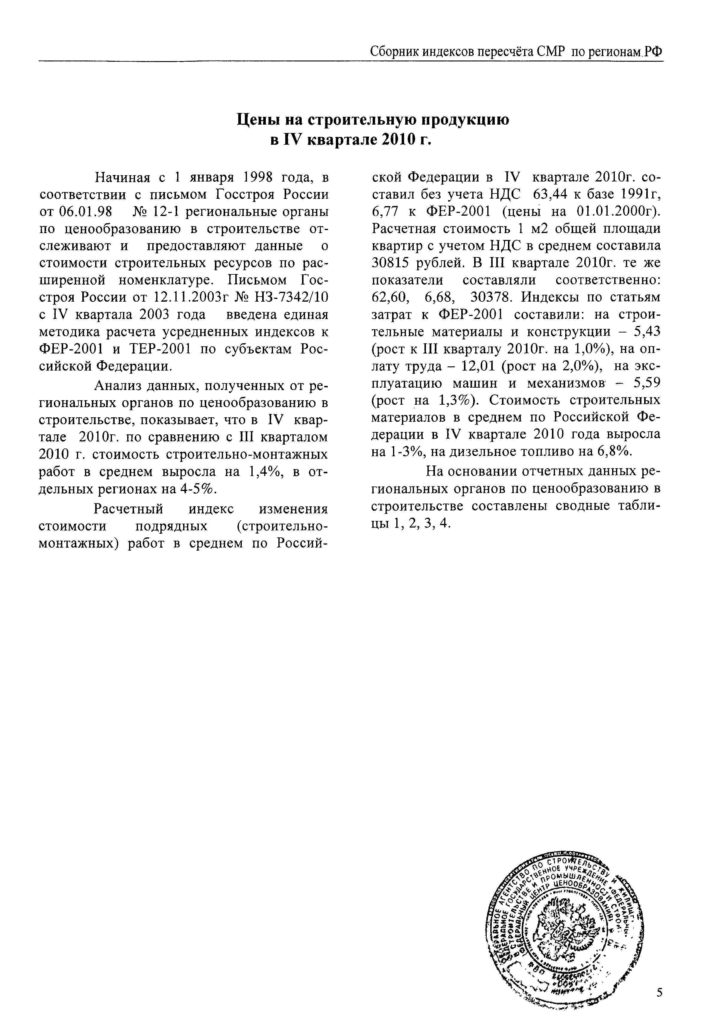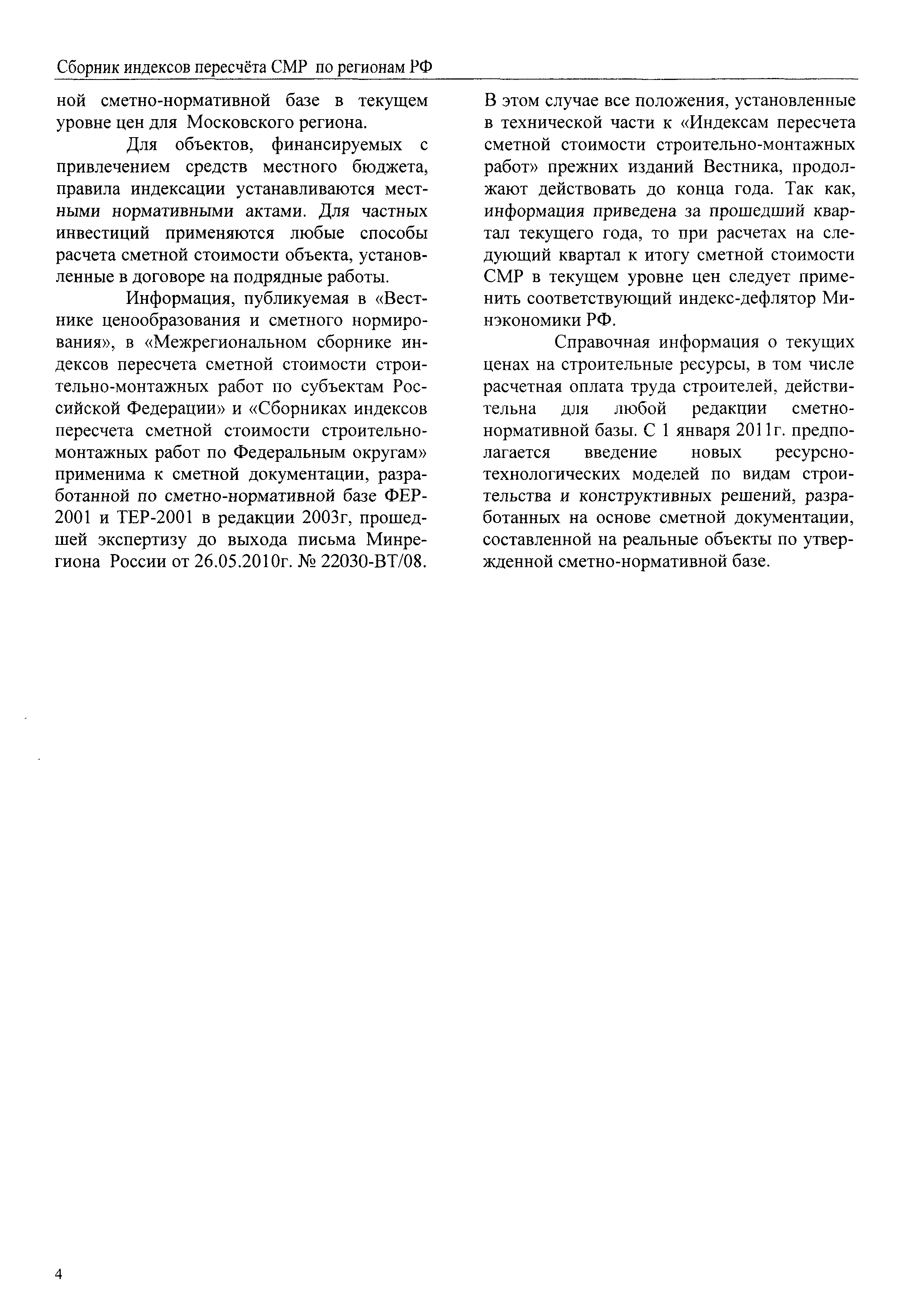 Скачать Межрегиональный сборник индексов пересчета сметной стоимости строительно-монтажных работ по субъектам Российской Федерации на IV квартал 2010 г.Дата актуализации: 01.01.2021
