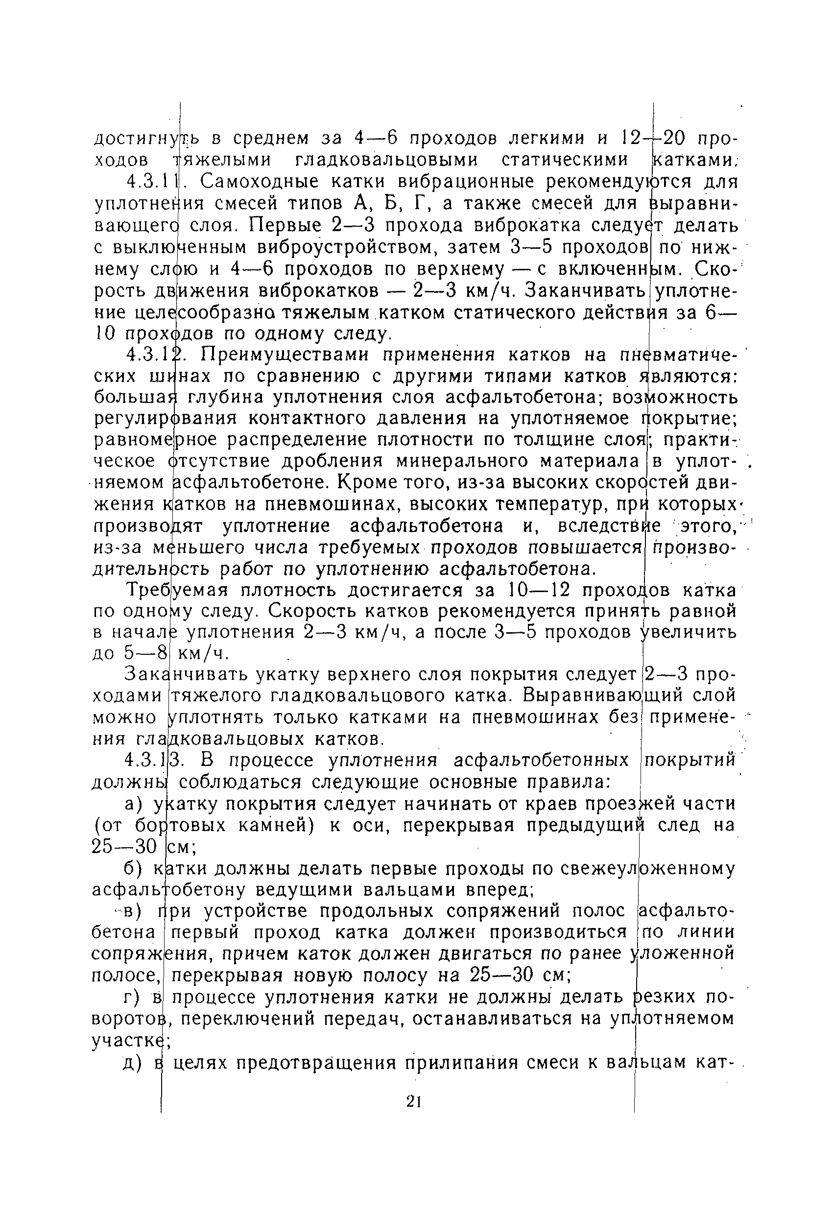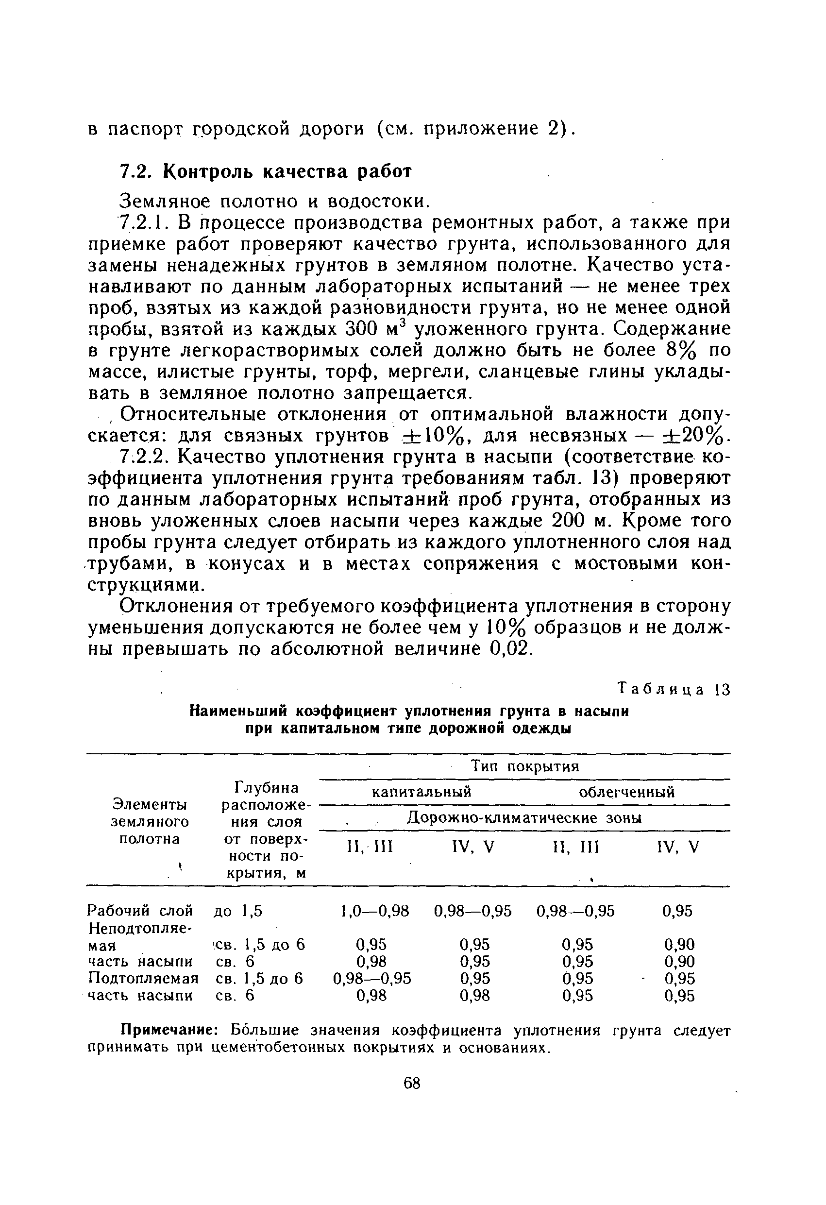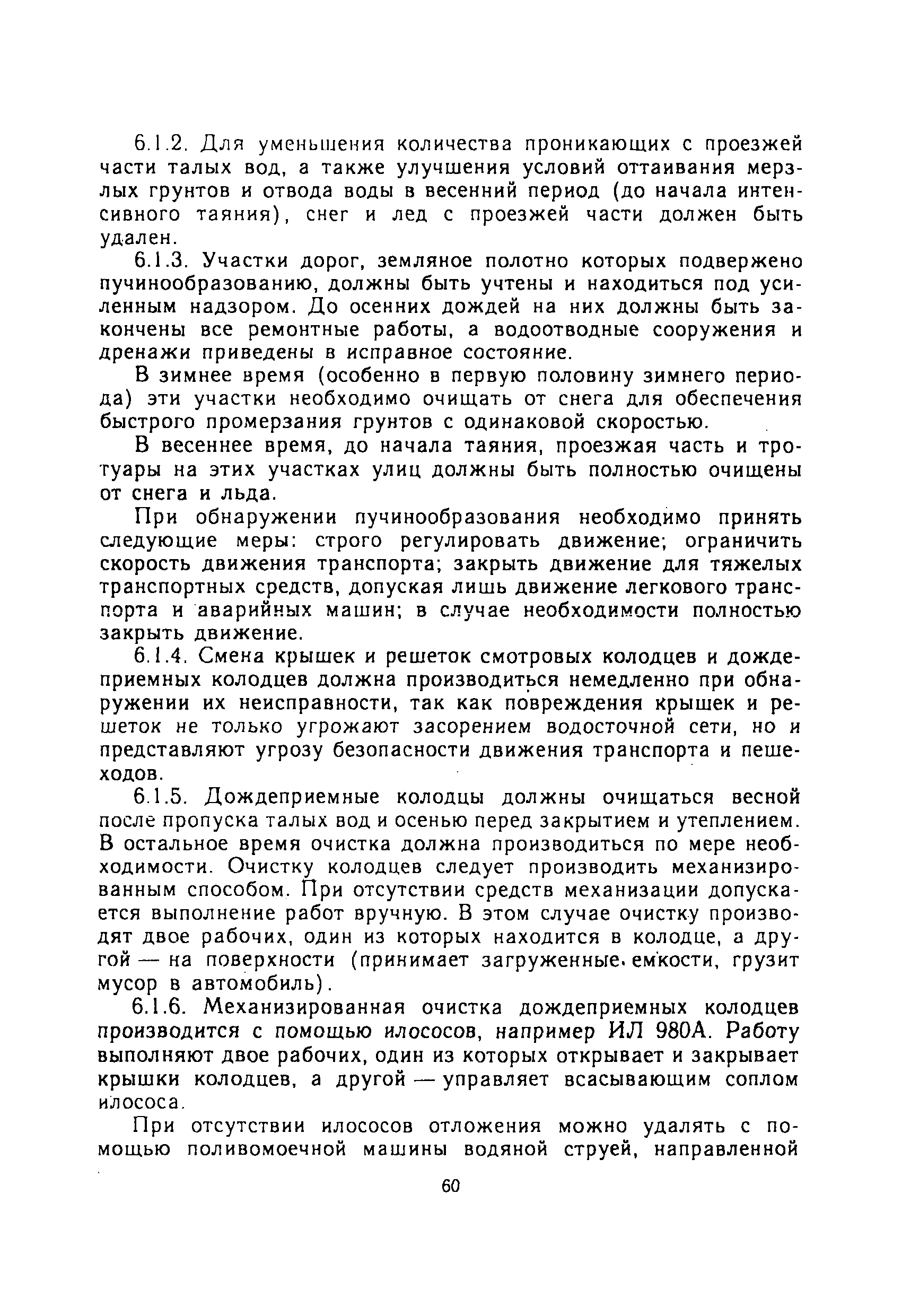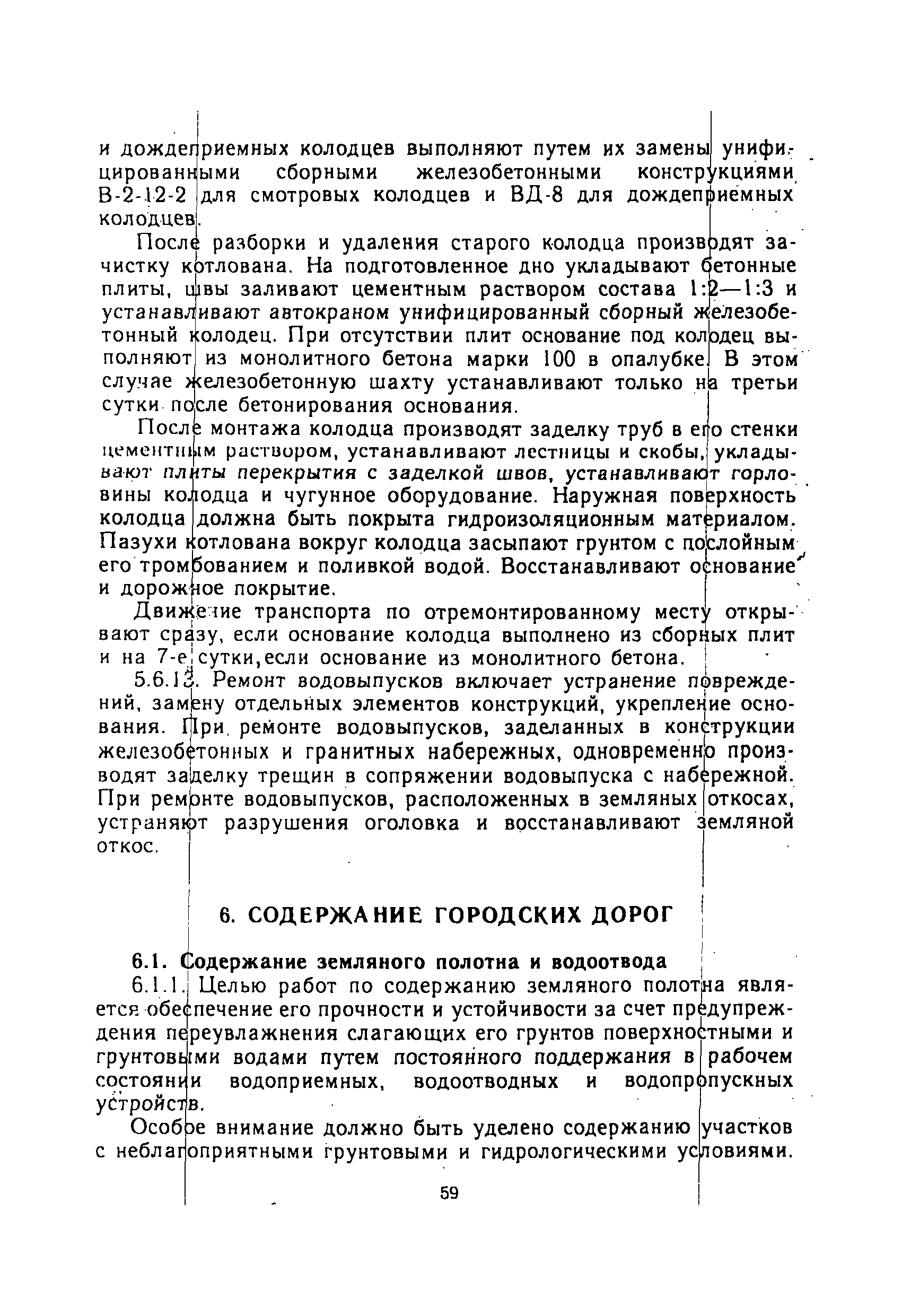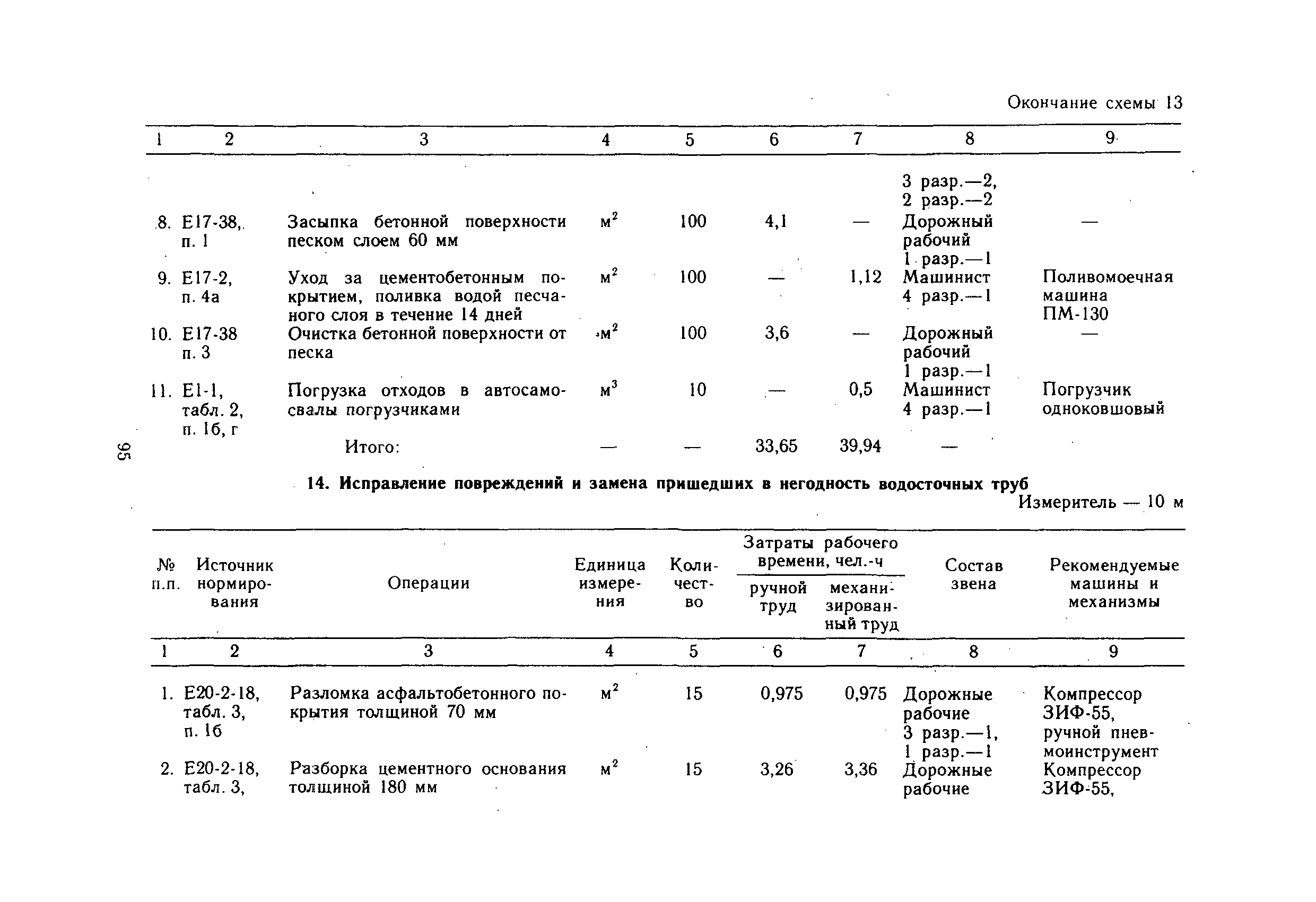 | Оглавление: | 1. Общие положения 2. Требования к транспортно-эксплуатационному состоянию городских дорог 3. Состав работ по ремонту и содержанию городских дорог 4. Капитальный ремонт 4.1 Общая часть 4.2 Ремонт земляного полотна и водостоков 4.3 Ремонт асфальтобетонных покрытий Укладка нового слоя по существующему покрытию Ремонт методом регенерации старого асфальтобетона 4.4 Ремонт цементобетонных покрытий 5. Текущий ремонт 5.1 Ремонт асфальтобетонных покрытий Заделка выбоин и просадок Ликвидация волн и наплывов Заделка трещин Устройство слоя износа 5.2 Ремонт цементобетонных покрытий Заделка выбоин и просадок Ремонт покрытий из сборных плит Ремонт швов и заделка трещин Устройство слоя износа 5.3 Ремонт покрытий переходного и низшего типов 5.4 Восстановление дорожной одежды после разрытий 5.5 Ремонт бортового камня 5.6 Ремонт дождевой канализации 6. Содержание городских дорог 6.1 Содержание земляного полотна и водоотвода 6.2 Содержание дородных покрытий 6.3 Учет интенсивности движения и паспортизация городских дорог 7. Правила приемки и контроль качества работ 7.1 Порядок приемки работ по ремонту городских улиц 7.2 Контроль качества работ Земляное полотно и водостоки Дорожные одежды Приложение 1. Технологические схемы ремонта городских дорог Приложение 2. Машины и механизмы для ремонта и содержания дорог Приложение 3. Форма паспорта городской дороги |
