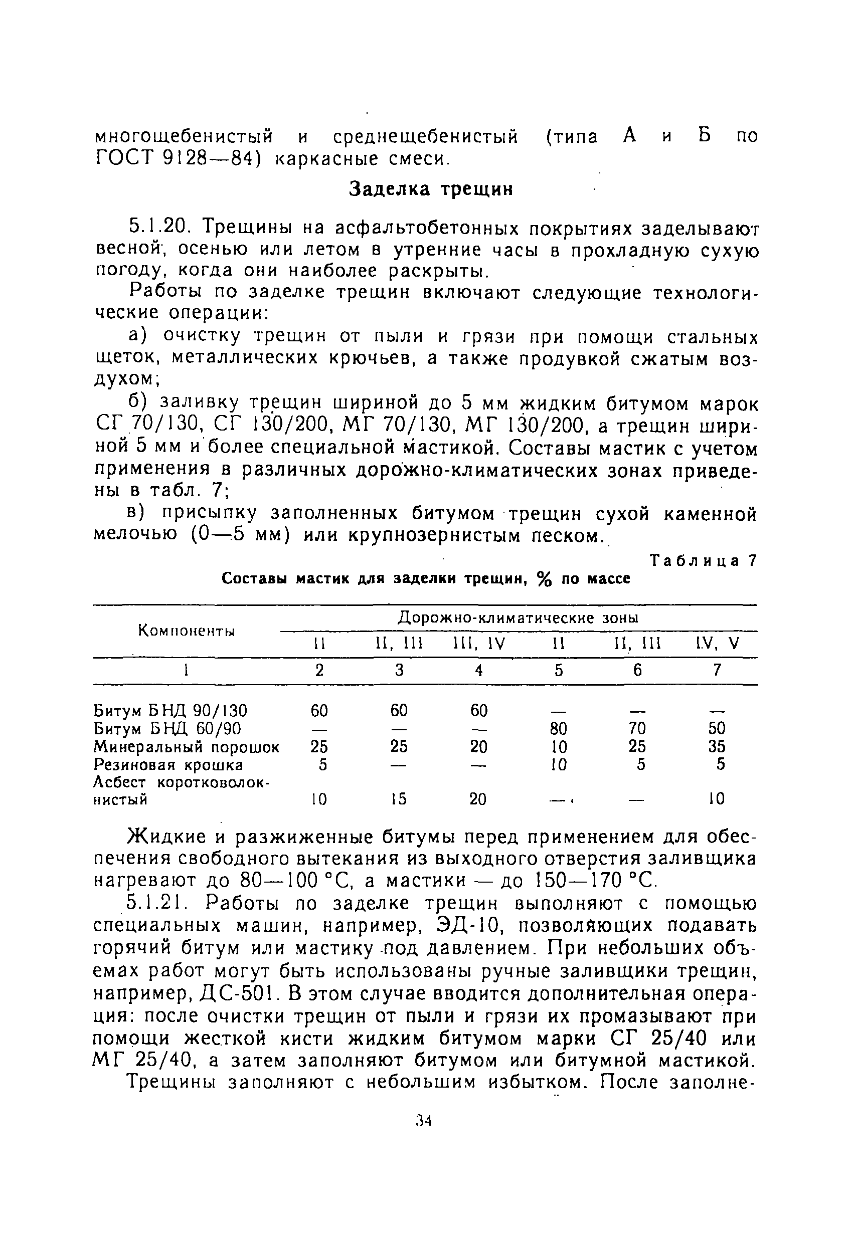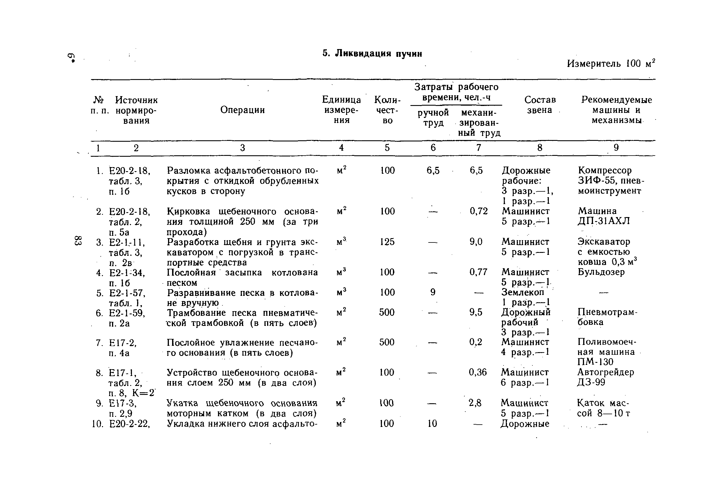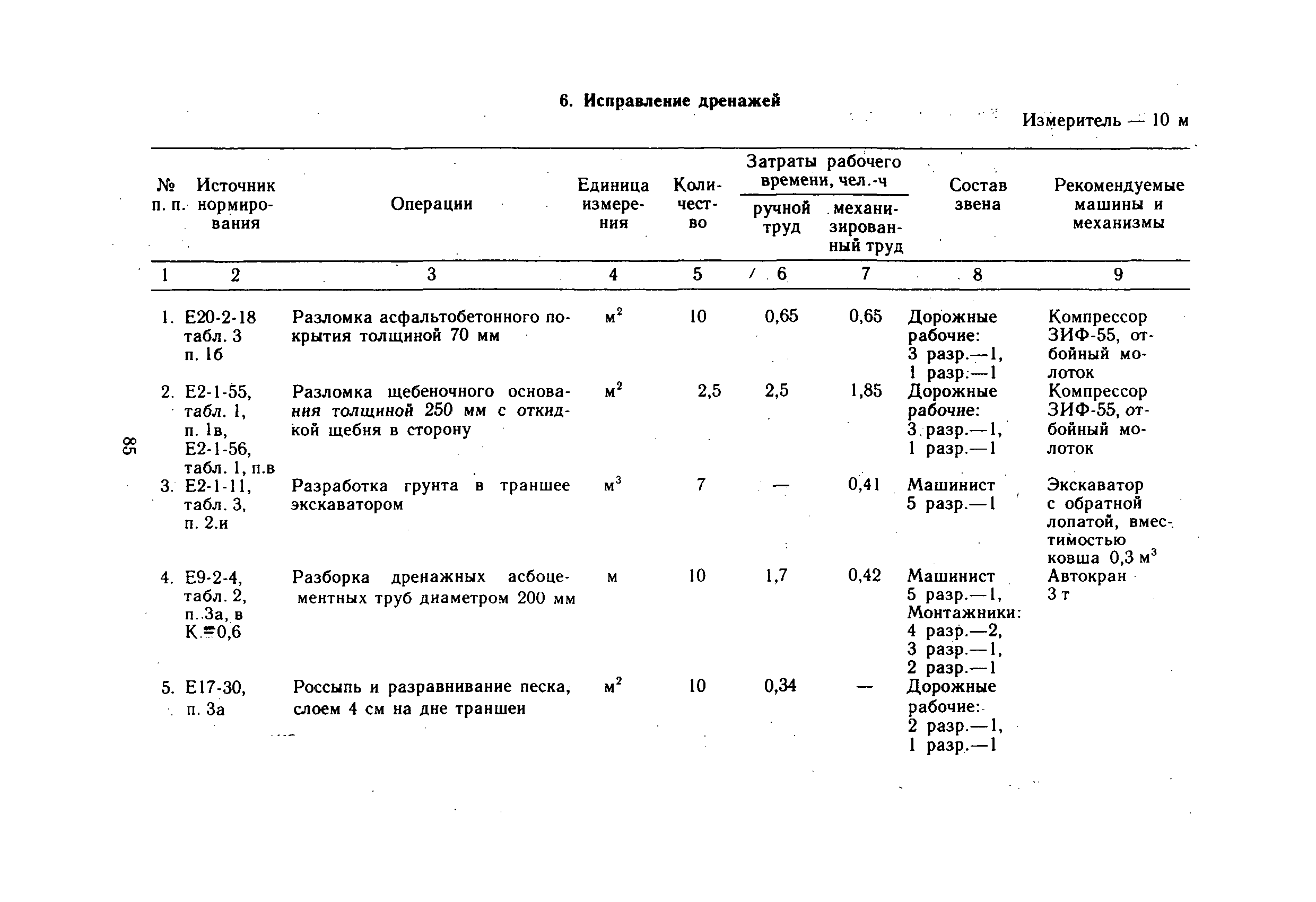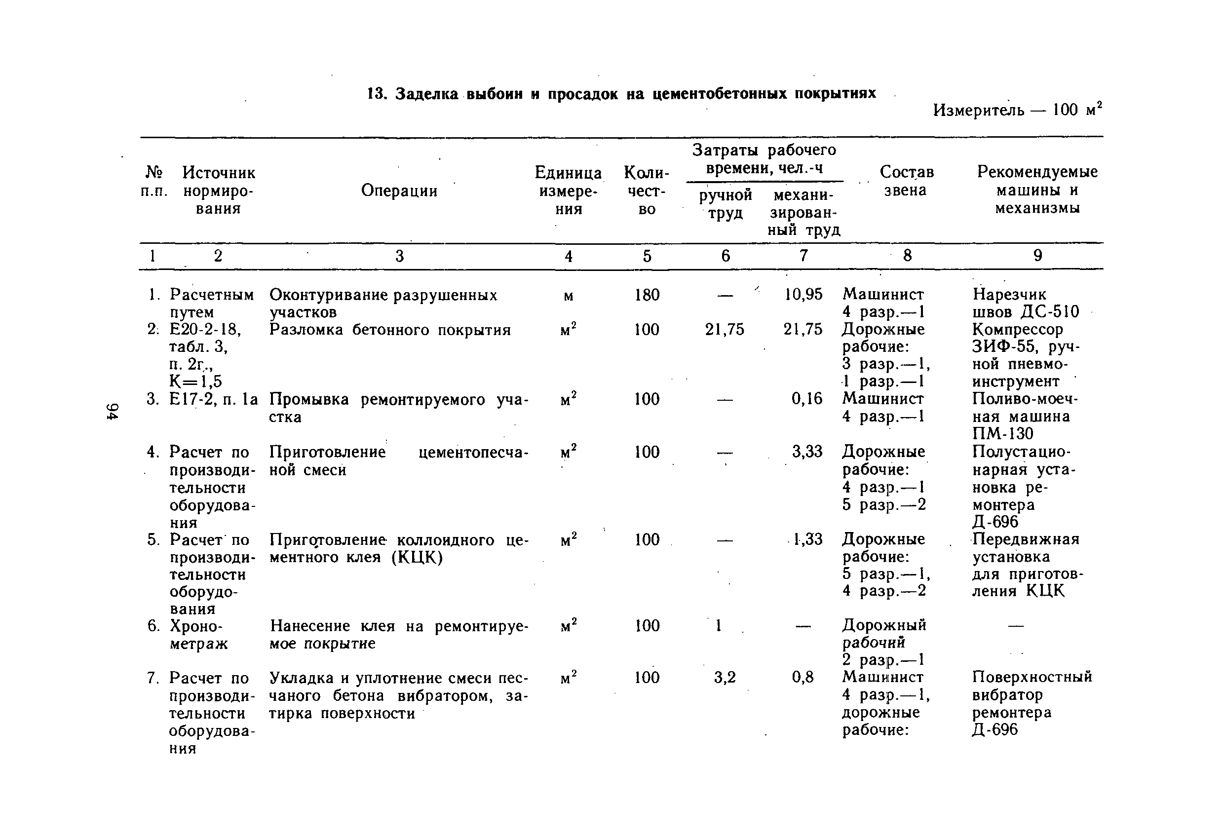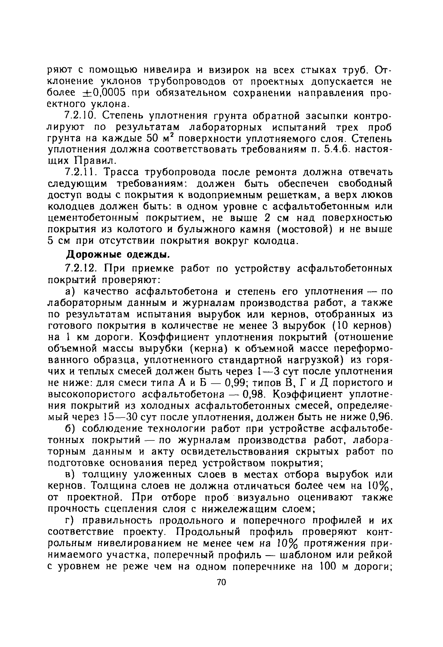 | Оглавление: | 1. Общие положения 2. Требования к транспортно-эксплуатационному состоянию городских дорог 3. Состав работ по ремонту и содержанию городских дорог 4. Капитальный ремонт 4.1 Общая часть 4.2 Ремонт земляного полотна и водостоков 4.3 Ремонт асфальтобетонных покрытий Укладка нового слоя по существующему покрытию Ремонт методом регенерации старого асфальтобетона 4.4 Ремонт цементобетонных покрытий 5. Текущий ремонт 5.1 Ремонт асфальтобетонных покрытий Заделка выбоин и просадок Ликвидация волн и наплывов Заделка трещин Устройство слоя износа 5.2 Ремонт цементобетонных покрытий Заделка выбоин и просадок Ремонт покрытий из сборных плит Ремонт швов и заделка трещин Устройство слоя износа 5.3 Ремонт покрытий переходного и низшего типов 5.4 Восстановление дорожной одежды после разрытий 5.5 Ремонт бортового камня 5.6 Ремонт дождевой канализации 6. Содержание городских дорог 6.1 Содержание земляного полотна и водоотвода 6.2 Содержание дородных покрытий 6.3 Учет интенсивности движения и паспортизация городских дорог 7. Правила приемки и контроль качества работ 7.1 Порядок приемки работ по ремонту городских улиц 7.2 Контроль качества работ Земляное полотно и водостоки Дорожные одежды Приложение 1. Технологические схемы ремонта городских дорог Приложение 2. Машины и механизмы для ремонта и содержания дорог Приложение 3. Форма паспорта городской дороги |