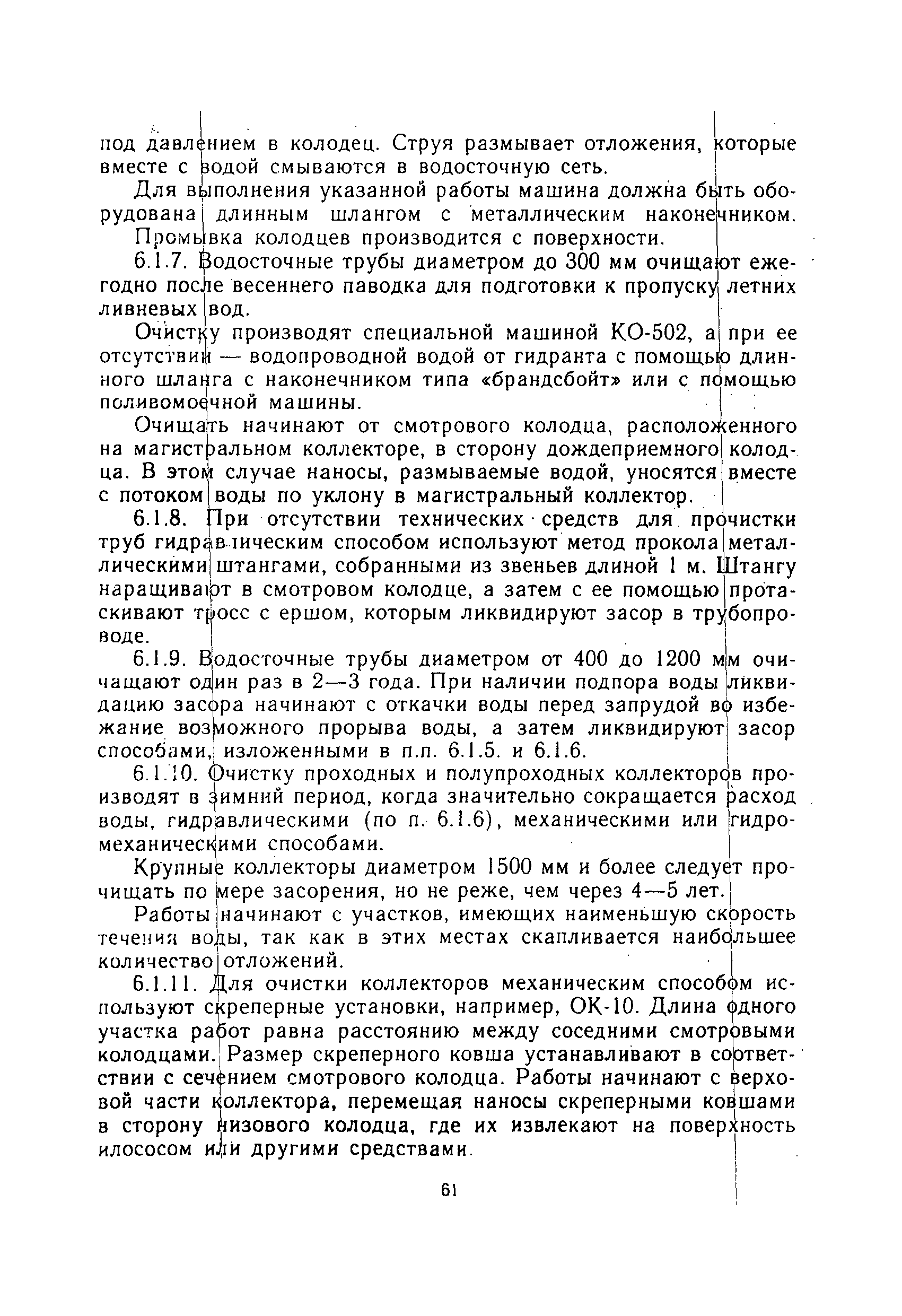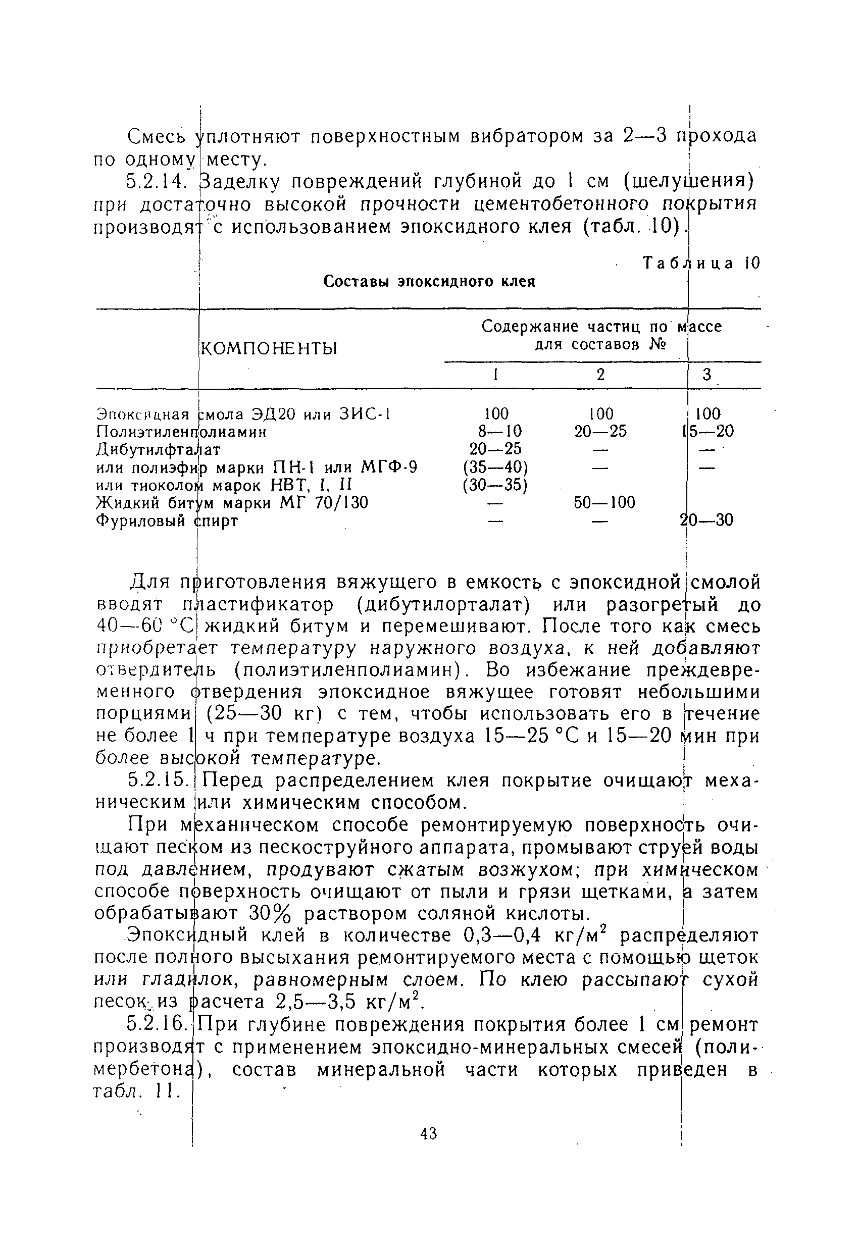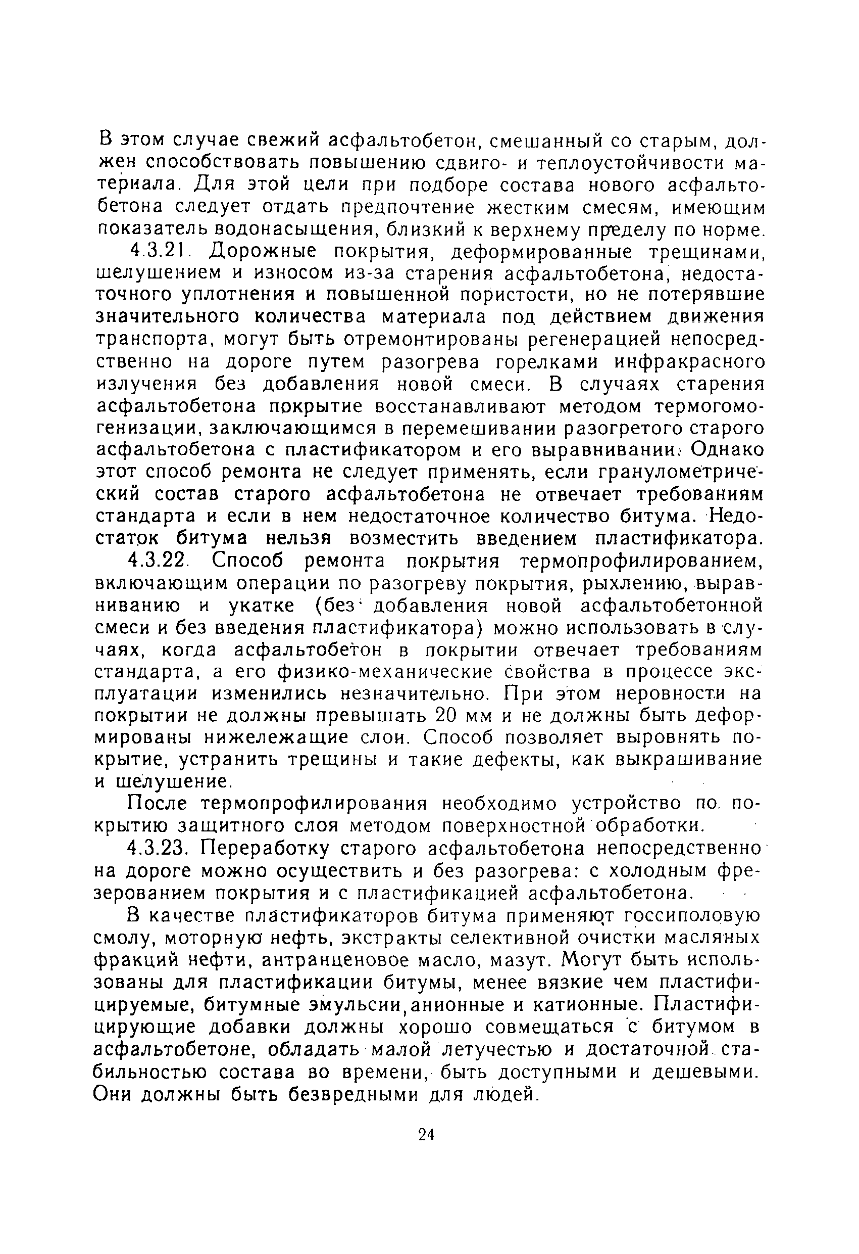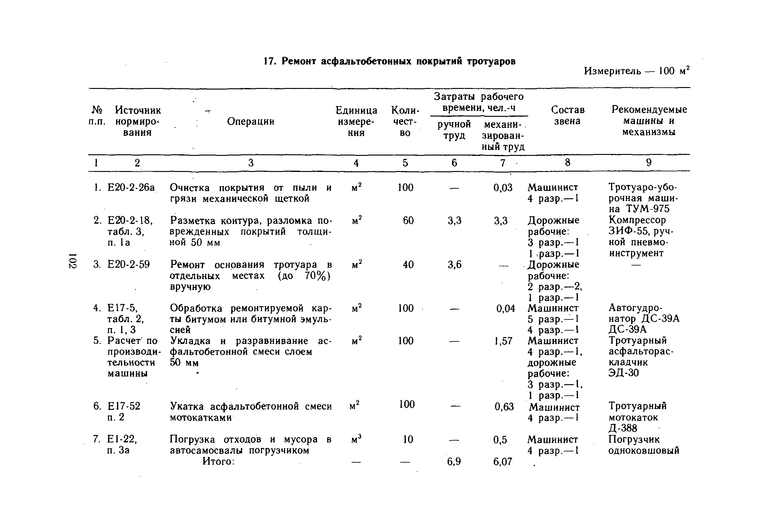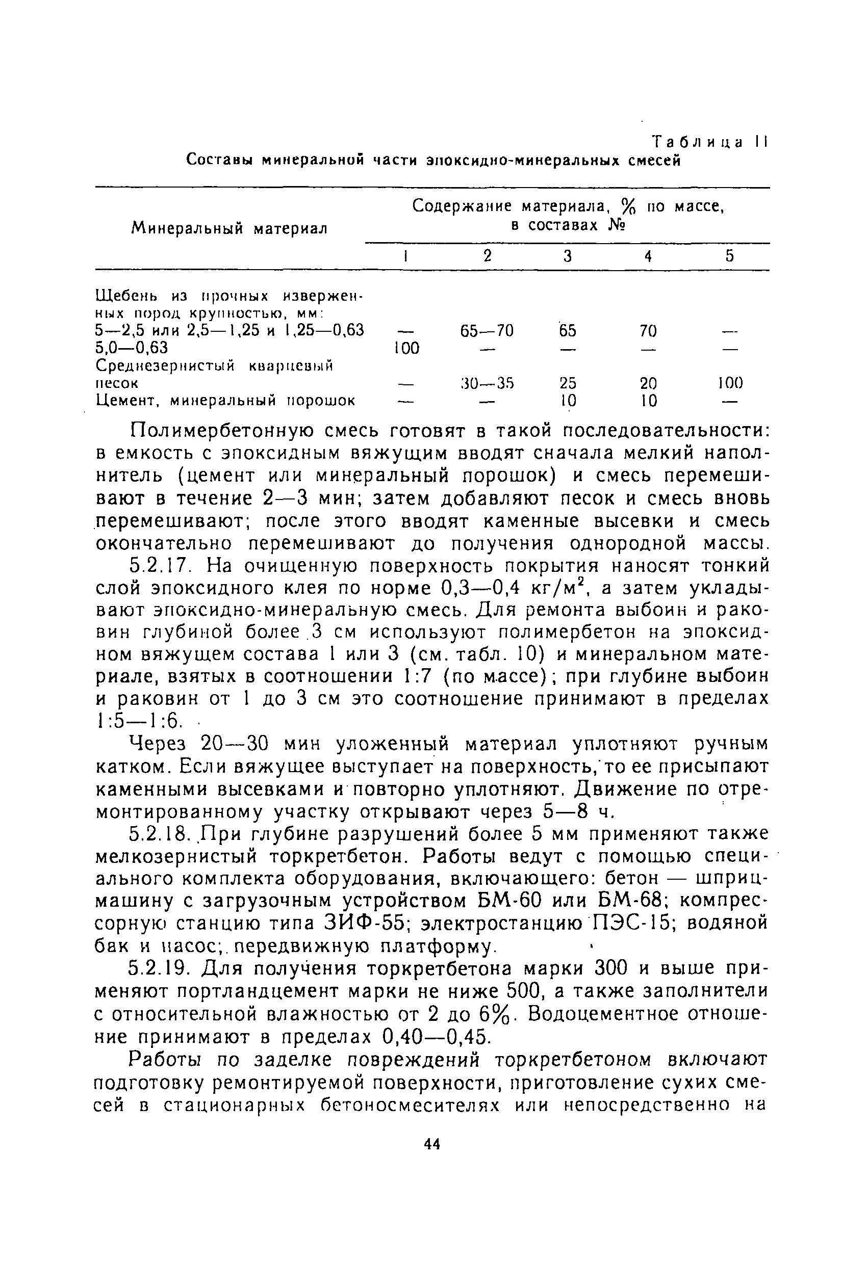 | Оглавление: | 1. Общие положения 2. Требования к транспортно-эксплуатационному состоянию городских дорог 3. Состав работ по ремонту и содержанию городских дорог 4. Капитальный ремонт 4.1 Общая часть 4.2 Ремонт земляного полотна и водостоков 4.3 Ремонт асфальтобетонных покрытий Укладка нового слоя по существующему покрытию Ремонт методом регенерации старого асфальтобетона 4.4 Ремонт цементобетонных покрытий 5. Текущий ремонт 5.1 Ремонт асфальтобетонных покрытий Заделка выбоин и просадок Ликвидация волн и наплывов Заделка трещин Устройство слоя износа 5.2 Ремонт цементобетонных покрытий Заделка выбоин и просадок Ремонт покрытий из сборных плит Ремонт швов и заделка трещин Устройство слоя износа 5.3 Ремонт покрытий переходного и низшего типов 5.4 Восстановление дорожной одежды после разрытий 5.5 Ремонт бортового камня 5.6 Ремонт дождевой канализации 6. Содержание городских дорог 6.1 Содержание земляного полотна и водоотвода 6.2 Содержание дородных покрытий 6.3 Учет интенсивности движения и паспортизация городских дорог 7. Правила приемки и контроль качества работ 7.1 Порядок приемки работ по ремонту городских улиц 7.2 Контроль качества работ Земляное полотно и водостоки Дорожные одежды Приложение 1. Технологические схемы ремонта городских дорог Приложение 2. Машины и механизмы для ремонта и содержания дорог Приложение 3. Форма паспорта городской дороги |