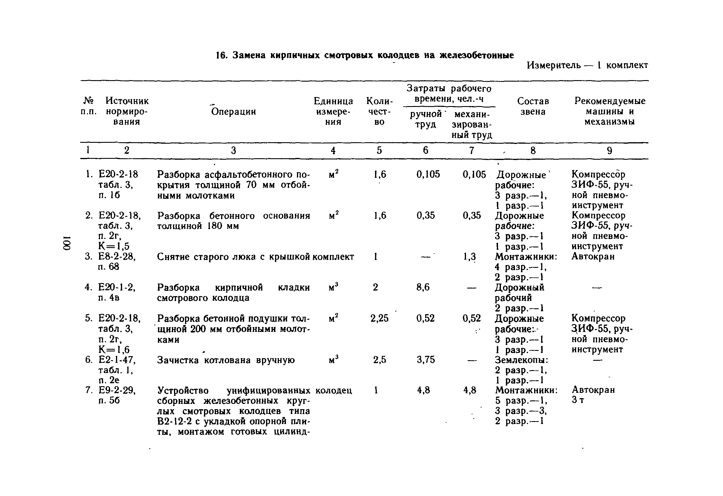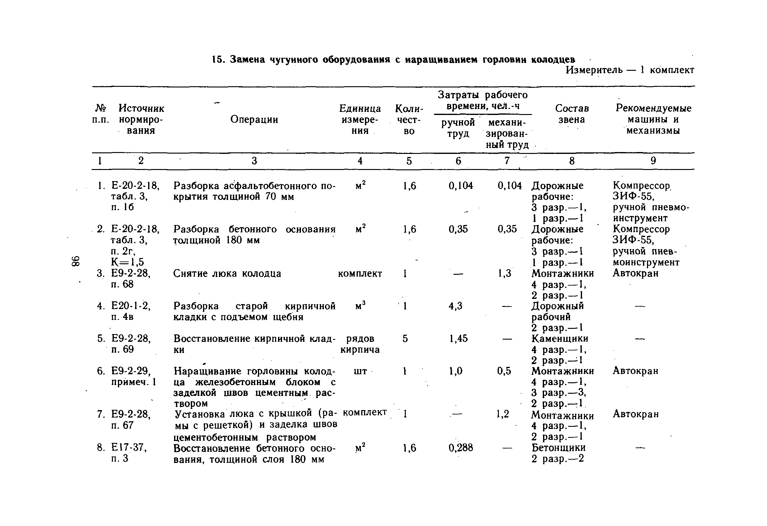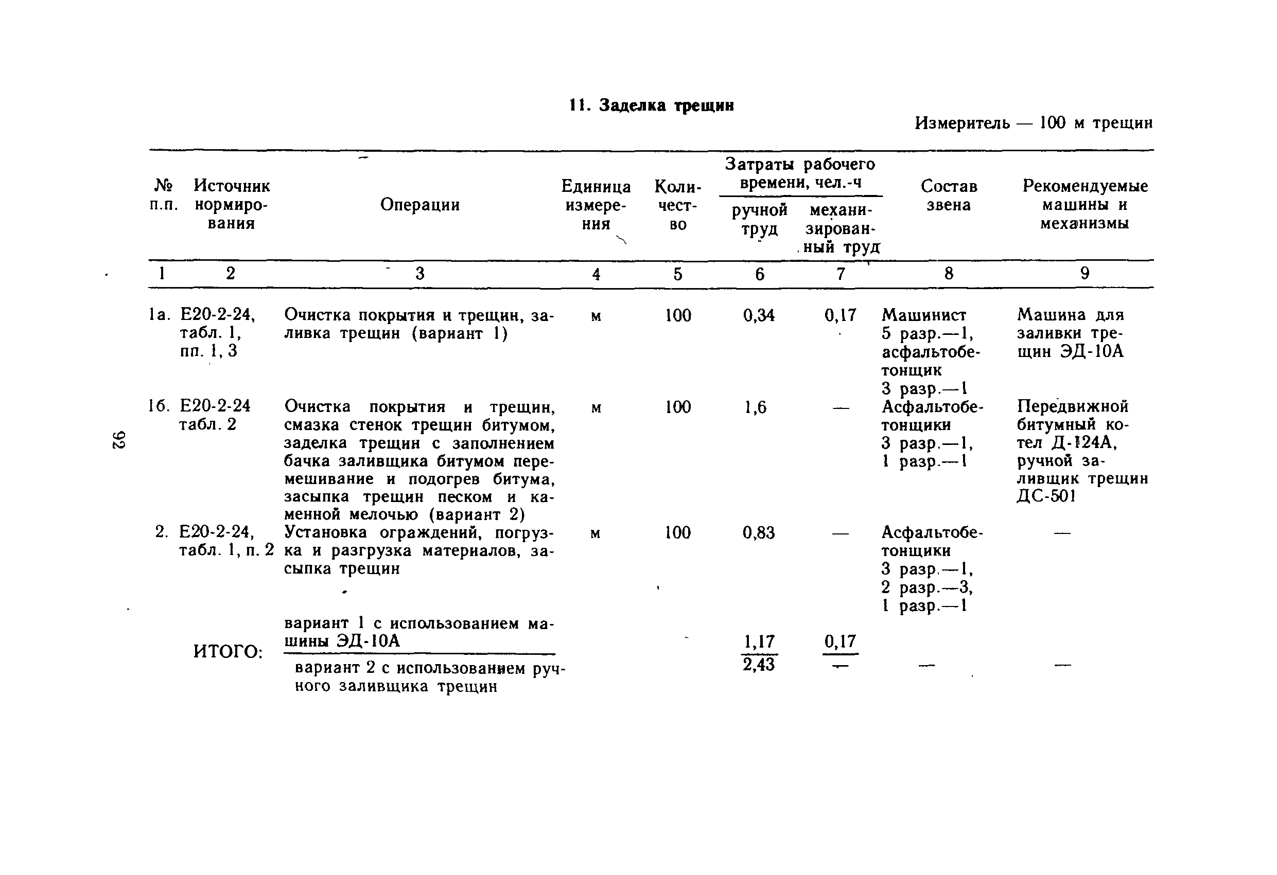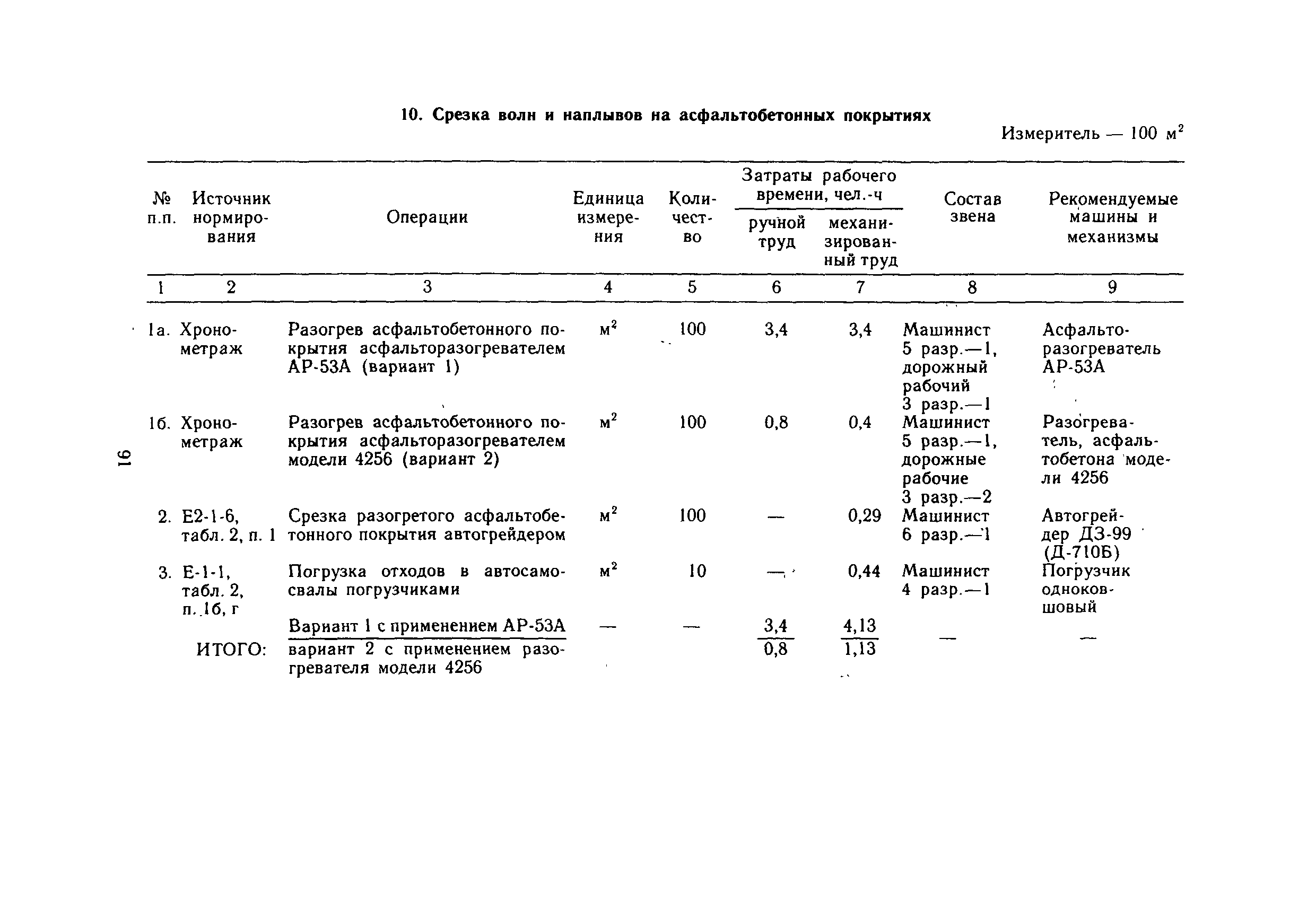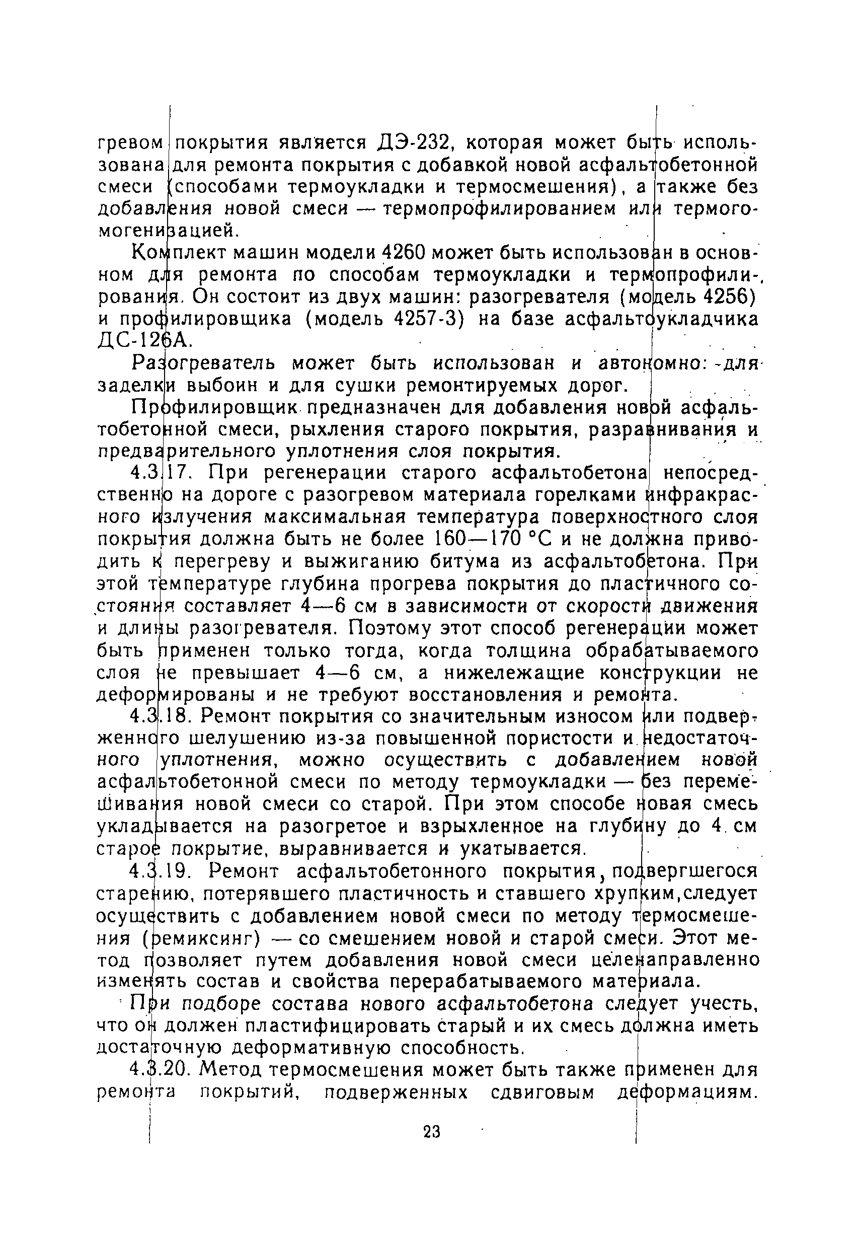 | Оглавление: | 1. Общие положения 2. Требования к транспортно-эксплуатационному состоянию городских дорог 3. Состав работ по ремонту и содержанию городских дорог 4. Капитальный ремонт 4.1 Общая часть 4.2 Ремонт земляного полотна и водостоков 4.3 Ремонт асфальтобетонных покрытий Укладка нового слоя по существующему покрытию Ремонт методом регенерации старого асфальтобетона 4.4 Ремонт цементобетонных покрытий 5. Текущий ремонт 5.1 Ремонт асфальтобетонных покрытий Заделка выбоин и просадок Ликвидация волн и наплывов Заделка трещин Устройство слоя износа 5.2 Ремонт цементобетонных покрытий Заделка выбоин и просадок Ремонт покрытий из сборных плит Ремонт швов и заделка трещин Устройство слоя износа 5.3 Ремонт покрытий переходного и низшего типов 5.4 Восстановление дорожной одежды после разрытий 5.5 Ремонт бортового камня 5.6 Ремонт дождевой канализации 6. Содержание городских дорог 6.1 Содержание земляного полотна и водоотвода 6.2 Содержание дородных покрытий 6.3 Учет интенсивности движения и паспортизация городских дорог 7. Правила приемки и контроль качества работ 7.1 Порядок приемки работ по ремонту городских улиц 7.2 Контроль качества работ Земляное полотно и водостоки Дорожные одежды Приложение 1. Технологические схемы ремонта городских дорог Приложение 2. Машины и механизмы для ремонта и содержания дорог Приложение 3. Форма паспорта городской дороги |