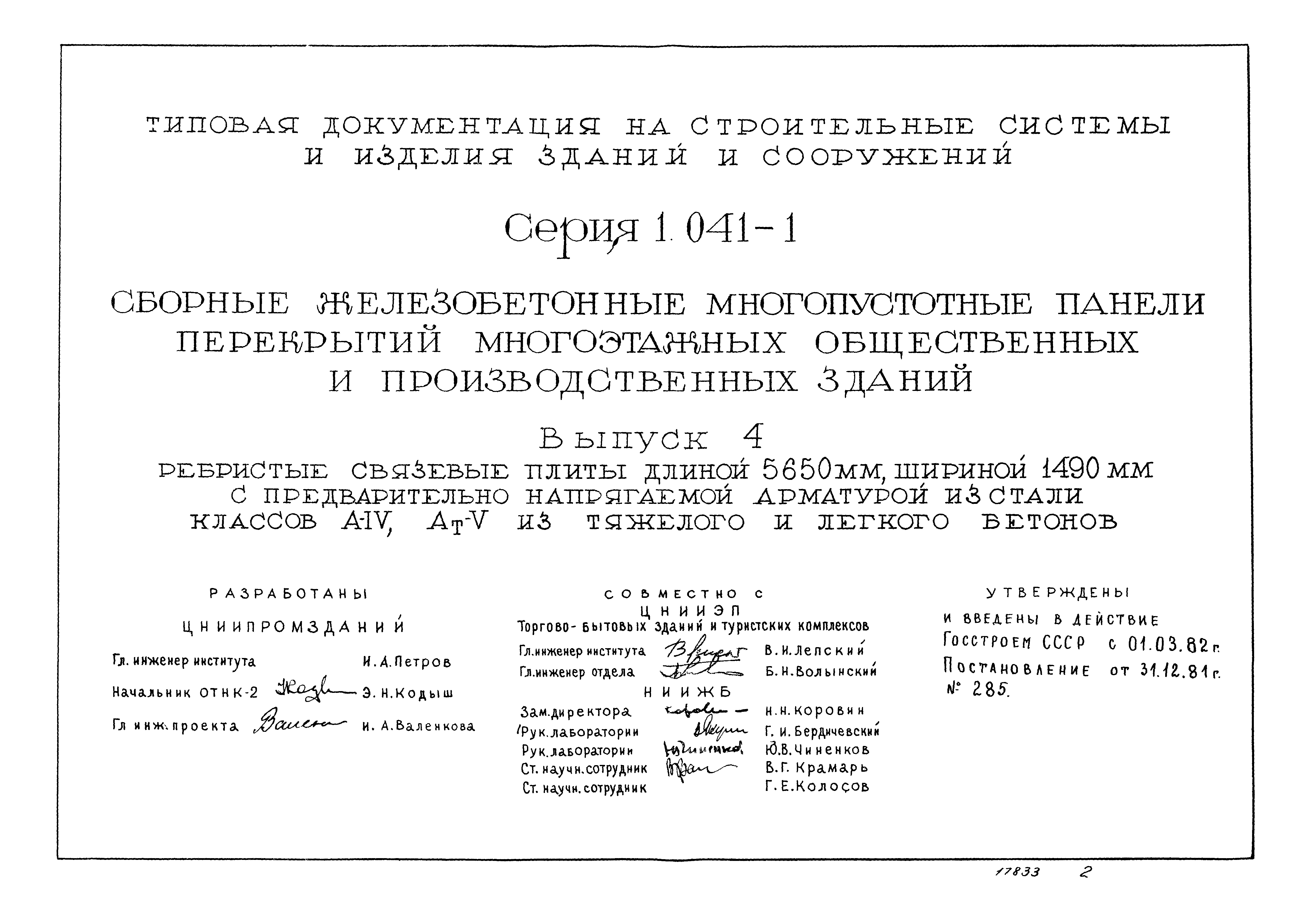 | Утверждён: | 31.12.1981 Госстрой СССР (Государственный комитет Совета Министров СССР по делам строительства) (USSR Gosstroy 285) |