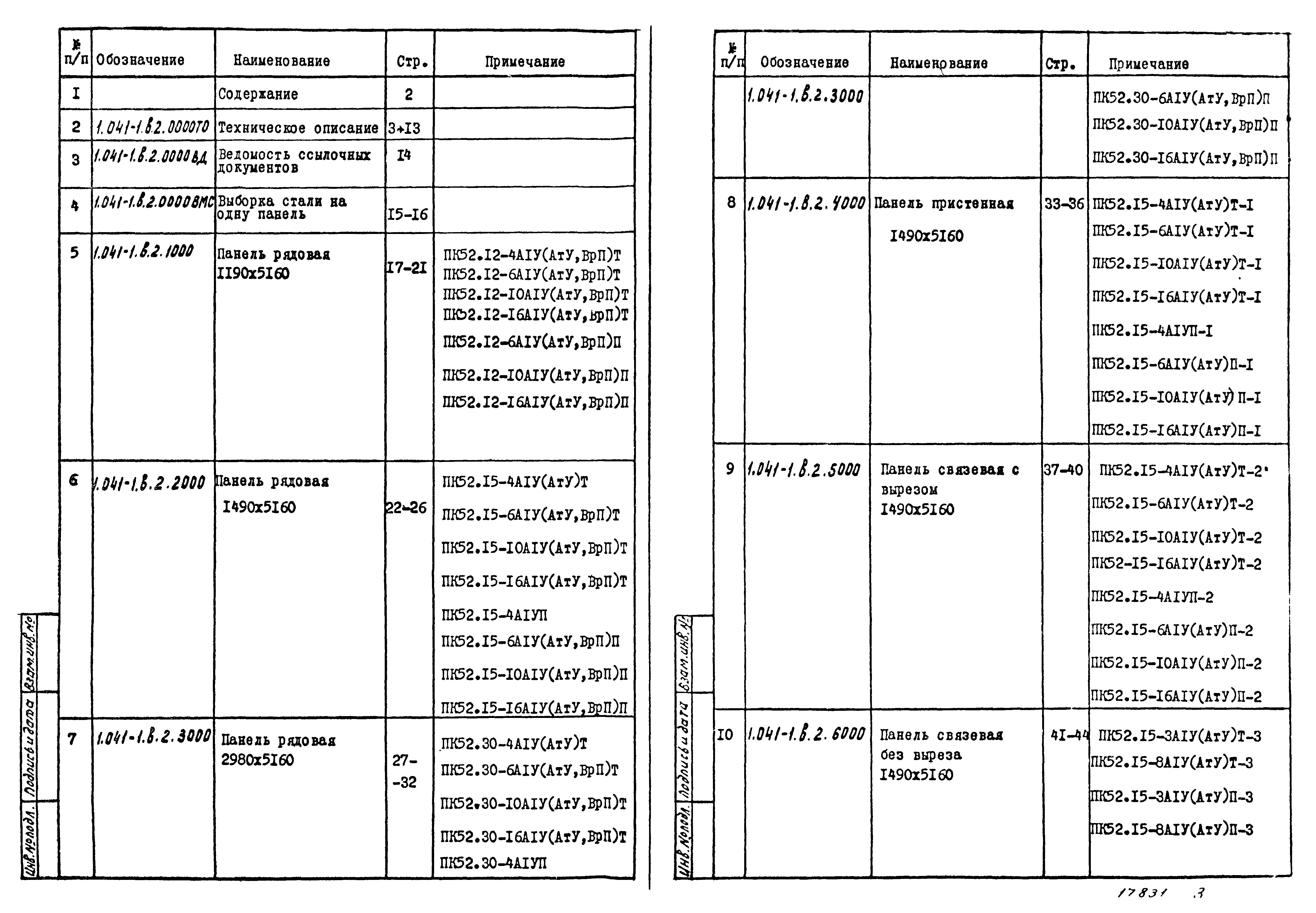 | Оглавление: | Содержание 1.041-1.в.2.0000 ТО Техническое описание 1.041-1.в.2.0000 ВД Ведомость ссылочных документов 1.041-1.в.2.0000 ВМС Выборка стали на одну панель 1.041-1.в.2.1000 Панель рядовая 1190x5160 1.041-1.в.2.2000 Панель рядовая 1490x5160 1.041-1.в.2.3000 Панель рядовая 2980x5160 1.041-1.в.2.4000 Панель пристенная 1490x5160 1.041-1.в.2.5000 Панель связевая с вырезом 1490x5160 1.041-1.в.2.6000 Панель связевая без выреза 1490x5160 |
