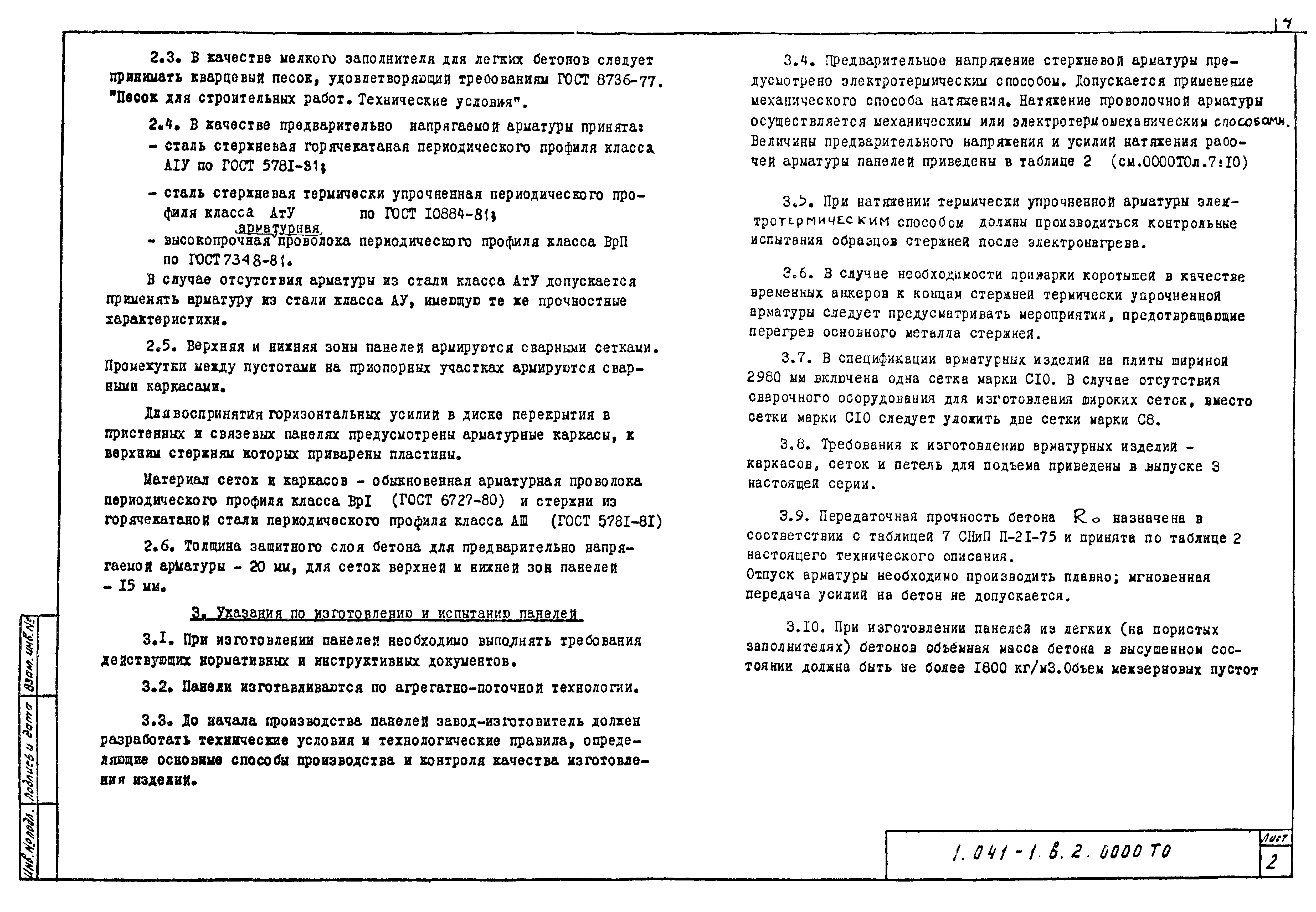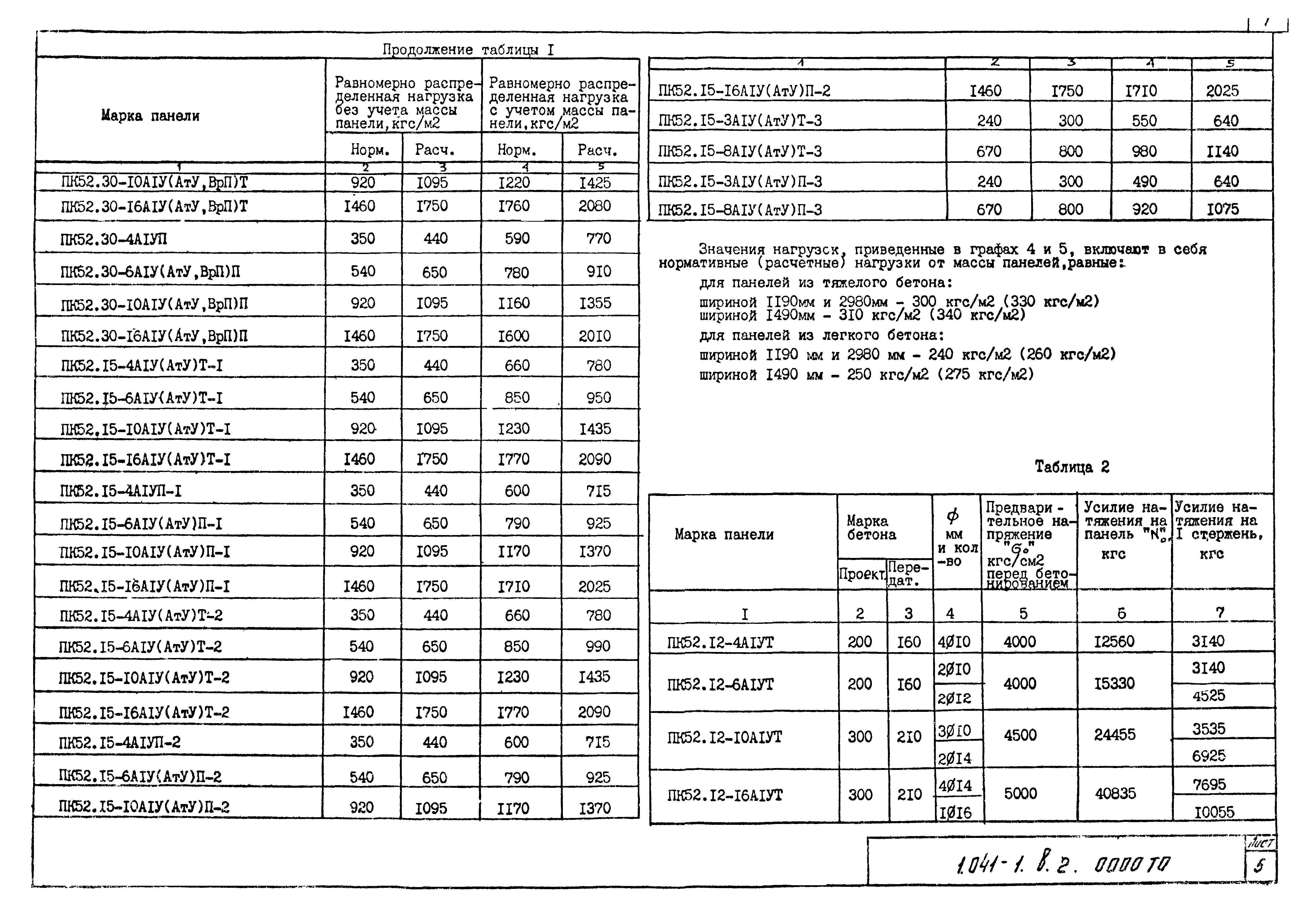 | Название рус.: | Выпуск 2. Многопустотные панели длиной 5160 мм, шириной 1190, 1490 и 2980 мм с предварительно напрягаемой арматурой из стали классов А-IV, Ат-V и Вр-II, из тяжелого и легкого бетонов |
