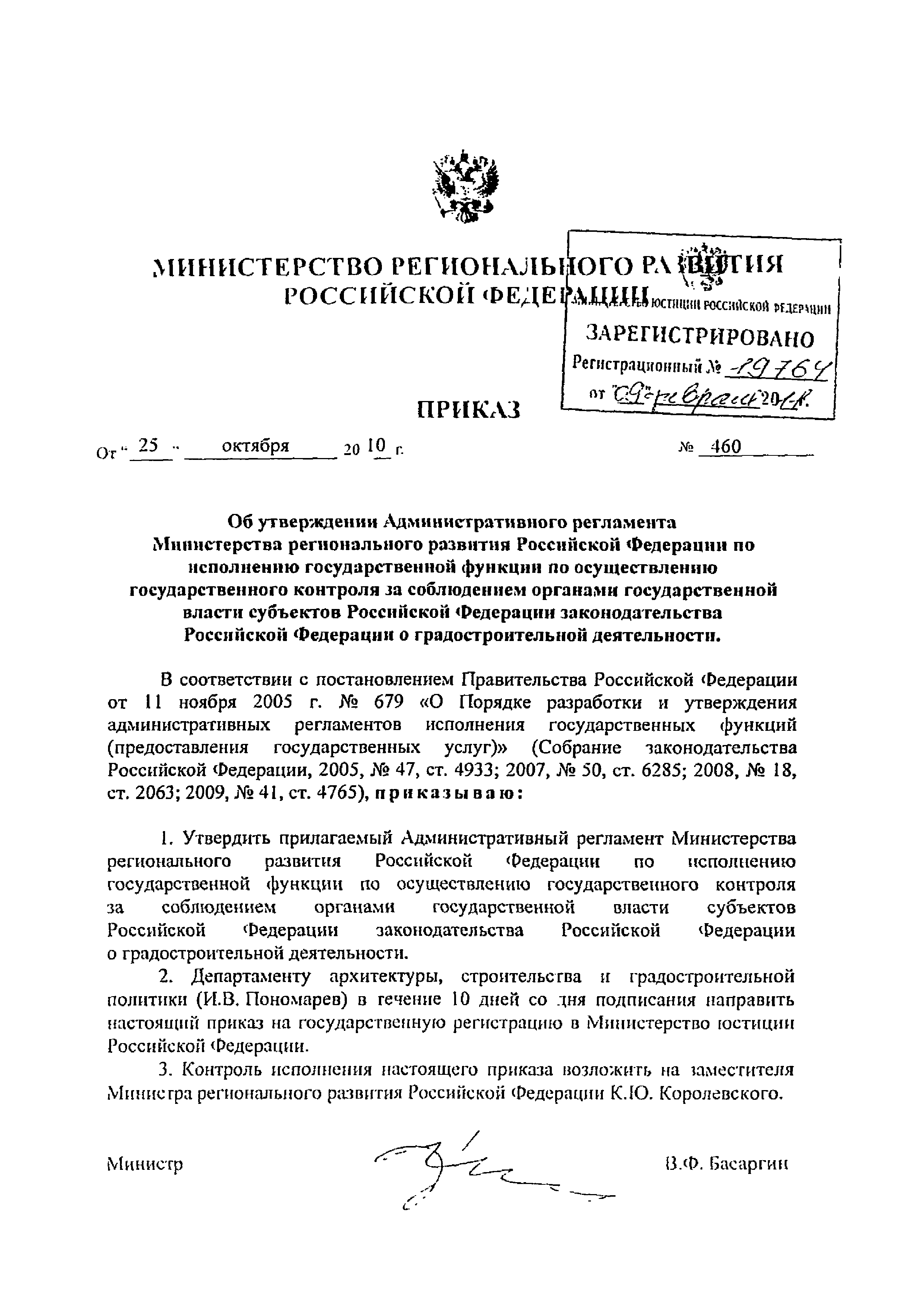 | Название рус.: | Административный регламент Министерства регионального развития Российской Федерации по исполнению государственной функции по осуществлению государственного контроля за соблюдением органами государственной власти субъектов Российской Федерации законодательства Российской Федерации о градостроительной деятельности |