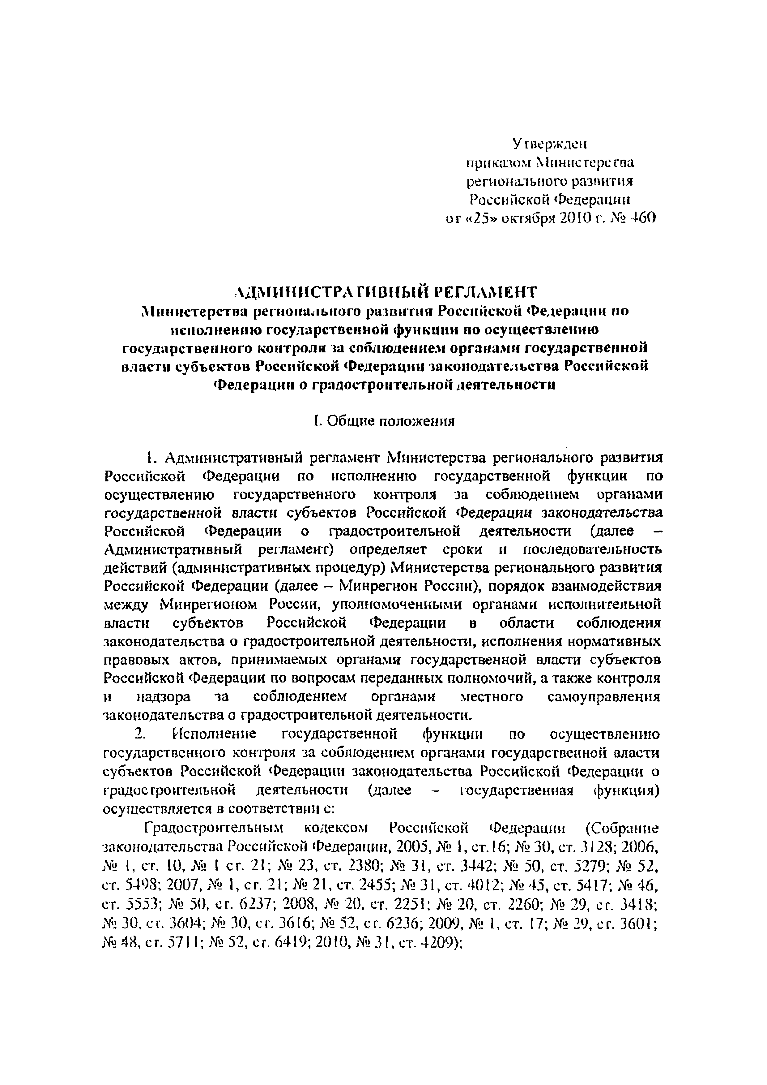| Утверждён: | 25.10.2010 Минрегион России (460)