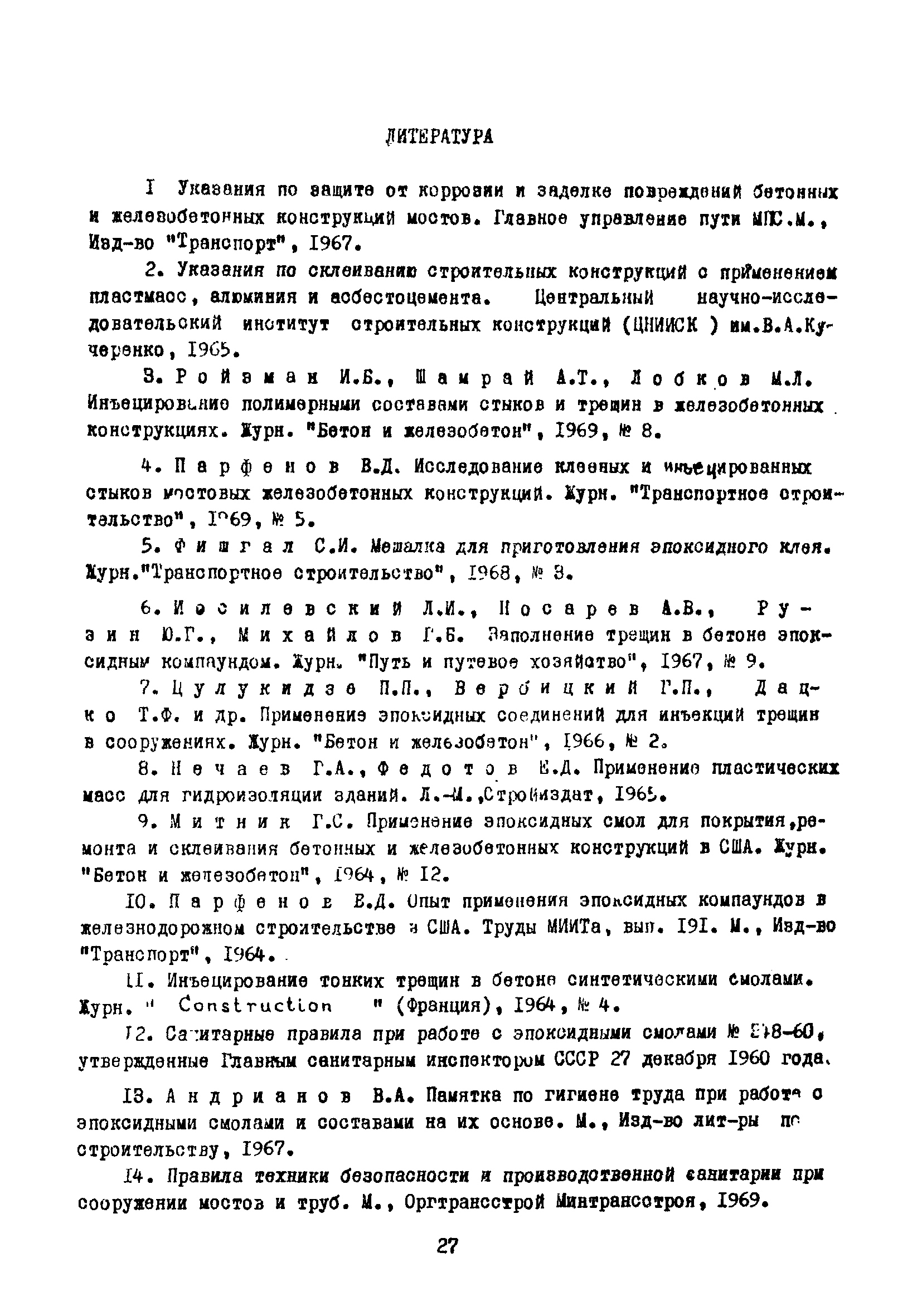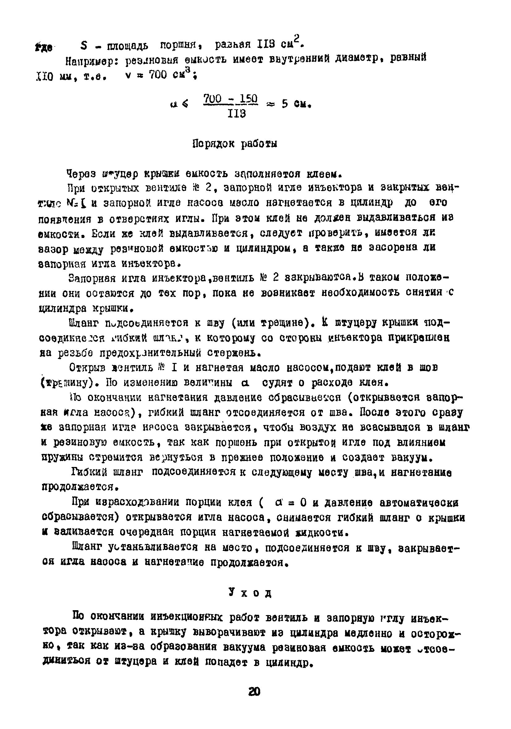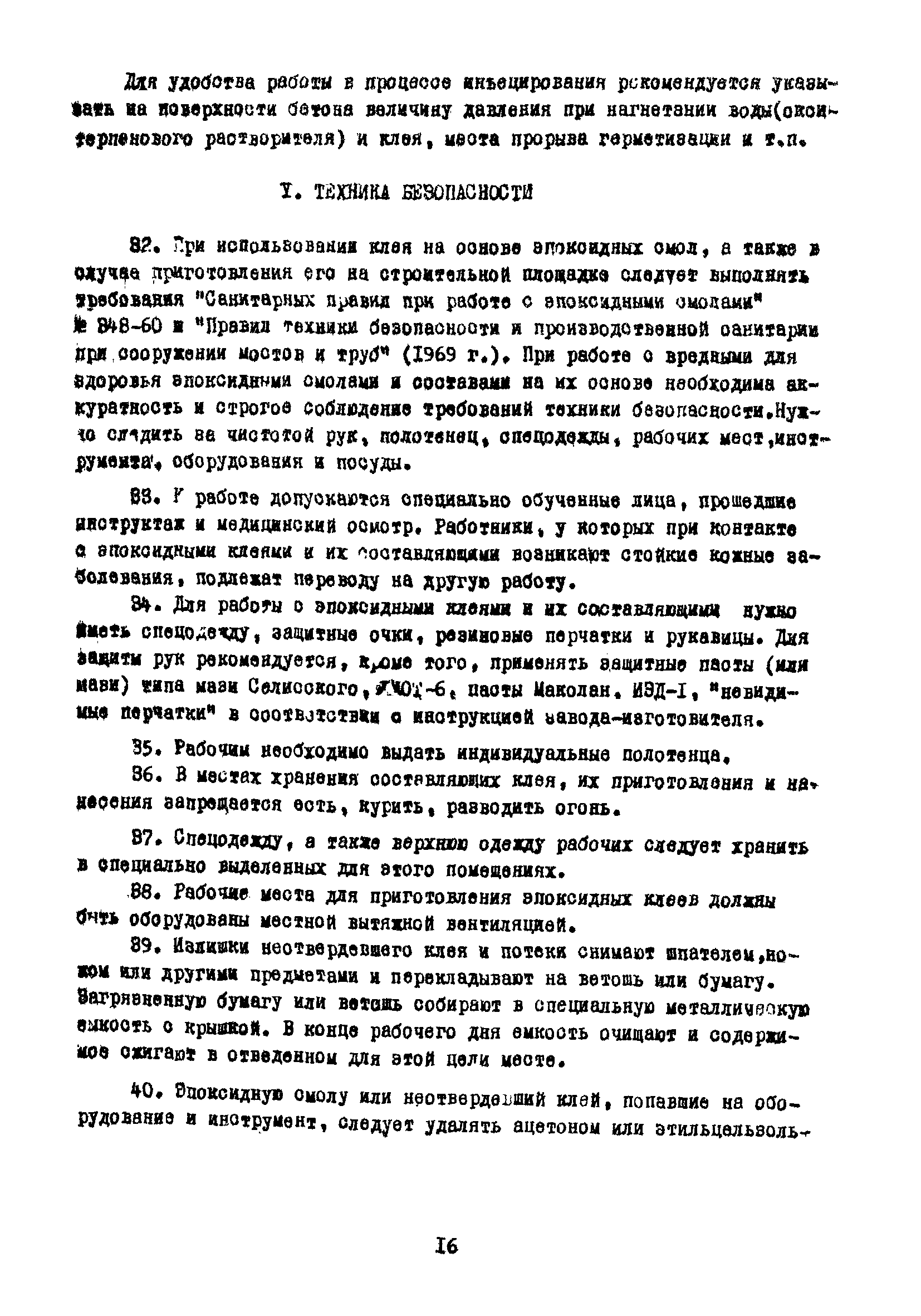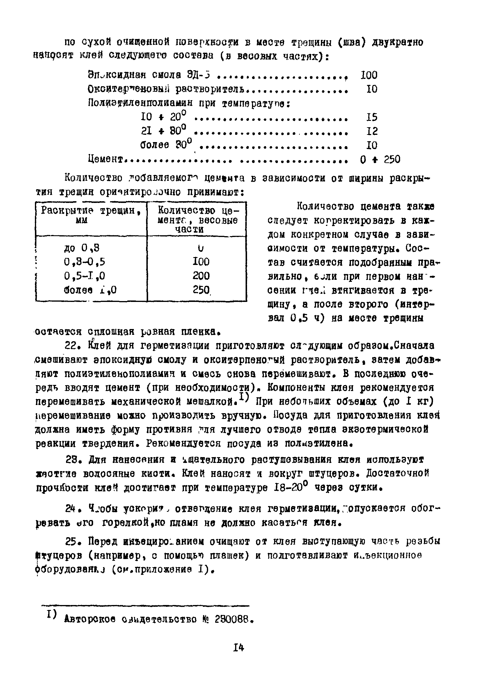 | Оглавление: | Предисловие Введение 1. Общая часть 2. Материалы и оборудование 3. Состав работ и описание операций 4. Ведение технической документации 5. Техника безопасности Приложения 1. Инструкция по эксплуатации установки для нагнетания клееных составов УНК-2 2. Установка для нагнетания клеевых составов УНК-2 (общий вид) 3. Перечень оборудования, инструментов и материалов, необходимых для инъецирования 4. Журнал инъецирования Литература |