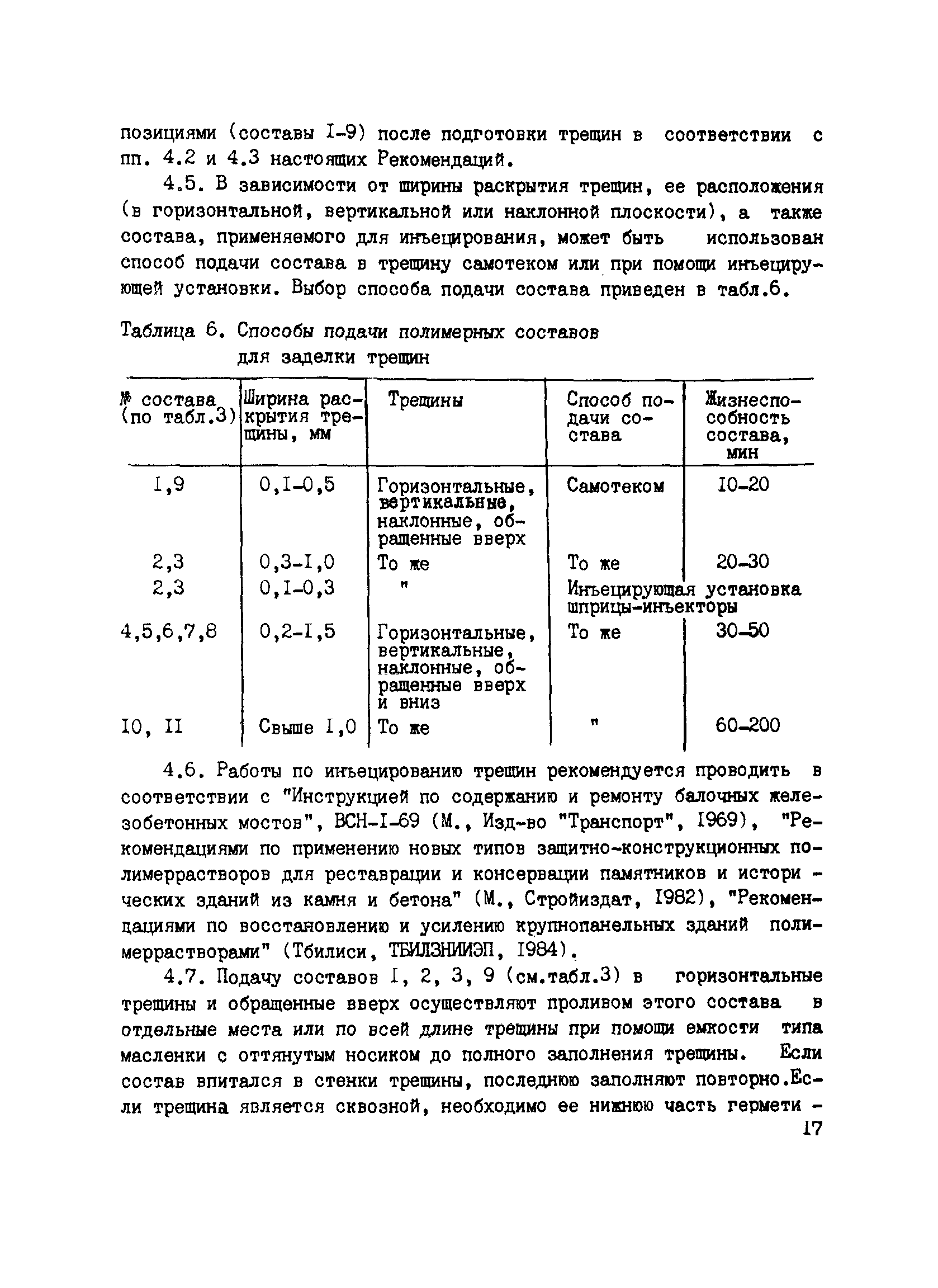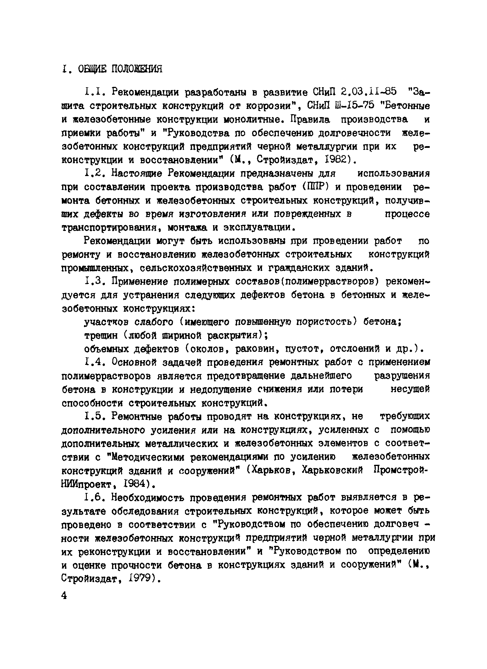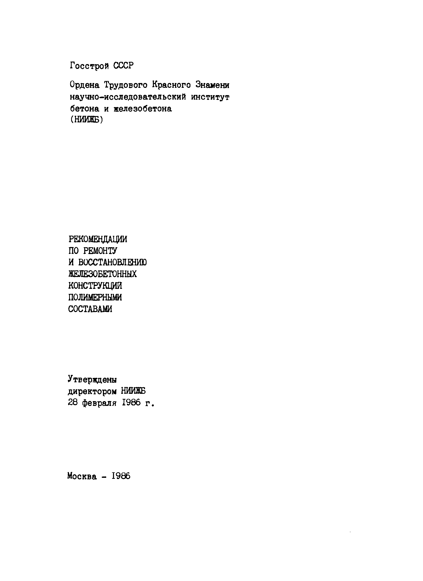 | Оглавление: | Предисловие 1. Общие положения 2. Материалы и технология приготовления полимерных составов 3. Пропитка бетонных конструкций полимерными составами 4. Заделка трещин в железобетонных конструкциях 5. Заделка объемных дефектов 6. Основные правила безопасного ведения технологического процесса 7. Расчет экономической эффективности проведения ремонтно-восстановительных работ Приложение. Справка об использовании научно-технического достижения (НТД) по данным Рекомендациям |