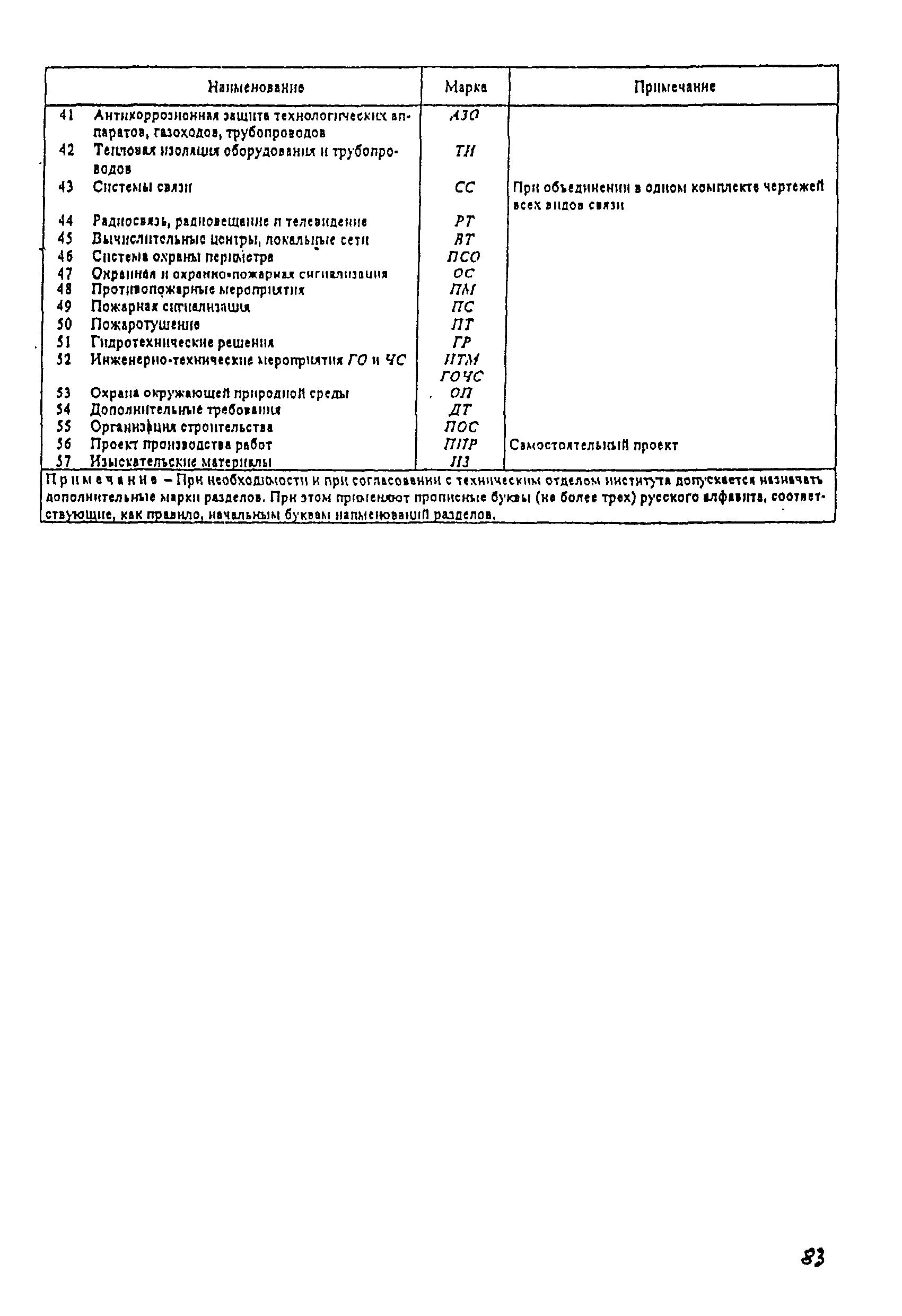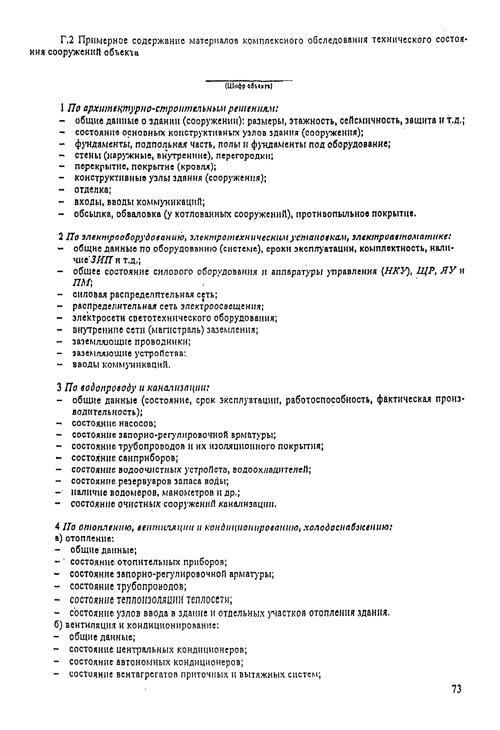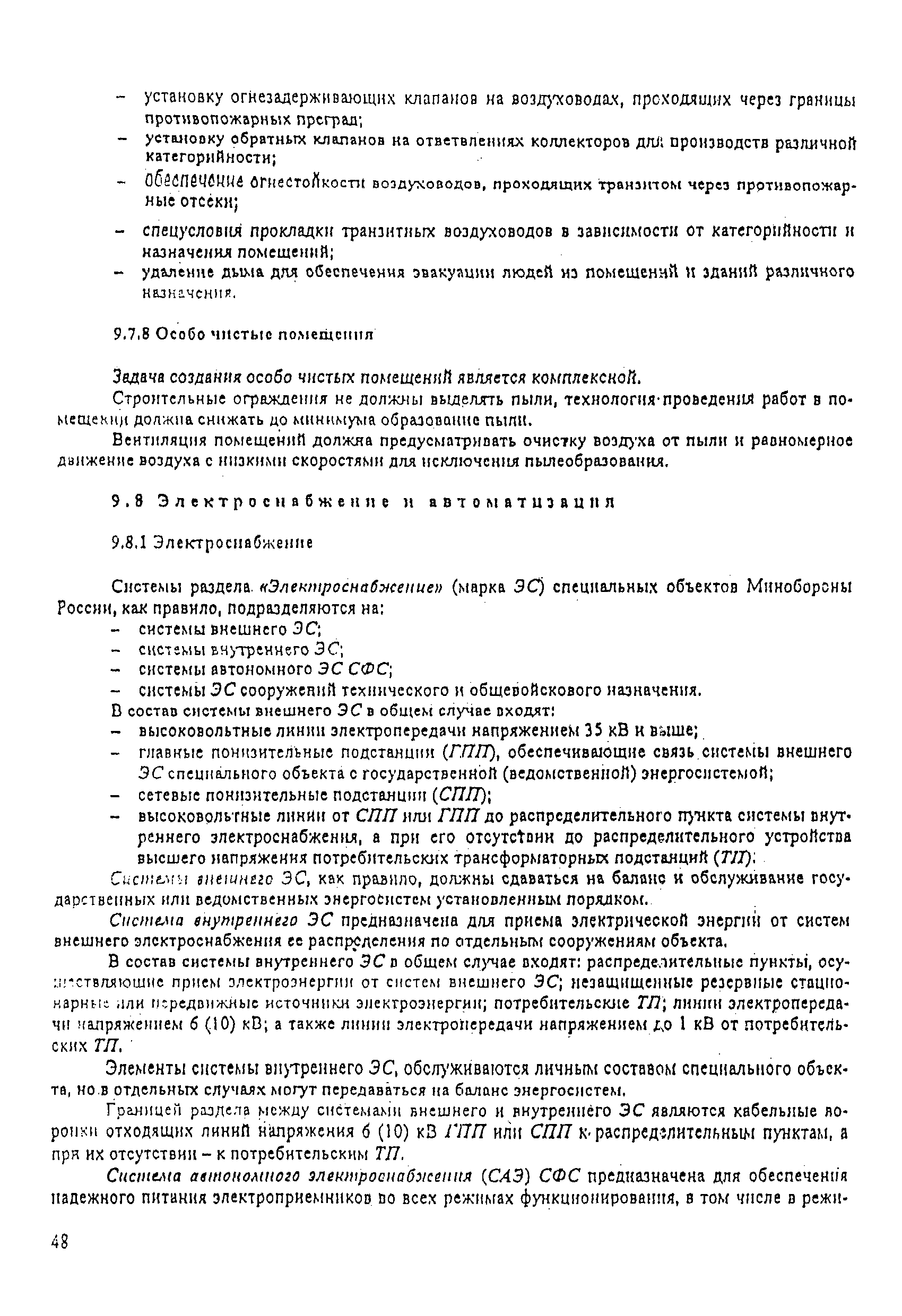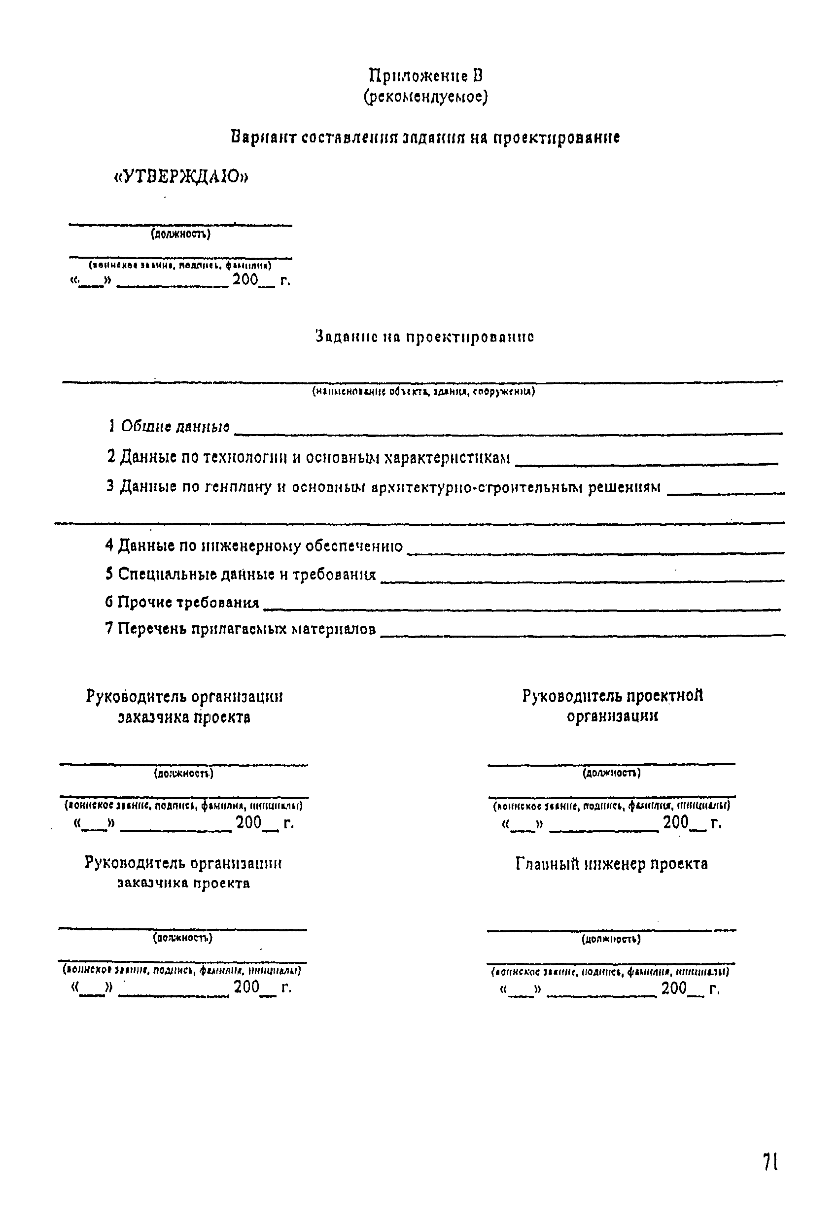 | Оглавление: | 1. Область применения 2. Нормативные ссылки 3. Определения 4. Правила проектирования 4.1 Общие положения 4.2 Положение о главном инженере (главном архитекторе) проекта 4.3 Основные нормативные и руководящие документы 4.4 Основные положения приказа Министра обороны РФ от 08.07.96 № 264 4.5 Состав и содержание обоснований инвестиций 4.6 Виды строительства 4.7 Лицензирование 4.8 Основные требования к проектной и рабочей документации 5. Технология проектирования 5.1 Схема создания объекта строительства 5.2 Последовательность и стадийность проектирования 5.3 Рекогносцировочные работы 5.4 Предпроектная подготовка, сбор исходно-разрешительной документации и исходных данных 5.5 Инженерные изыскания 5.6 Задание на проектирование 5.7 Инженерно-техническое обследование 5.8 Договорная, финансовая, претензионная работа 5.9 Плановая заявка на проектирование и организация процесса проектирования 5.10 Особенности проектирования объектов, возводимых в г. Москве 6. Согласование и экспертиза предпроектной и проектной документации 6.1 Внутренняя экспертиза проектов строительства 6.2 Согласование предпроектной и проектной документации до представления в органы госэкспертизы проектов 6.3 Работа с экспертными органами в процессе рассмотрения предпроектной и проектной документации 6.4 Порядок пересмотра ранее утвержденной документации 7. Авторский надзор 7.1 Организация авторского надзора 7.2 Основные требования АН к качеству выполнения СМР 8. Участие в приемке в эксплуатацию законченных строительством объектов 9. Краткие данные по основным разделам проекта на строительство объекта 9.1 Общая пояснительная записка 9.2 Генеральный план 9.3 Технологические решения 9.4 Архитектурно-строительные решения 9.5 Водоснабжение и канализация 9.6 Теплоснабжение и газоснабжение 9.7 Отопление, вентиляция и кондиционирование 9.8 Электроснабжение и автоматизация 9.9 Требования по противопожарной защите 9,10 Конструкции металлические 9.11 Охрана окружающей природной среды 9.12 Системы связи и сигнализации 9.13 Организация и производство работ 9.14 Состав сметной документации и определение стоимости строительства 9.15 Эффективность инвестиций 9.16 Управление производством, предприятием и организация условий и охраны труда рабочих и служащих 9.17 Инженерно-технические мероприятия гражданской обороны. Мероприятия по предупреждению чрезвычайных ситуаций 9.18 Дополнительные требования 9.19 Охрана и оборона объекта Приложение А. Перечень сокращений слов и их аббревиатур Приложение Б. Акт рекогносцировочных работ Приложение В. Вариант составления задания на проектирование Приложение Г. Акт обследования технического состояния объекта Приложение Е. Марки и шифры разделов проекта и текстовых документов Приложение Ж. Укрупненные показатели стоимости строительства (удельные показатели капитальных вложений) Приложение И. Библиография |