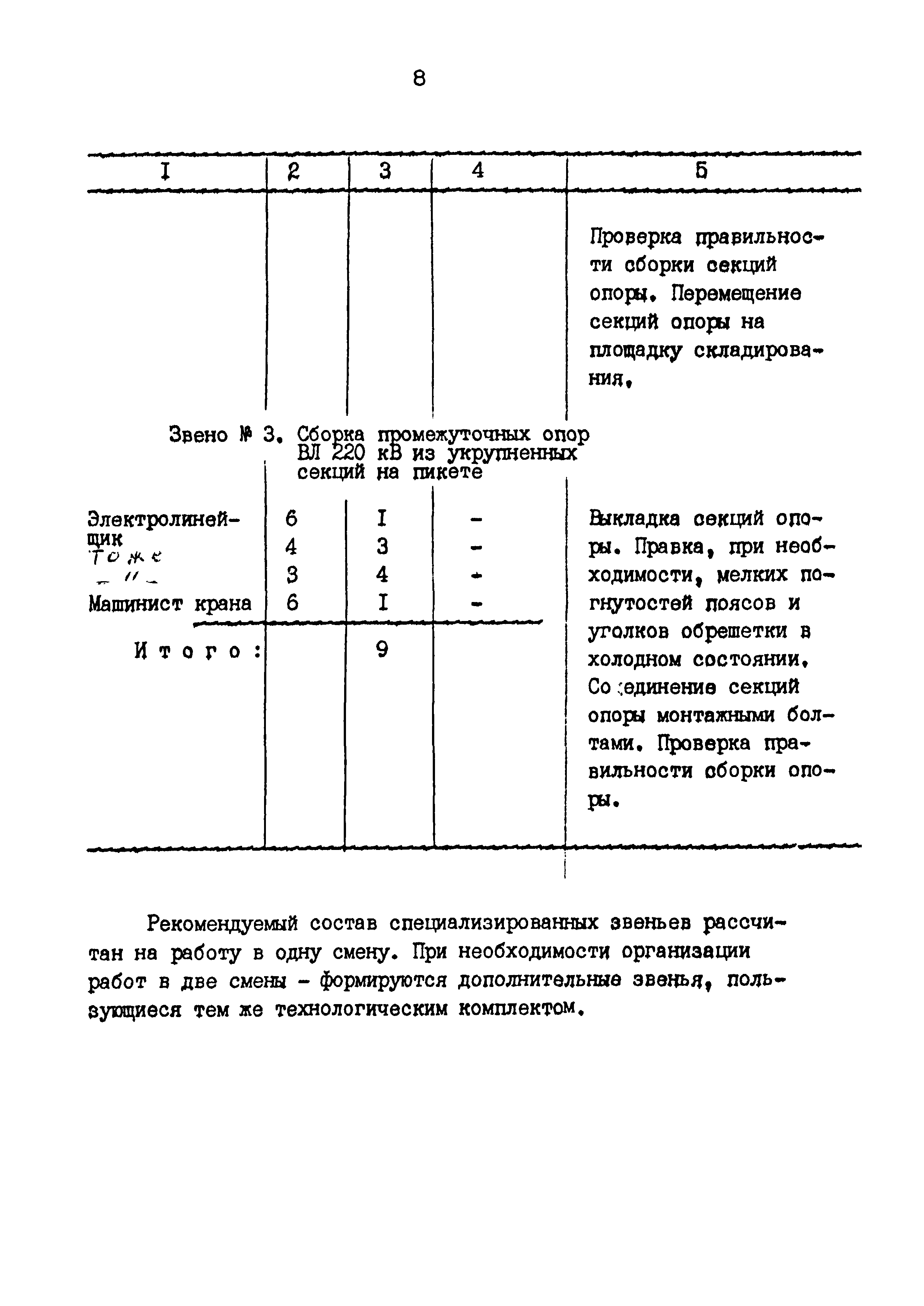 | Оглавление: | Введение 1. Общая часть 1.1 Назначение и область применения 1.2 Краткое описание технологии работ 1.3 Технико-экономические показатели 2. Численно-квалификационный и профессиональный состав специализированных звеньев и выполняемые ими трудовые процессы 3. Номенклатура средств механизации, оборудования, приспособлений и другой необходимой технологической оснастки, включенных в нормокомплекты 4. Состав нормокомплектов для оснащения специализированных звеньев с учетом условий выполнения работ |