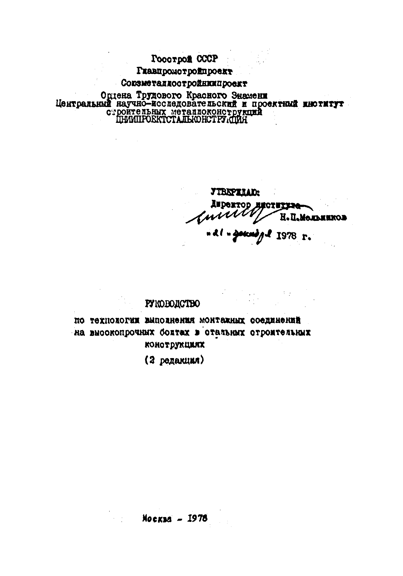 | Утверждён: | 21.12.1978 ЦНИИпроектстальконструкция (TsNIIprojectstalkonstruktsiya ) |