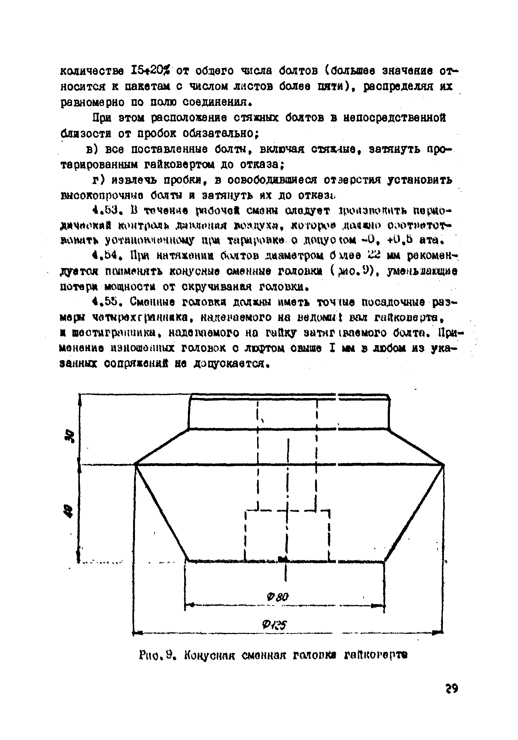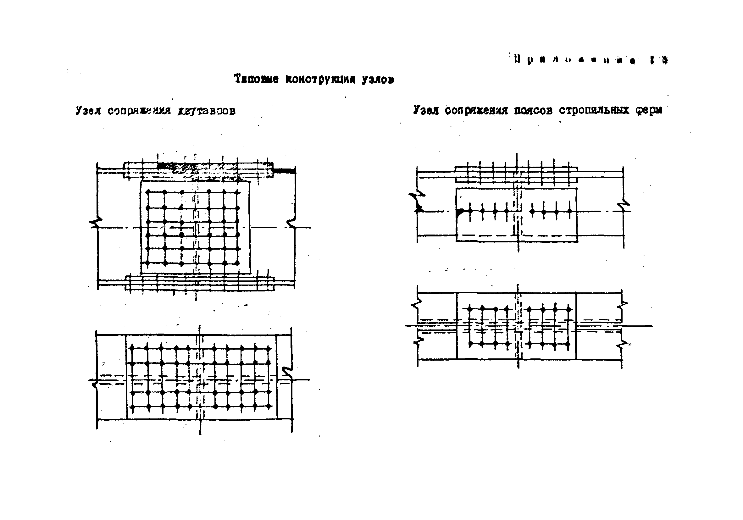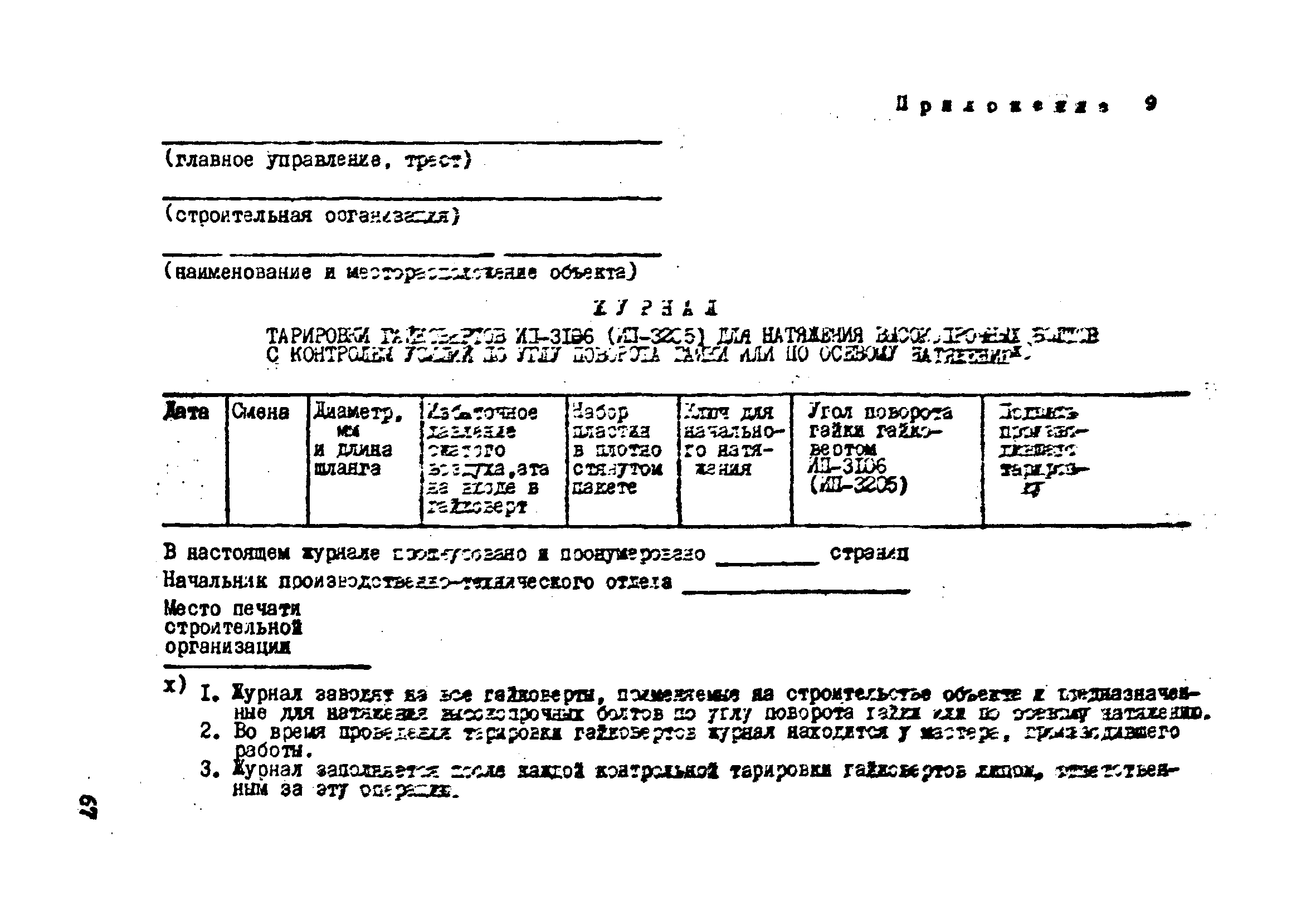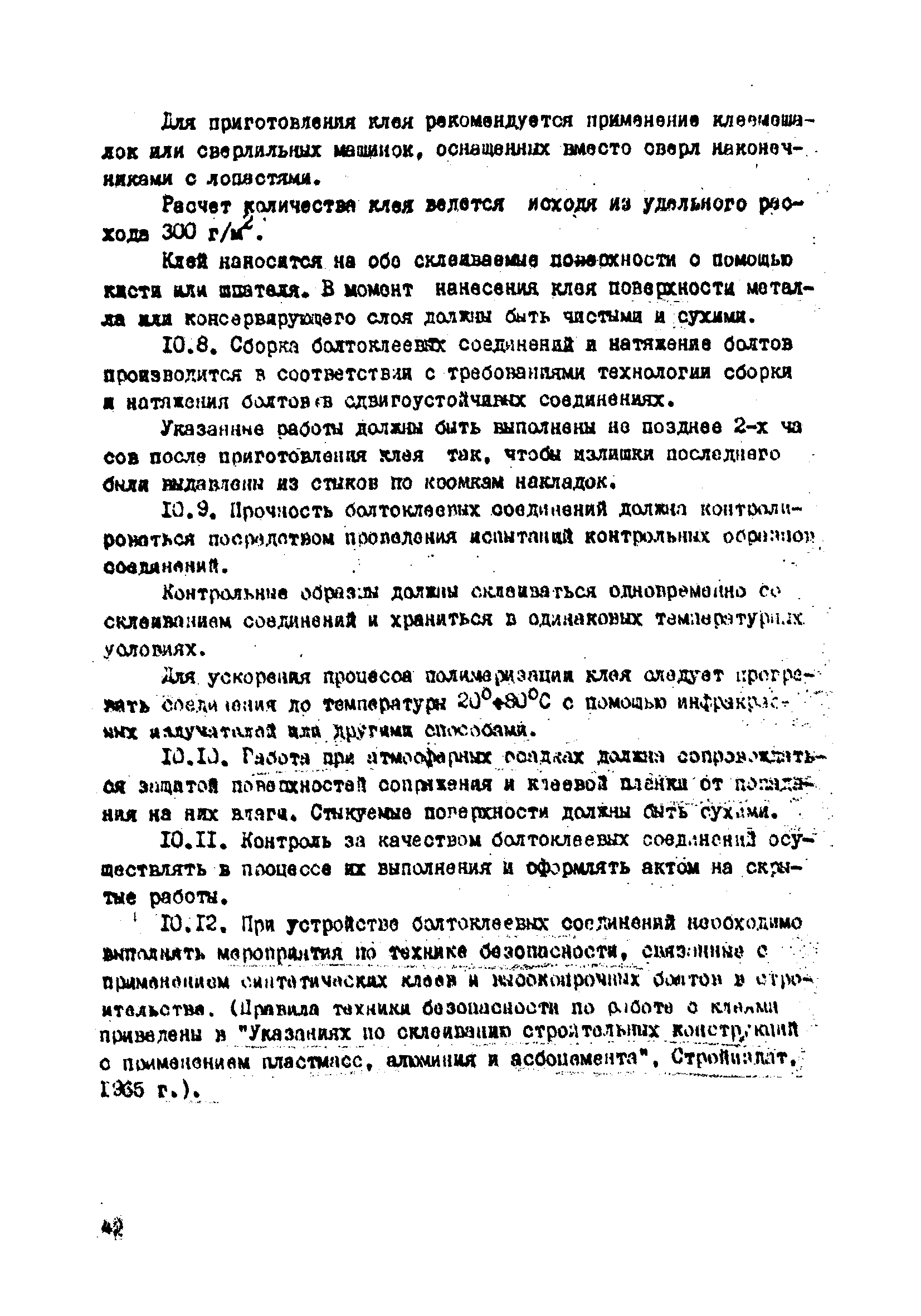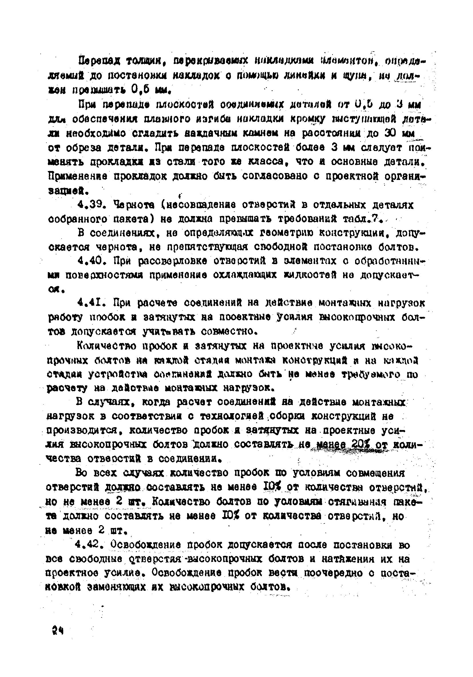 | Оглавление: | 1. Общие положения 2. Материалы, изделия и условия их применения 3. Материалы для приготовления клеев и покрытий контактных поверхностей 4. Технология выполнения сдвигоустойчивых соединений Требования к элементам конструкций Подготовка контактных поверхностей элементов и деталей Пескоструйная обработка Газопламенная обработка Поверхности без специальной обработки Поверхности с клеефрикционными покрытиями Подготовка высокопрочных болтов, гаек и шайб Сборка соединений на высокопрочных болтах Натяжение высокопрочных болтов Натяжение болтов с регулированием усилий гайковертов, тарированием по углу поворота гайки Регулирование усилий натяжения высокопрочных болтов М24 пневматическим гайковертом ИП3106 (ИП3205) по углу поворота гайки Натяжение высокопрочных болтов электрическими ударными гайковертами ИЭ-3112 с регулированием усилий по количеству ударов Натяжение высокопрочных болтов с регулированием усилий по моменту закручивания 5. Воздухоснабжение работ 6. Приемка и герметизация соединений 7. Особенности технологии выполнения соединений с несущими высокопрочными болтами 8. Особенности технологии выполнения болтосварных соединений 9. Особенности технологии выполнения болтоклепанных соединений 10. Особенности технологии выполнения болтоклеевых соединений 11. Типовой технологический процесс сборки соединений на высокопрочных болтах 12. Техника безопасности и охрана труда Приложения |