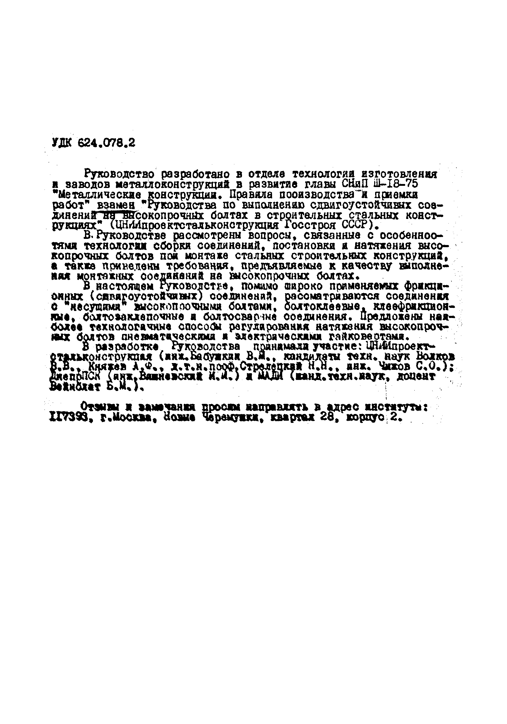 | Название рус.: | Руководство по технологии выполнения монтажных соединений на высокопрочных болтах в стальных строительных конструкциях |