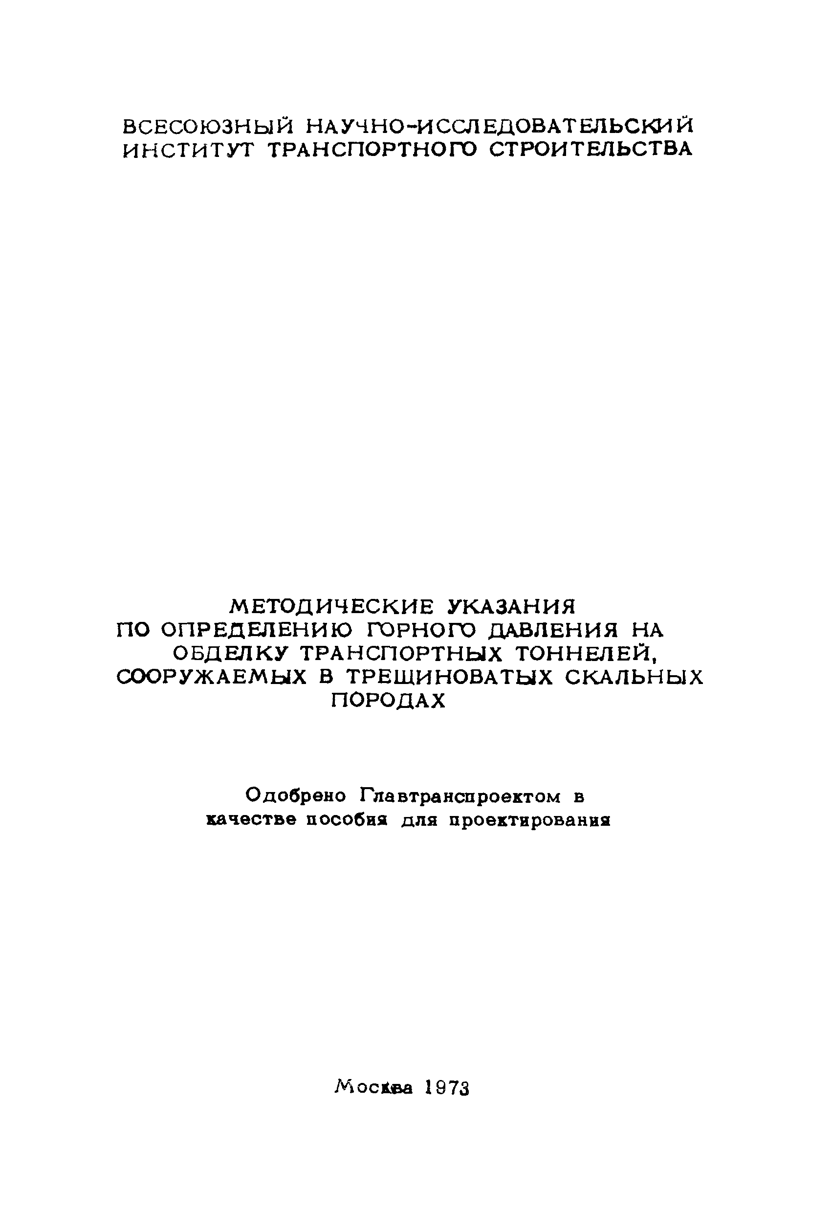 | Название рус.: | Методические указания по определению горного давления на обделку транспортных тоннелей, сооружаемых в трещиноватых скальных породах |