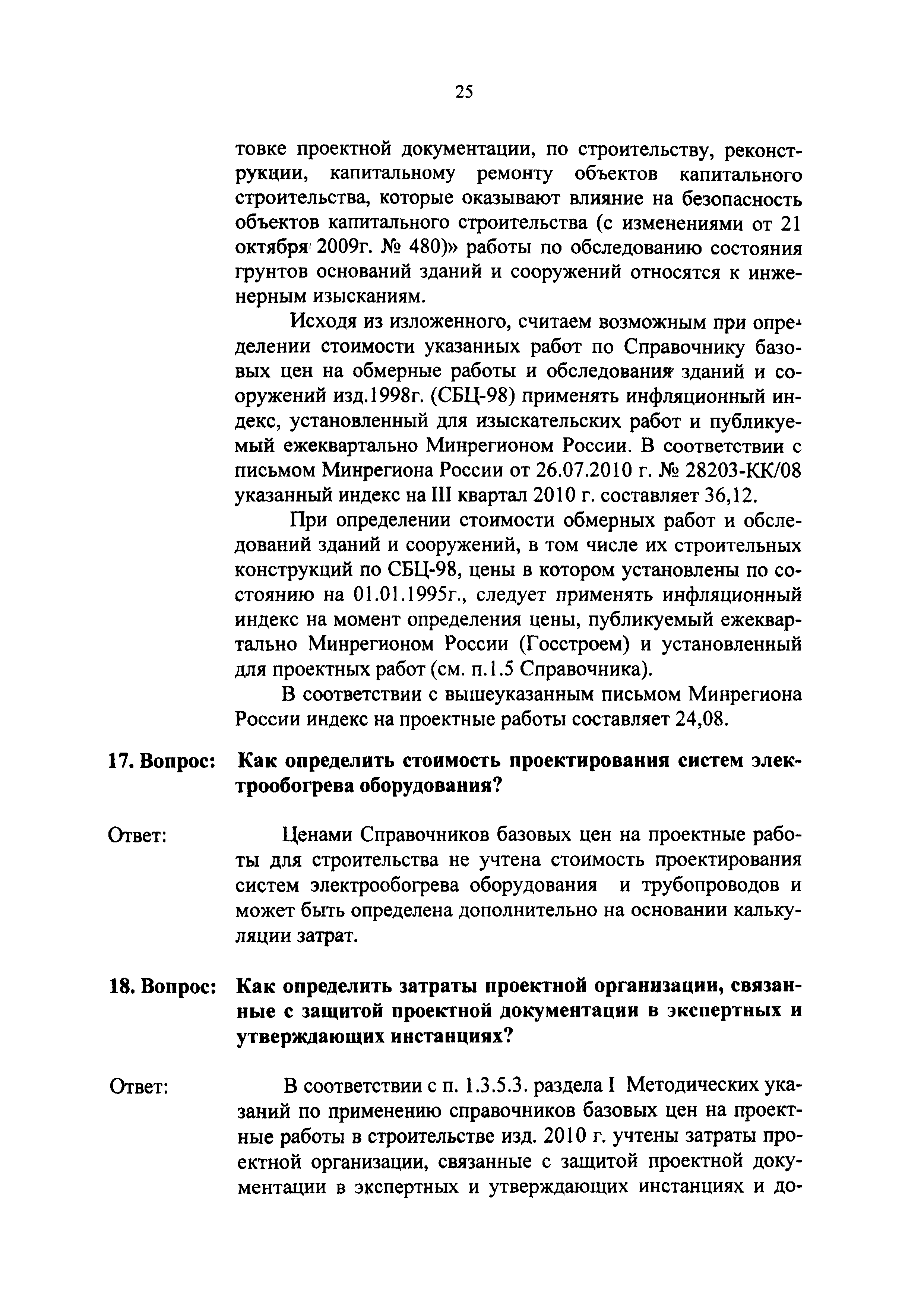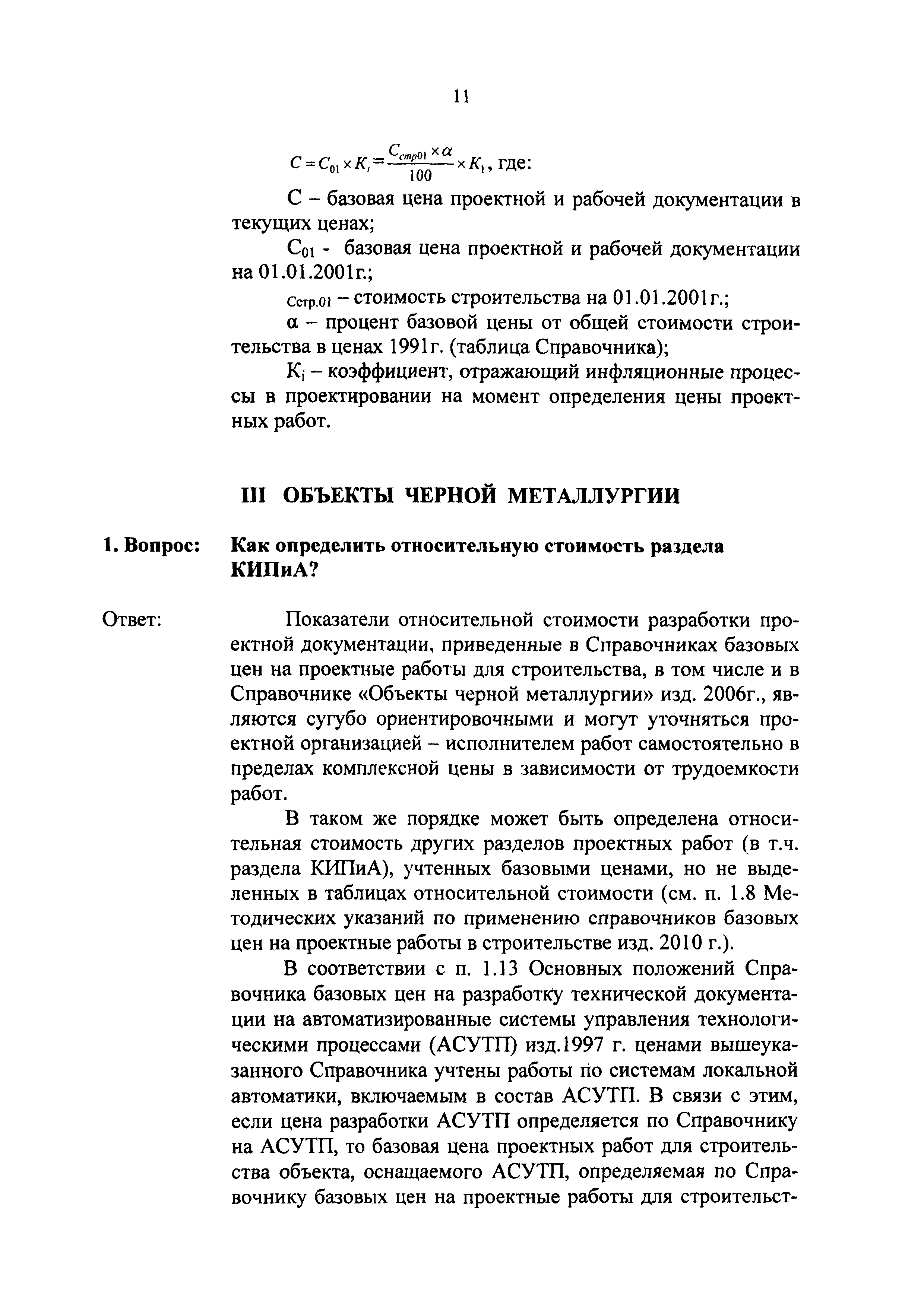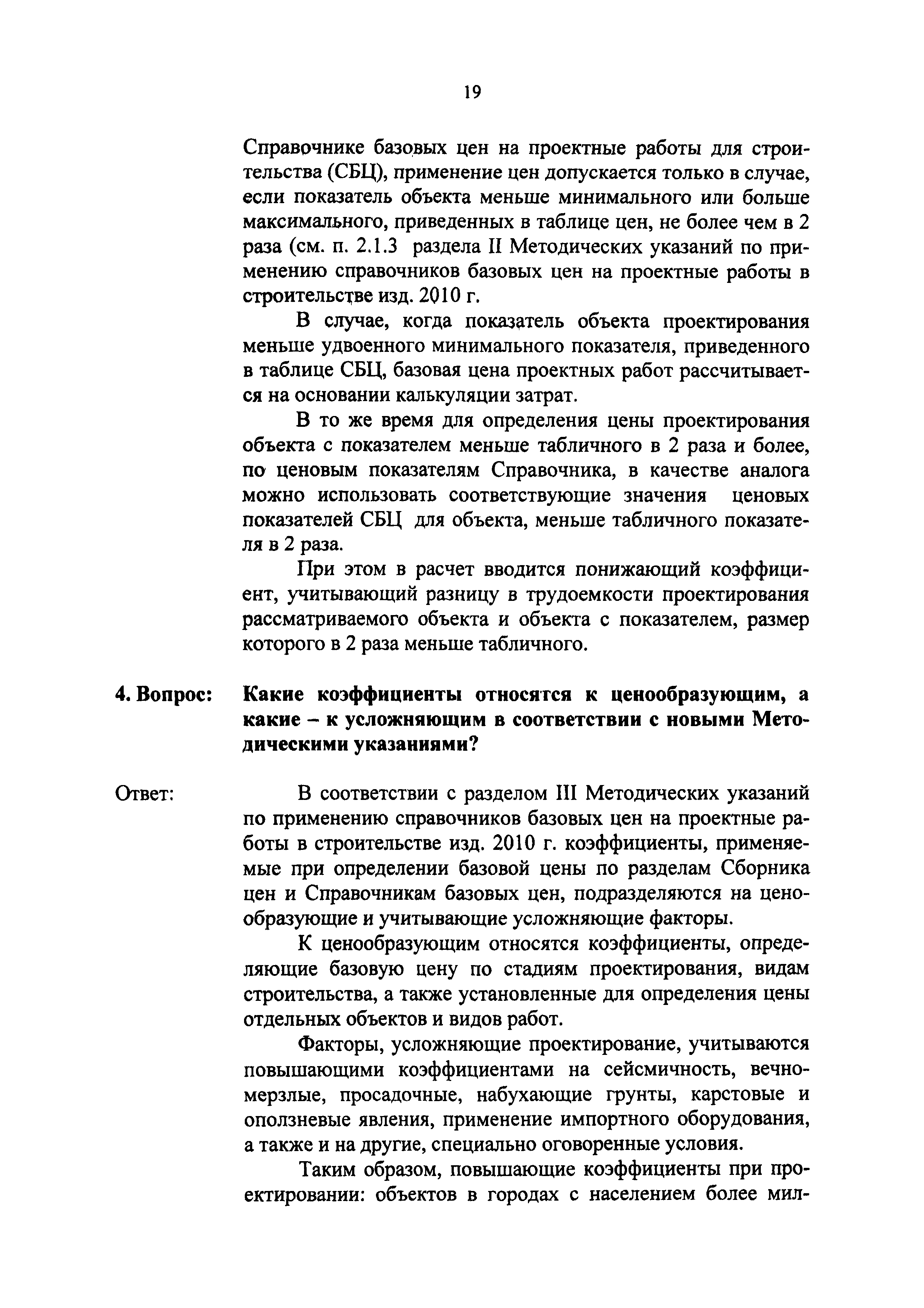 | Область применения: | Сборник является продолжением материалов, изданных в 2002 и 2004 - 2009 годах, содержащих разъяснения по применению Сборника цен и Справочников базовых цен на проектные работы для строительства. В нем даны разъяснения по определению базовой цены объектов жилищно-гражданского назначения, энергетики, черной металлургии, водоснабжения и канализации, автомобильных дорог общего пользования и городских инженерных сооружений и коммуникаций, искусственных сооружений, объектов газооборудования и газоснабжения промышленных предприятий, зданий и сооружений, наружного освещения, магистрального транспорта нефти, нефтеперерабатывающей и нефтехимической промышленности, а также ответы на другие вопросы по определению стоимости проектных или связанных с проектированием работ, наиболее часто встречающихся в письмах организаций, применяющих соответствующие ценовые документы. |
