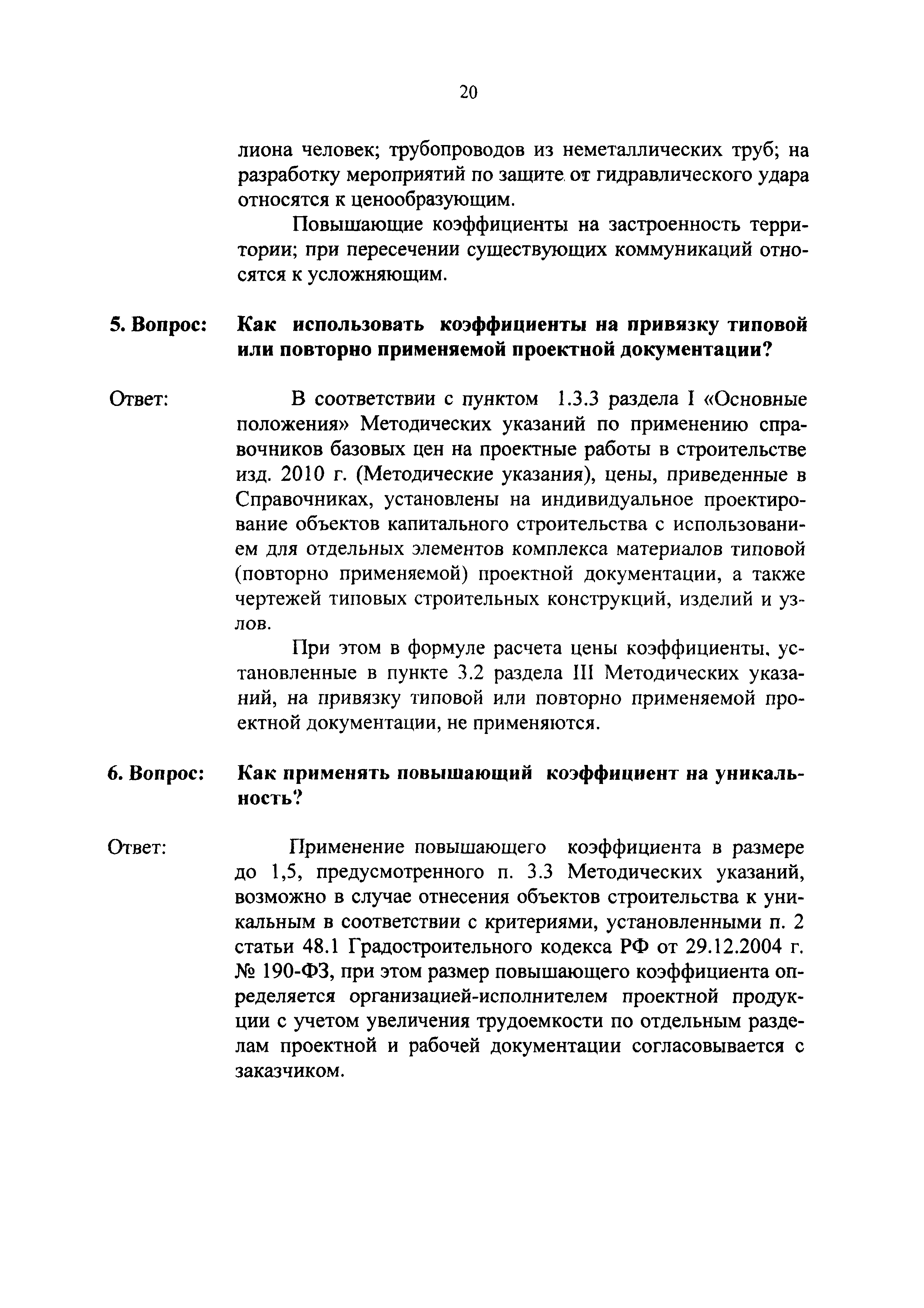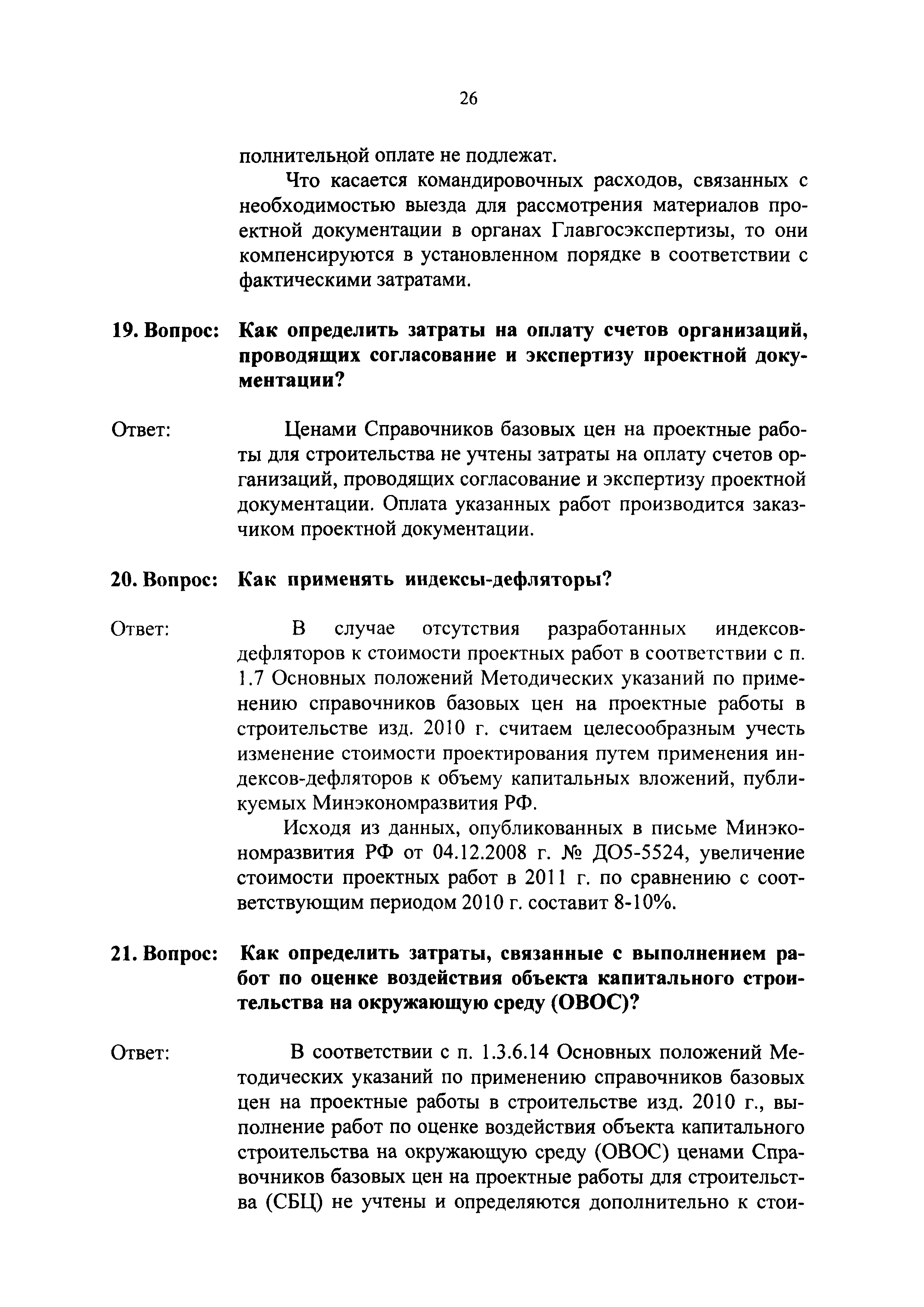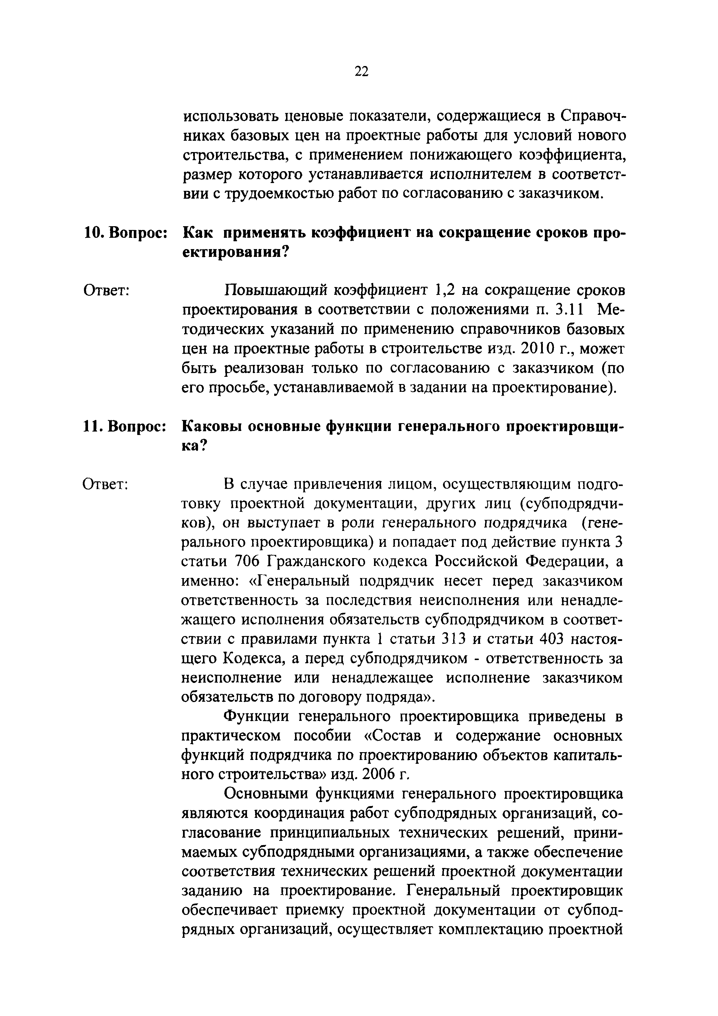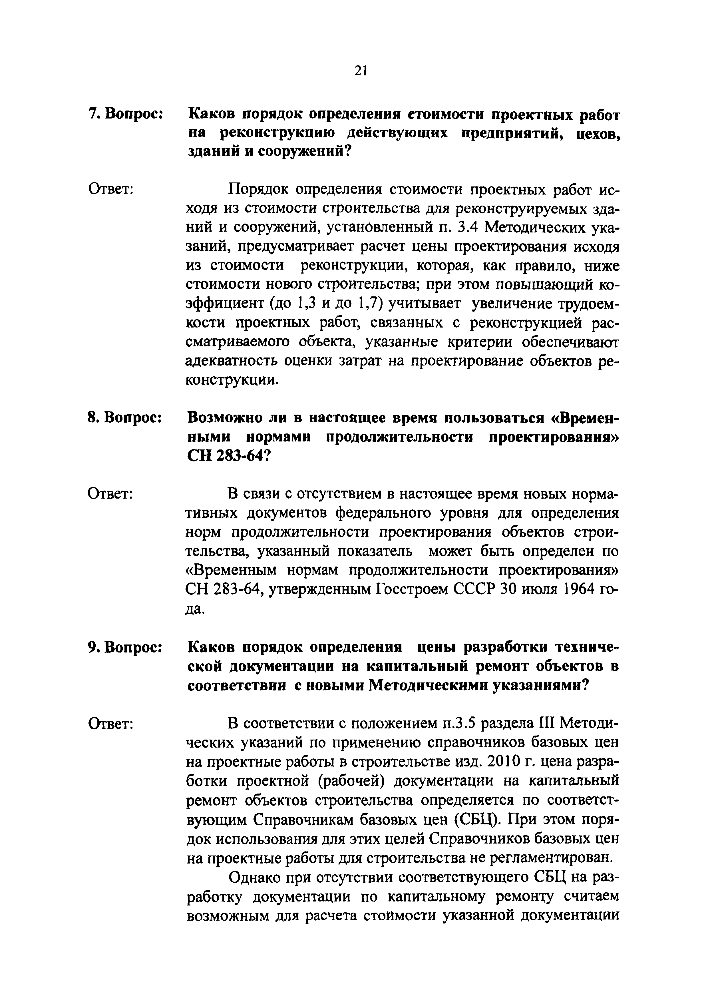 | Область применения: | Сборник является продолжением материалов, изданных в 2002 и 2004 - 2009 годах, содержащих разъяснения по применению Сборника цен и Справочников базовых цен на проектные работы для строительства. В нем даны разъяснения по определению базовой цены объектов жилищно-гражданского назначения, энергетики, черной металлургии, водоснабжения и канализации, автомобильных дорог общего пользования и городских инженерных сооружений и коммуникаций, искусственных сооружений, объектов газооборудования и газоснабжения промышленных предприятий, зданий и сооружений, наружного освещения, магистрального транспорта нефти, нефтеперерабатывающей и нефтехимической промышленности, а также ответы на другие вопросы по определению стоимости проектных или связанных с проектированием работ, наиболее часто встречающихся в письмах организаций, применяющих соответствующие ценовые документы. |