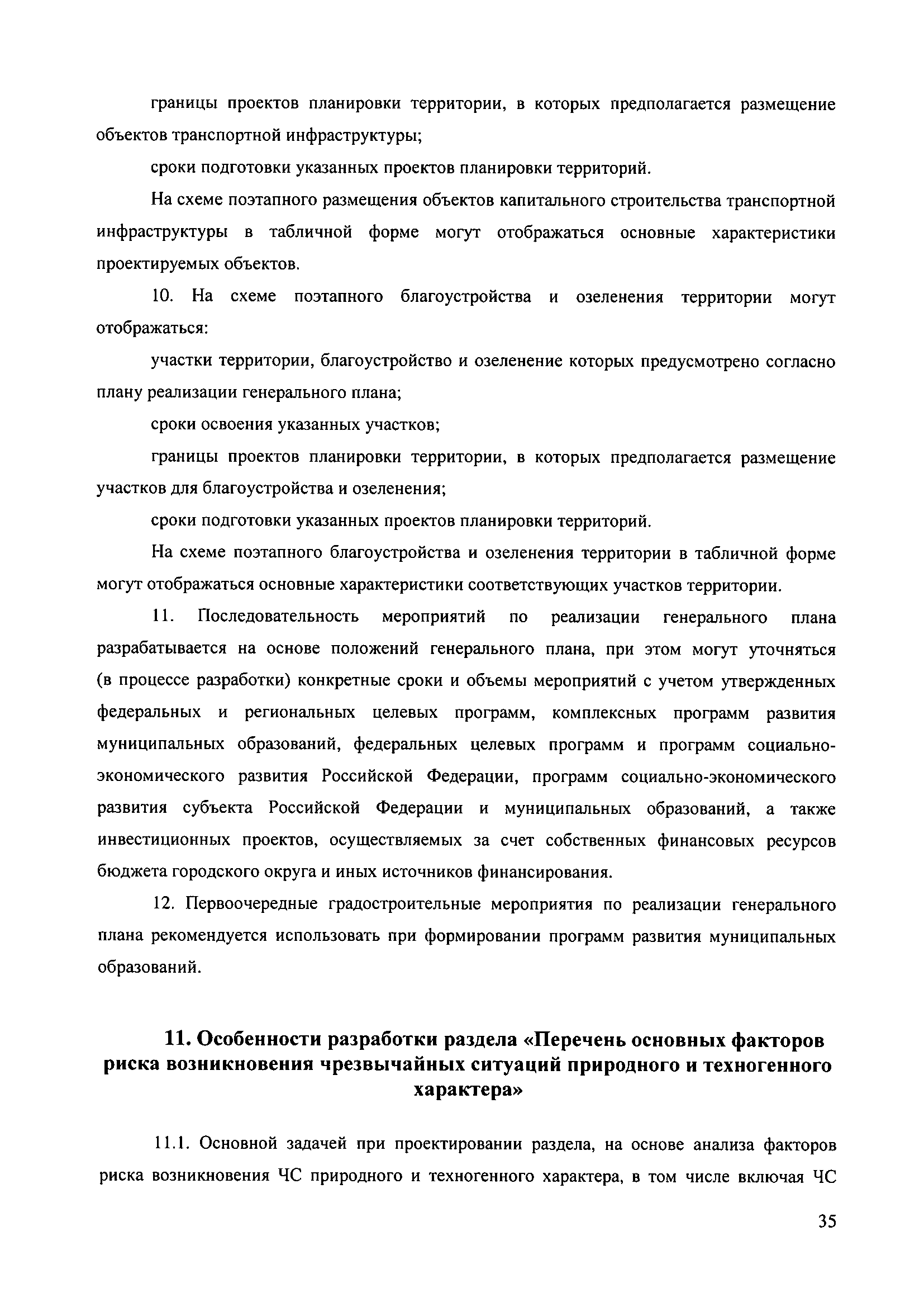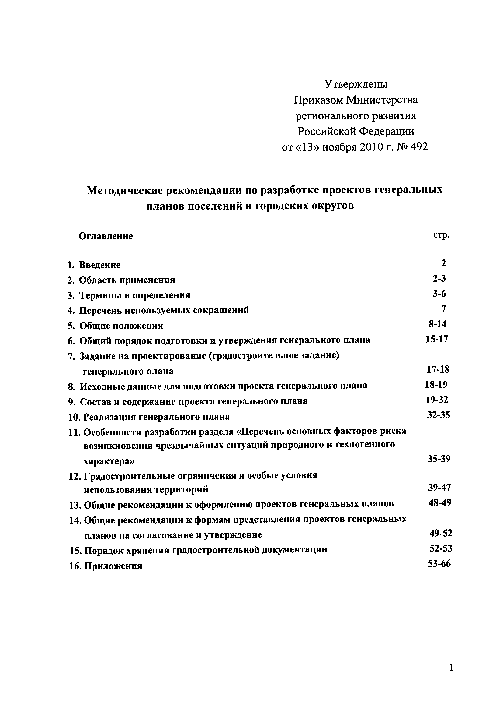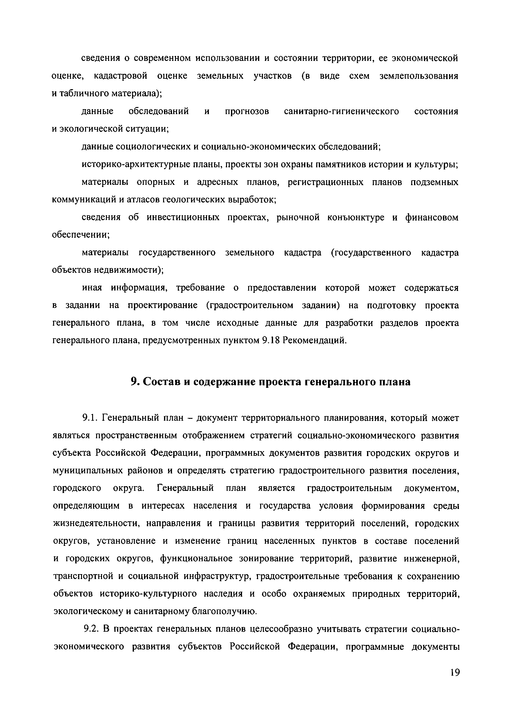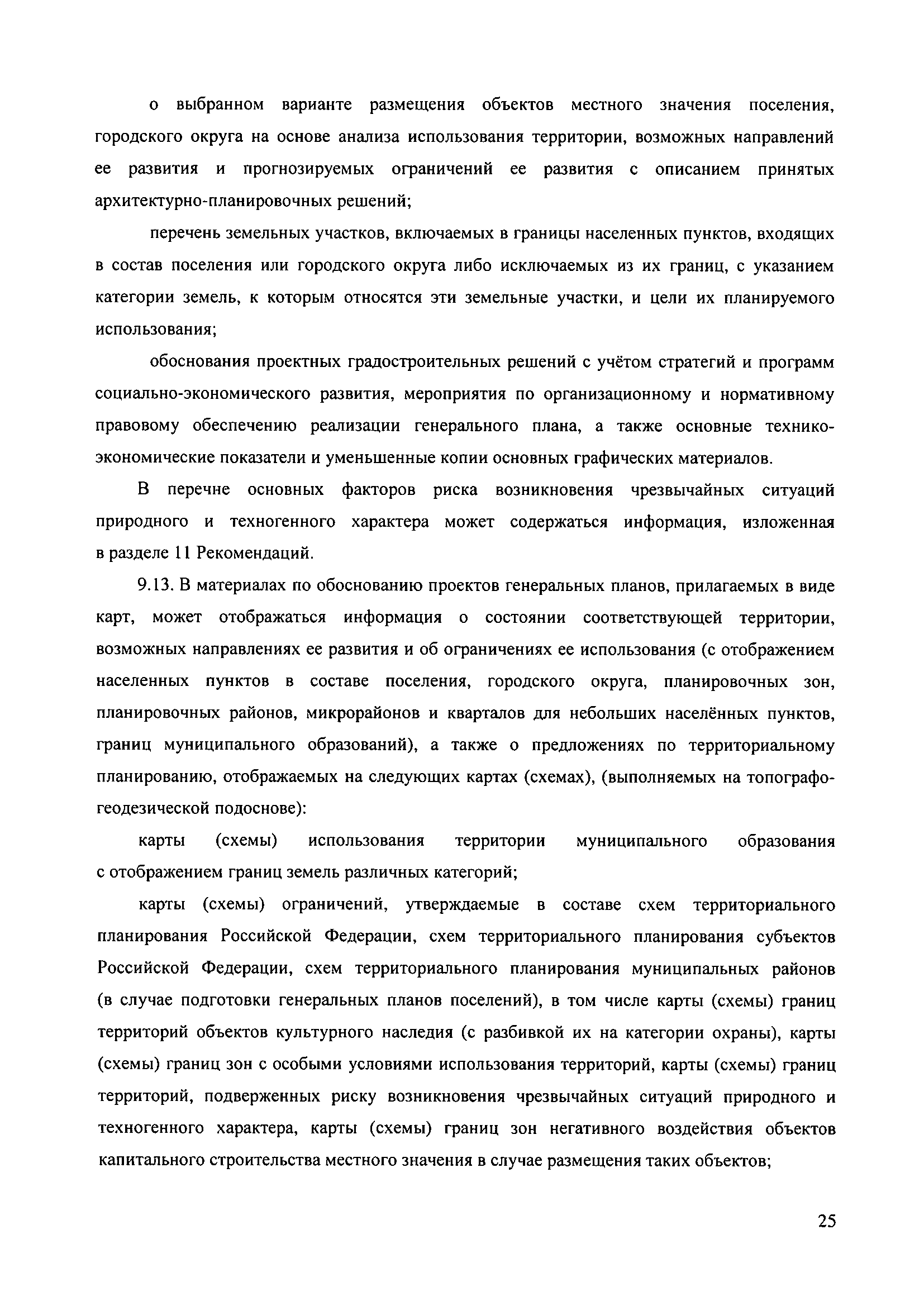 Методические рекомендации по разработке проектов генеральных планов поселений и городских округов| Статус: | не действует | | Название рус.: | Методические рекомендации по разработке проектов генеральных планов поселений и городских округов | | Дата добавления в базу: | 01.09.2013 | | Дата актуализации: | 01.01.2021 | | Дата введения: | 13.11.2010 | | Дата окончания срока действия: | 25.05.2011 | | Область применения: | Рекомендации предназначены для использования организациями независимо от организационно-правовой формы, а также индивидуальными предпринимателями, осуществляющими деятельность по разработке градостроительной документации на профессиональной основе, федеральными органами исполнительной власти, органами исполнительной власти субъектов Российской Федерации, органами местного самоуправления, осуществляющими в пределах своих полномочий планирование развития территорий и использование земель для градостроительной деятельности, а также органами, координирующими и контролирующими осуществление градостроительной деятельности. | | Оглавление: | 1. Введение 2. Область применения 3. Термины и определения 4. Перечень используемых сокращений 5. Общие положения 6. Общий порядок подготовки и утверждения генерального плана 7. Задание на проектирование (градостроительное задание) генерального плана 8. Исходные данные для подготовки проекта генерального плана 9. Состав и содержание проекта генерального плана 10. Реализация генерального плана 11. Особенности разработки раздела «Перечень основных факторов риска возникновения чрезвычайных ситуаций природного и техногенного характера» 12. Градостроительные ограничения и особые условия использования территорий 13. Общие рекомендации к оформлению проектов генеральных планов 14. Общие рекомендации к формам представления проектов генеральных планов на согласование и утверждение 15. Порядок хранения градостроительной документации 16. Приложения | | Утверждён: | 13.11.2010 Минрегион России (492)