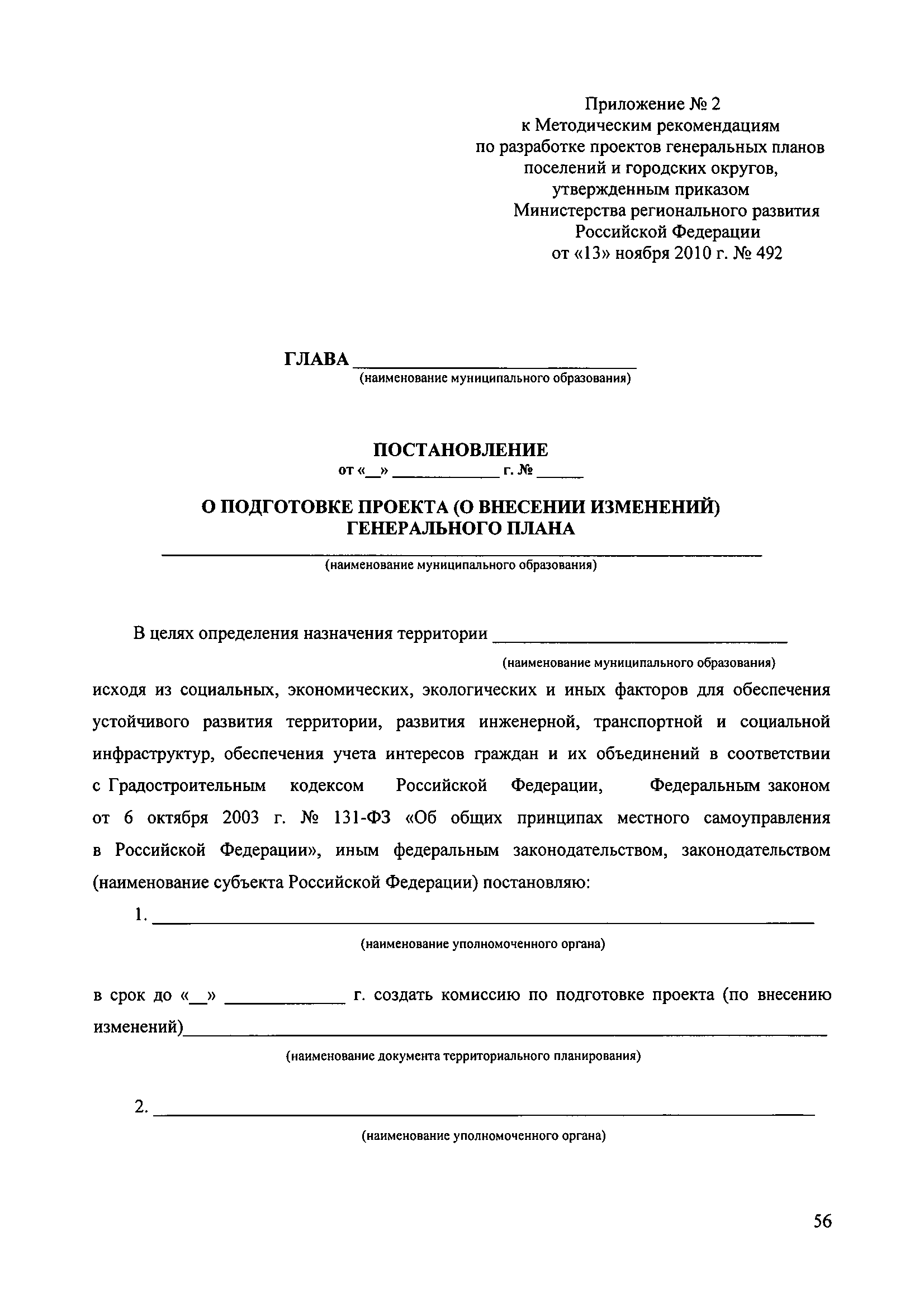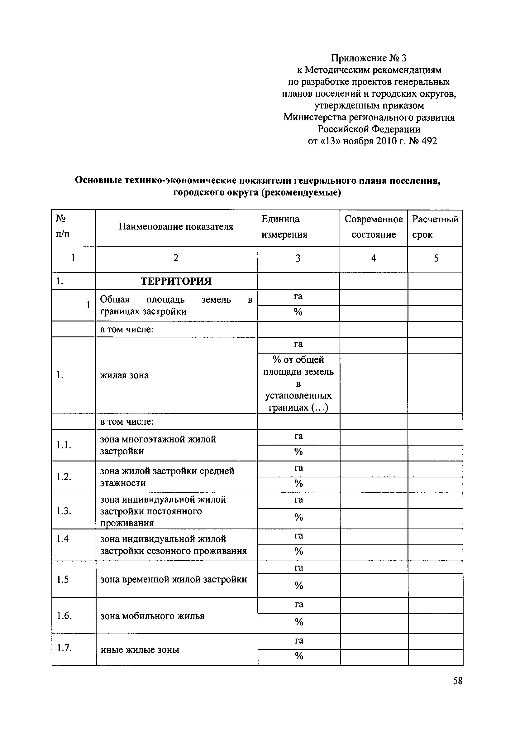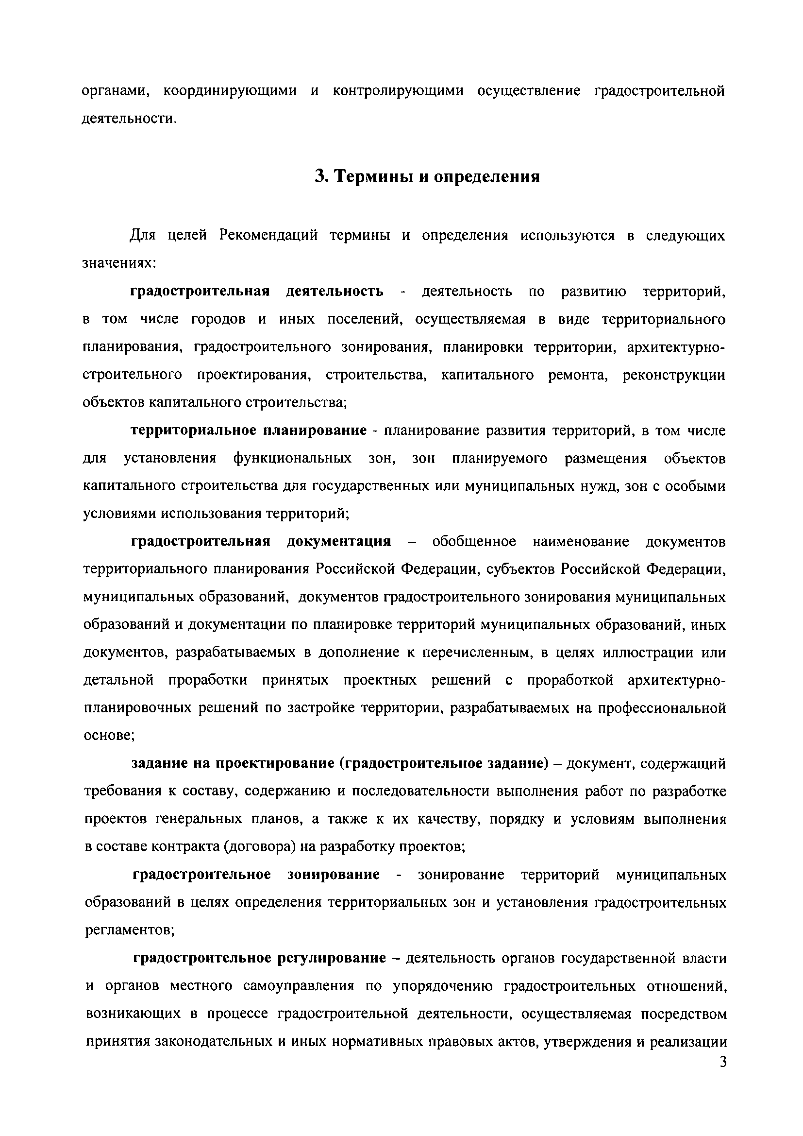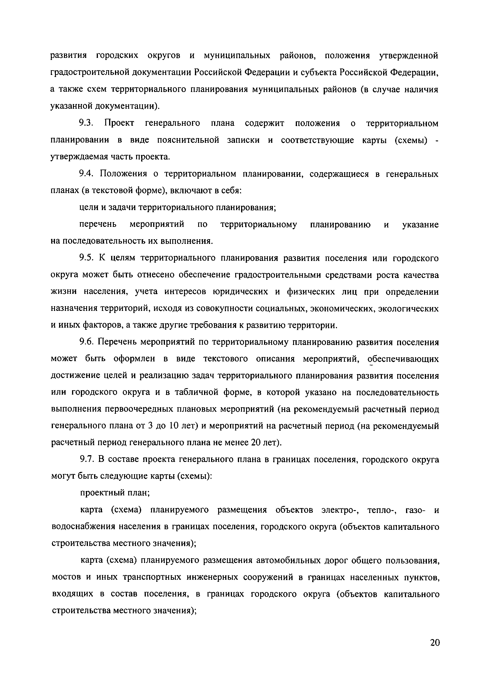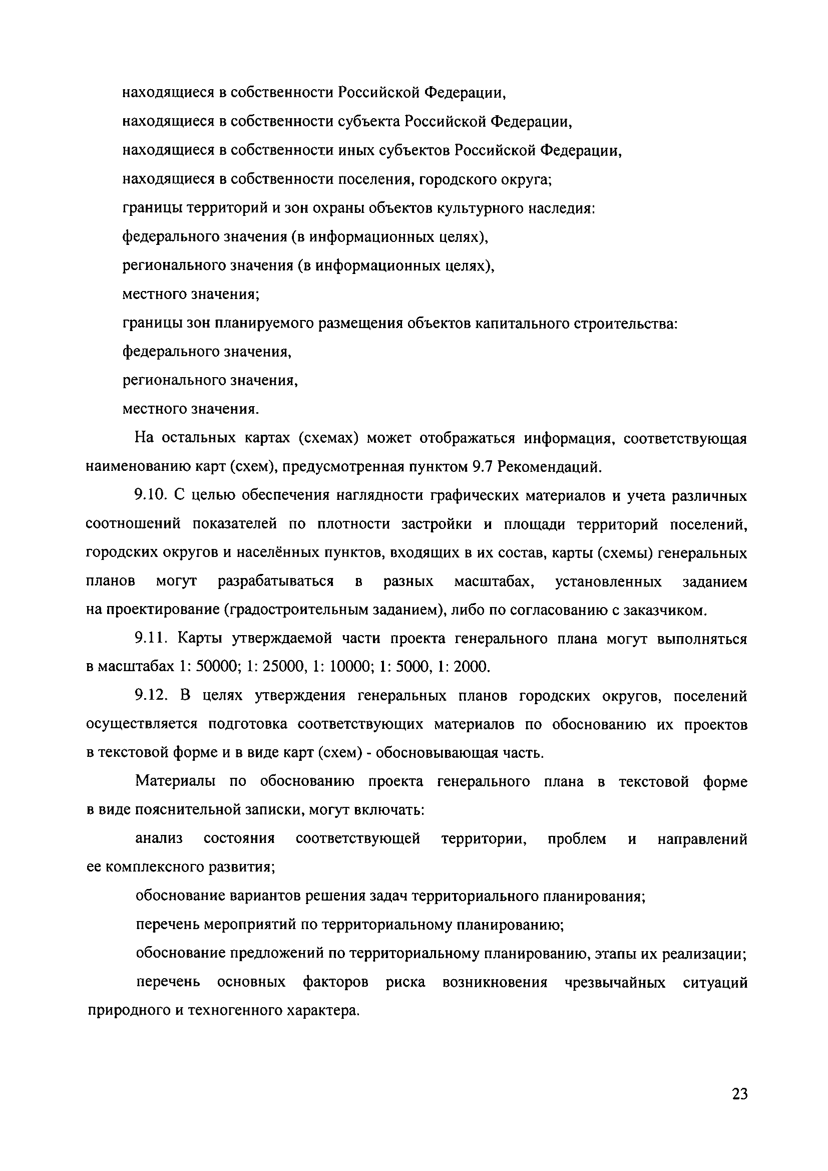 Методические рекомендации по разработке проектов генеральных планов поселений и городских округов| Статус: | не действует | | Название рус.: | Методические рекомендации по разработке проектов генеральных планов поселений и городских округов | | Дата добавления в базу: | 01.09.2013 | | Дата актуализации: | 01.01.2021 | | Дата введения: | 13.11.2010 | | Дата окончания срока действия: | 25.05.2011 | | Область применения: | Рекомендации предназначены для использования организациями независимо от организационно-правовой формы, а также индивидуальными предпринимателями, осуществляющими деятельность по разработке градостроительной документации на профессиональной основе, федеральными органами исполнительной власти, органами исполнительной власти субъектов Российской Федерации, органами местного самоуправления, осуществляющими в пределах своих полномочий планирование развития территорий и использование земель для градостроительной деятельности, а также органами, координирующими и контролирующими осуществление градостроительной деятельности. | | Оглавление: | 1. Введение 2. Область применения 3. Термины и определения 4. Перечень используемых сокращений 5. Общие положения 6. Общий порядок подготовки и утверждения генерального плана 7. Задание на проектирование (градостроительное задание) генерального плана 8. Исходные данные для подготовки проекта генерального плана 9. Состав и содержание проекта генерального плана 10. Реализация генерального плана 11. Особенности разработки раздела «Перечень основных факторов риска возникновения чрезвычайных ситуаций природного и техногенного характера» 12. Градостроительные ограничения и особые условия использования территорий 13. Общие рекомендации к оформлению проектов генеральных планов 14. Общие рекомендации к формам представления проектов генеральных планов на согласование и утверждение 15. Порядок хранения градостроительной документации 16. Приложения | | Утверждён: | 13.11.2010 Минрегион России (492)