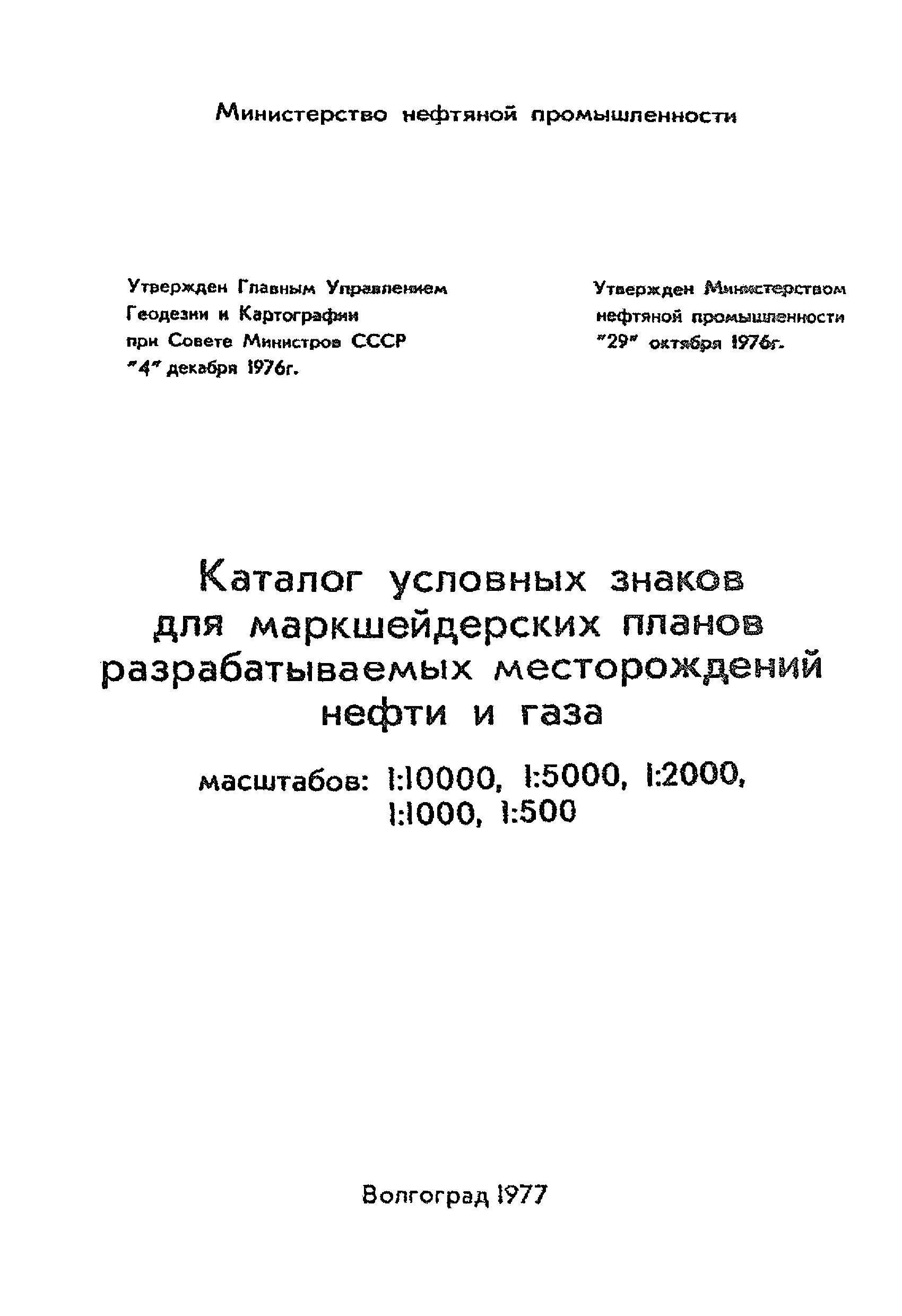 | | Утверждён: | 29.10.1976 Министерство нефтяной промышленности СССР (USSR Ministry of the Petroleum Industry ) 04.12.1976 Главное управление геодезии и картографии при Совете Министров СССР (National Administration for Geodesy and Cartography at the USSR Cabinet of Ministers )