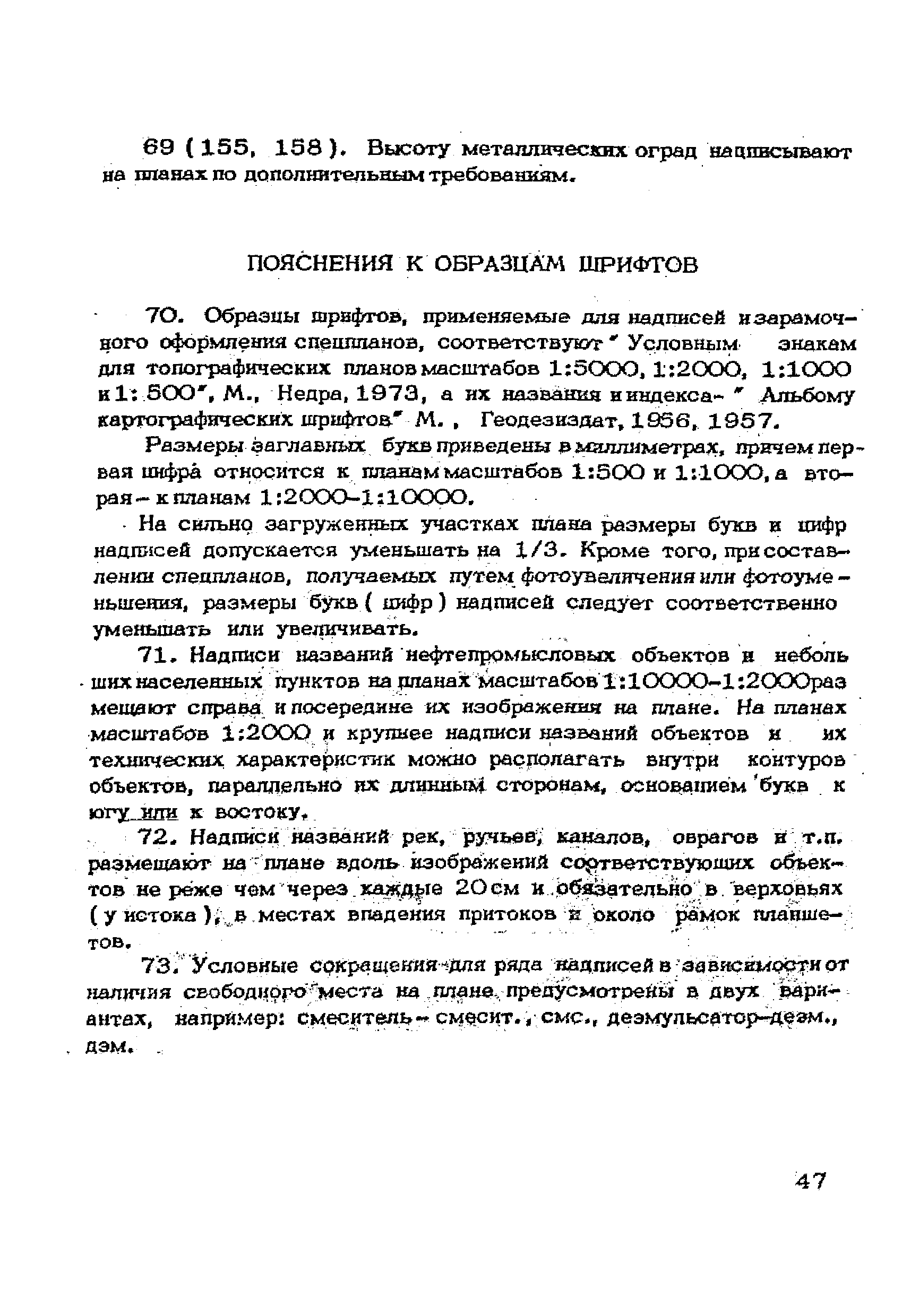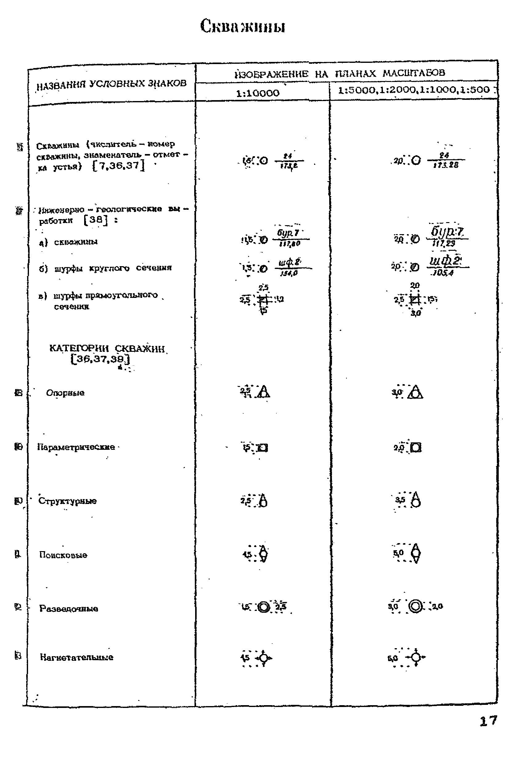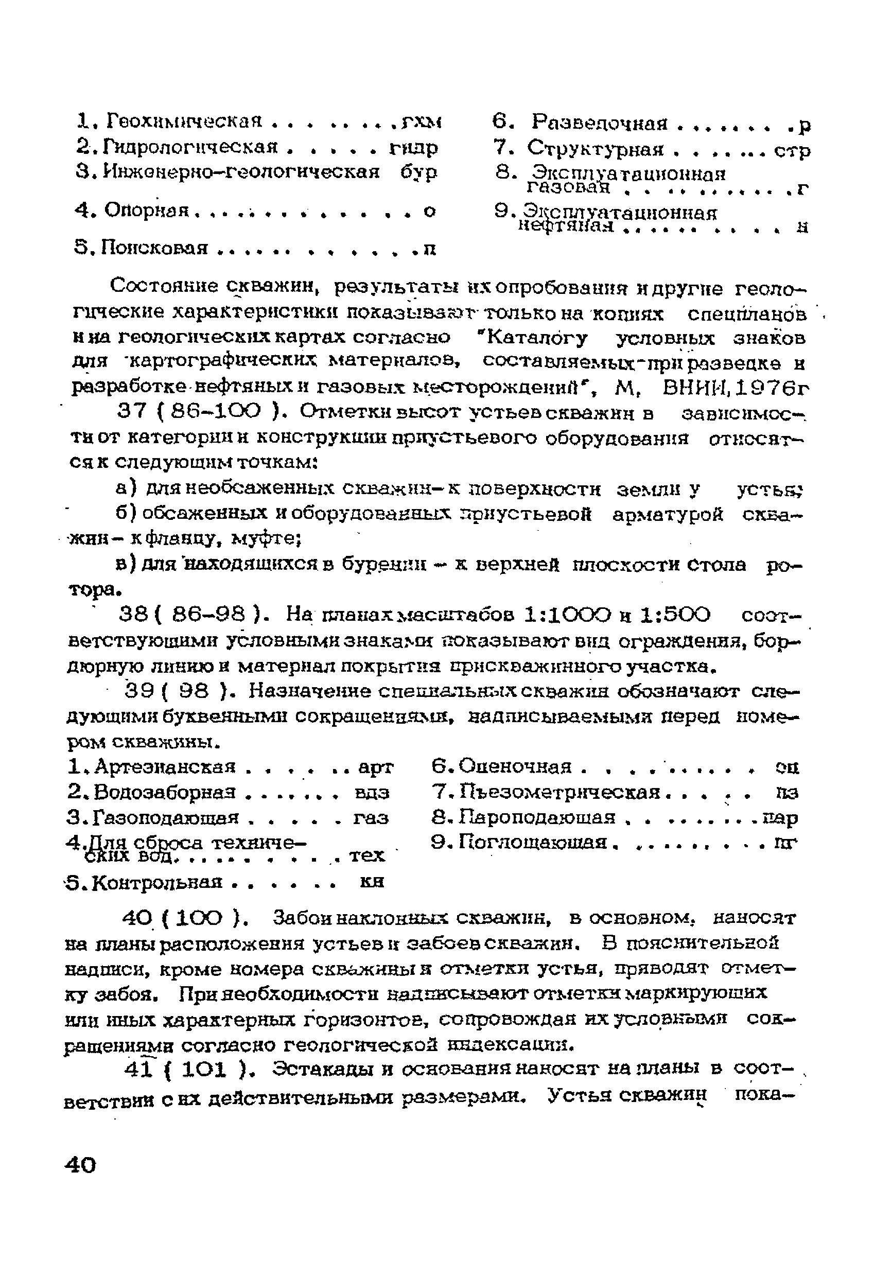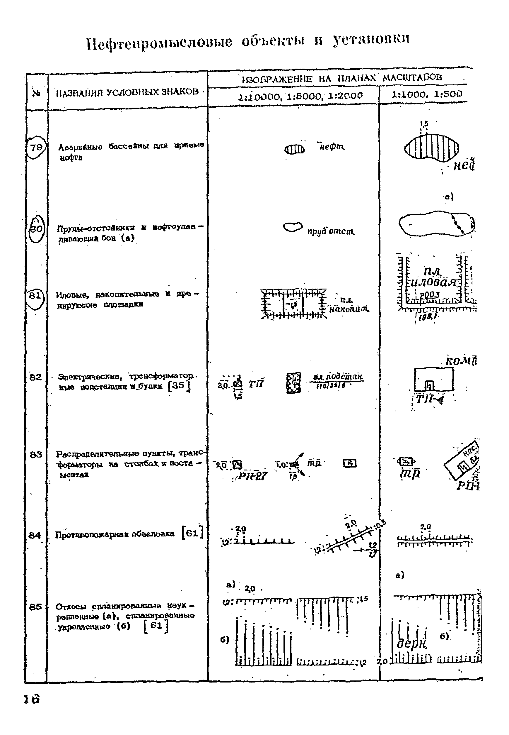 Каталог условных знаков для маркшейдерских планов разрабатываемых месторождений нефти и газа масштабов: 1:10000, 1:5000, 1:2000, 1:1000, 1:500| Статус: | не установлен срок действия | | Название рус.: | Каталог условных знаков для маркшейдерских планов разрабатываемых месторождений нефти и газа масштабов: 1:10000, 1:5000, 1:2000, 1:1000, 1:500 | | Дата добавления в базу: | 01.09.2013 | | Дата актуализации: | 01.01.2021 | | Область применения: | Условные знаки разработаны для составления и оформления маркшейдерских (специальных) планов нефтегазовых месторождений, обустроенных по различным технологическим схемам сбора, транспорта и подготовки нефти, газа и воды. | | Оглавление: | Пояснения к условным знакам Общие положения Пояснения к знакам опорных пунктов Пояснения к знакам зданий, построек и их частей Пояснения к знакам нефтепромысловых аппаратов и сооружений Пояснения к знакам нефтепромысловых объектов и установок Пояснения к знакам скажин Пояснения к знакам промысловых инженерных коммуникаций Пояснения к знакам границ и ограждений Пояснения к образцам шрифтов Пояснения к образцам оформления рамок Перечень условных сокращений | | Разработан: | ВолгоградНИПИнефти