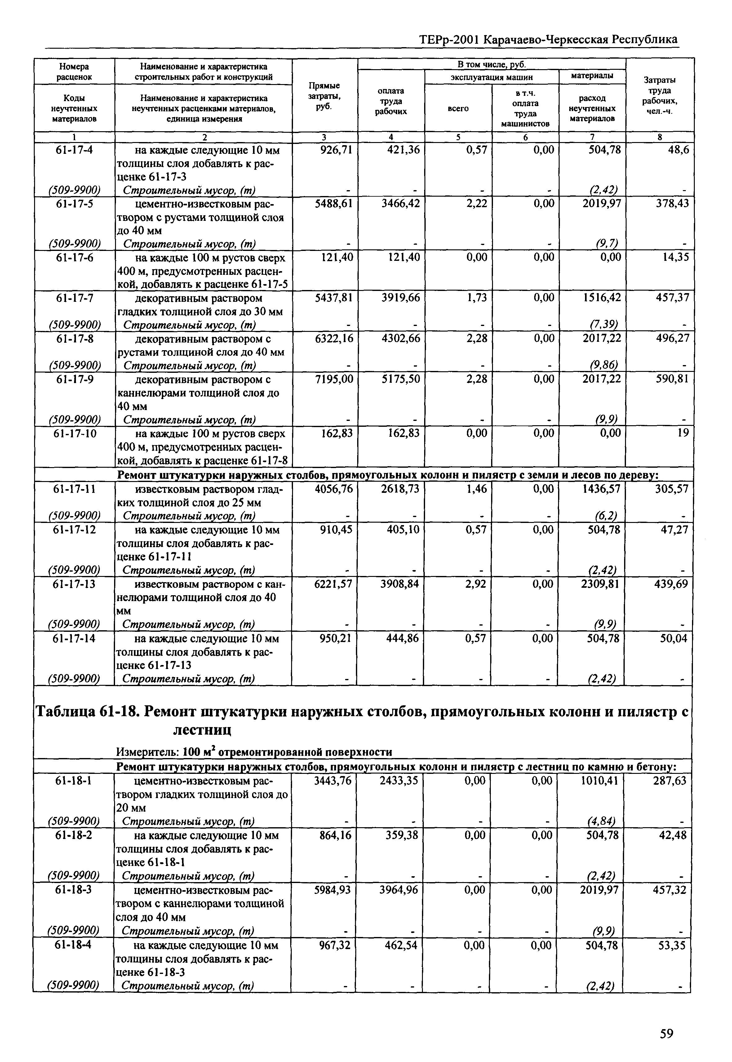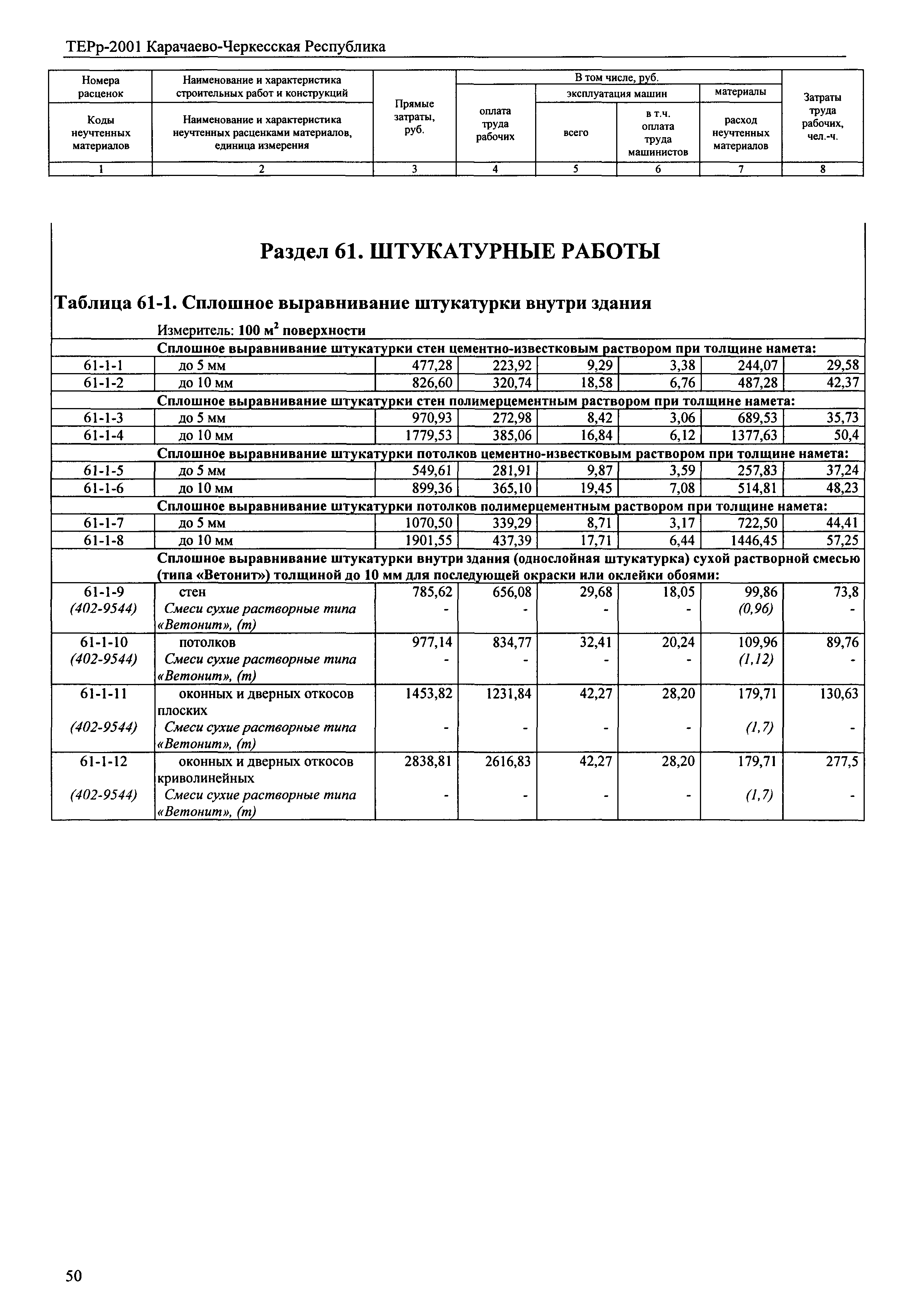 Скачать ТЕРр Карачаево-Черкесская Республика 2001-61 Штукатурные работы. Территориальные единичные расценки на ремонтно-строительные работыДата актуализации: 01.01.2021