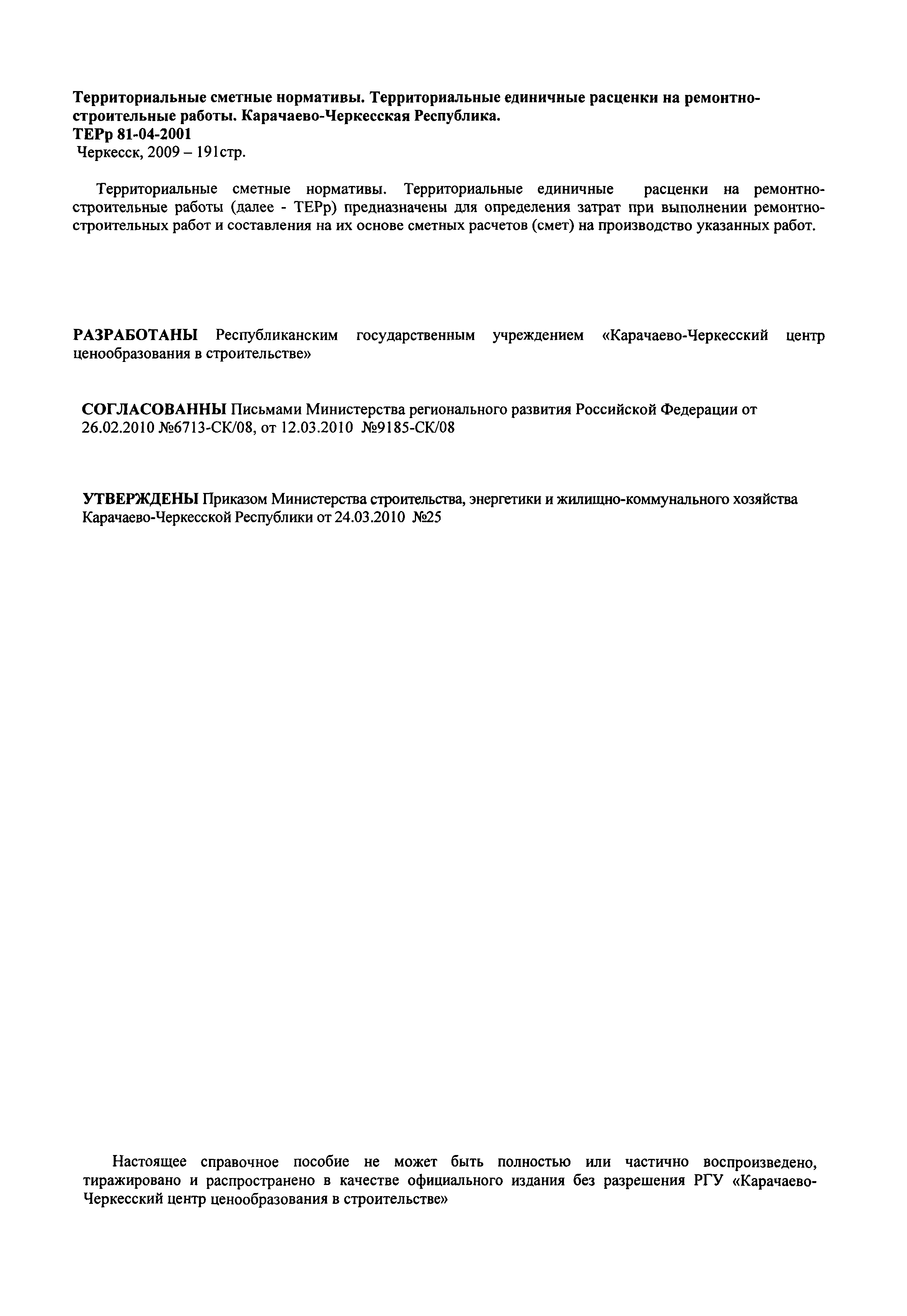 | Утверждён: | 24.03.2010 Министерство строительства, энергетики и жилищно-коммунального хозяйства Карачаево-Черкесской Республики (25) |
