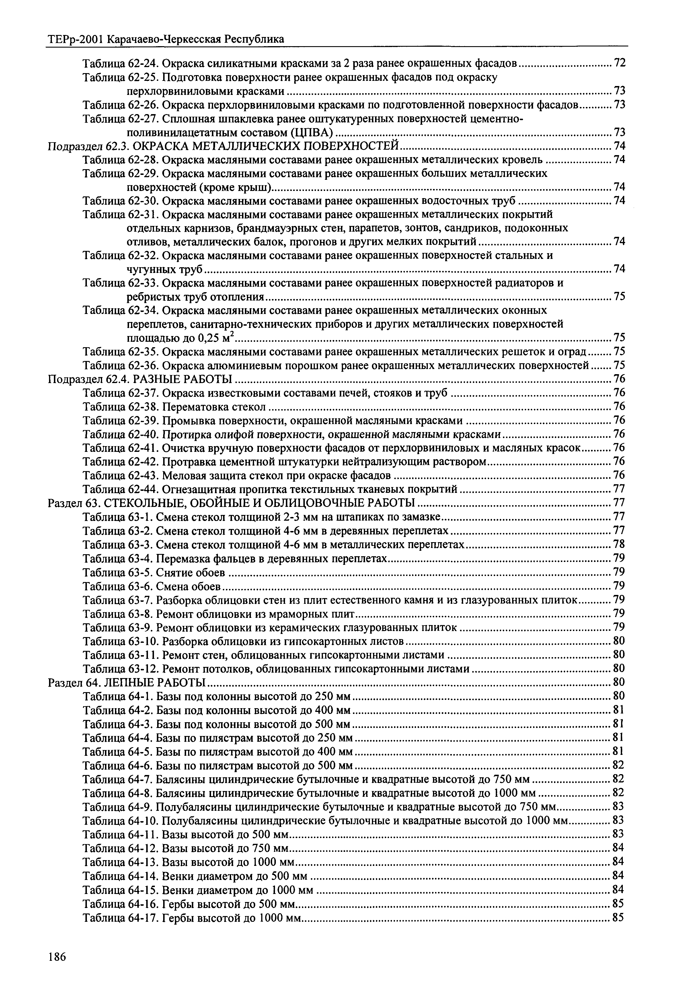 | Оглавление: | Раздел 61. Штукатурные работы Таблица 61-1. Сплошное выравнивание штукатурки внутри здания Таблица 61-2. Ремонт штукатурки внутренних стен по камню и бетону отдельными местами Таблица 61-3. Ремонт штукатурки внутренних стен по дереву отдельными местами Таблица 61-4. Ремонт штукатурки потолков по камню и бетону отдельными местами Таблица 61-5. Ремонт штукатурки потолков по дереву отдельными местами Таблица 61-6. Ремонт штукатурки столбов и пилястр внутри здания Таблица 61-7. Ремонт штукатурки откосов внутри здания Таблица 61-8. Ремонт штукатурки тяг и карнизов внутри здания Таблица 61-9. Ремонт штукатурки лестничных маршей и площадок Таблица 61-10. Ремонт штукатурки гладких фасадов по камню и бетону с земли и лесов Таблица 61-11. Ремонт штукатурки гладких фасадов по камню и бетону с лестниц Таблица 61-12. Ремонт штукатурки гладких фасадов по камню и бетону с люлек Таблица 61-13. Ремонт штукатурки рустованных фасадов по камню и бетону с земли и лесов Таблица 61-14. Ремонт штукатурки рустованных фасадов по камню и бетону с лестниц Таблица 61-15. Ремонт штукатурки рустованных фасадов по камню и бетону с люлек Таблица 61-16. Ремонт штукатурки гладких фасадов по дереву известковым раствором Таблица 61-17. Ремонт штукатурки наружных столбов, прямоугольных колонн и пилястр с земли и лесов Таблица 61-18. Ремонт штукатурки наружных столбов, прямоугольных колонн и пилястр с лестниц Таблица 61-19. Ремонт штукатурки наружных столбов, прямоугольных колонн и пилястр с люлек Таблица 61-20. Ремонт штукатурки наружных прямолинейных откосов Таблица 61-21. Ремонт штукатурки наружных криволинейных откосов Таблица 61-22. Ремонт штукатурки наружных прямолинейных тяг Таблица 61-23. Ремонт штукатурки наружных криволинейных тяг Таблица 61-24. Ремонт штукатурки фасадов сухой растворной смесью (типа "Бетонит") Таблица 61-25. Очистка поверхности фасадов пескоструйным аппаратом Таблица 61-26. Перетирка штукатурки Таблица 61-27. Насечка поверхностей под штукатурку Таблица 61-28. Устройство основания под штукатурку из металлической сетки Таблица 61-29. Устройство основания под штукатурку по деревянной поверхности Таблица 61-30. Замена основания под штукатурку из драни Таблица 61-31. Оштукатуривание поверхности дымовых труб Таблица 61-32. Выравнивание разрушенных мест раствором с добавлением Ультра-Си при толщине намета до 10 мм |