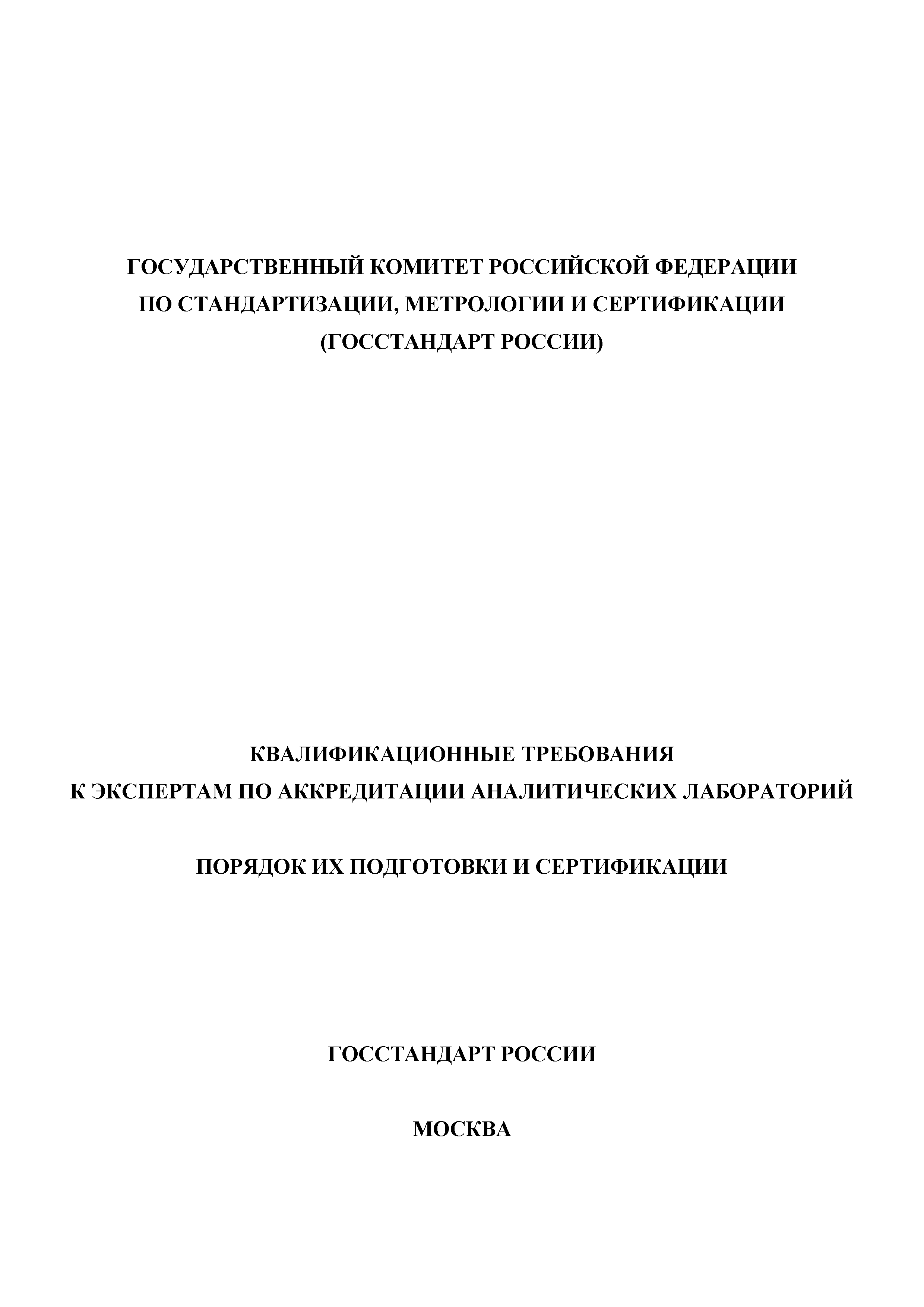 | Название рус.: | Квалификационные требования к экспертам по аккредитации аналитических лабораторий. Порядок их подготовки и сертификации |