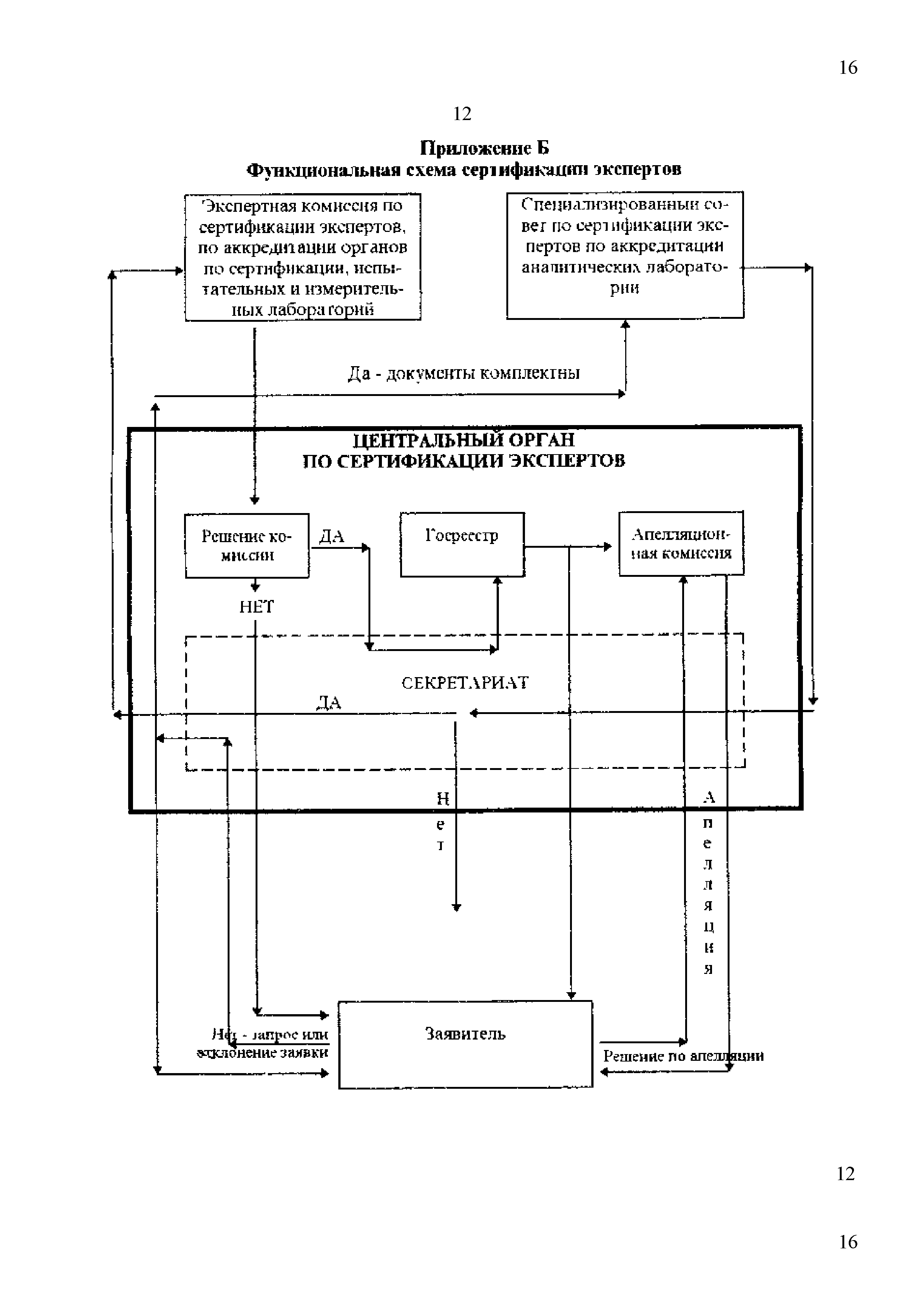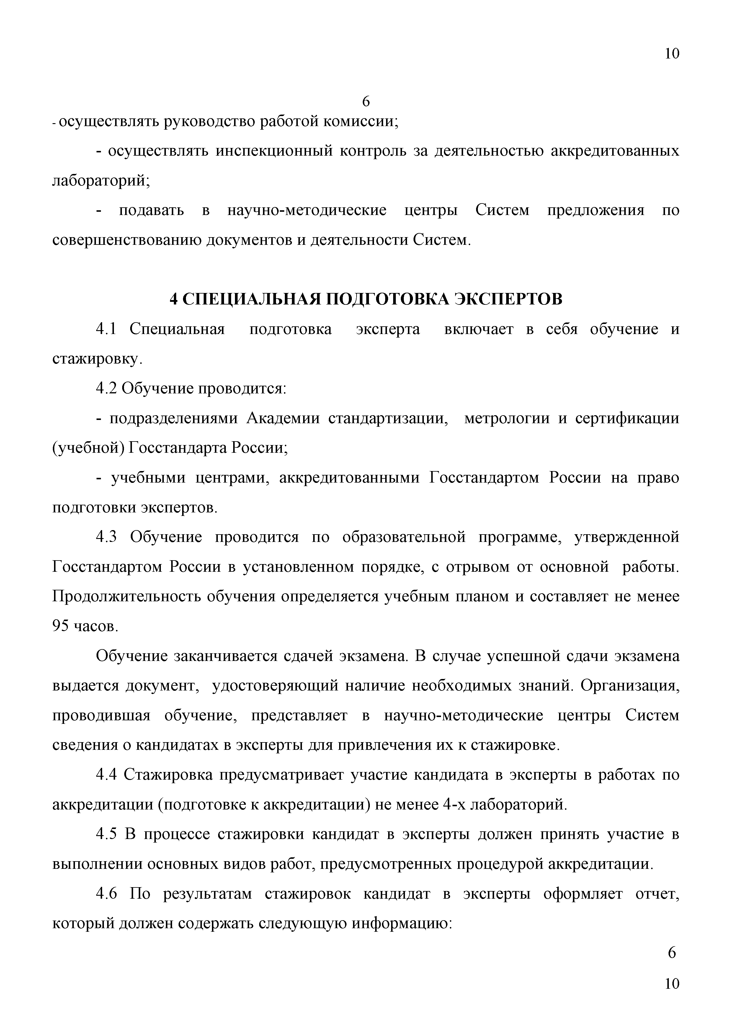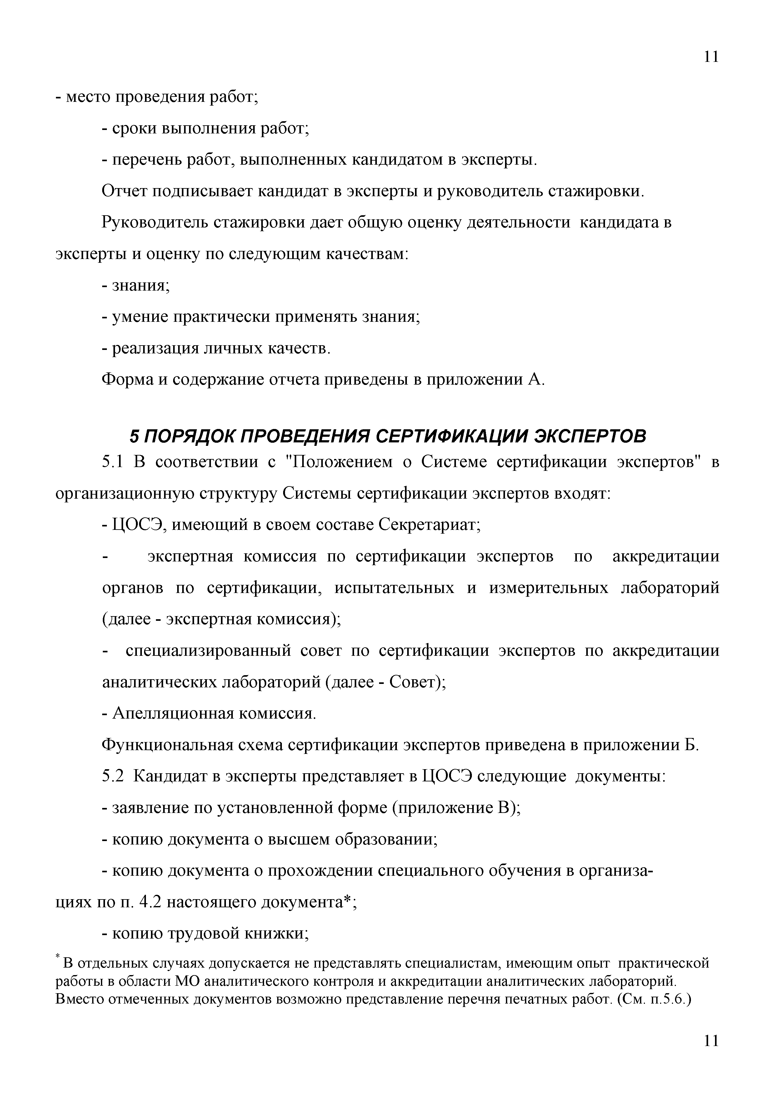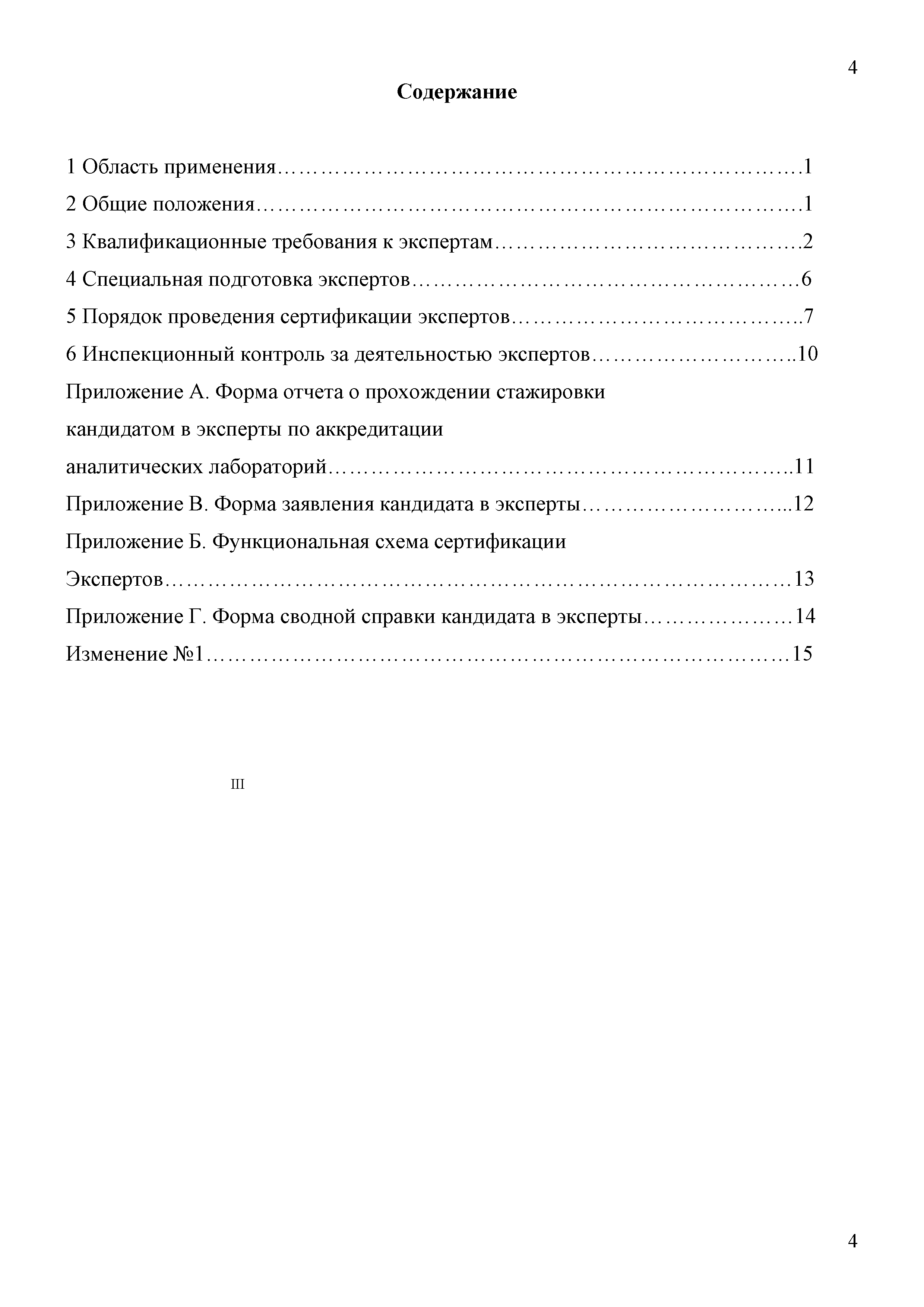 | Оглавление: | 1. Область применения 2. Общие положения 3. Квалификационные требования к экспертам 4. Специальная подготовка экспертов 5. Порядок проведения сертификации экспертов 6. Инспекционный контроль за деятельностью экспертов Приложение А. Форма отчета о прохождении стажировки кандидатом в эксперты по аккредитации аналитических лабораторий Приложение Б. Форма заявления кандидата в эксперты Приложение В. Функциональная схема сертификации экспертов Приложение Г. Форма сводной справки кандидата в эксперты Изменение №1 |