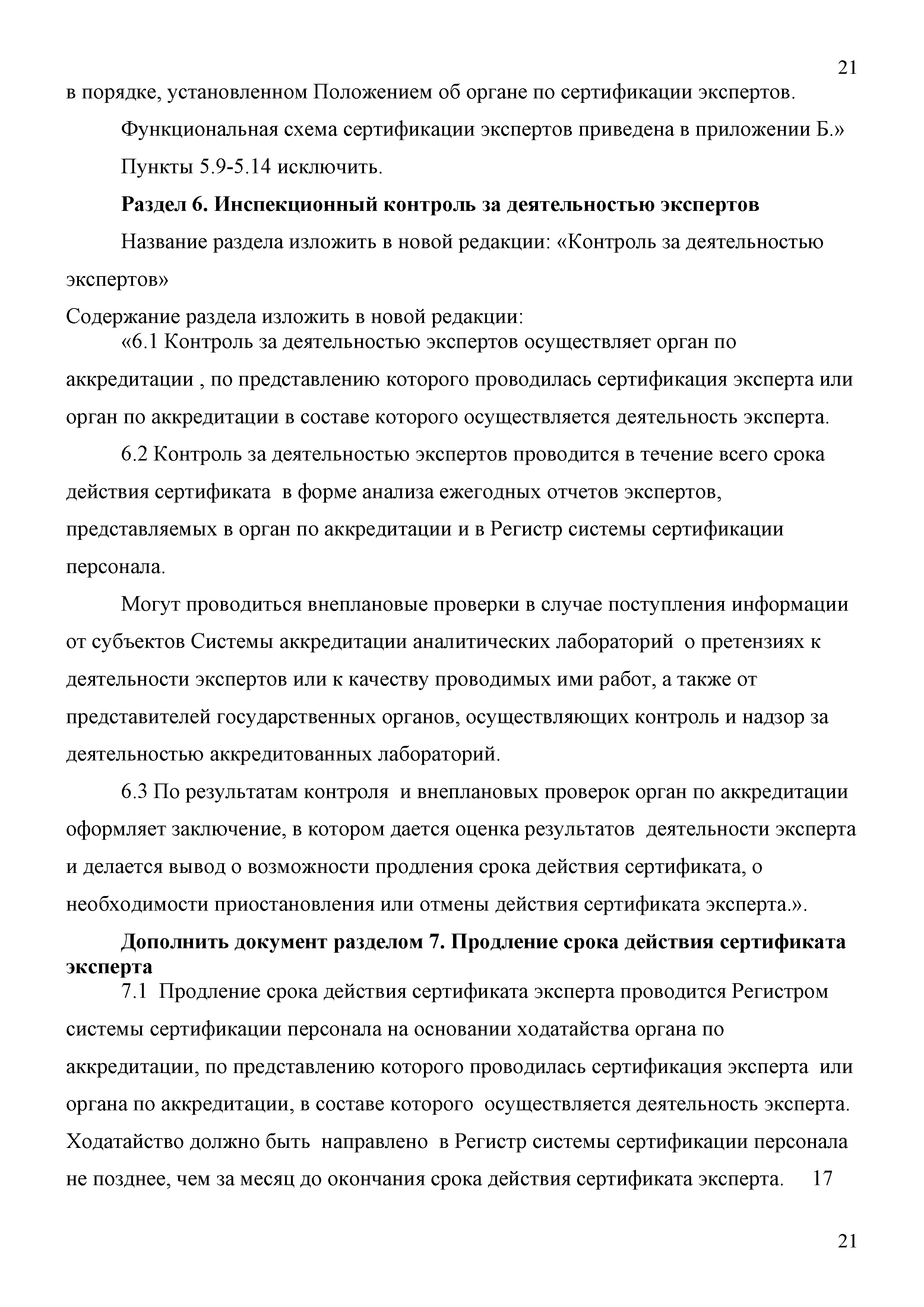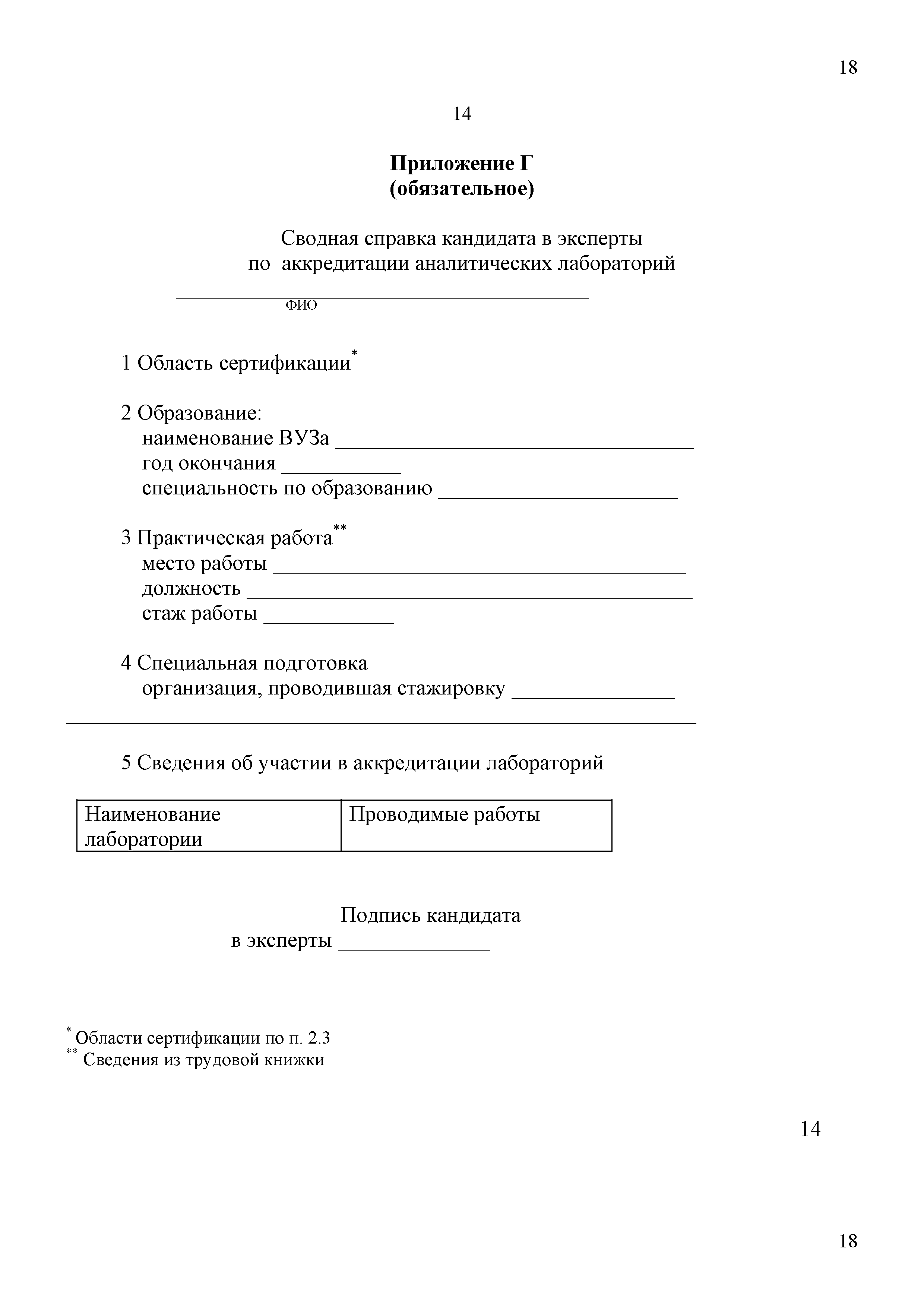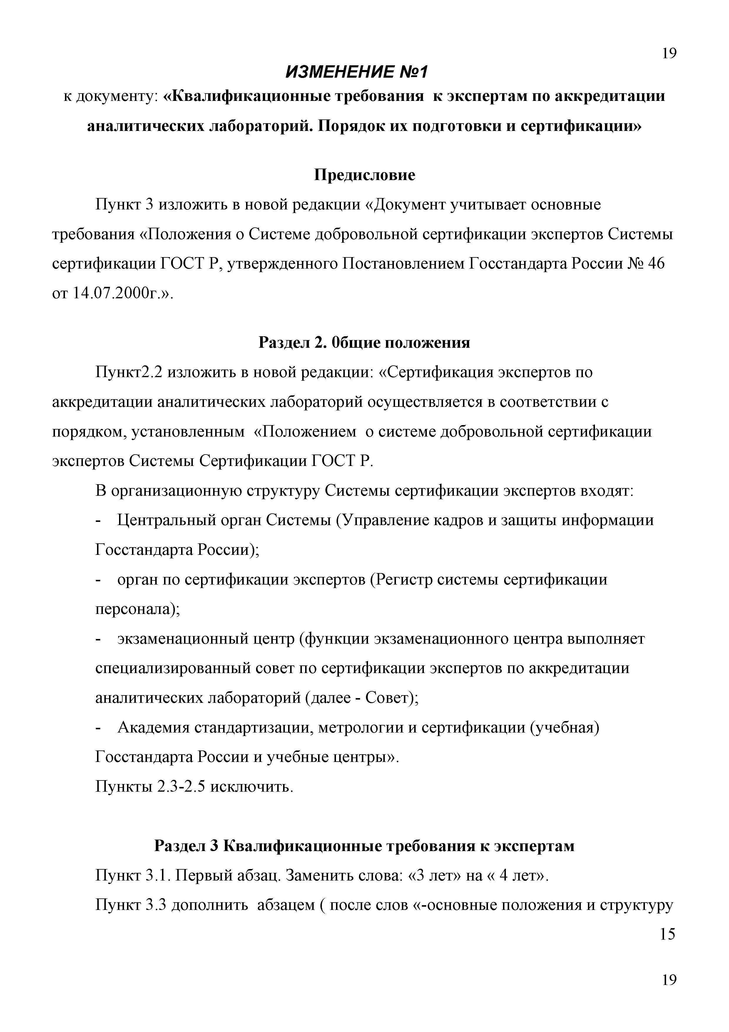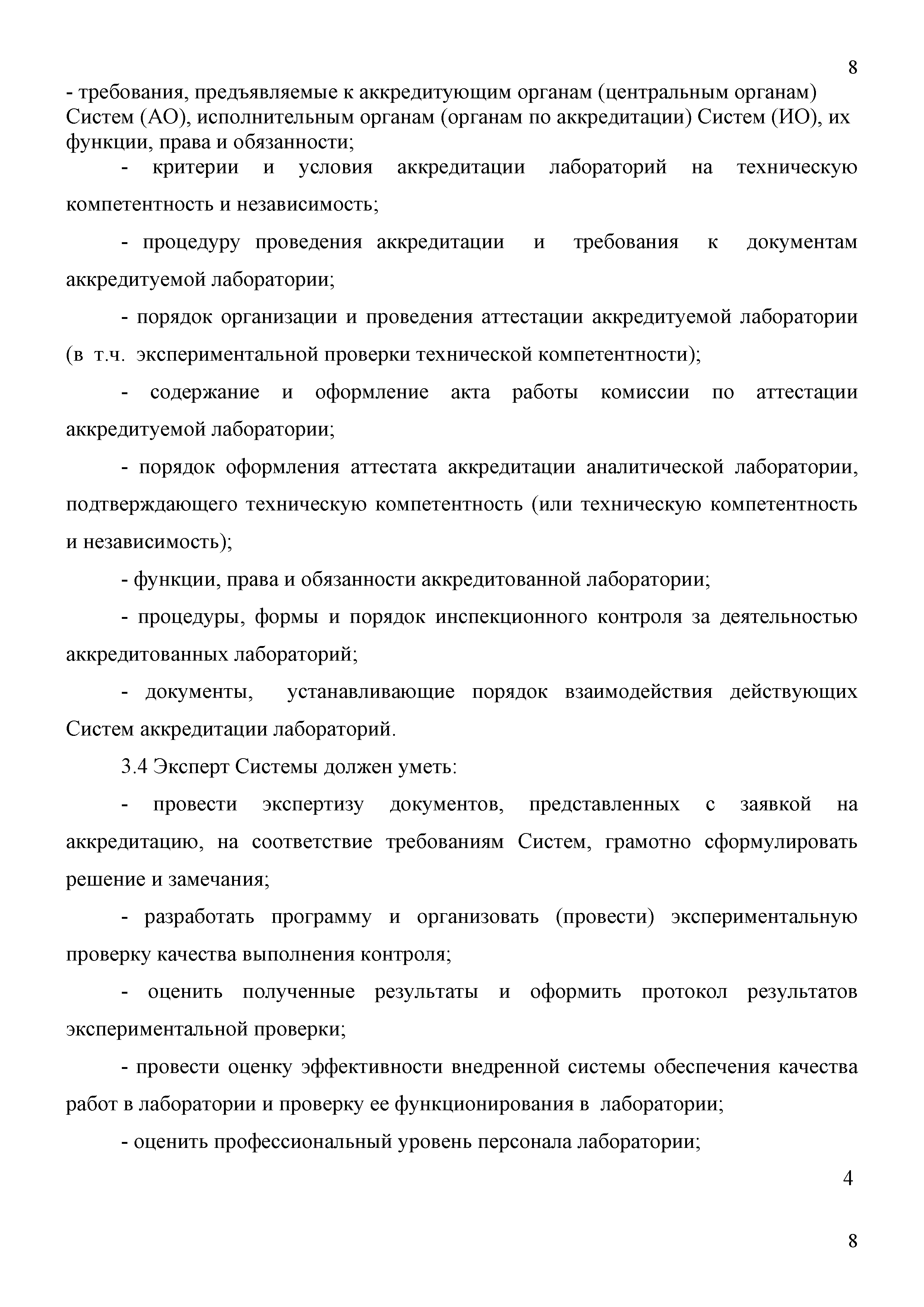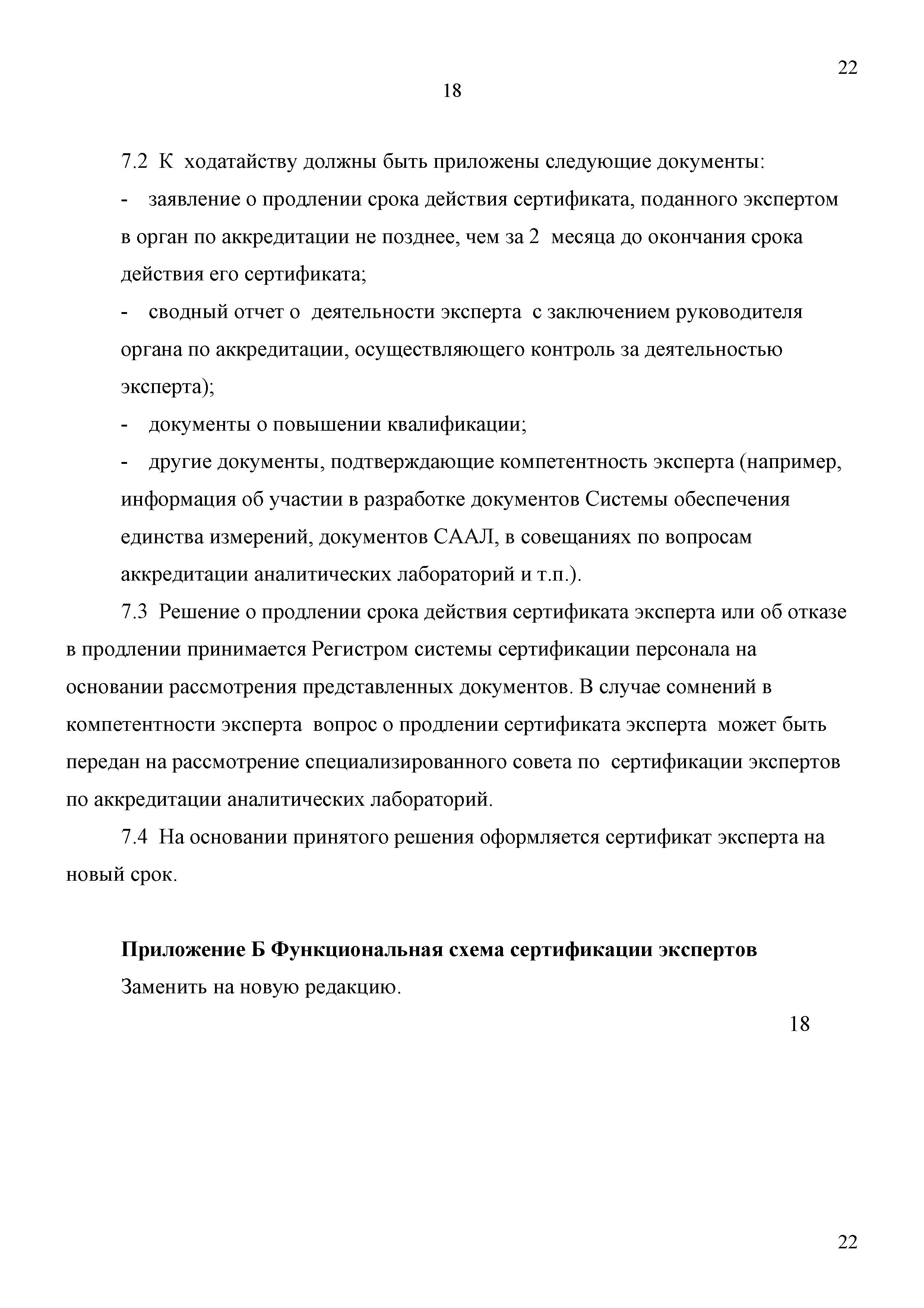 | Оглавление: | 1. Область применения 2. Общие положения 3. Квалификационные требования к экспертам 4. Специальная подготовка экспертов 5. Порядок проведения сертификации экспертов 6. Инспекционный контроль за деятельностью экспертов Приложение А. Форма отчета о прохождении стажировки кандидатом в эксперты по аккредитации аналитических лабораторий Приложение Б. Форма заявления кандидата в эксперты Приложение В. Функциональная схема сертификации экспертов Приложение Г. Форма сводной справки кандидата в эксперты Изменение №1 |