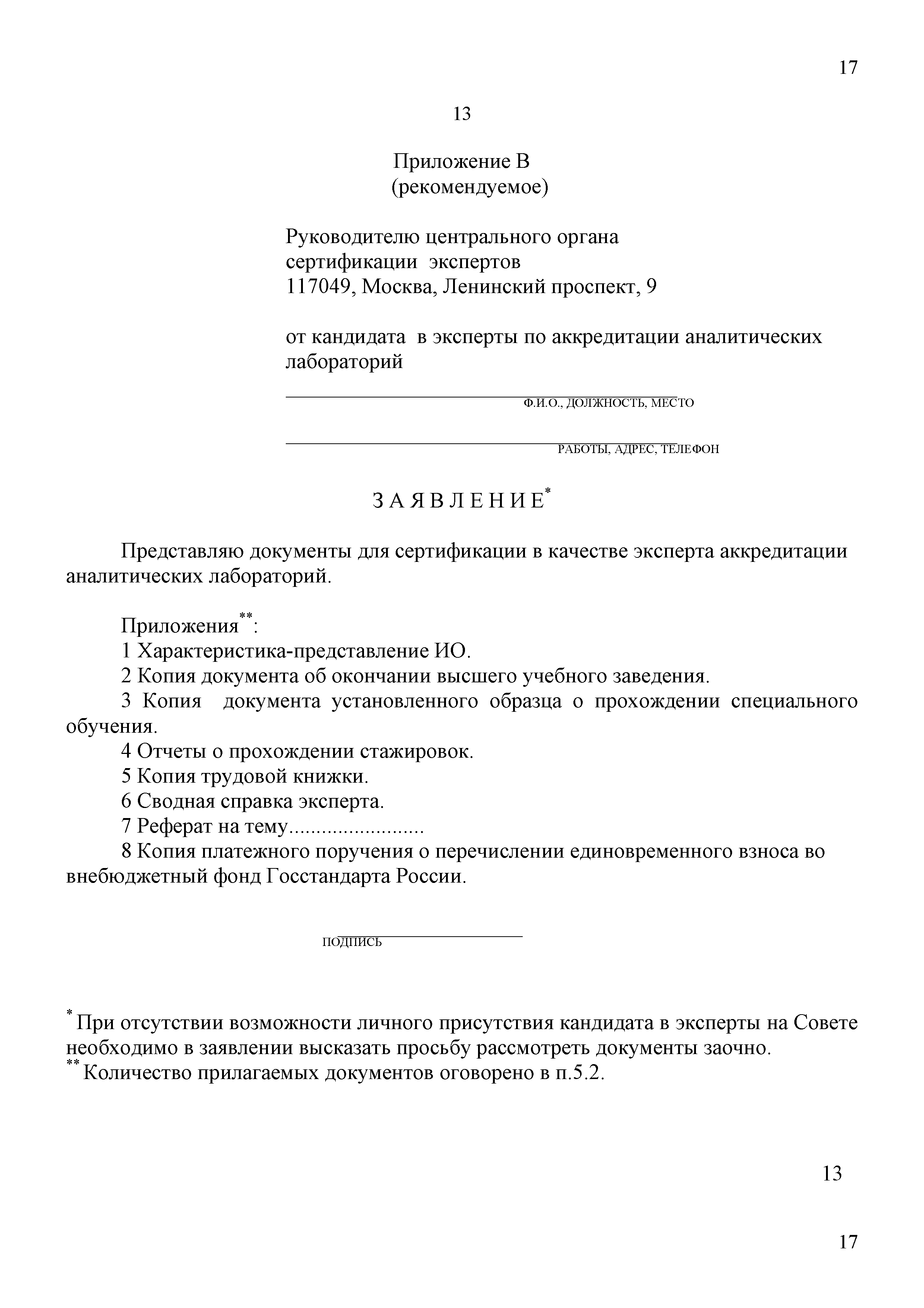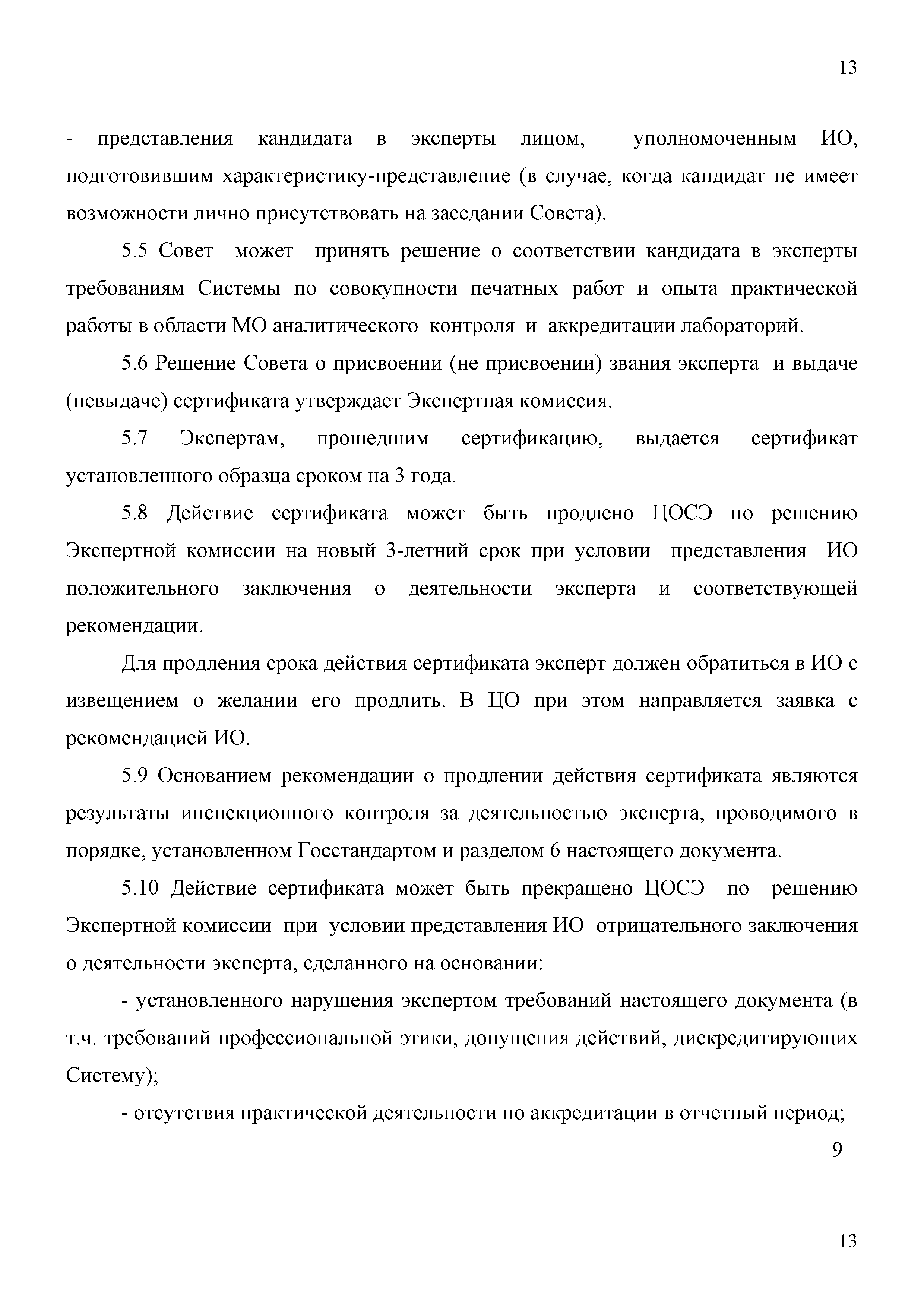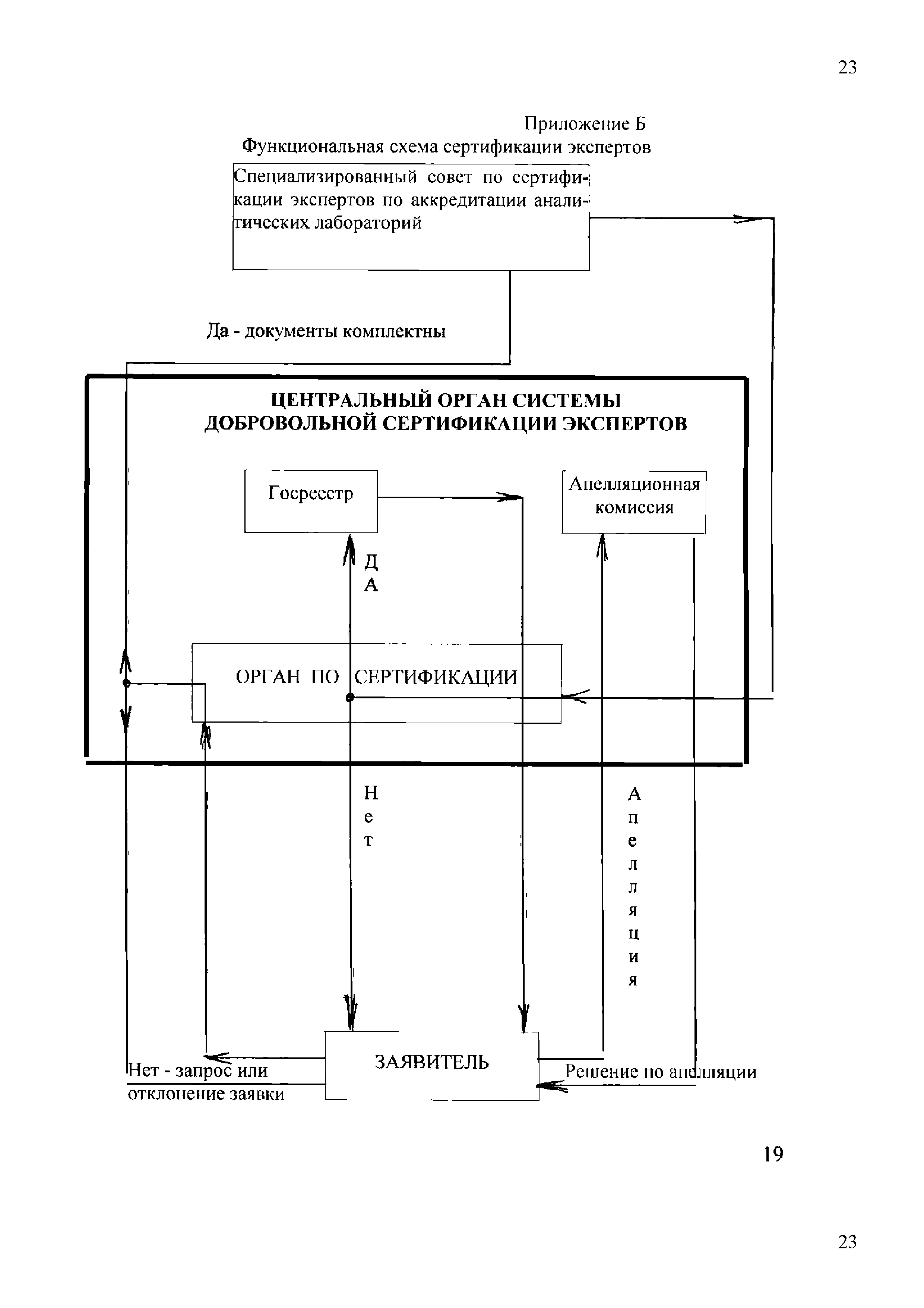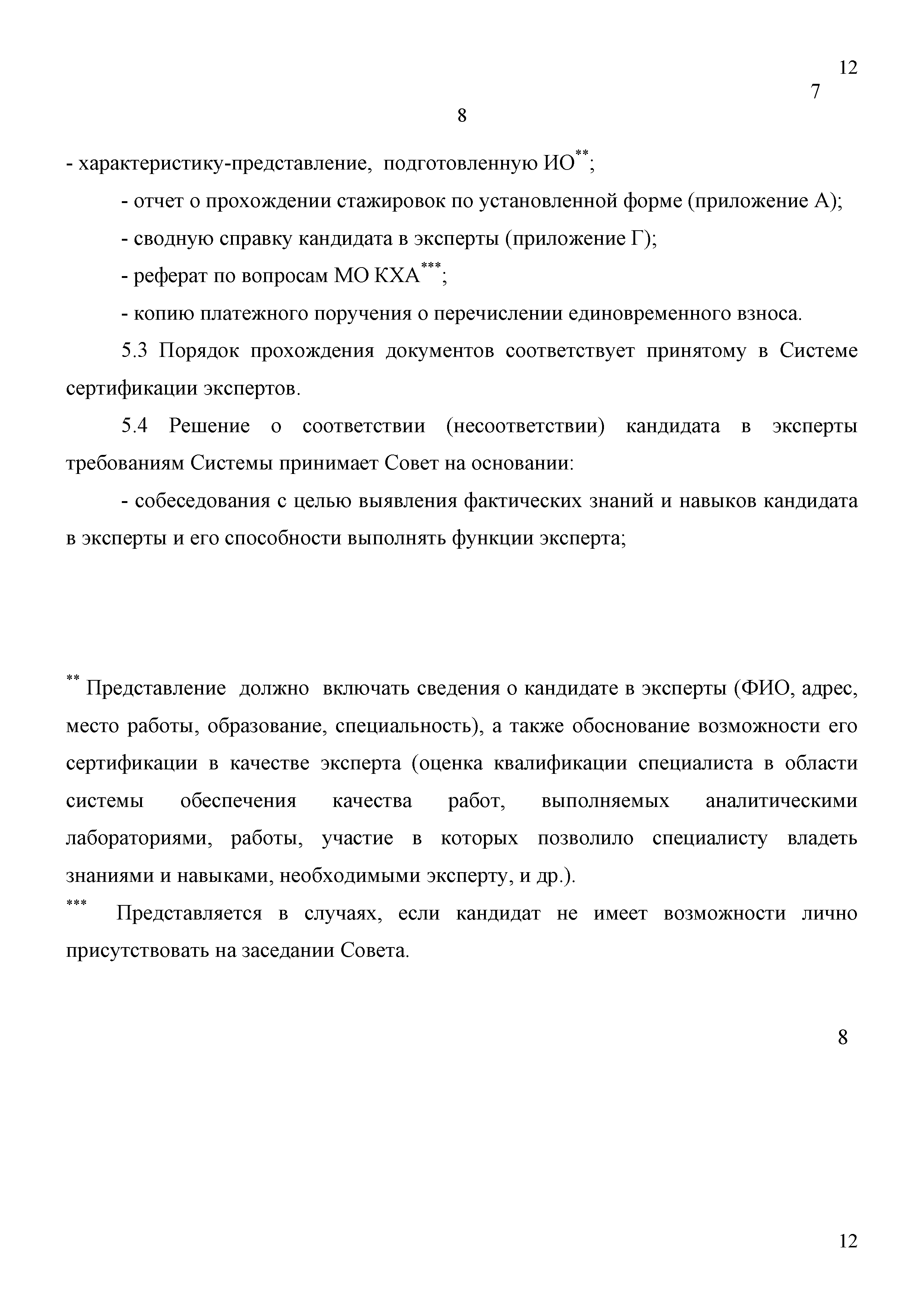 | Оглавление: | 1. Область применения 2. Общие положения 3. Квалификационные требования к экспертам 4. Специальная подготовка экспертов 5. Порядок проведения сертификации экспертов 6. Инспекционный контроль за деятельностью экспертов Приложение А. Форма отчета о прохождении стажировки кандидатом в эксперты по аккредитации аналитических лабораторий Приложение Б. Форма заявления кандидата в эксперты Приложение В. Функциональная схема сертификации экспертов Приложение Г. Форма сводной справки кандидата в эксперты Изменение №1 |