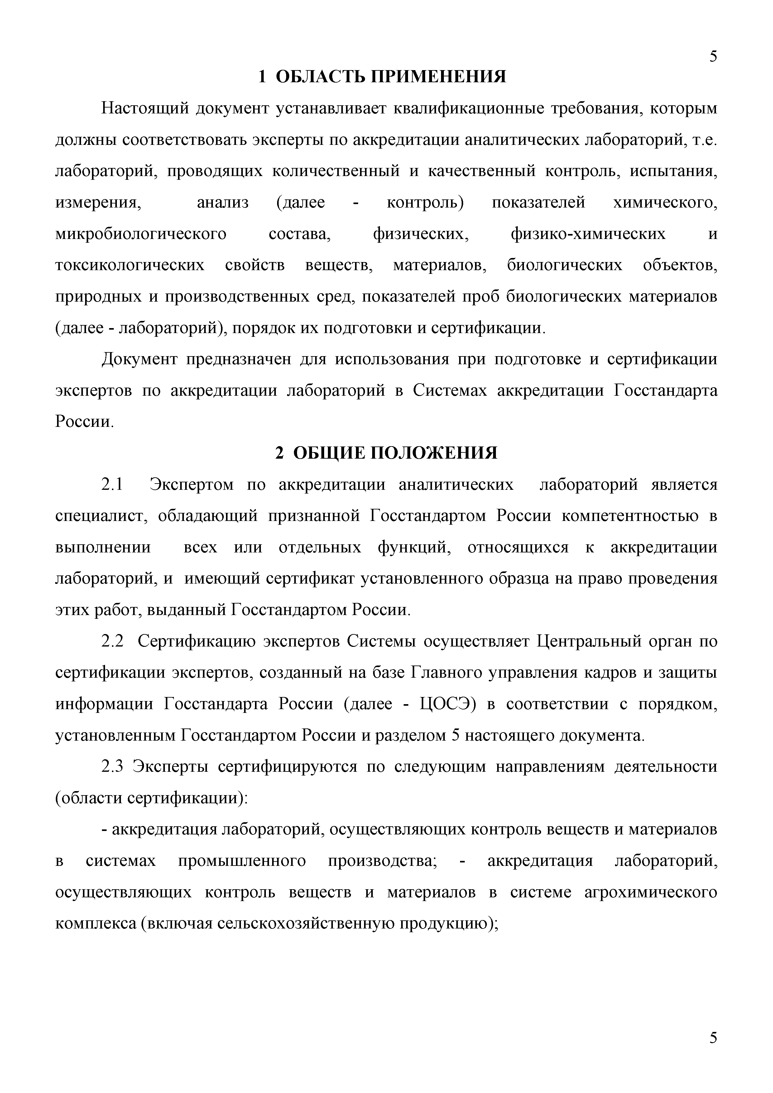 | Область применения: | Документ разработан с целью установления единых квалификационных требований к экспертам по аккредитации аналитических лабораторий, т.е. Лабораторий, осуществляющих контроль (испытания, измерения, анализ) показателей химического, микробиологического состава, физических, физико-химических и токсикологических свойств веществ, материалов, биологических объектов, природных и производственных сред, показателей проб биологических материалов |