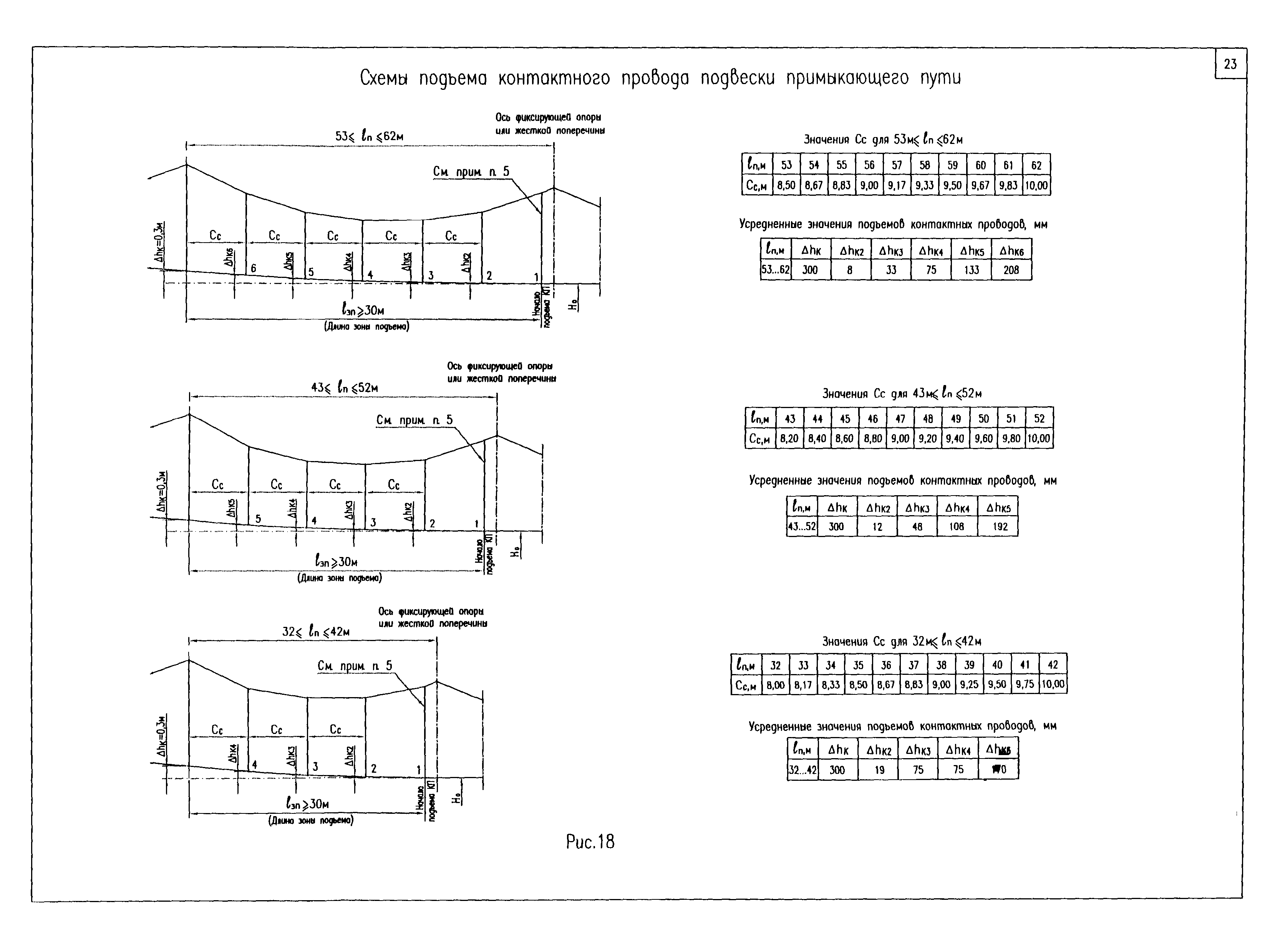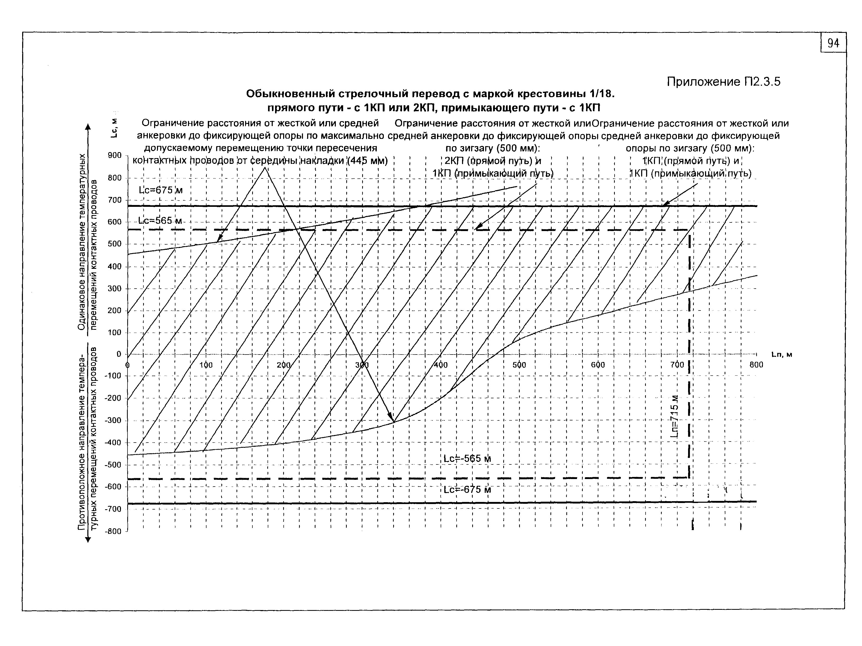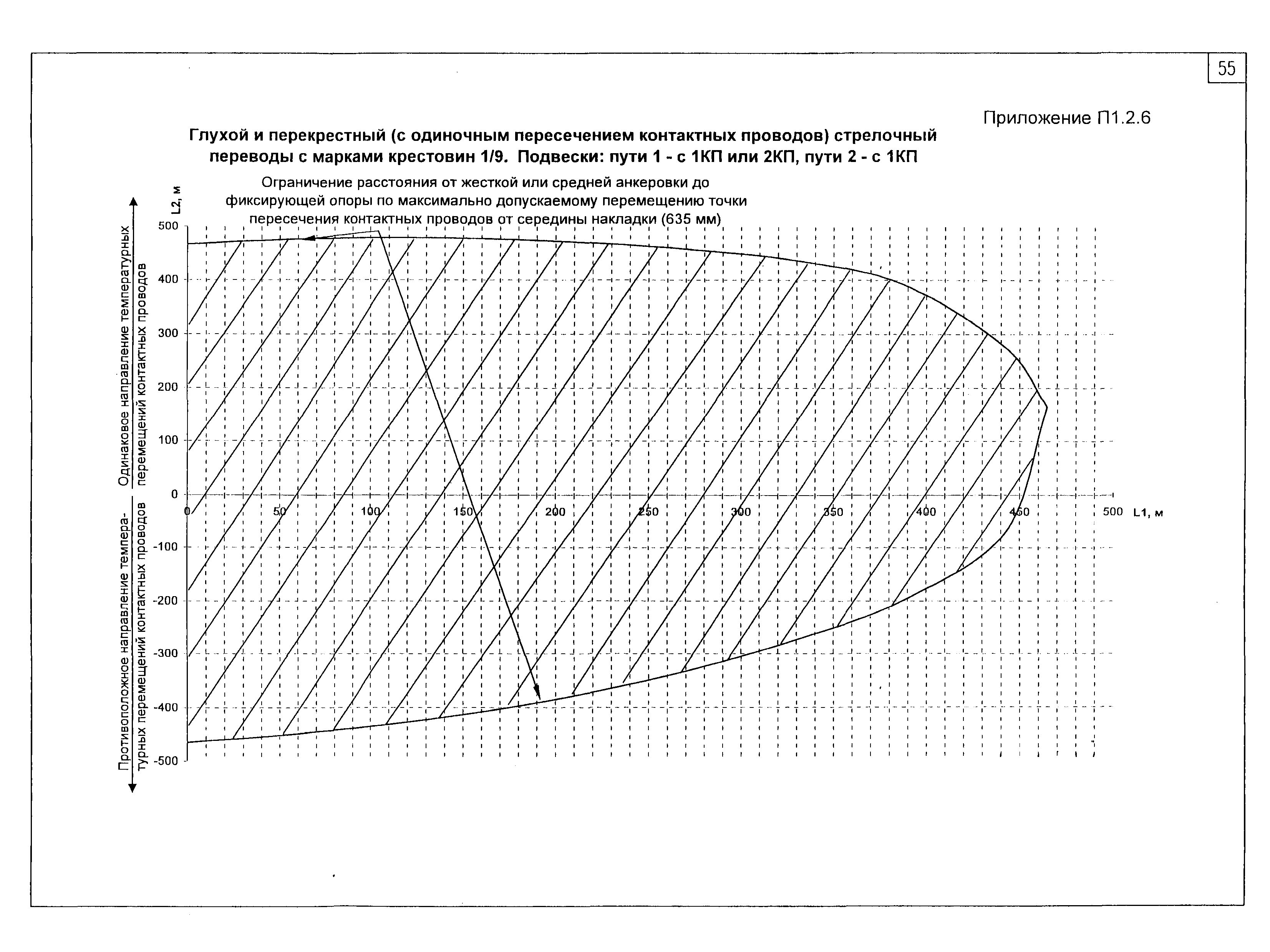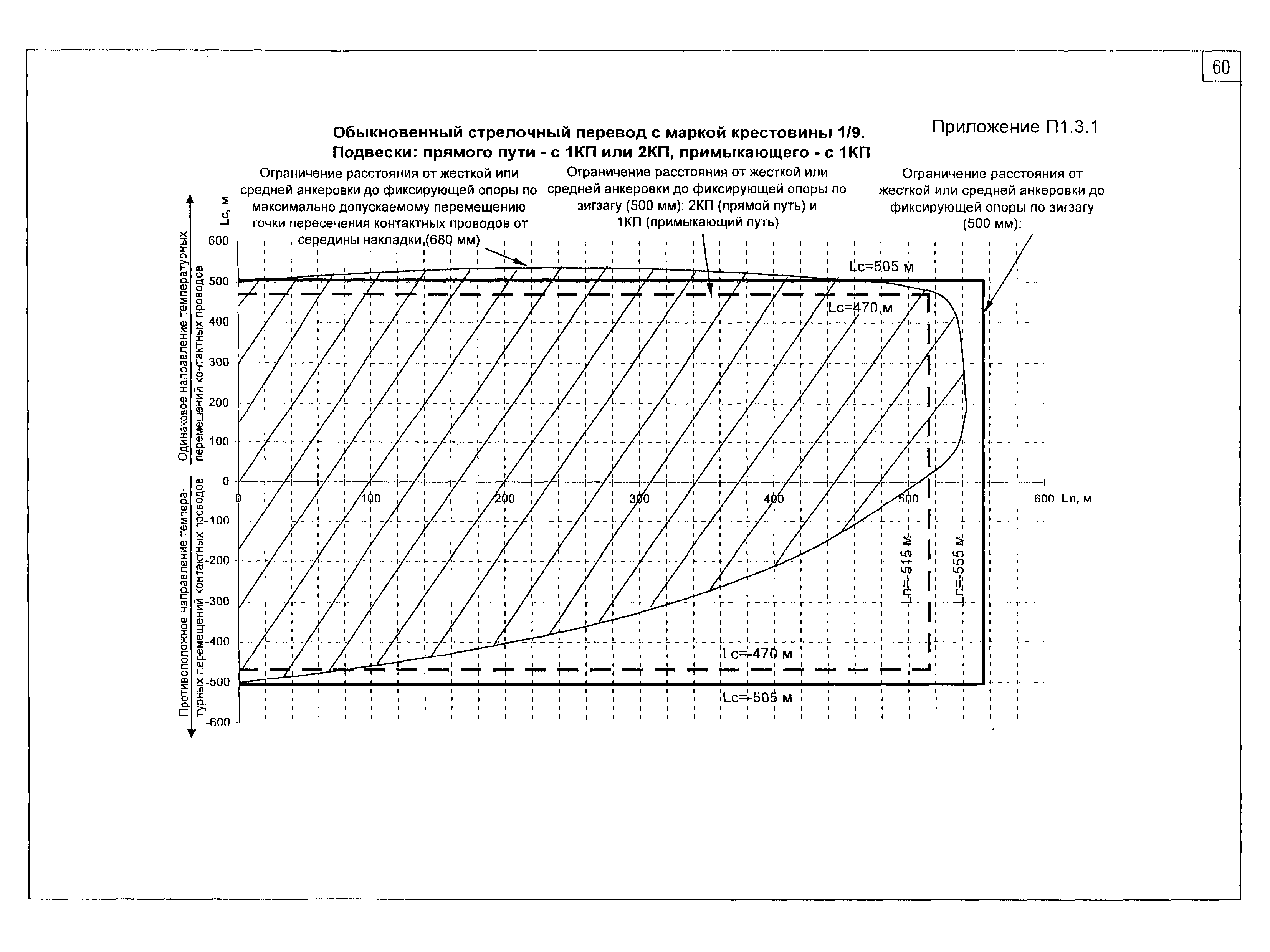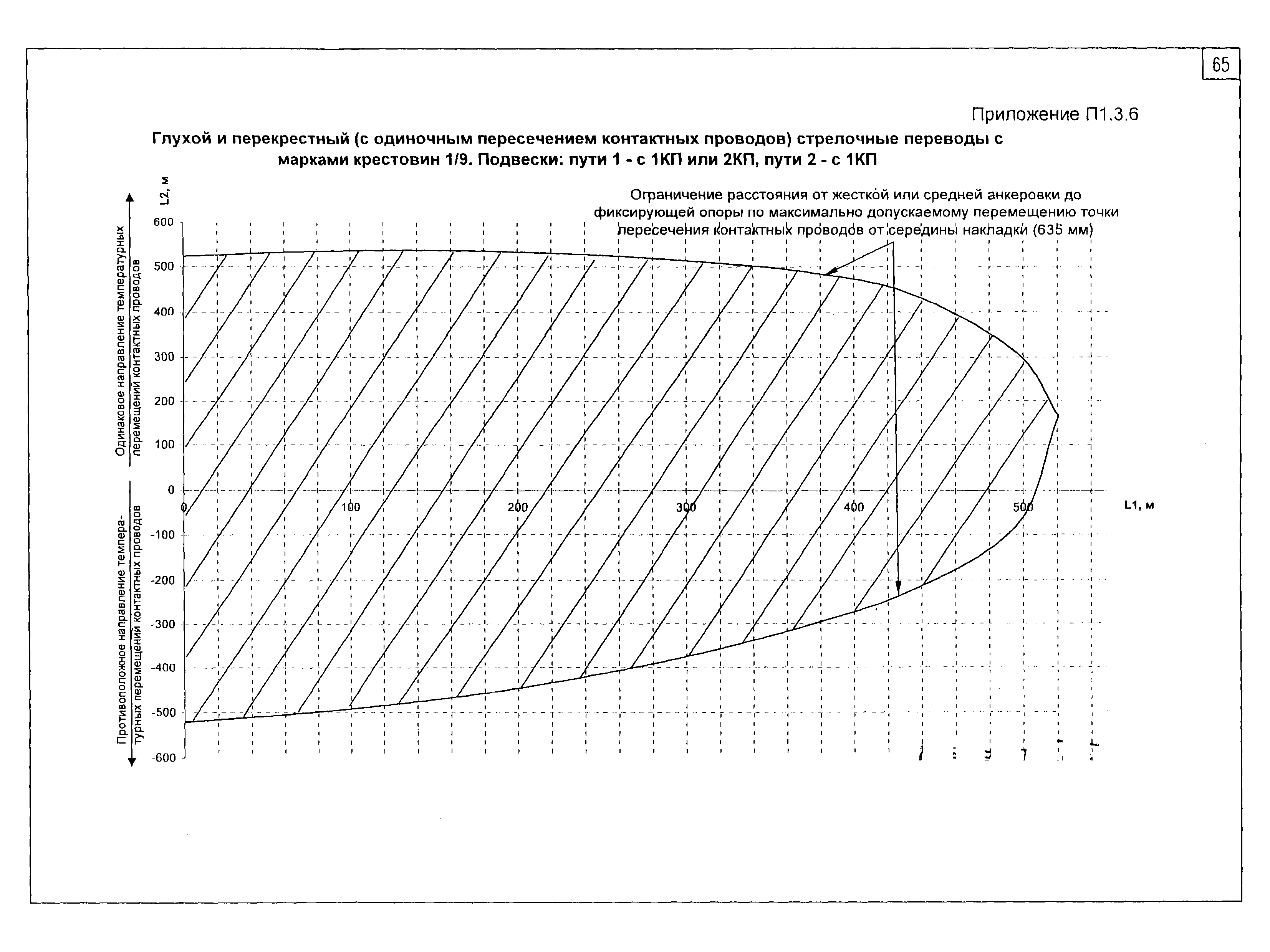 Инструктивные указания по монтажу, регулировке и проектированию воздушных стрелок| Статус: | не определен законодательством | | Название рус.: | Инструктивные указания по монтажу, регулировке и проектированию воздушных стрелок | | Дата добавления в базу: | 01.09.2013 | | Дата актуализации: | 01.01.2021 | | Дата введения: | 01.01.2007 | | Оглавление: | 1. Общие положения 2. Требования к устройству воздушных стрелок 2.1. Основные положения 2.2. Расположение в плане фиксирующей опоры и проводов, образующих воздушную стрелку, в зоне центра стрелочного перевода 2.3. Обеспечение свободного перемещения пересекающихся контактных проводов в расчетном интервале температур 2.4. Расположение контактных проводов и несущих тросов в зоне подхвата, выравнивание жесткостей пересекающихся подвесок 2.5. Схемы расстановки вертикальных и перекрестных струн, ограничителей подъема контактных проводов и электрических соединителей в зоне воздушных стрелок 3. Монтаж и регулировка воздушных 3.1. Первый этап 3.2. Второй этап 4. Рекомендации по эксплуатации и модернизации воздушных стрелок до реконструкции контактной сети на действующих участках 5. Техника безопасности 6. Проектирование контактной сети на станциях с учетом требований к устройству воздушных стрелок 6.1. Привязка фиксирующих опор (поперечин) к центрам стрелочных переводов, фиксация контактных проводов и несущих тросов 6.2. Разбивка опор и трассировка анкерных участков Приложения. Общие сведения, условные обозначения и сокращения Приложения П1.1.(П1.1.1-П1.1.9). Полукомпенсированная контактная подвеска. Графики ограничений расстояний от средних или жестких анкеровок до фиксирующей опоры. I температурный район Приложения П1.2.(П1.2.1-П1.2.9). Полукомпенсированная контактная подвеска. Графики ограничений расстояний от средних или жестких анкеровок до фиксирующей опоры. II температурный район Приложения П1.3.(П1.3.1-П1.3.9). Полукомпенсированная контактная подвеска. Графики ограничений расстояний от средних или жестких анкеровок до фиксирующей опоры. III температурный район Приложения П2.1.(П2.1.1-П2.1.9). Компенсированная контактная подвеска. Графики ограничения расстояний от средних или жестких анкеровок до фиксирующей опоры. I температурный район Приложения П2.2.(П2.2.1-П2.2.9). Компенсированная контактная подвеска. Графики ограничений расстояний от средних или жестких анкеровок до фиксирующей опоры. II температурный район Приложения П2.3.(П2.3.1-П2.3.9). Компенсированная контактная подвеска. Графики ограничений расстояний от средних или жестких анкеровок до фиксирующей опоры. III температурный район Приложение ПЗ. Условный план разбивки опор и анкерных участков на станции. Полукомпенсированная контактная подвеска (постоянный ток 3 кВ) | | Разработан: | Универсал-контактные сети