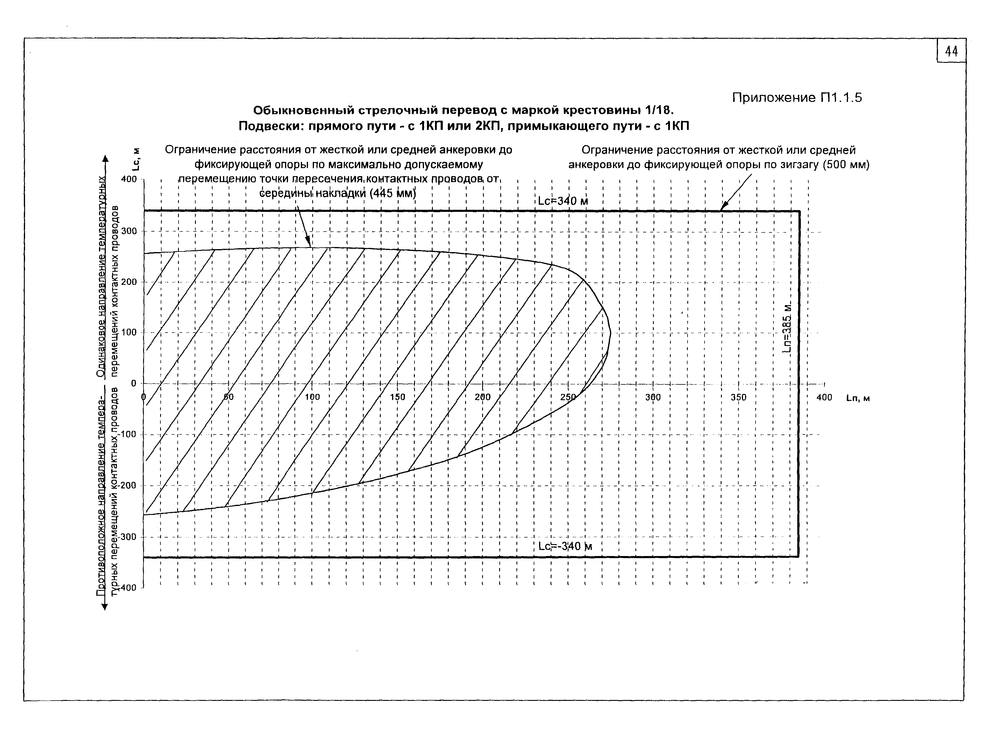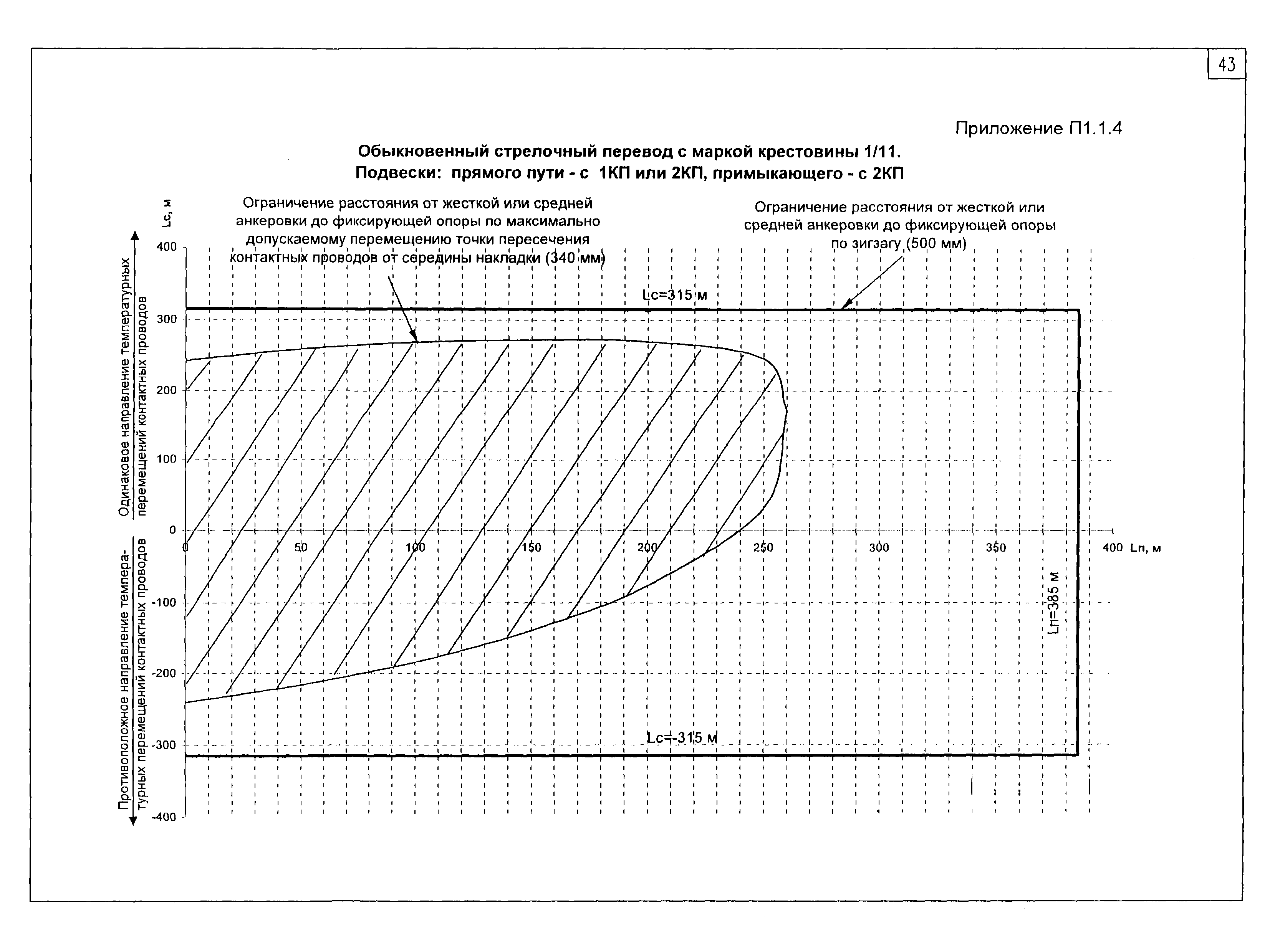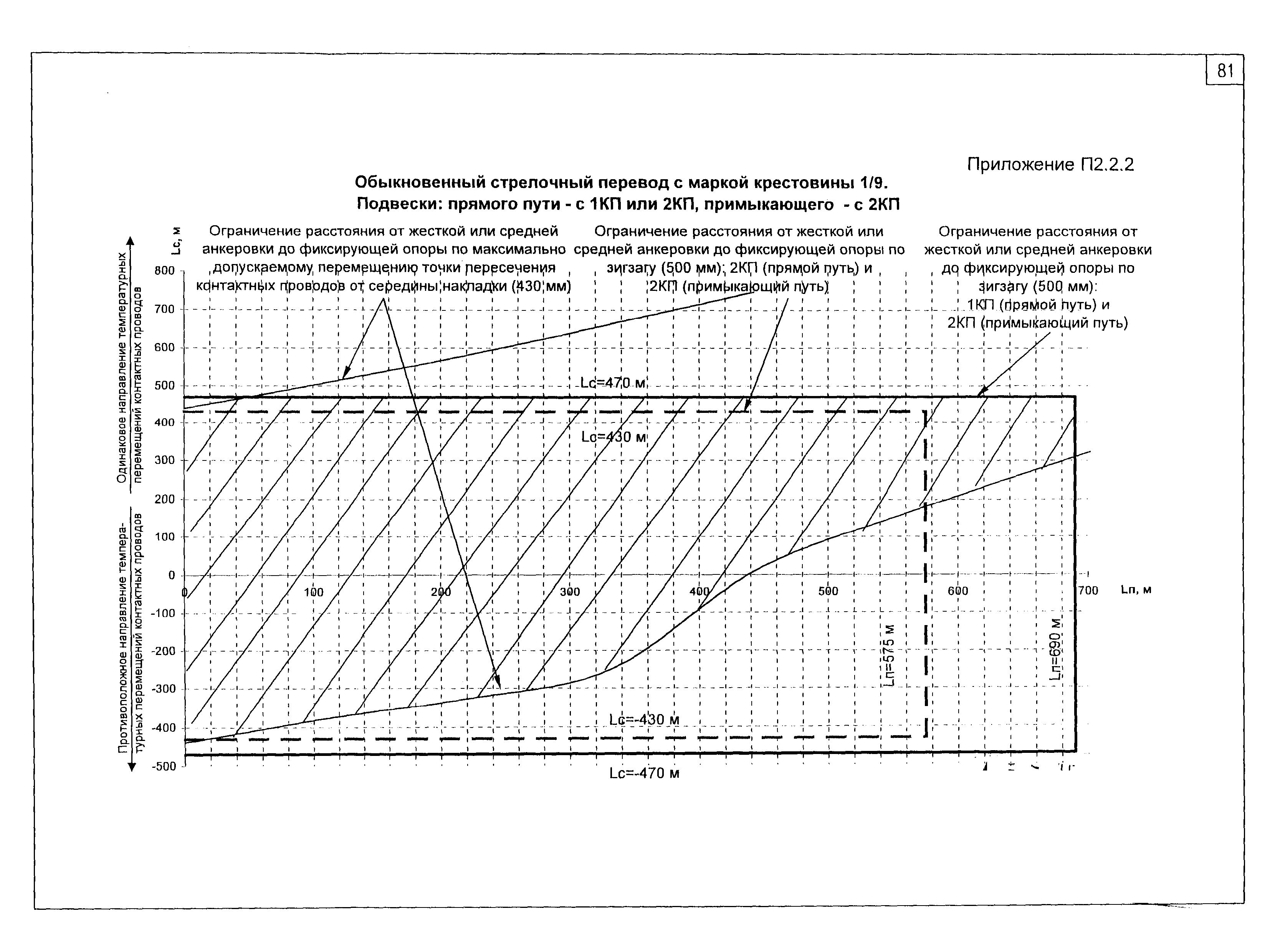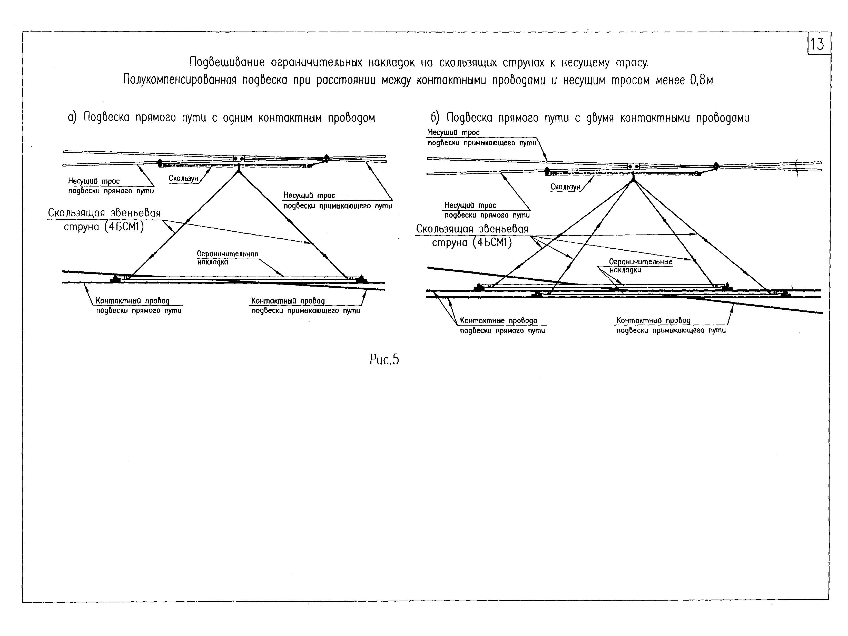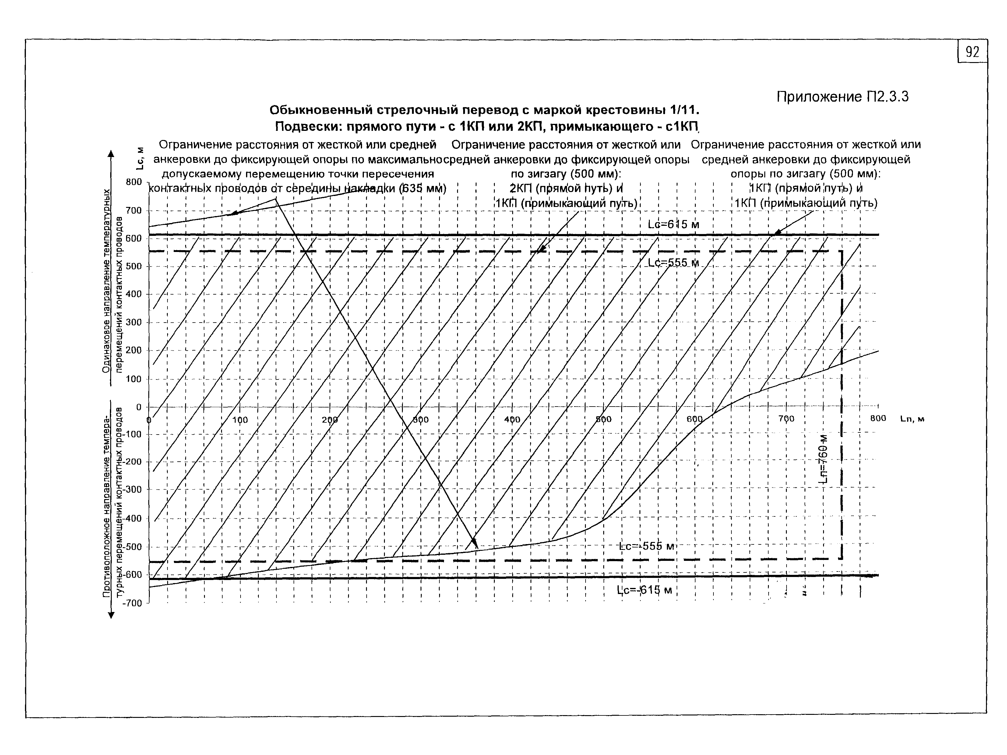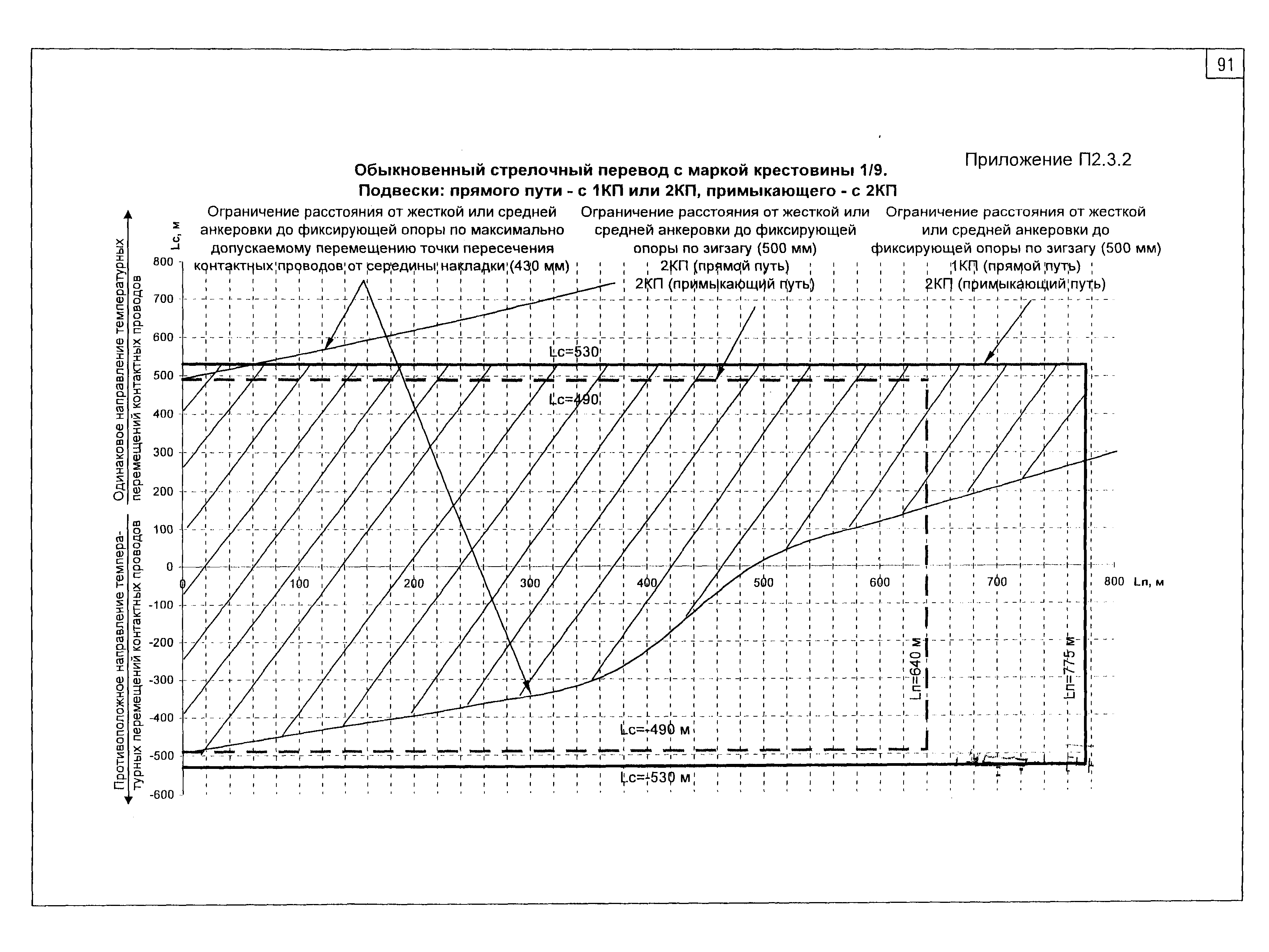 Инструктивные указания по монтажу, регулировке и проектированию воздушных стрелок| Статус: | не определен законодательством | | Название рус.: | Инструктивные указания по монтажу, регулировке и проектированию воздушных стрелок | | Дата добавления в базу: | 01.09.2013 | | Дата актуализации: | 01.01.2021 | | Дата введения: | 01.01.2007 | | Оглавление: | 1. Общие положения 2. Требования к устройству воздушных стрелок 2.1. Основные положения 2.2. Расположение в плане фиксирующей опоры и проводов, образующих воздушную стрелку, в зоне центра стрелочного перевода 2.3. Обеспечение свободного перемещения пересекающихся контактных проводов в расчетном интервале температур 2.4. Расположение контактных проводов и несущих тросов в зоне подхвата, выравнивание жесткостей пересекающихся подвесок 2.5. Схемы расстановки вертикальных и перекрестных струн, ограничителей подъема контактных проводов и электрических соединителей в зоне воздушных стрелок 3. Монтаж и регулировка воздушных 3.1. Первый этап 3.2. Второй этап 4. Рекомендации по эксплуатации и модернизации воздушных стрелок до реконструкции контактной сети на действующих участках 5. Техника безопасности 6. Проектирование контактной сети на станциях с учетом требований к устройству воздушных стрелок 6.1. Привязка фиксирующих опор (поперечин) к центрам стрелочных переводов, фиксация контактных проводов и несущих тросов 6.2. Разбивка опор и трассировка анкерных участков Приложения. Общие сведения, условные обозначения и сокращения Приложения П1.1.(П1.1.1-П1.1.9). Полукомпенсированная контактная подвеска. Графики ограничений расстояний от средних или жестких анкеровок до фиксирующей опоры. I температурный район Приложения П1.2.(П1.2.1-П1.2.9). Полукомпенсированная контактная подвеска. Графики ограничений расстояний от средних или жестких анкеровок до фиксирующей опоры. II температурный район Приложения П1.3.(П1.3.1-П1.3.9). Полукомпенсированная контактная подвеска. Графики ограничений расстояний от средних или жестких анкеровок до фиксирующей опоры. III температурный район Приложения П2.1.(П2.1.1-П2.1.9). Компенсированная контактная подвеска. Графики ограничения расстояний от средних или жестких анкеровок до фиксирующей опоры. I температурный район Приложения П2.2.(П2.2.1-П2.2.9). Компенсированная контактная подвеска. Графики ограничений расстояний от средних или жестких анкеровок до фиксирующей опоры. II температурный район Приложения П2.3.(П2.3.1-П2.3.9). Компенсированная контактная подвеска. Графики ограничений расстояний от средних или жестких анкеровок до фиксирующей опоры. III температурный район Приложение ПЗ. Условный план разбивки опор и анкерных участков на станции. Полукомпенсированная контактная подвеска (постоянный ток 3 кВ) | | Разработан: | Универсал-контактные сети