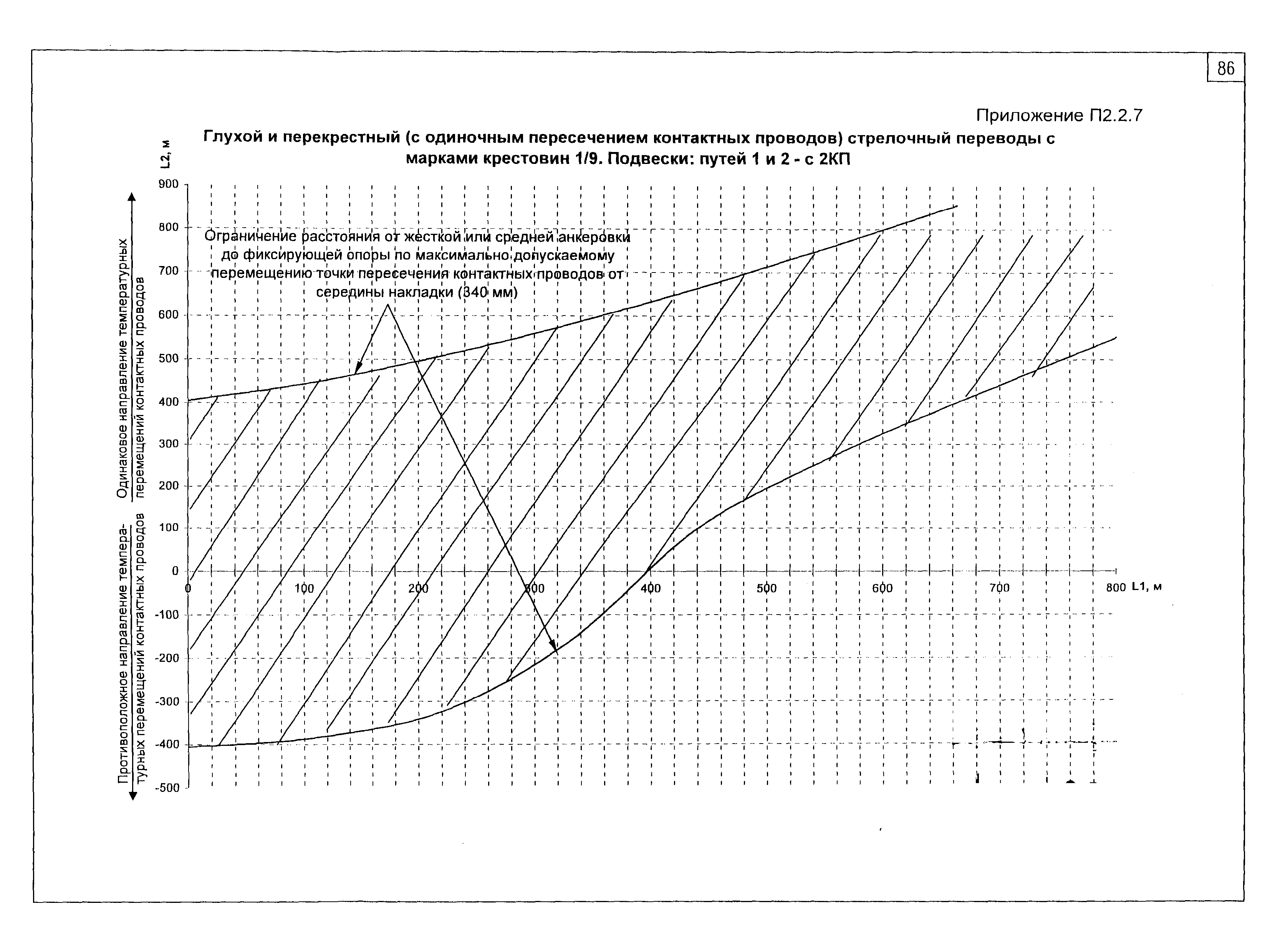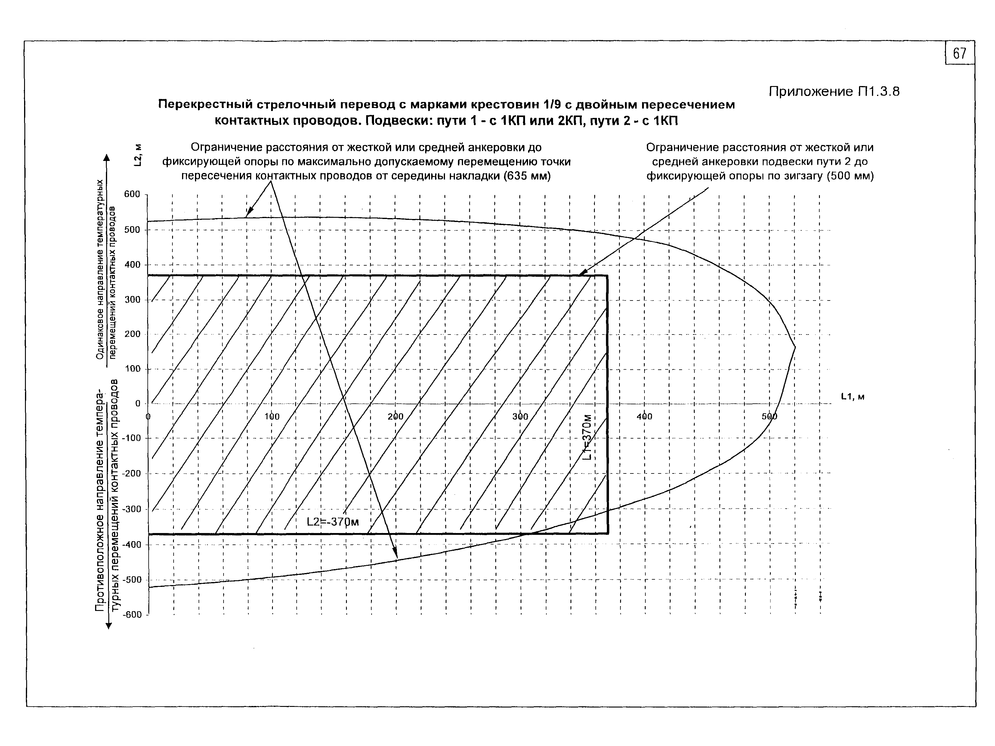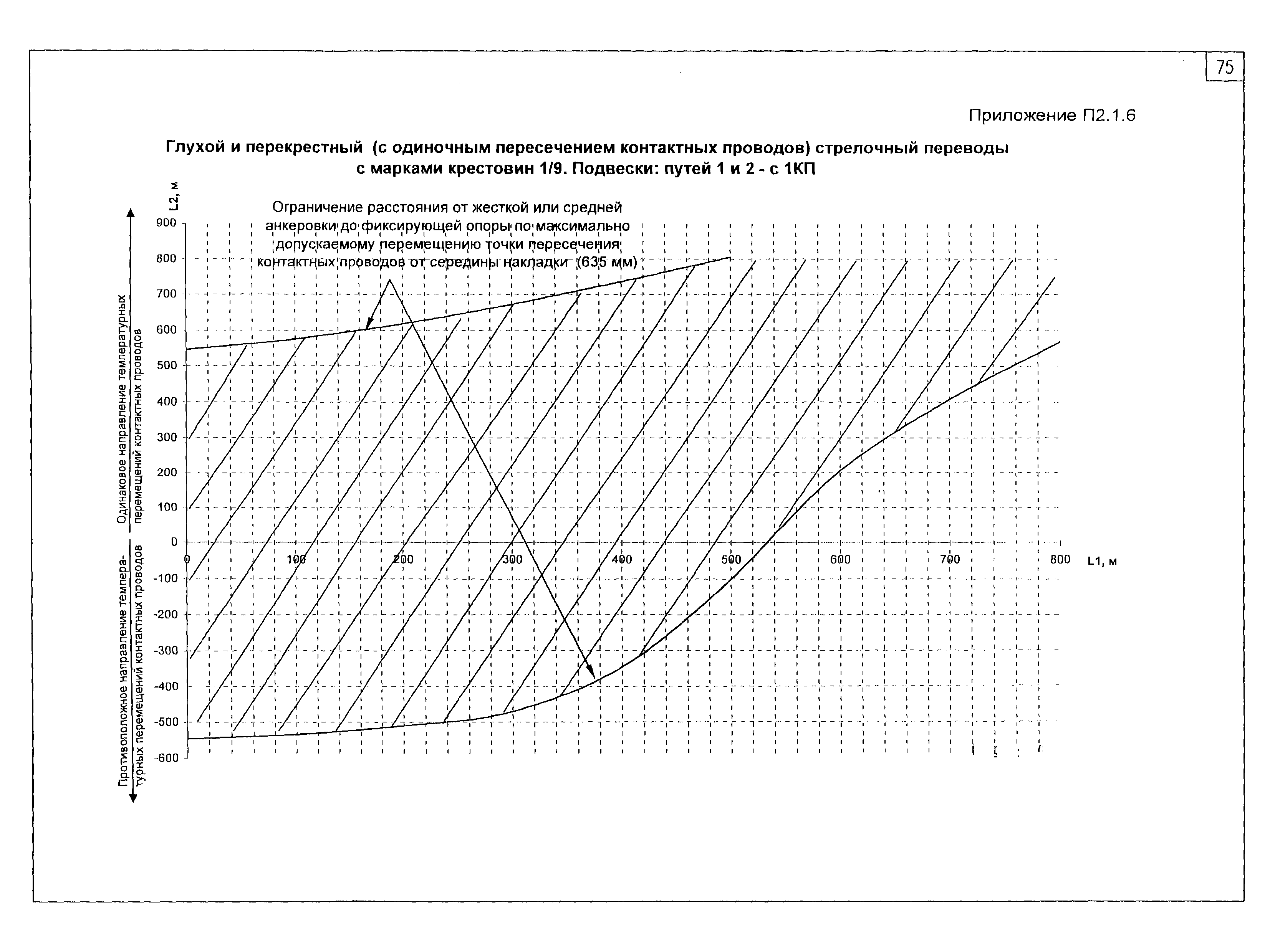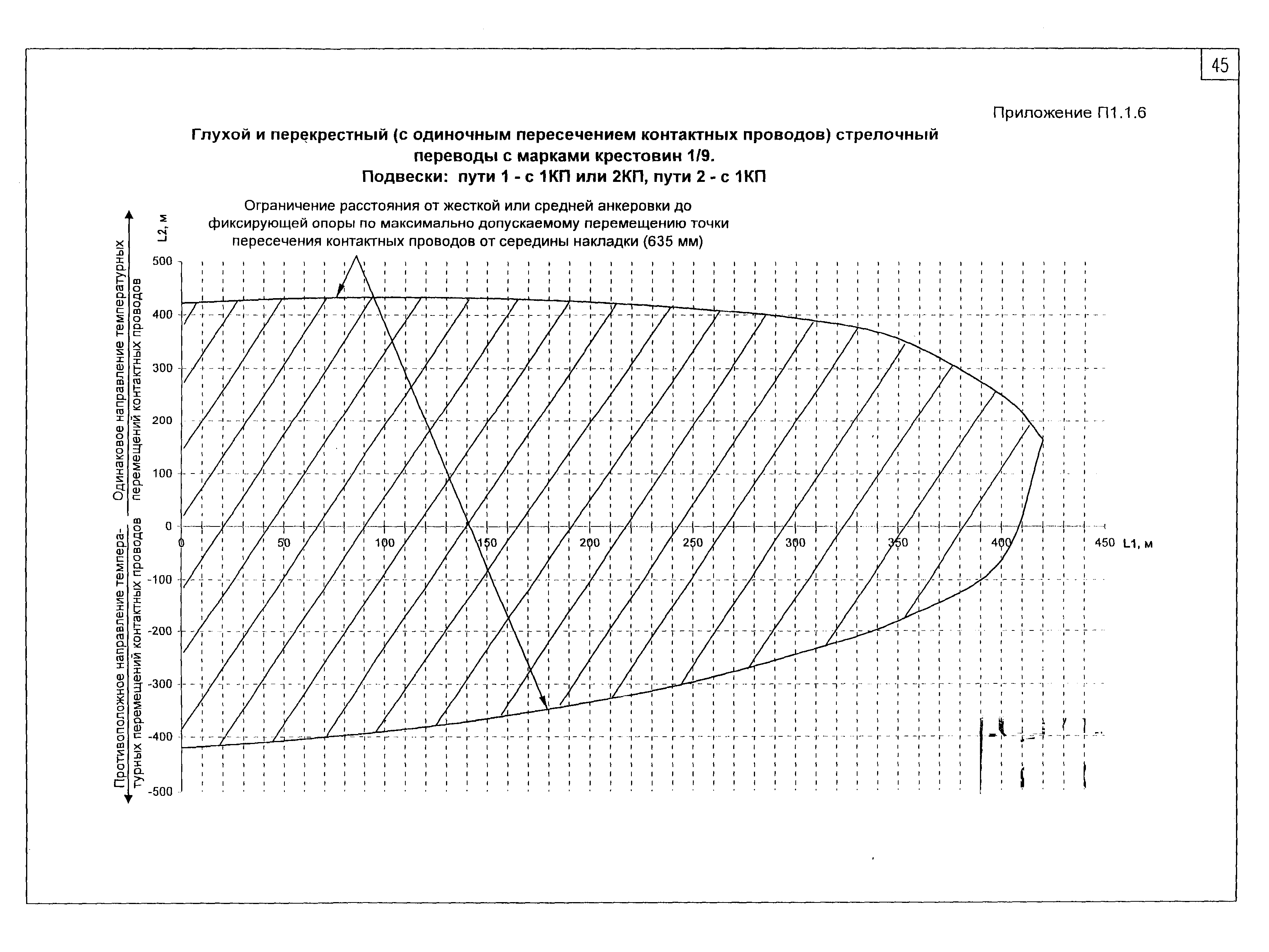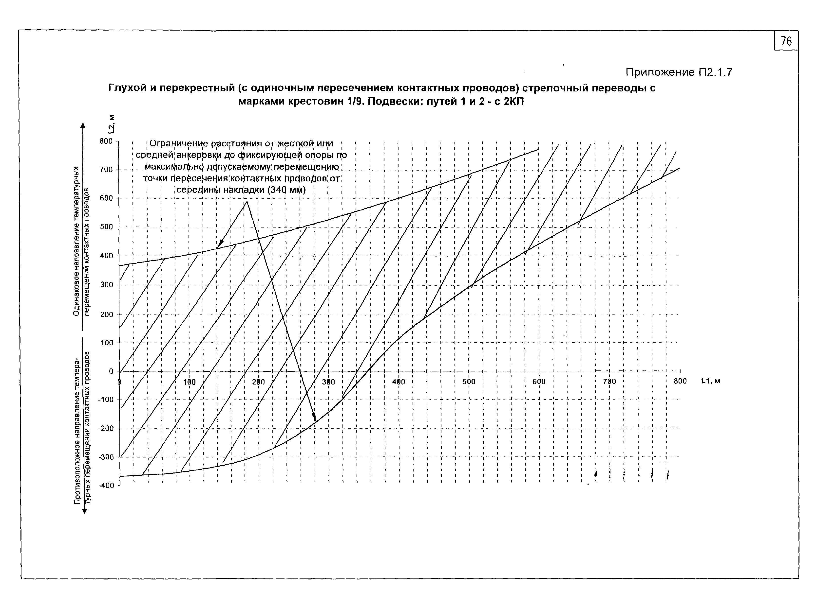 Инструктивные указания по монтажу, регулировке и проектированию воздушных стрелок| Статус: | не определен законодательством | | Название рус.: | Инструктивные указания по монтажу, регулировке и проектированию воздушных стрелок | | Дата добавления в базу: | 01.09.2013 | | Дата актуализации: | 01.01.2021 | | Дата введения: | 01.01.2007 | | Оглавление: | 1. Общие положения 2. Требования к устройству воздушных стрелок 2.1. Основные положения 2.2. Расположение в плане фиксирующей опоры и проводов, образующих воздушную стрелку, в зоне центра стрелочного перевода 2.3. Обеспечение свободного перемещения пересекающихся контактных проводов в расчетном интервале температур 2.4. Расположение контактных проводов и несущих тросов в зоне подхвата, выравнивание жесткостей пересекающихся подвесок 2.5. Схемы расстановки вертикальных и перекрестных струн, ограничителей подъема контактных проводов и электрических соединителей в зоне воздушных стрелок 3. Монтаж и регулировка воздушных 3.1. Первый этап 3.2. Второй этап 4. Рекомендации по эксплуатации и модернизации воздушных стрелок до реконструкции контактной сети на действующих участках 5. Техника безопасности 6. Проектирование контактной сети на станциях с учетом требований к устройству воздушных стрелок 6.1. Привязка фиксирующих опор (поперечин) к центрам стрелочных переводов, фиксация контактных проводов и несущих тросов 6.2. Разбивка опор и трассировка анкерных участков Приложения. Общие сведения, условные обозначения и сокращения Приложения П1.1.(П1.1.1-П1.1.9). Полукомпенсированная контактная подвеска. Графики ограничений расстояний от средних или жестких анкеровок до фиксирующей опоры. I температурный район Приложения П1.2.(П1.2.1-П1.2.9). Полукомпенсированная контактная подвеска. Графики ограничений расстояний от средних или жестких анкеровок до фиксирующей опоры. II температурный район Приложения П1.3.(П1.3.1-П1.3.9). Полукомпенсированная контактная подвеска. Графики ограничений расстояний от средних или жестких анкеровок до фиксирующей опоры. III температурный район Приложения П2.1.(П2.1.1-П2.1.9). Компенсированная контактная подвеска. Графики ограничения расстояний от средних или жестких анкеровок до фиксирующей опоры. I температурный район Приложения П2.2.(П2.2.1-П2.2.9). Компенсированная контактная подвеска. Графики ограничений расстояний от средних или жестких анкеровок до фиксирующей опоры. II температурный район Приложения П2.3.(П2.3.1-П2.3.9). Компенсированная контактная подвеска. Графики ограничений расстояний от средних или жестких анкеровок до фиксирующей опоры. III температурный район Приложение ПЗ. Условный план разбивки опор и анкерных участков на станции. Полукомпенсированная контактная подвеска (постоянный ток 3 кВ) | | Разработан: | Универсал-контактные сети
