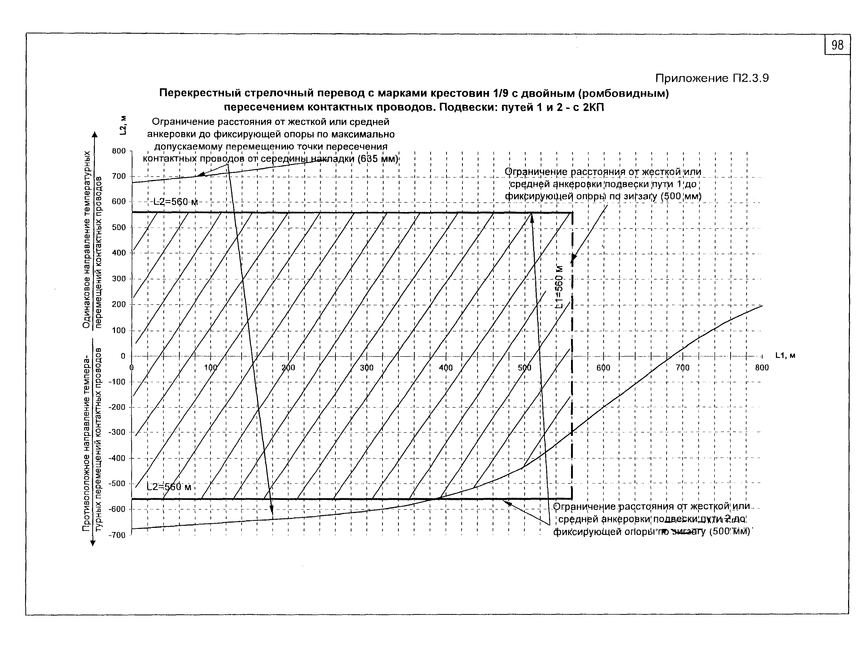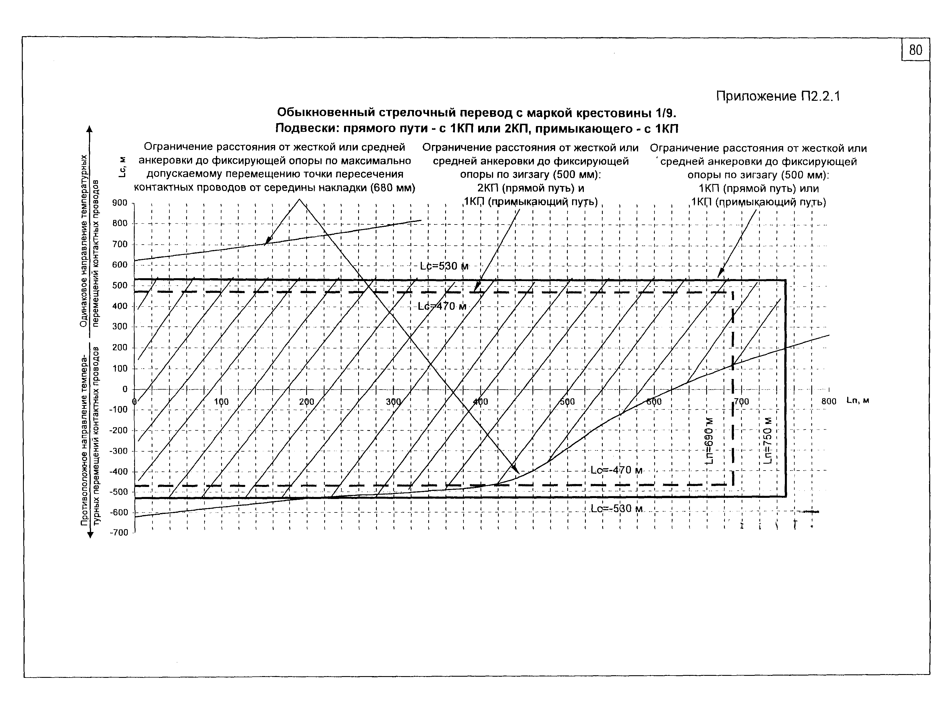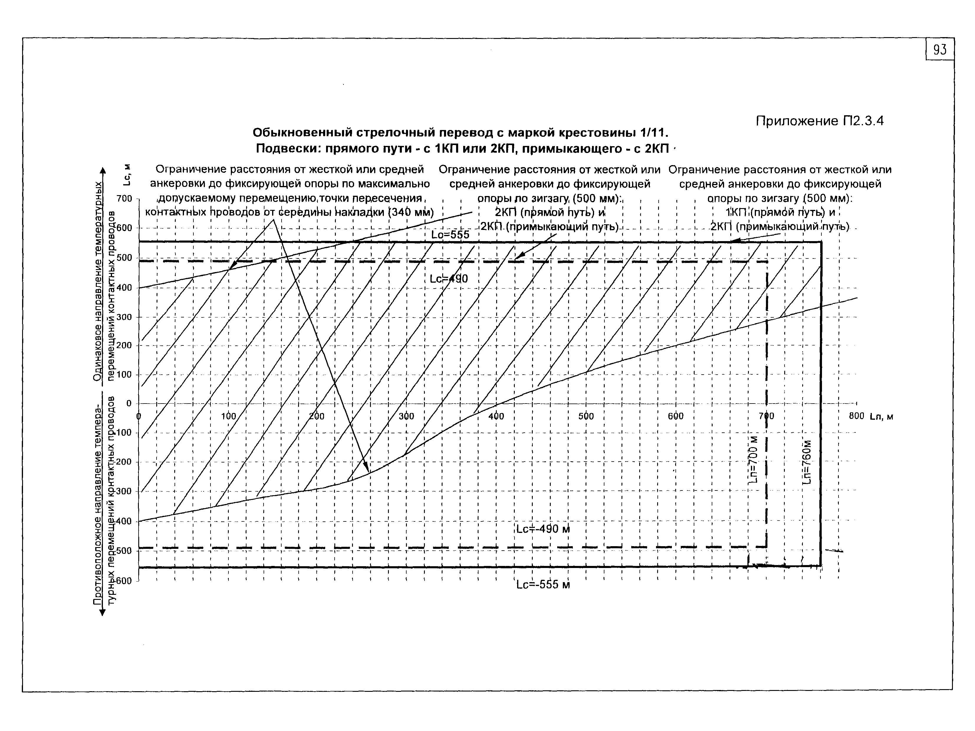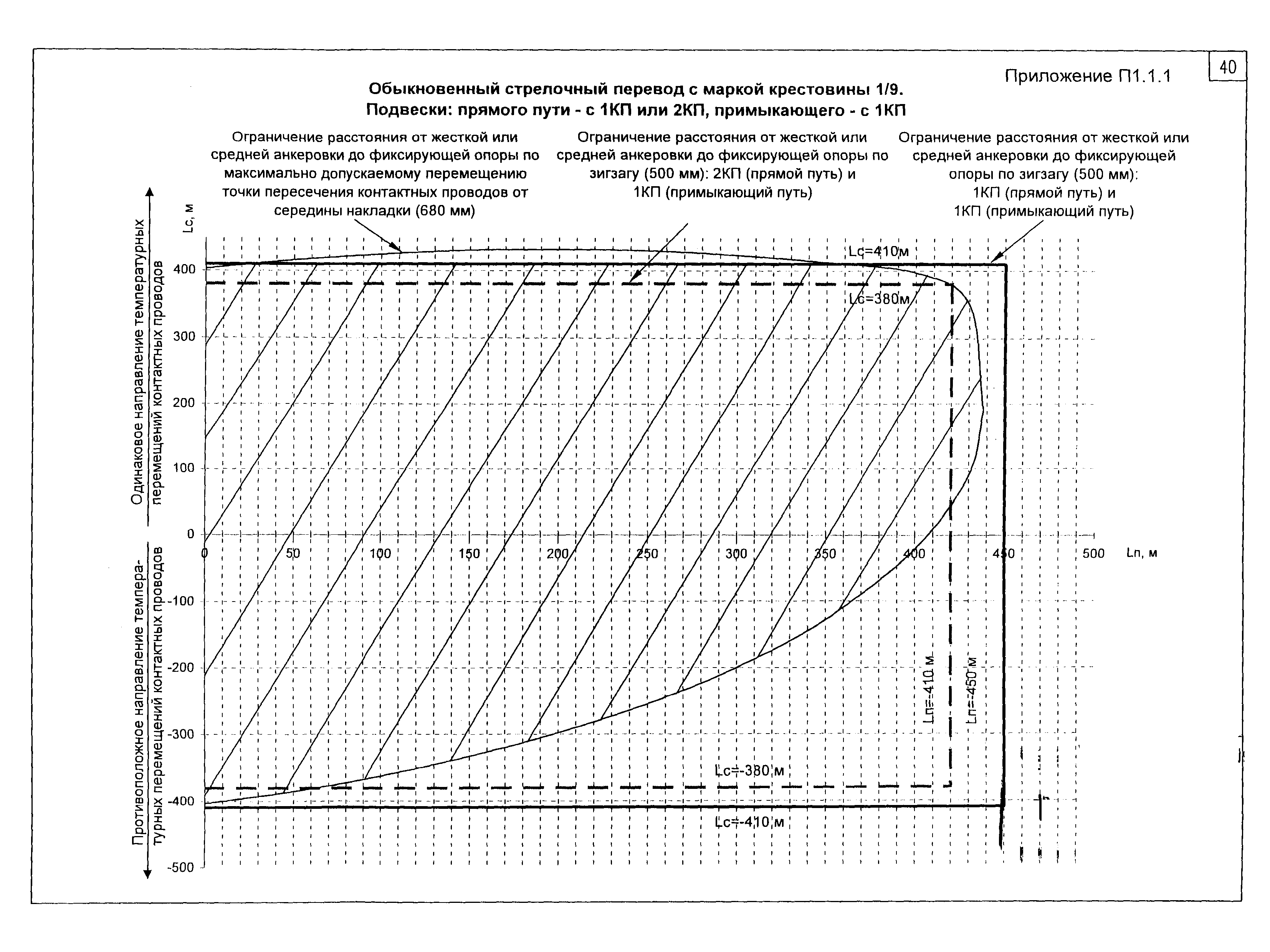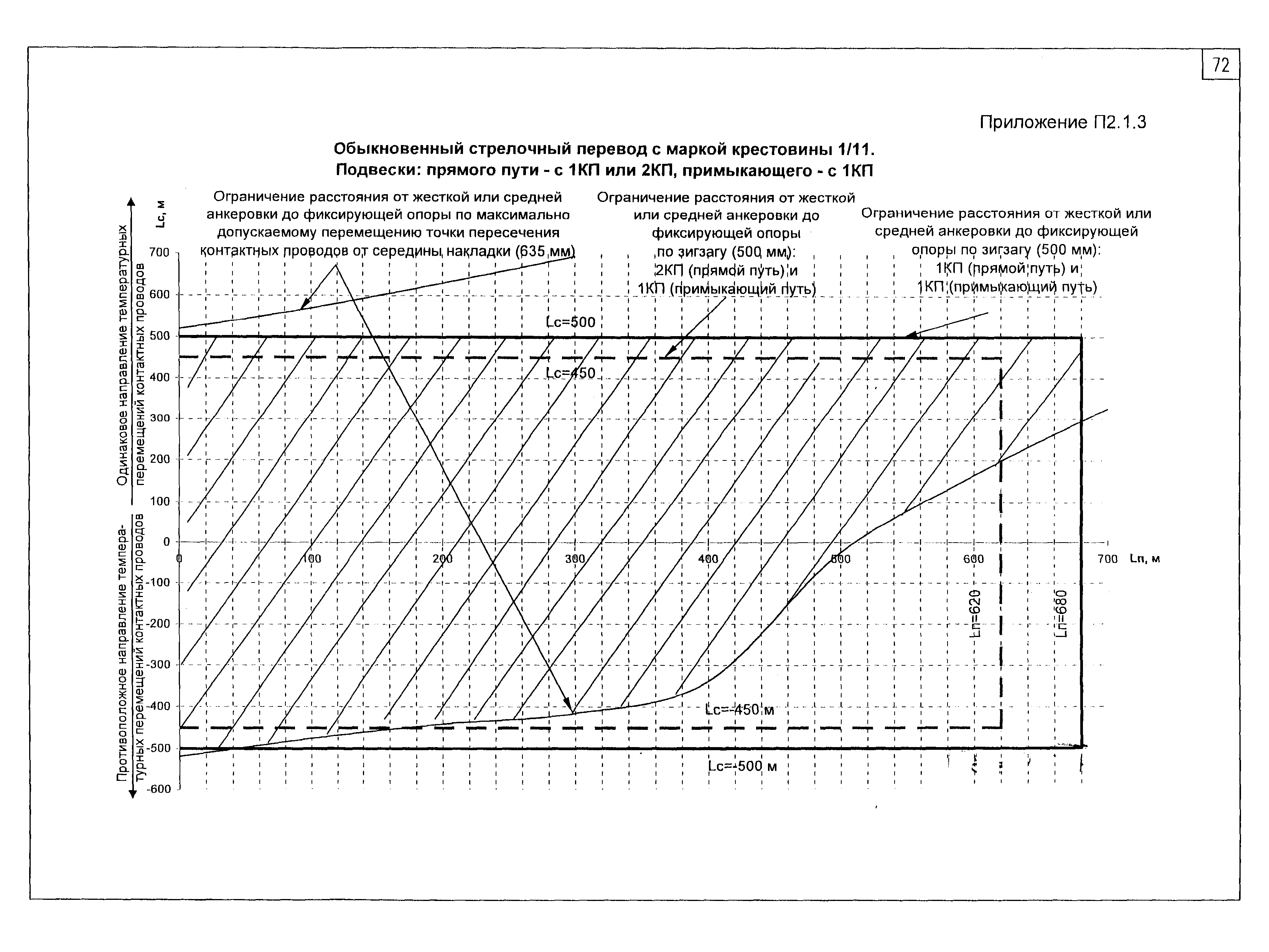Инструктивные указания по монтажу, регулировке и проектированию воздушных стрелок| Статус: | не определен законодательством | | Название рус.: | Инструктивные указания по монтажу, регулировке и проектированию воздушных стрелок | | Дата добавления в базу: | 01.09.2013 | | Дата актуализации: | 01.01.2021 | | Дата введения: | 01.01.2007 | | Оглавление: | 1. Общие положения 2. Требования к устройству воздушных стрелок 2.1. Основные положения 2.2. Расположение в плане фиксирующей опоры и проводов, образующих воздушную стрелку, в зоне центра стрелочного перевода 2.3. Обеспечение свободного перемещения пересекающихся контактных проводов в расчетном интервале температур 2.4. Расположение контактных проводов и несущих тросов в зоне подхвата, выравнивание жесткостей пересекающихся подвесок 2.5. Схемы расстановки вертикальных и перекрестных струн, ограничителей подъема контактных проводов и электрических соединителей в зоне воздушных стрелок 3. Монтаж и регулировка воздушных 3.1. Первый этап 3.2. Второй этап 4. Рекомендации по эксплуатации и модернизации воздушных стрелок до реконструкции контактной сети на действующих участках 5. Техника безопасности 6. Проектирование контактной сети на станциях с учетом требований к устройству воздушных стрелок 6.1. Привязка фиксирующих опор (поперечин) к центрам стрелочных переводов, фиксация контактных проводов и несущих тросов 6.2. Разбивка опор и трассировка анкерных участков Приложения. Общие сведения, условные обозначения и сокращения Приложения П1.1.(П1.1.1-П1.1.9). Полукомпенсированная контактная подвеска. Графики ограничений расстояний от средних или жестких анкеровок до фиксирующей опоры. I температурный район Приложения П1.2.(П1.2.1-П1.2.9). Полукомпенсированная контактная подвеска. Графики ограничений расстояний от средних или жестких анкеровок до фиксирующей опоры. II температурный район Приложения П1.3.(П1.3.1-П1.3.9). Полукомпенсированная контактная подвеска. Графики ограничений расстояний от средних или жестких анкеровок до фиксирующей опоры. III температурный район Приложения П2.1.(П2.1.1-П2.1.9). Компенсированная контактная подвеска. Графики ограничения расстояний от средних или жестких анкеровок до фиксирующей опоры. I температурный район Приложения П2.2.(П2.2.1-П2.2.9). Компенсированная контактная подвеска. Графики ограничений расстояний от средних или жестких анкеровок до фиксирующей опоры. II температурный район Приложения П2.3.(П2.3.1-П2.3.9). Компенсированная контактная подвеска. Графики ограничений расстояний от средних или жестких анкеровок до фиксирующей опоры. III температурный район Приложение ПЗ. Условный план разбивки опор и анкерных участков на станции. Полукомпенсированная контактная подвеска (постоянный ток 3 кВ) | | Разработан: | Универсал-контактные сети