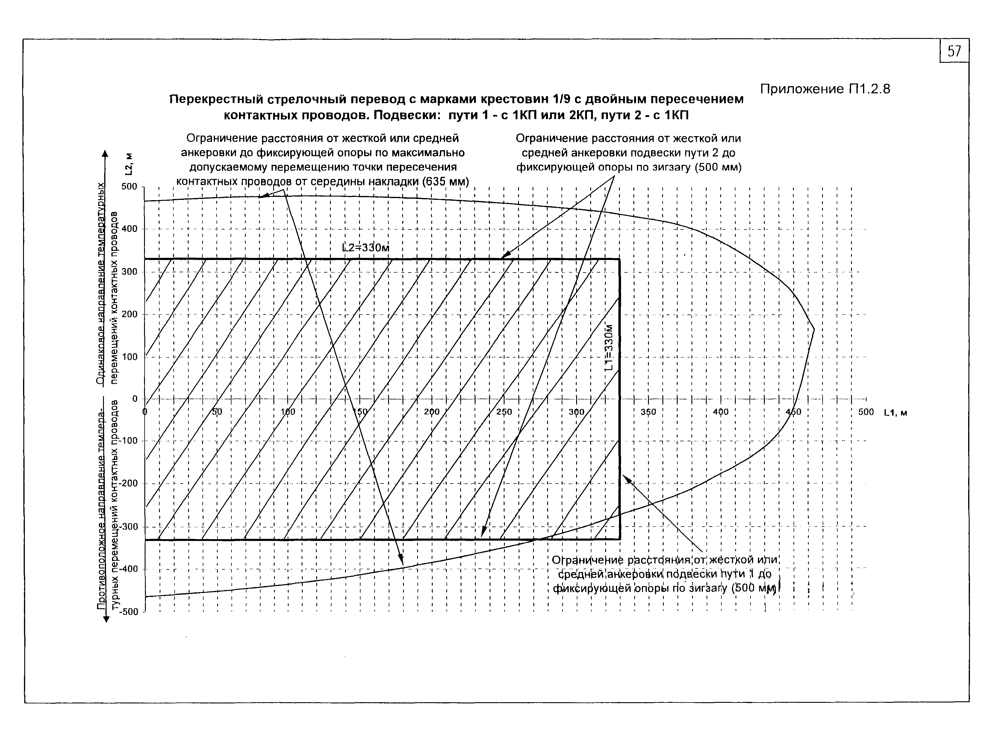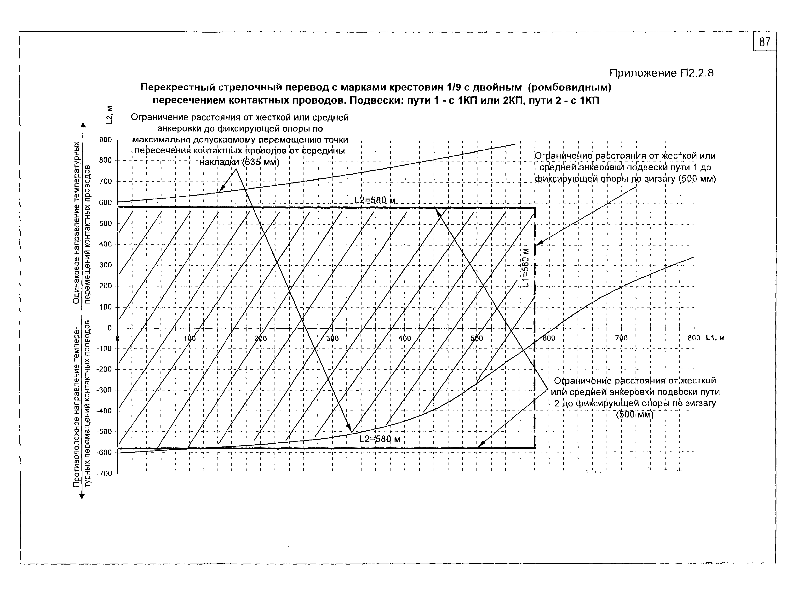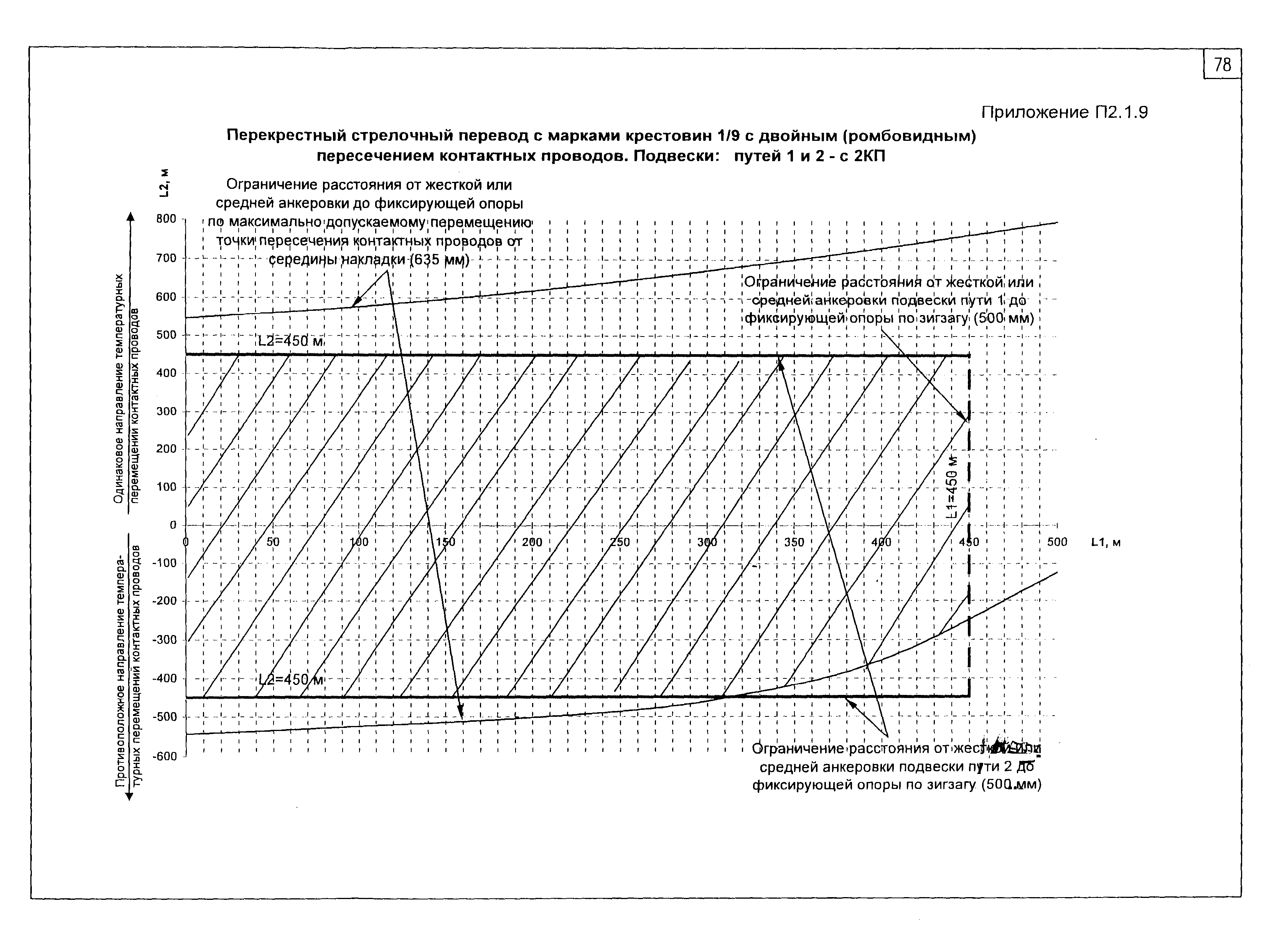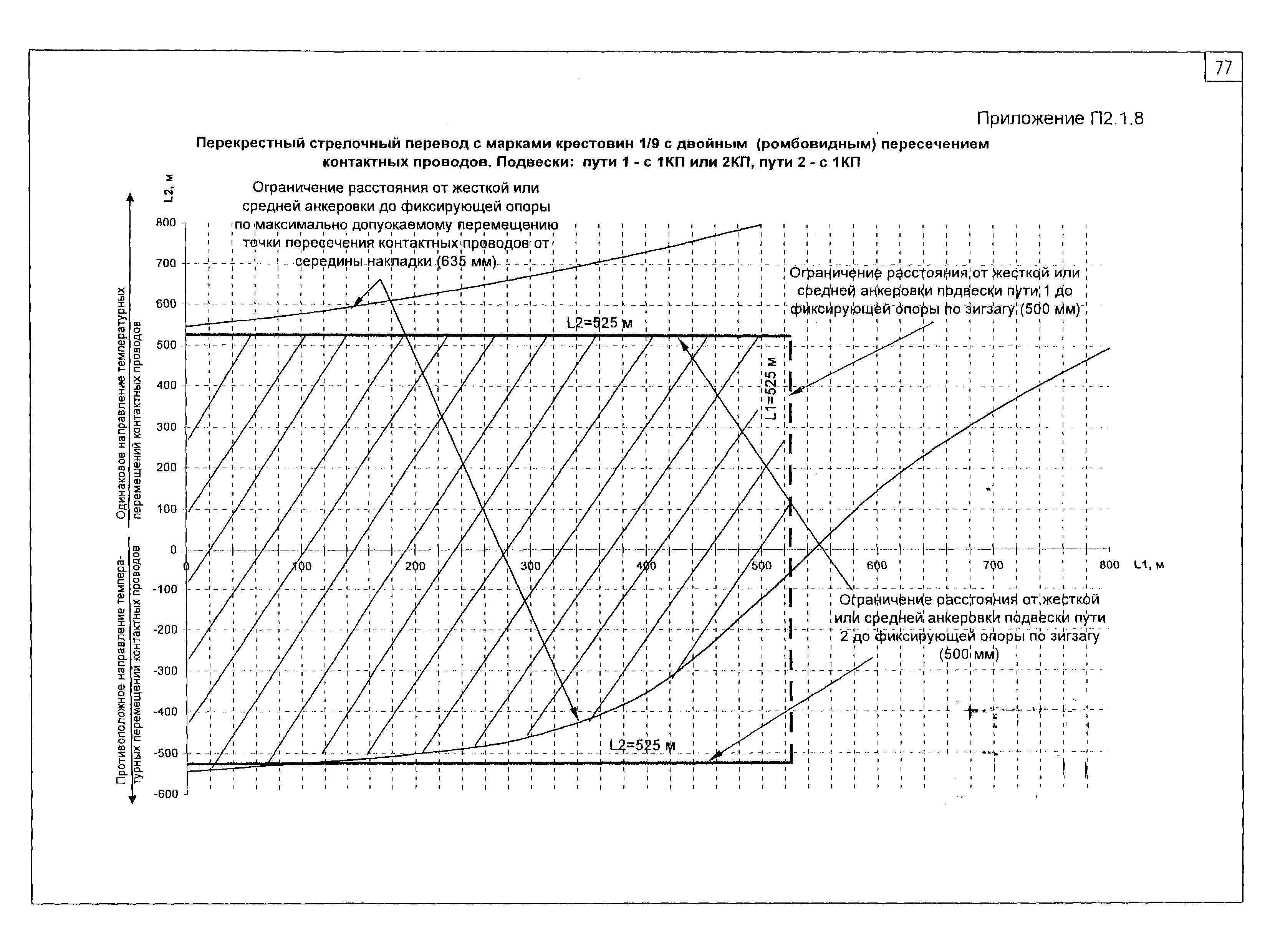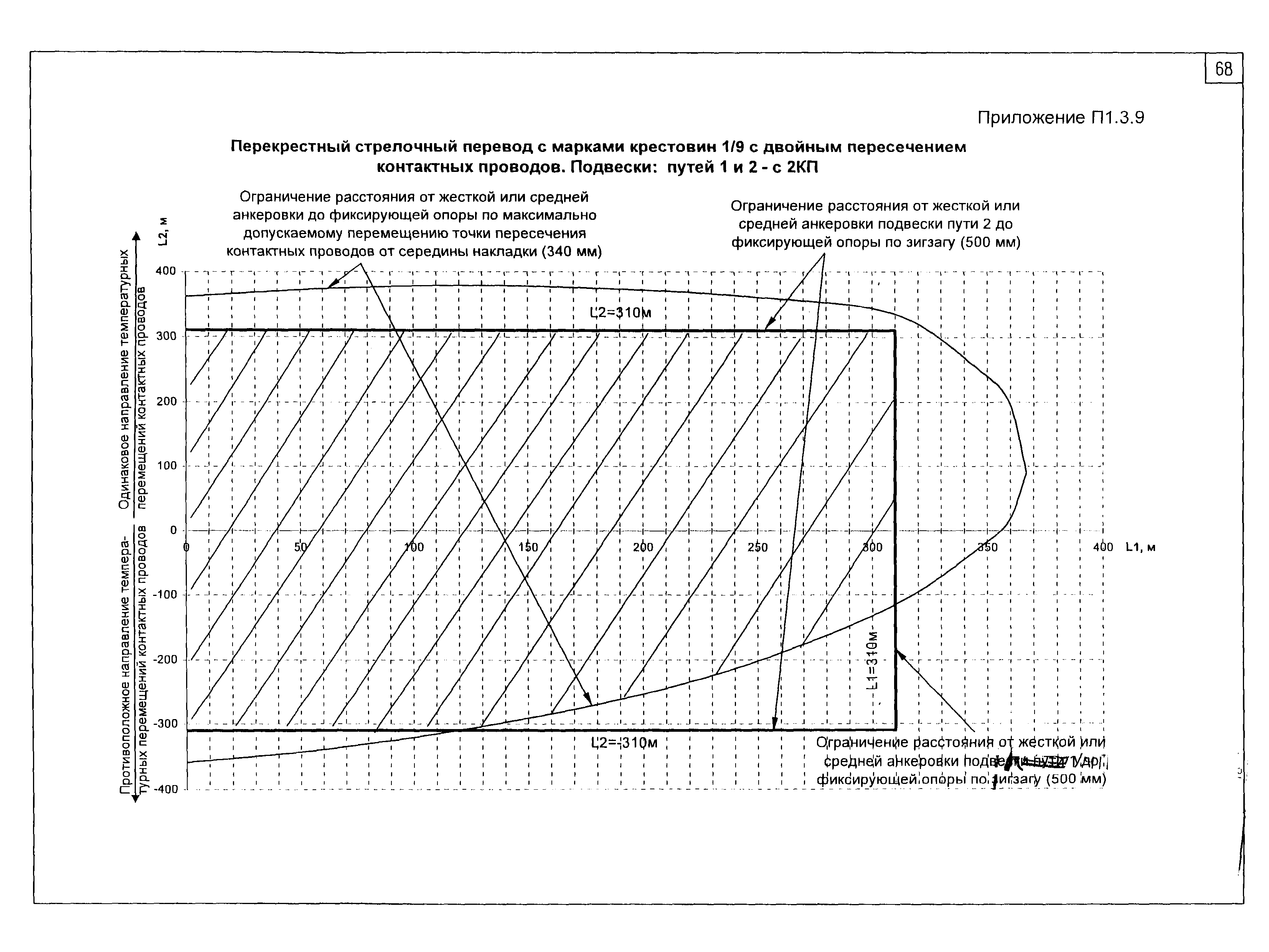 Инструктивные указания по монтажу, регулировке и проектированию воздушных стрелок| Статус: | не определен законодательством | | Название рус.: | Инструктивные указания по монтажу, регулировке и проектированию воздушных стрелок | | Дата добавления в базу: | 01.09.2013 | | Дата актуализации: | 01.01.2021 | | Дата введения: | 01.01.2007 | | Оглавление: | 1. Общие положения 2. Требования к устройству воздушных стрелок 2.1. Основные положения 2.2. Расположение в плане фиксирующей опоры и проводов, образующих воздушную стрелку, в зоне центра стрелочного перевода 2.3. Обеспечение свободного перемещения пересекающихся контактных проводов в расчетном интервале температур 2.4. Расположение контактных проводов и несущих тросов в зоне подхвата, выравнивание жесткостей пересекающихся подвесок 2.5. Схемы расстановки вертикальных и перекрестных струн, ограничителей подъема контактных проводов и электрических соединителей в зоне воздушных стрелок 3. Монтаж и регулировка воздушных 3.1. Первый этап 3.2. Второй этап 4. Рекомендации по эксплуатации и модернизации воздушных стрелок до реконструкции контактной сети на действующих участках 5. Техника безопасности 6. Проектирование контактной сети на станциях с учетом требований к устройству воздушных стрелок 6.1. Привязка фиксирующих опор (поперечин) к центрам стрелочных переводов, фиксация контактных проводов и несущих тросов 6.2. Разбивка опор и трассировка анкерных участков Приложения. Общие сведения, условные обозначения и сокращения Приложения П1.1.(П1.1.1-П1.1.9). Полукомпенсированная контактная подвеска. Графики ограничений расстояний от средних или жестких анкеровок до фиксирующей опоры. I температурный район Приложения П1.2.(П1.2.1-П1.2.9). Полукомпенсированная контактная подвеска. Графики ограничений расстояний от средних или жестких анкеровок до фиксирующей опоры. II температурный район Приложения П1.3.(П1.3.1-П1.3.9). Полукомпенсированная контактная подвеска. Графики ограничений расстояний от средних или жестких анкеровок до фиксирующей опоры. III температурный район Приложения П2.1.(П2.1.1-П2.1.9). Компенсированная контактная подвеска. Графики ограничения расстояний от средних или жестких анкеровок до фиксирующей опоры. I температурный район Приложения П2.2.(П2.2.1-П2.2.9). Компенсированная контактная подвеска. Графики ограничений расстояний от средних или жестких анкеровок до фиксирующей опоры. II температурный район Приложения П2.3.(П2.3.1-П2.3.9). Компенсированная контактная подвеска. Графики ограничений расстояний от средних или жестких анкеровок до фиксирующей опоры. III температурный район Приложение ПЗ. Условный план разбивки опор и анкерных участков на станции. Полукомпенсированная контактная подвеска (постоянный ток 3 кВ) | | Разработан: | Универсал-контактные сети