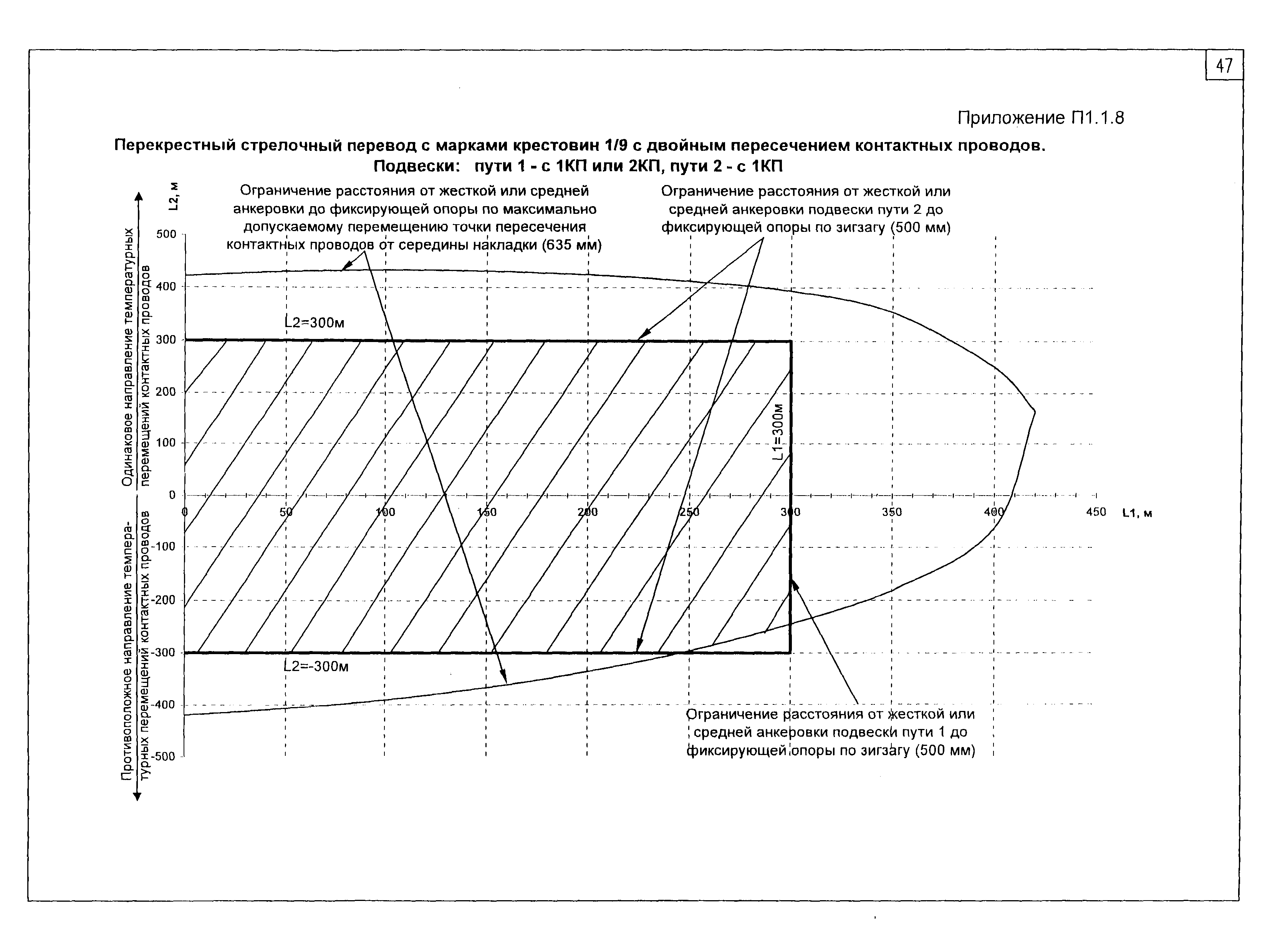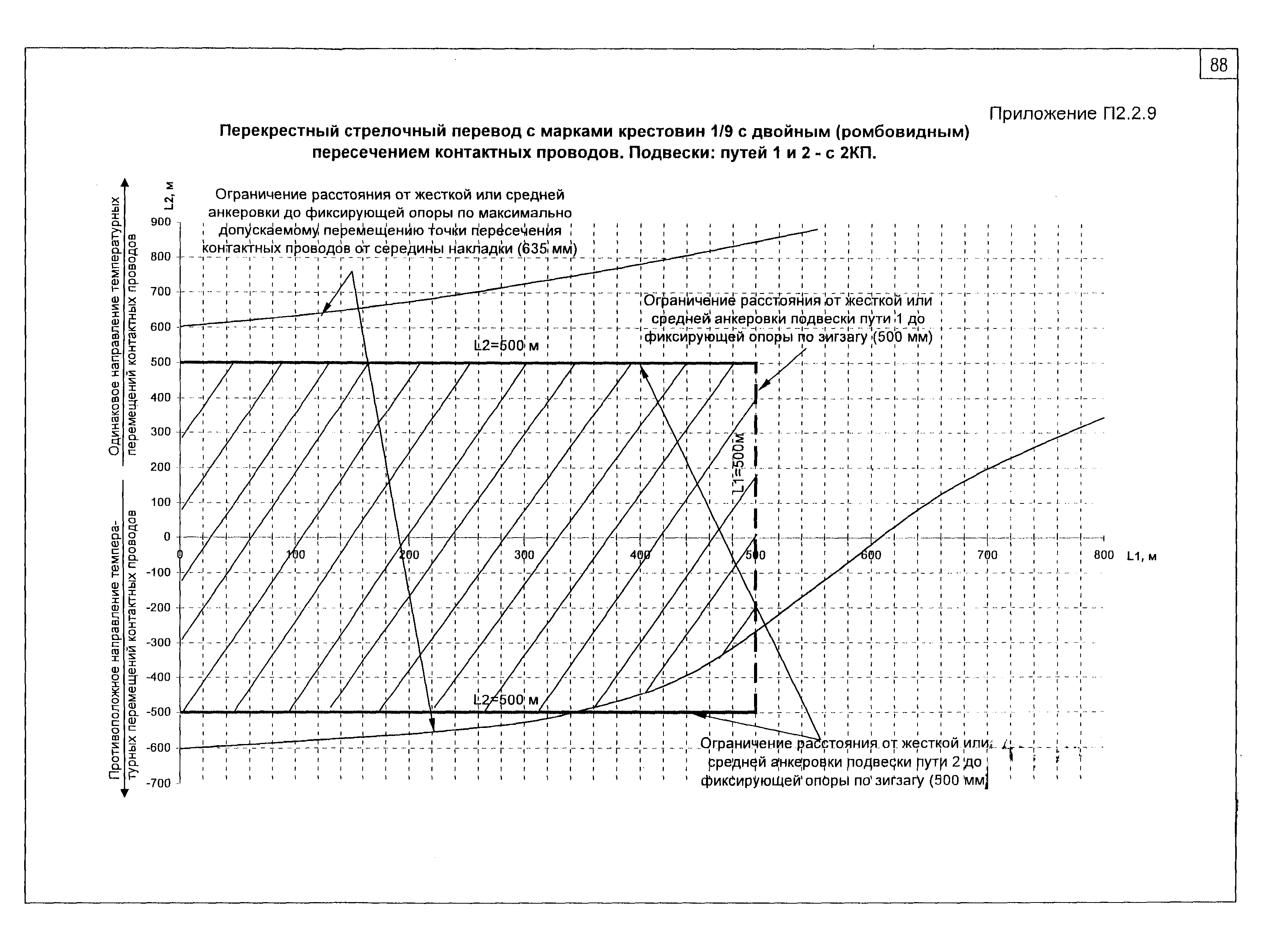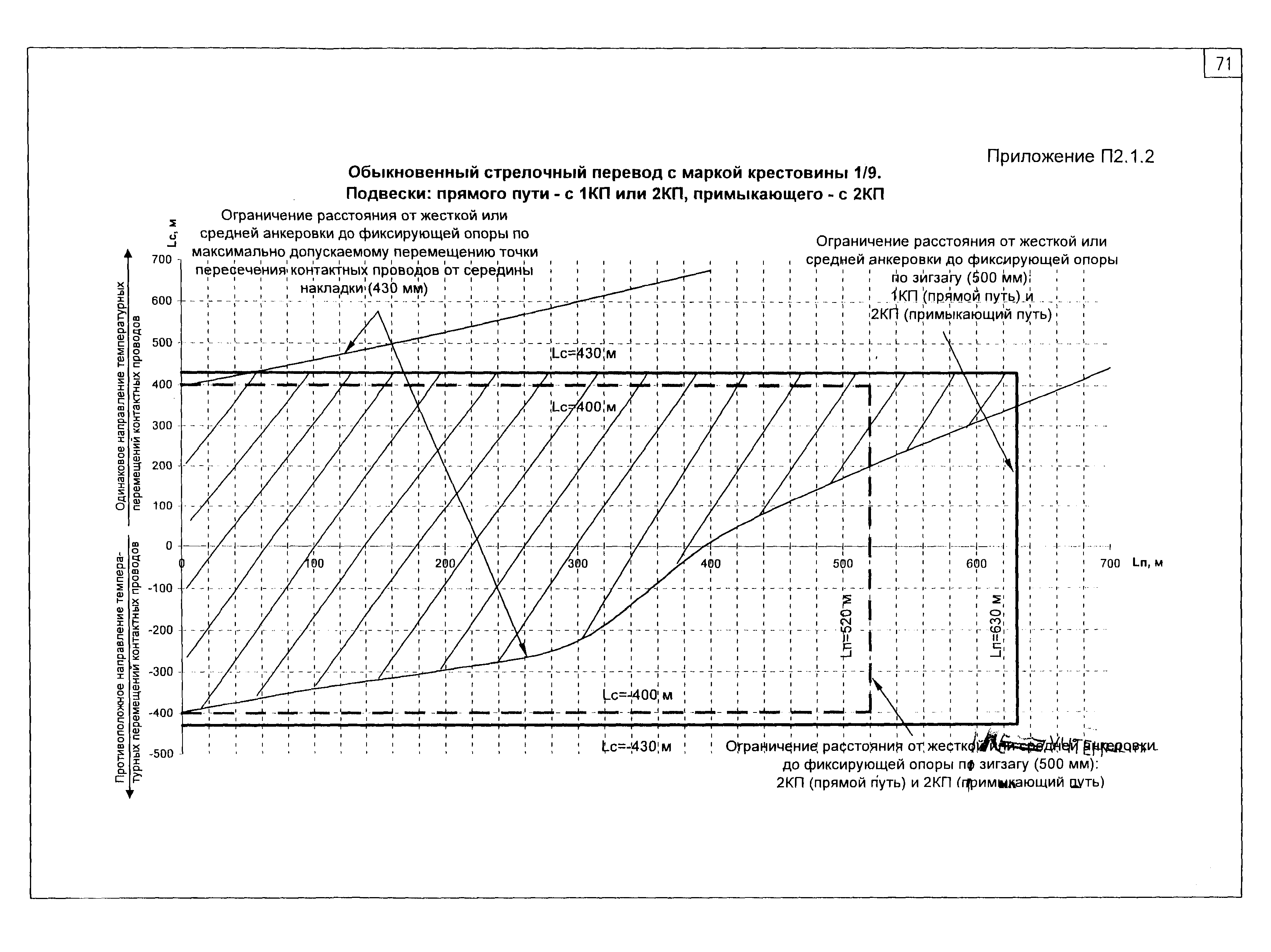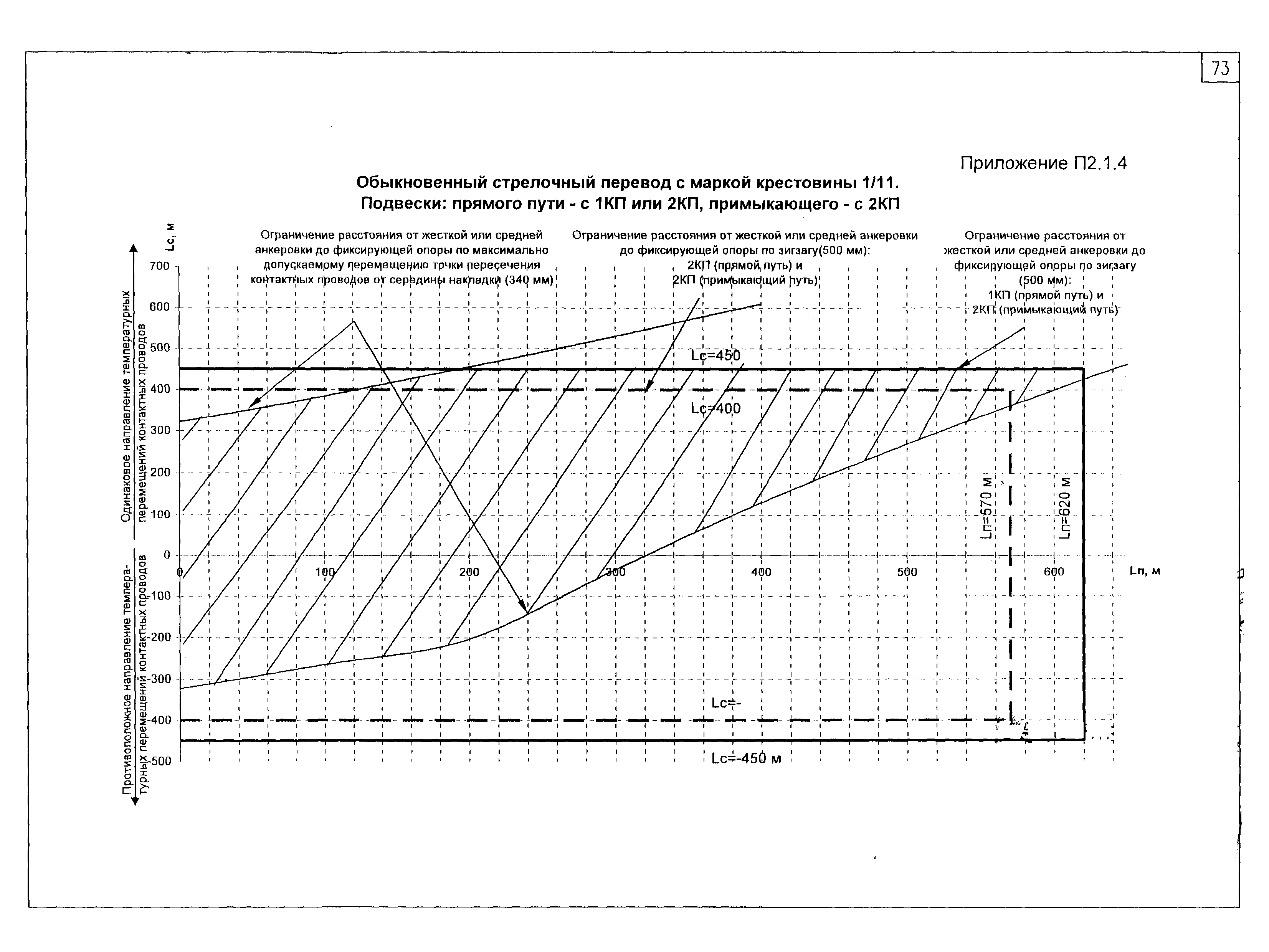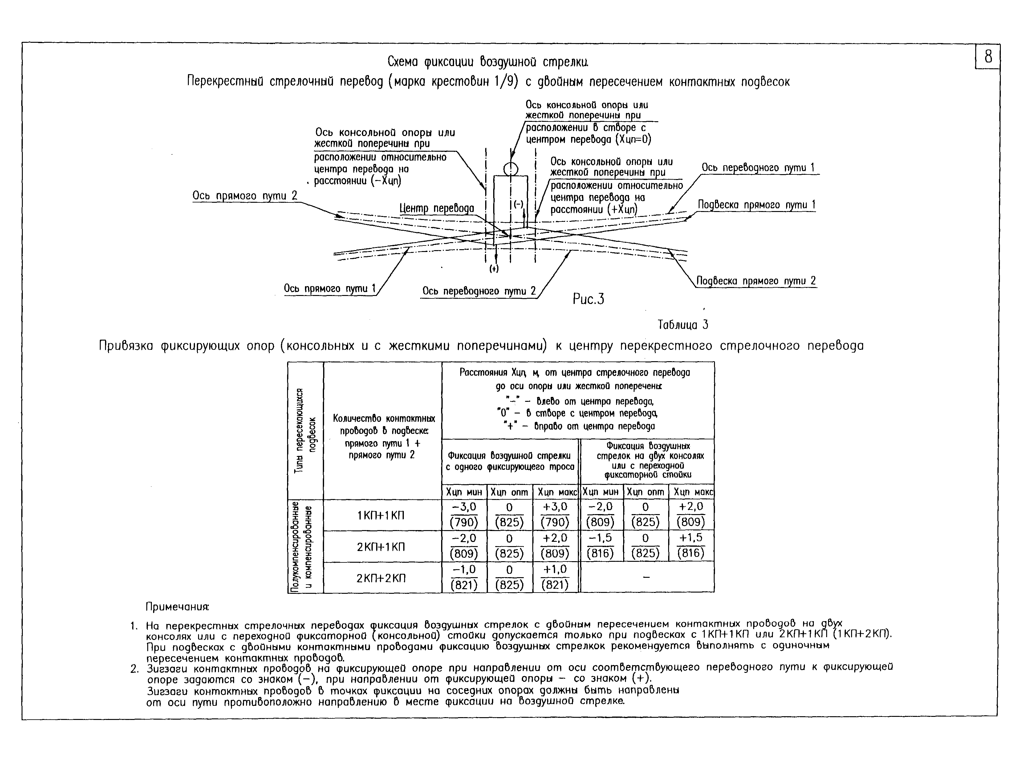 Инструктивные указания по монтажу, регулировке и проектированию воздушных стрелок| Статус: | не определен законодательством | | Название рус.: | Инструктивные указания по монтажу, регулировке и проектированию воздушных стрелок | | Дата добавления в базу: | 01.09.2013 | | Дата актуализации: | 01.01.2021 | | Дата введения: | 01.01.2007 | | Оглавление: | 1. Общие положения 2. Требования к устройству воздушных стрелок 2.1. Основные положения 2.2. Расположение в плане фиксирующей опоры и проводов, образующих воздушную стрелку, в зоне центра стрелочного перевода 2.3. Обеспечение свободного перемещения пересекающихся контактных проводов в расчетном интервале температур 2.4. Расположение контактных проводов и несущих тросов в зоне подхвата, выравнивание жесткостей пересекающихся подвесок 2.5. Схемы расстановки вертикальных и перекрестных струн, ограничителей подъема контактных проводов и электрических соединителей в зоне воздушных стрелок 3. Монтаж и регулировка воздушных 3.1. Первый этап 3.2. Второй этап 4. Рекомендации по эксплуатации и модернизации воздушных стрелок до реконструкции контактной сети на действующих участках 5. Техника безопасности 6. Проектирование контактной сети на станциях с учетом требований к устройству воздушных стрелок 6.1. Привязка фиксирующих опор (поперечин) к центрам стрелочных переводов, фиксация контактных проводов и несущих тросов 6.2. Разбивка опор и трассировка анкерных участков Приложения. Общие сведения, условные обозначения и сокращения Приложения П1.1.(П1.1.1-П1.1.9). Полукомпенсированная контактная подвеска. Графики ограничений расстояний от средних или жестких анкеровок до фиксирующей опоры. I температурный район Приложения П1.2.(П1.2.1-П1.2.9). Полукомпенсированная контактная подвеска. Графики ограничений расстояний от средних или жестких анкеровок до фиксирующей опоры. II температурный район Приложения П1.3.(П1.3.1-П1.3.9). Полукомпенсированная контактная подвеска. Графики ограничений расстояний от средних или жестких анкеровок до фиксирующей опоры. III температурный район Приложения П2.1.(П2.1.1-П2.1.9). Компенсированная контактная подвеска. Графики ограничения расстояний от средних или жестких анкеровок до фиксирующей опоры. I температурный район Приложения П2.2.(П2.2.1-П2.2.9). Компенсированная контактная подвеска. Графики ограничений расстояний от средних или жестких анкеровок до фиксирующей опоры. II температурный район Приложения П2.3.(П2.3.1-П2.3.9). Компенсированная контактная подвеска. Графики ограничений расстояний от средних или жестких анкеровок до фиксирующей опоры. III температурный район Приложение ПЗ. Условный план разбивки опор и анкерных участков на станции. Полукомпенсированная контактная подвеска (постоянный ток 3 кВ) | | Разработан: | Универсал-контактные сети