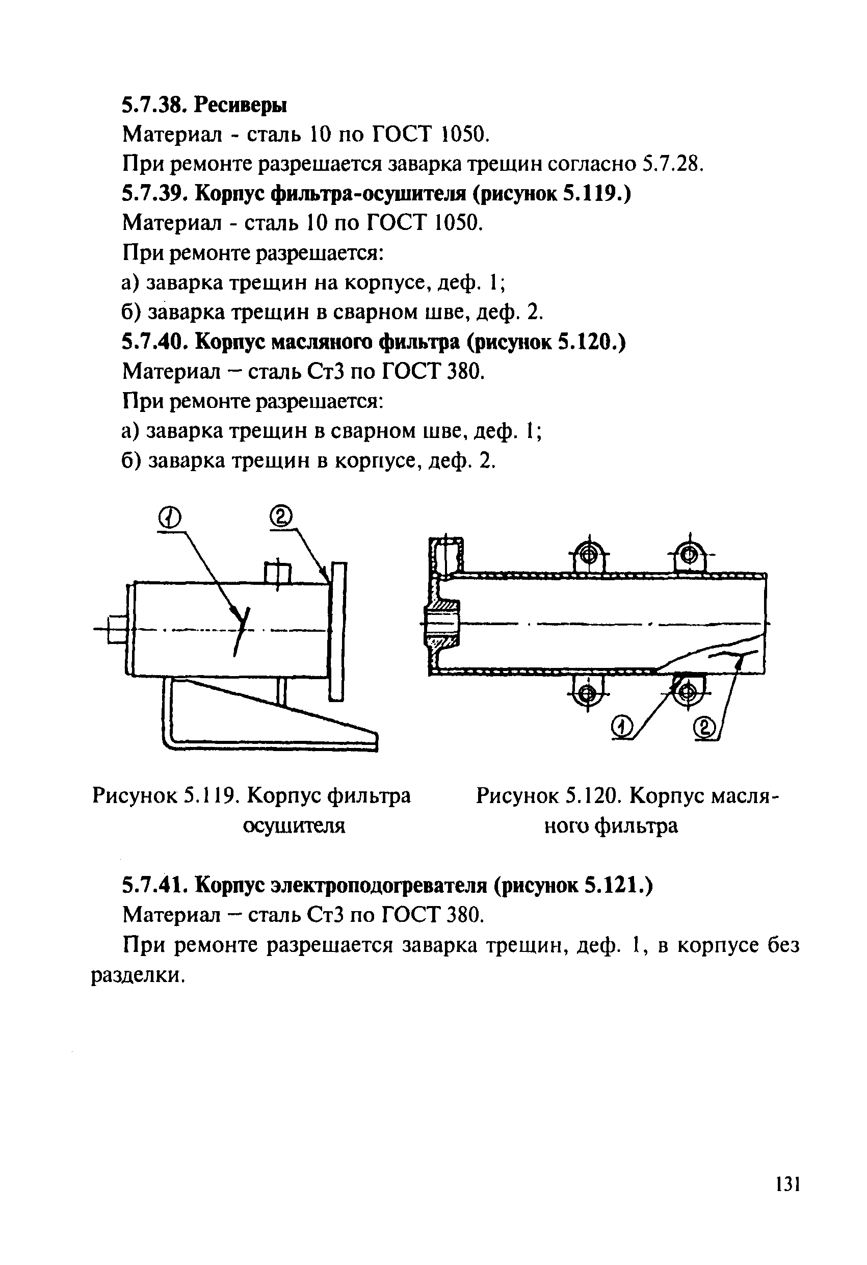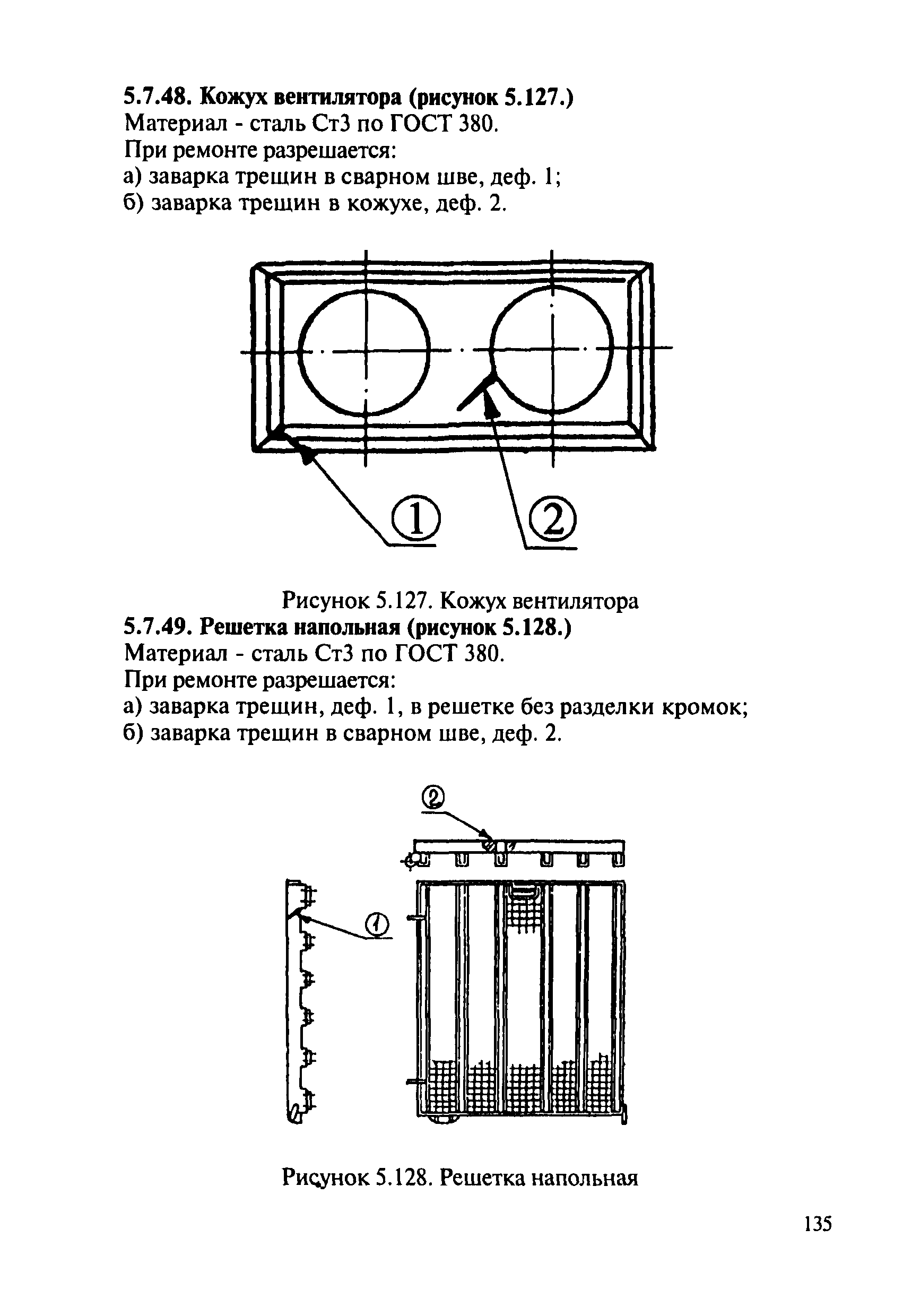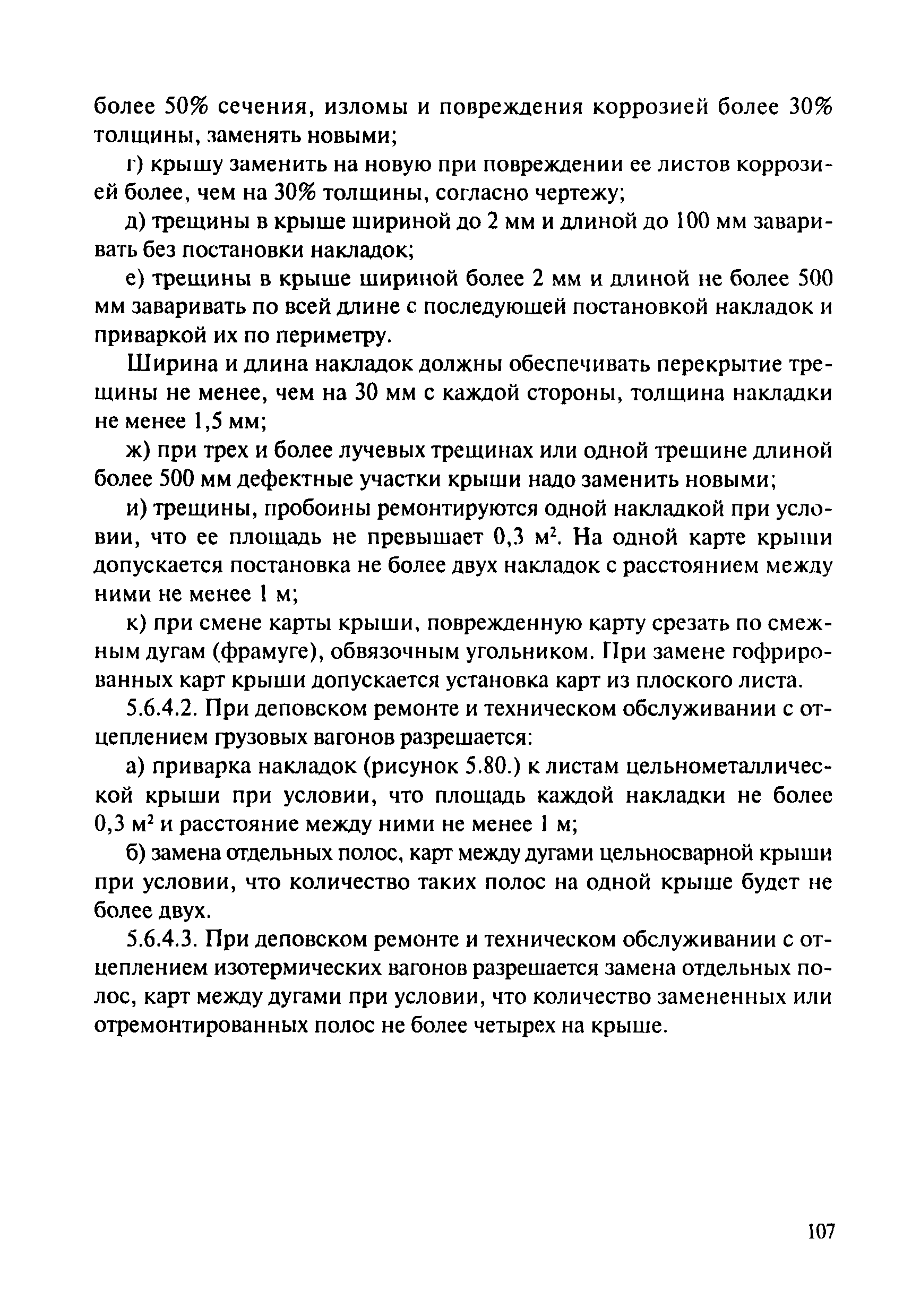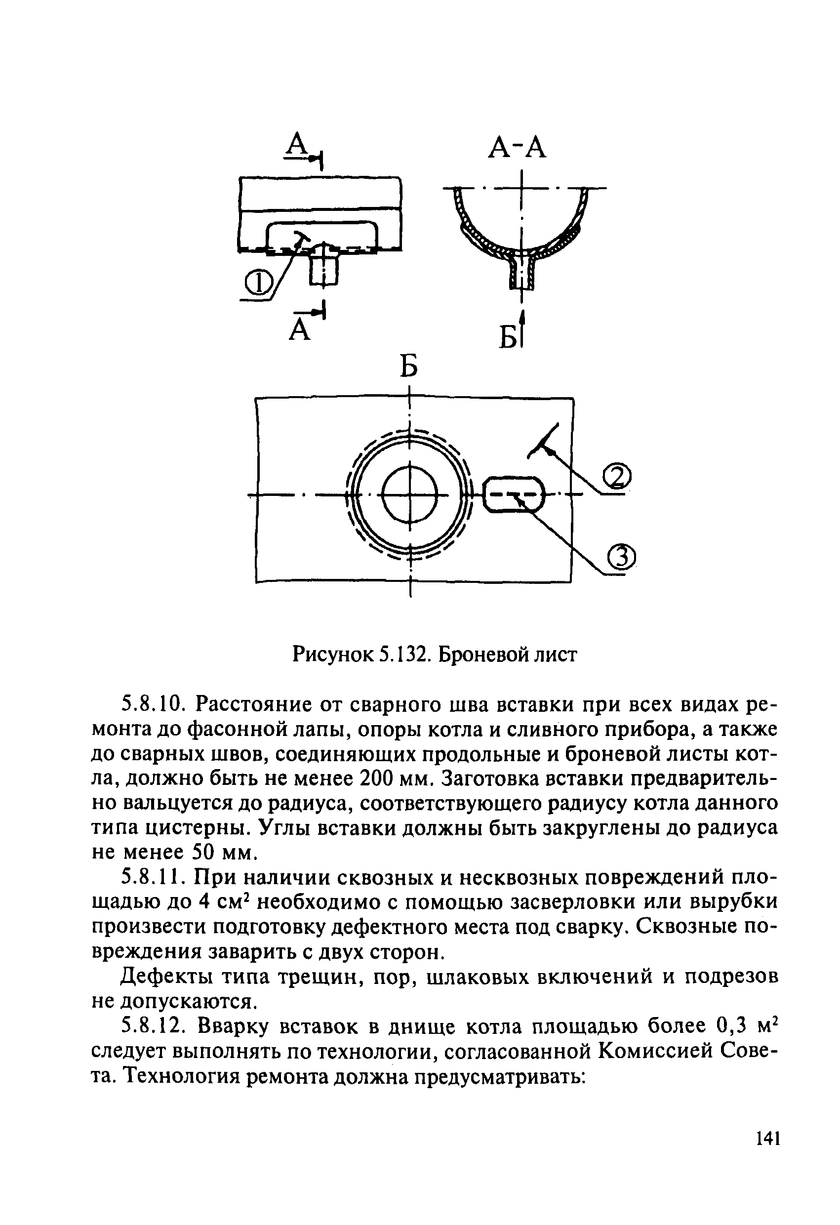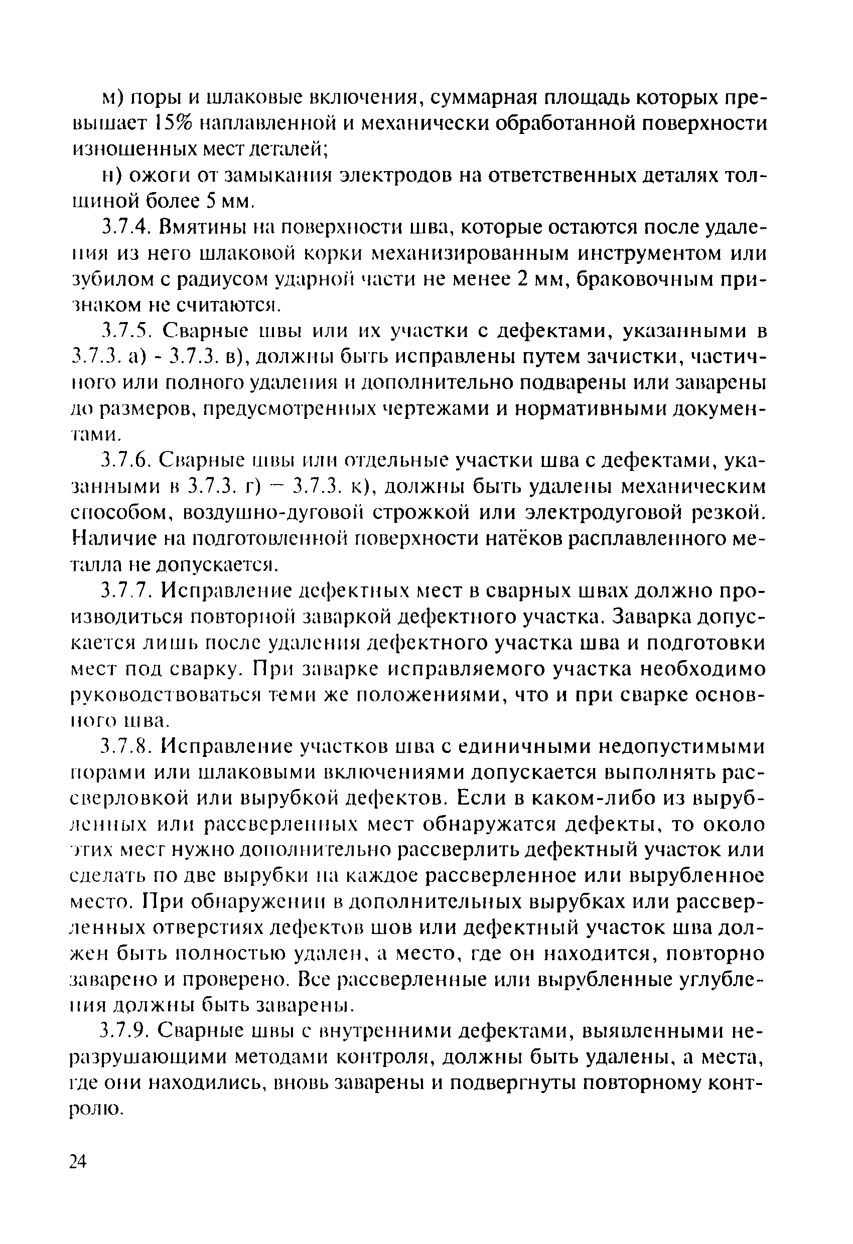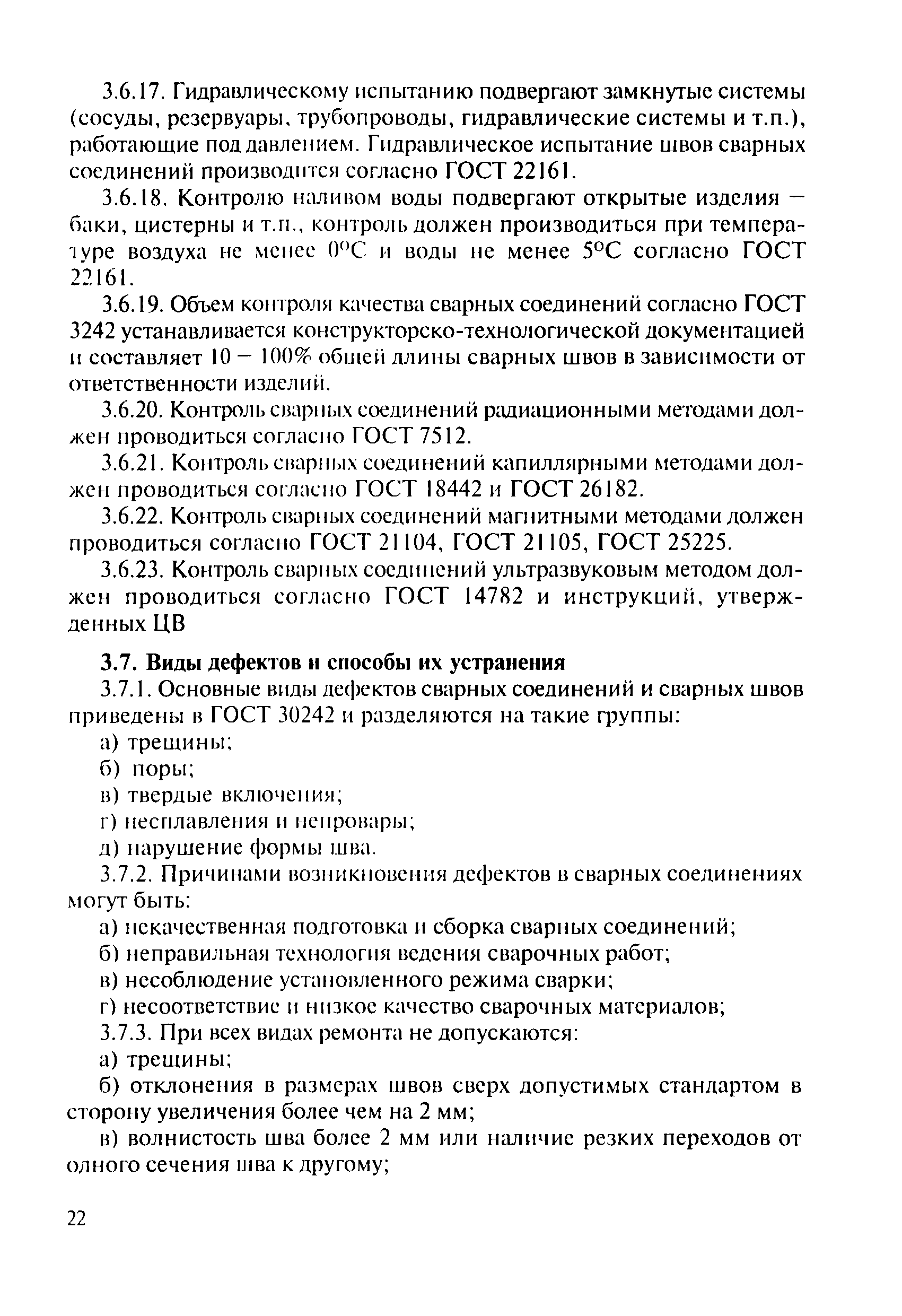 | Оглавление: | 1. Область применения 2. Нормативные ссылки 3. Основные указания по организации и выполнению сварочно-наплавочных работ 3.1 Организация сварочно-наплавочных работ 3.2 Общие требования к проведению сварочно-наплавочных работ 3.3 Подготовка узлов и деталей вагонов к сварке и наплавке 3.4 Наплавка изношенных поверхностей 3.5 Сварка 3.6 Контроль качества сварных соединений 3.7 Виды дефектов и способы их устранения 3.8 Заварка трещин и усиление поврежденных мест 3.9 Приемка выполненных работ 4. Требования безопасности и охраны окружающей среды 5. Требования к ремонту сваркой деталей и узлов 5.1 Тележка модели 18-100, 18-101 5.2 Тележка рефрижераторного типа КВЗ-И2 5.3 Детали тормозов 5.4 Автосцепное устройство 5.5 Вагонная рама и ее детали 5.6 Кузова вагонов 5.7 Внутреннее оборудование рефрижераторных вагонов секций ЦБ-5, БМЗ-5 и АРВ 5.8 Цистерны 5.9 Вагон для битума 5.10 Вагон (хоппер) для зерна, цемента, сырья минеральных удобрений 5.11 Хоппер-дозатор, вагон (хоппер) для горячих окатышей и агломерата |