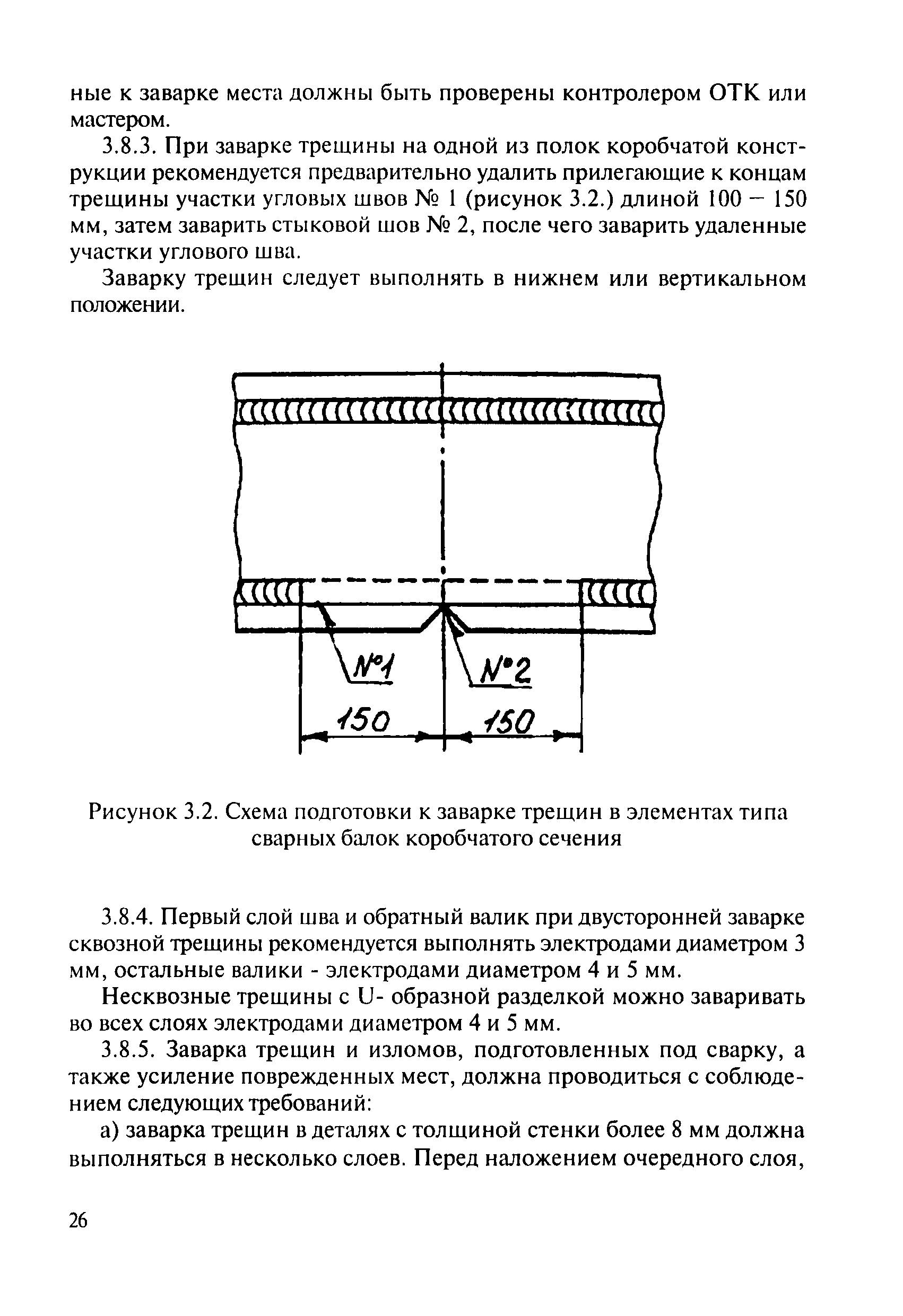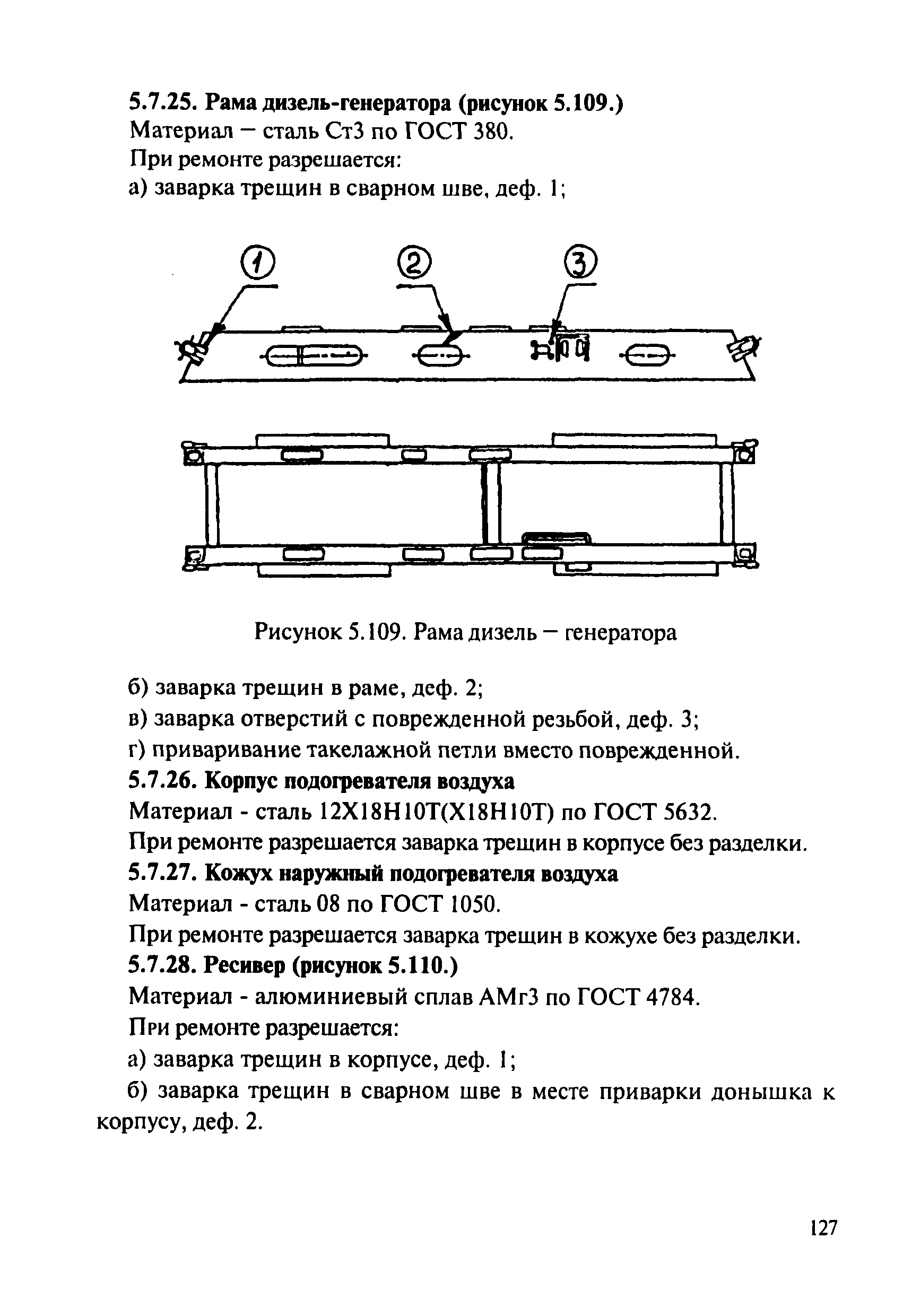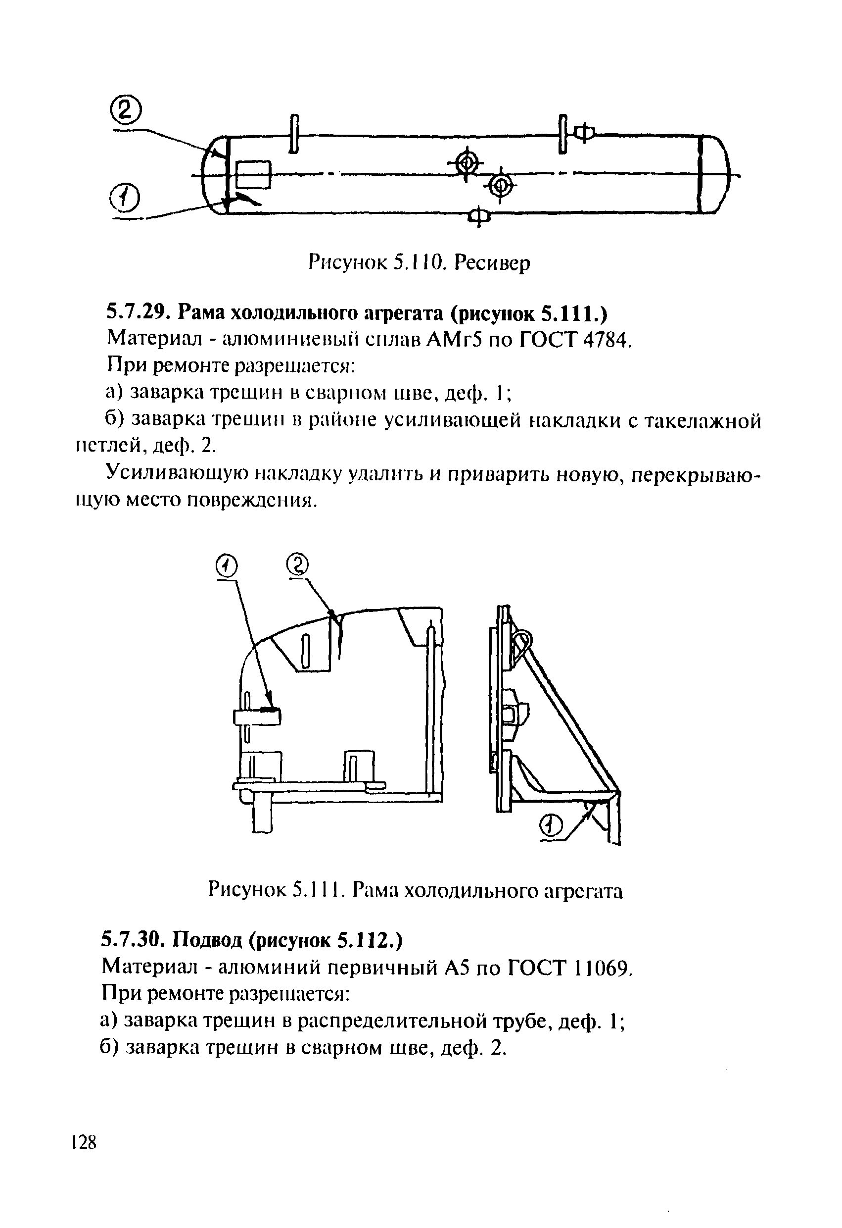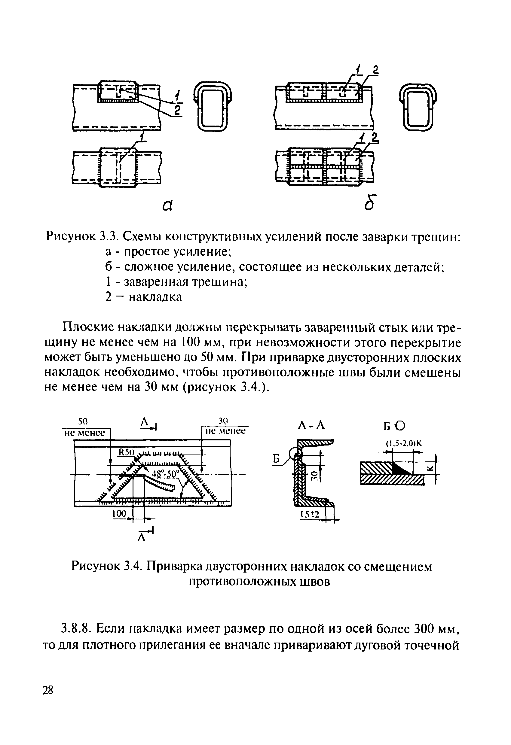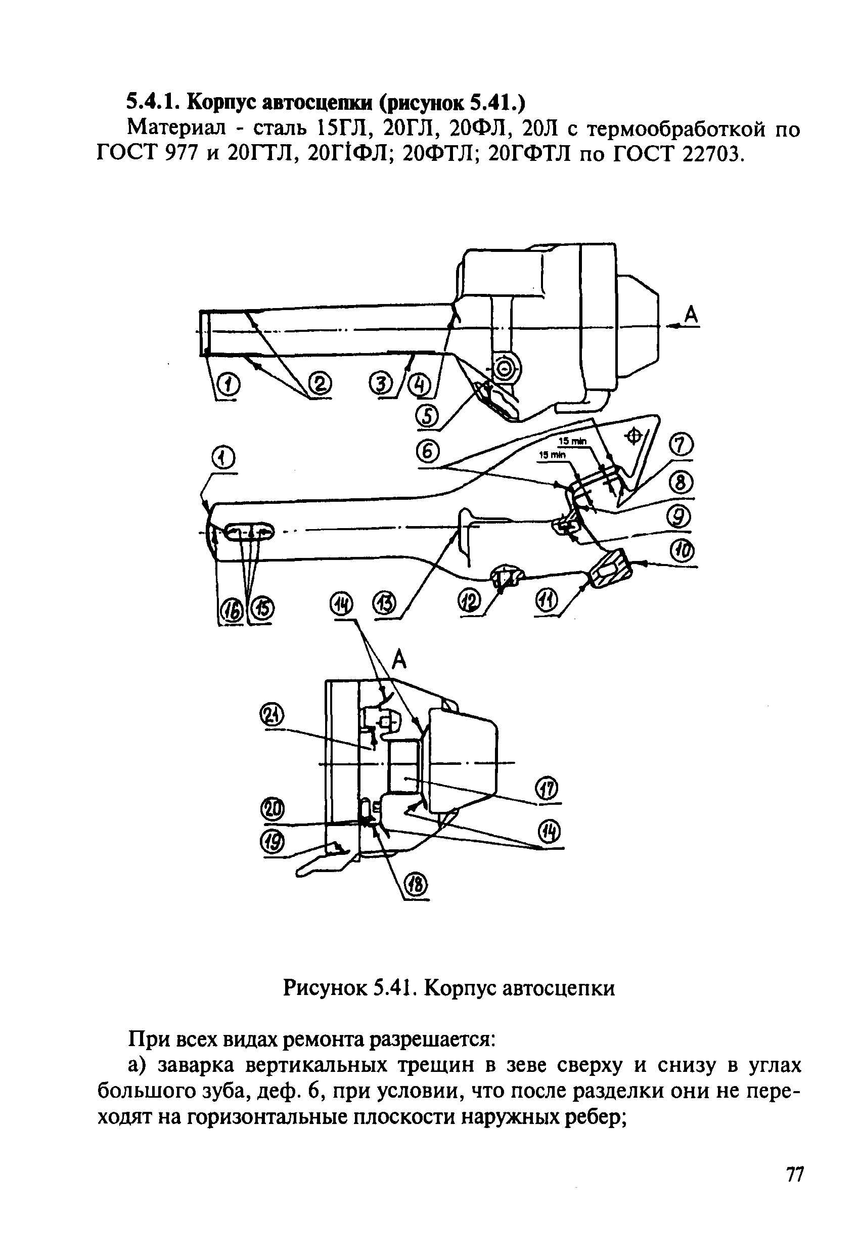 | Оглавление: | 1. Область применения 2. Нормативные ссылки 3. Основные указания по организации и выполнению сварочно-наплавочных работ 3.1 Организация сварочно-наплавочных работ 3.2 Общие требования к проведению сварочно-наплавочных работ 3.3 Подготовка узлов и деталей вагонов к сварке и наплавке 3.4 Наплавка изношенных поверхностей 3.5 Сварка 3.6 Контроль качества сварных соединений 3.7 Виды дефектов и способы их устранения 3.8 Заварка трещин и усиление поврежденных мест 3.9 Приемка выполненных работ 4. Требования безопасности и охраны окружающей среды 5. Требования к ремонту сваркой деталей и узлов 5.1 Тележка модели 18-100, 18-101 5.2 Тележка рефрижераторного типа КВЗ-И2 5.3 Детали тормозов 5.4 Автосцепное устройство 5.5 Вагонная рама и ее детали 5.6 Кузова вагонов 5.7 Внутреннее оборудование рефрижераторных вагонов секций ЦБ-5, БМЗ-5 и АРВ 5.8 Цистерны 5.9 Вагон для битума 5.10 Вагон (хоппер) для зерна, цемента, сырья минеральных удобрений 5.11 Хоппер-дозатор, вагон (хоппер) для горячих окатышей и агломерата |