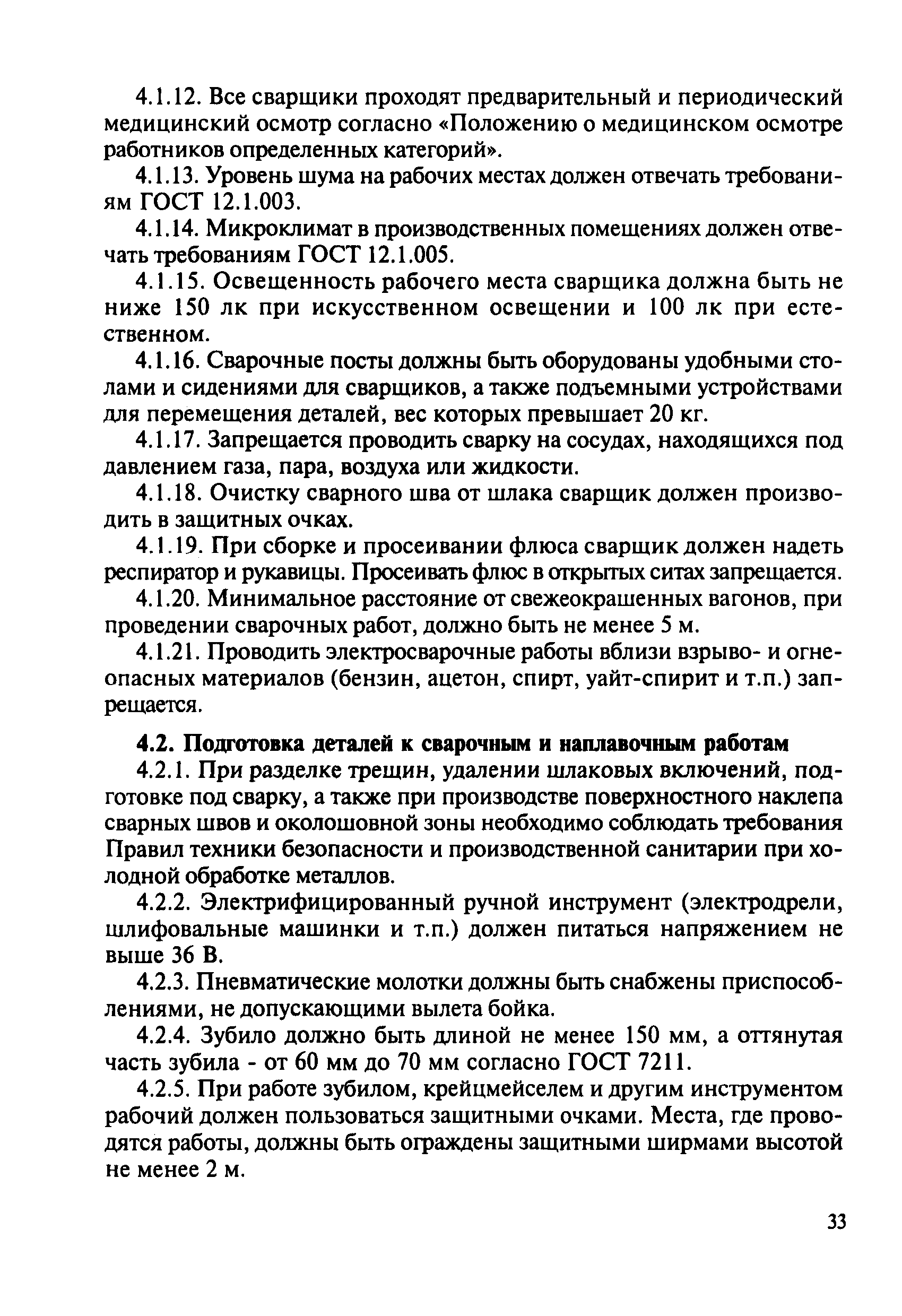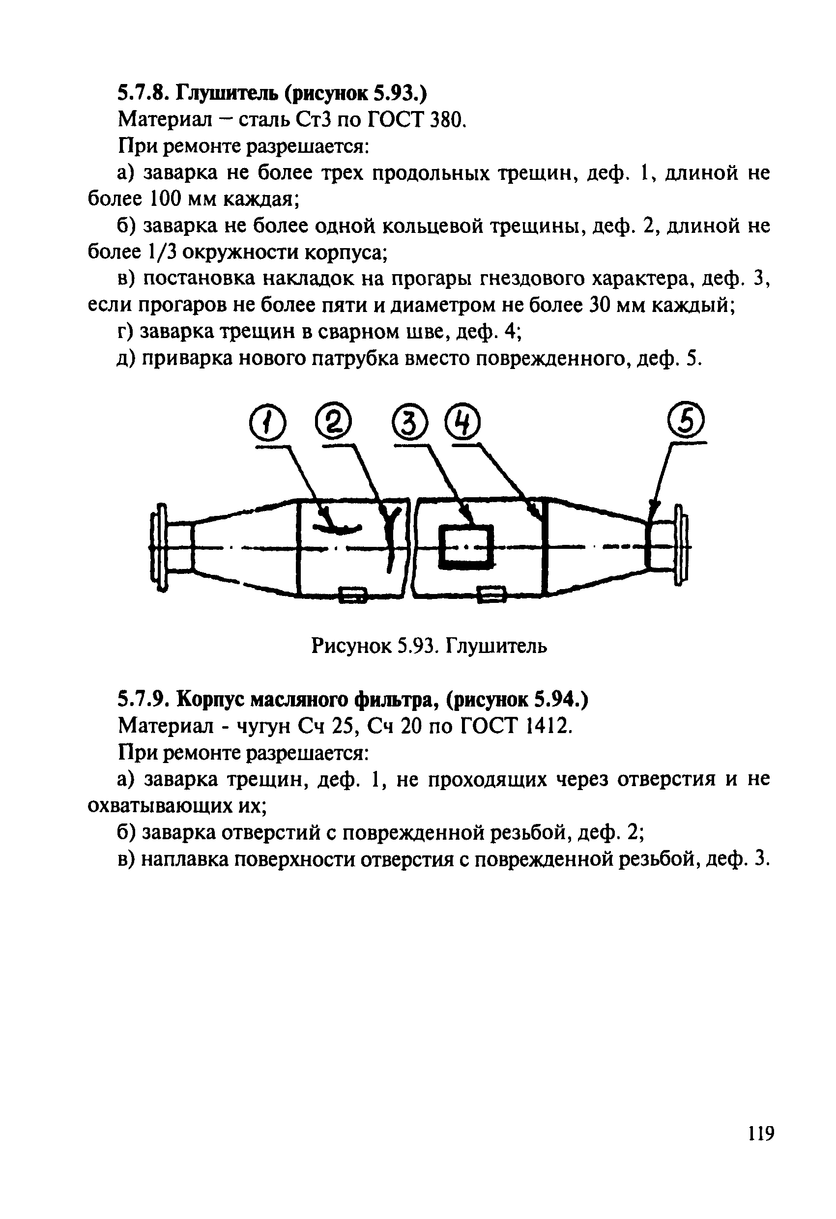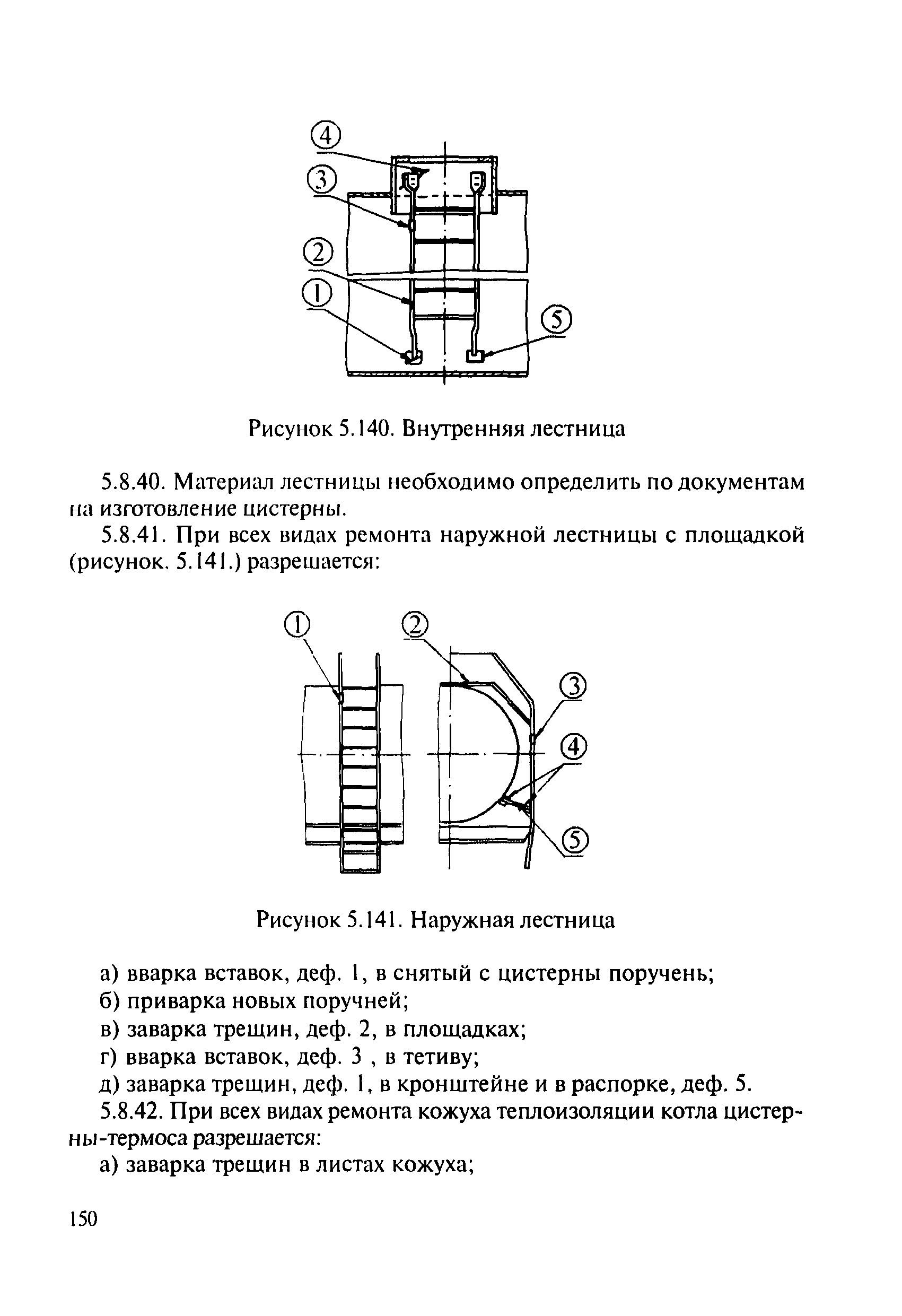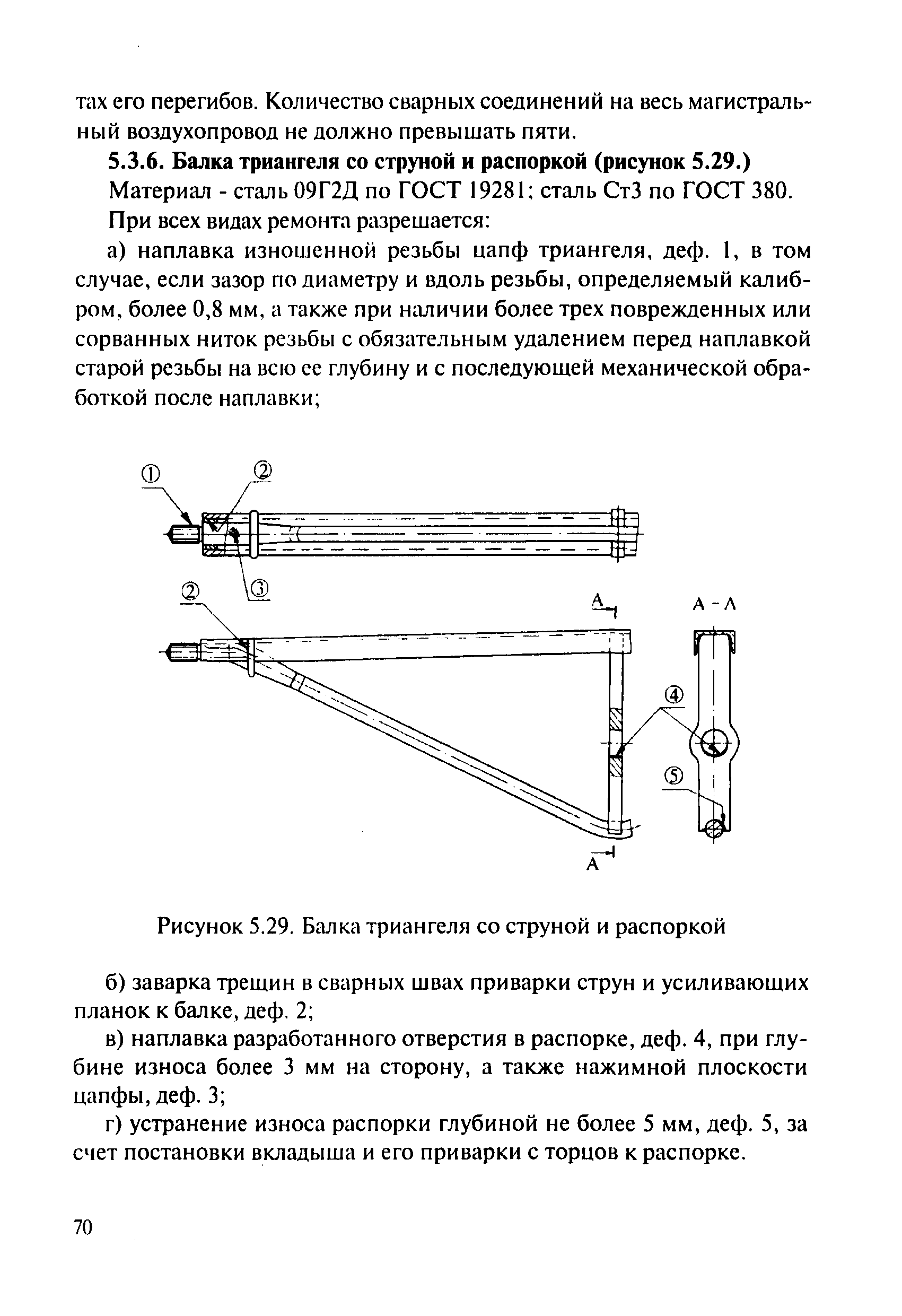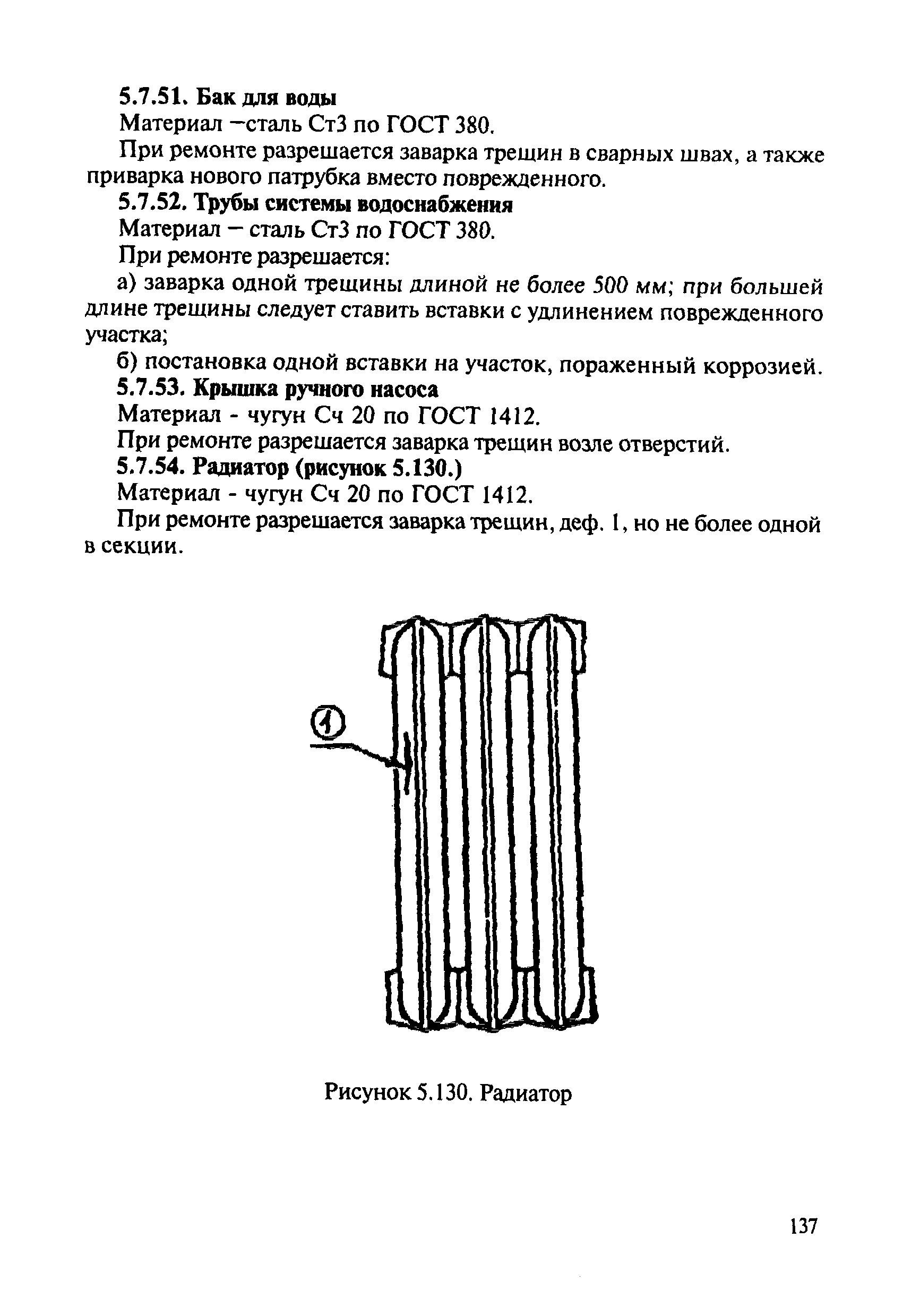 | Оглавление: | 1. Область применения 2. Нормативные ссылки 3. Основные указания по организации и выполнению сварочно-наплавочных работ 3.1 Организация сварочно-наплавочных работ 3.2 Общие требования к проведению сварочно-наплавочных работ 3.3 Подготовка узлов и деталей вагонов к сварке и наплавке 3.4 Наплавка изношенных поверхностей 3.5 Сварка 3.6 Контроль качества сварных соединений 3.7 Виды дефектов и способы их устранения 3.8 Заварка трещин и усиление поврежденных мест 3.9 Приемка выполненных работ 4. Требования безопасности и охраны окружающей среды 5. Требования к ремонту сваркой деталей и узлов 5.1 Тележка модели 18-100, 18-101 5.2 Тележка рефрижераторного типа КВЗ-И2 5.3 Детали тормозов 5.4 Автосцепное устройство 5.5 Вагонная рама и ее детали 5.6 Кузова вагонов 5.7 Внутреннее оборудование рефрижераторных вагонов секций ЦБ-5, БМЗ-5 и АРВ 5.8 Цистерны 5.9 Вагон для битума 5.10 Вагон (хоппер) для зерна, цемента, сырья минеральных удобрений 5.11 Хоппер-дозатор, вагон (хоппер) для горячих окатышей и агломерата |