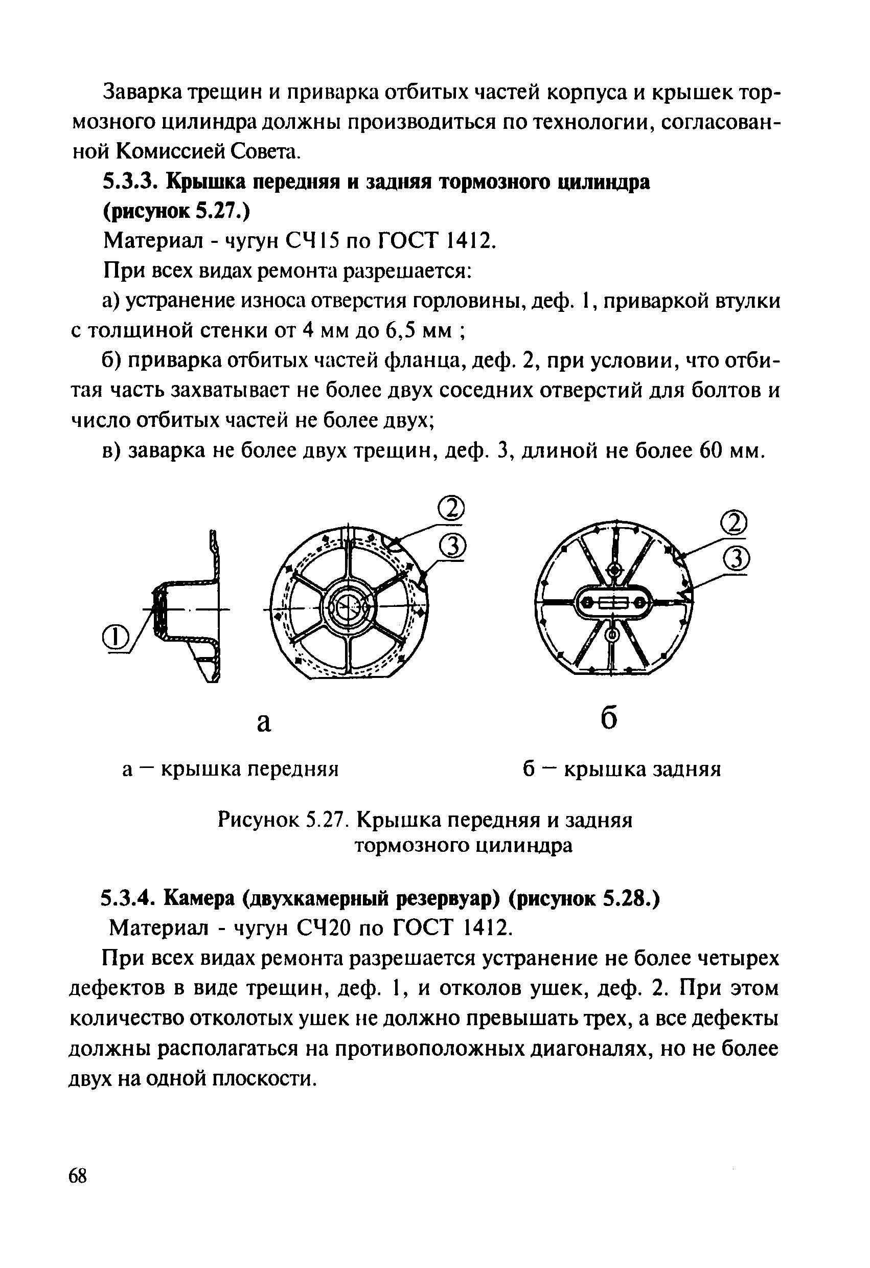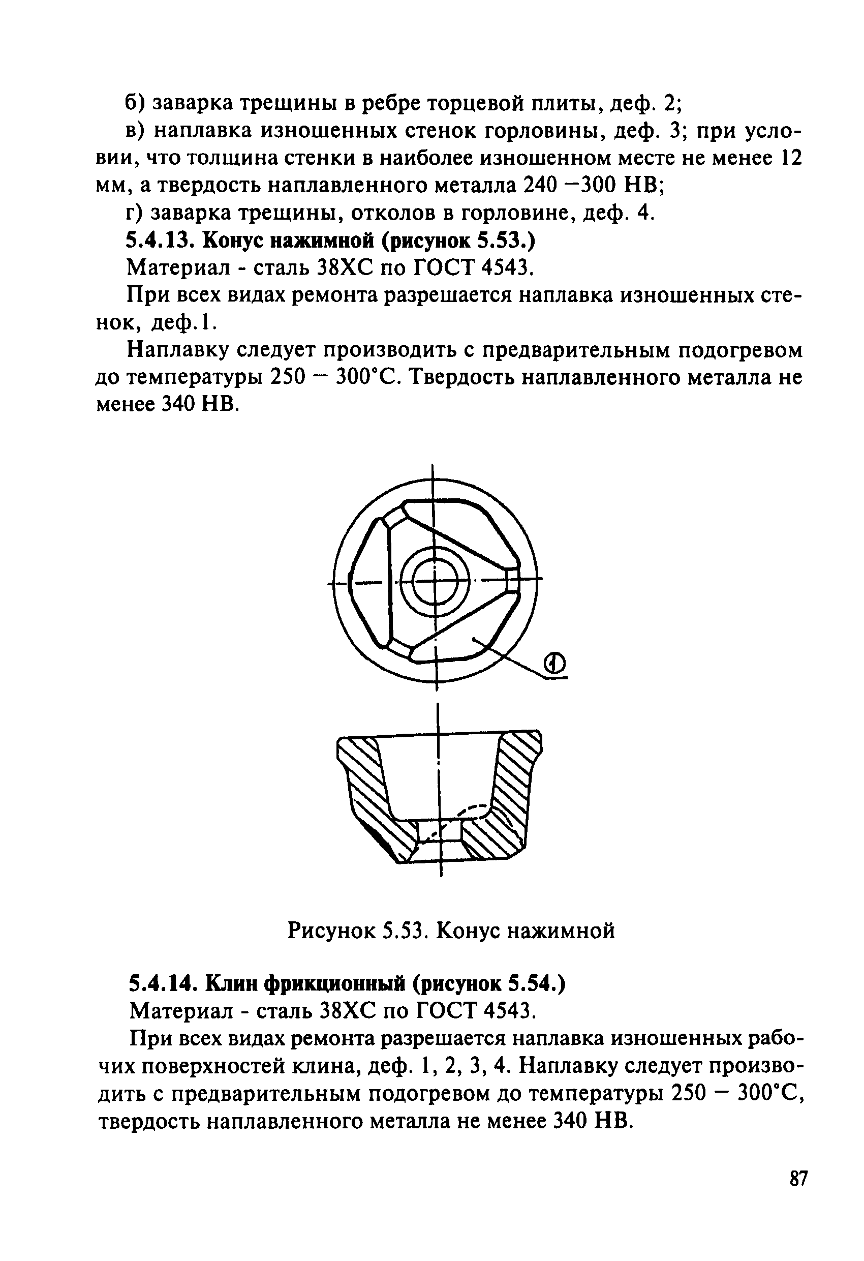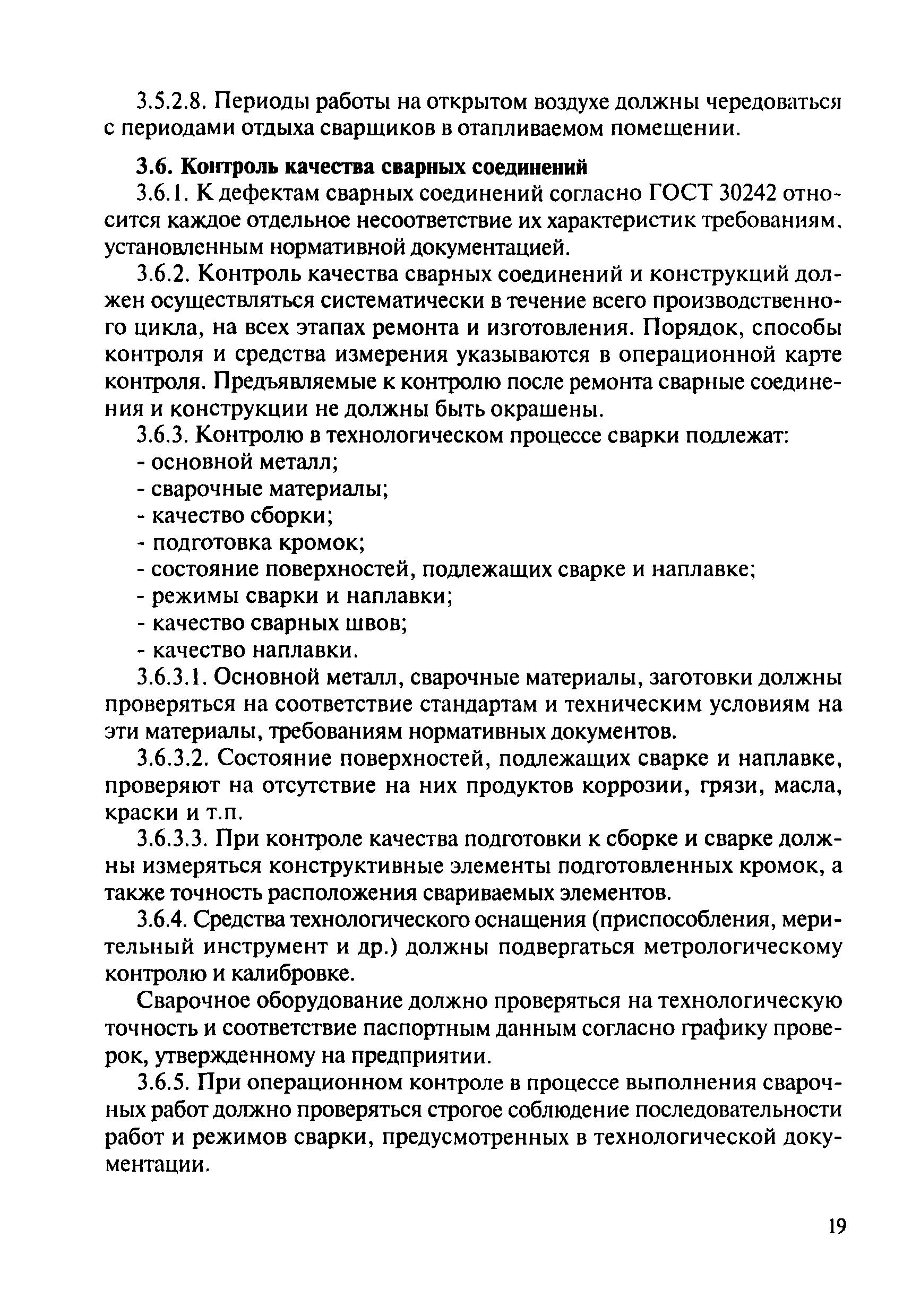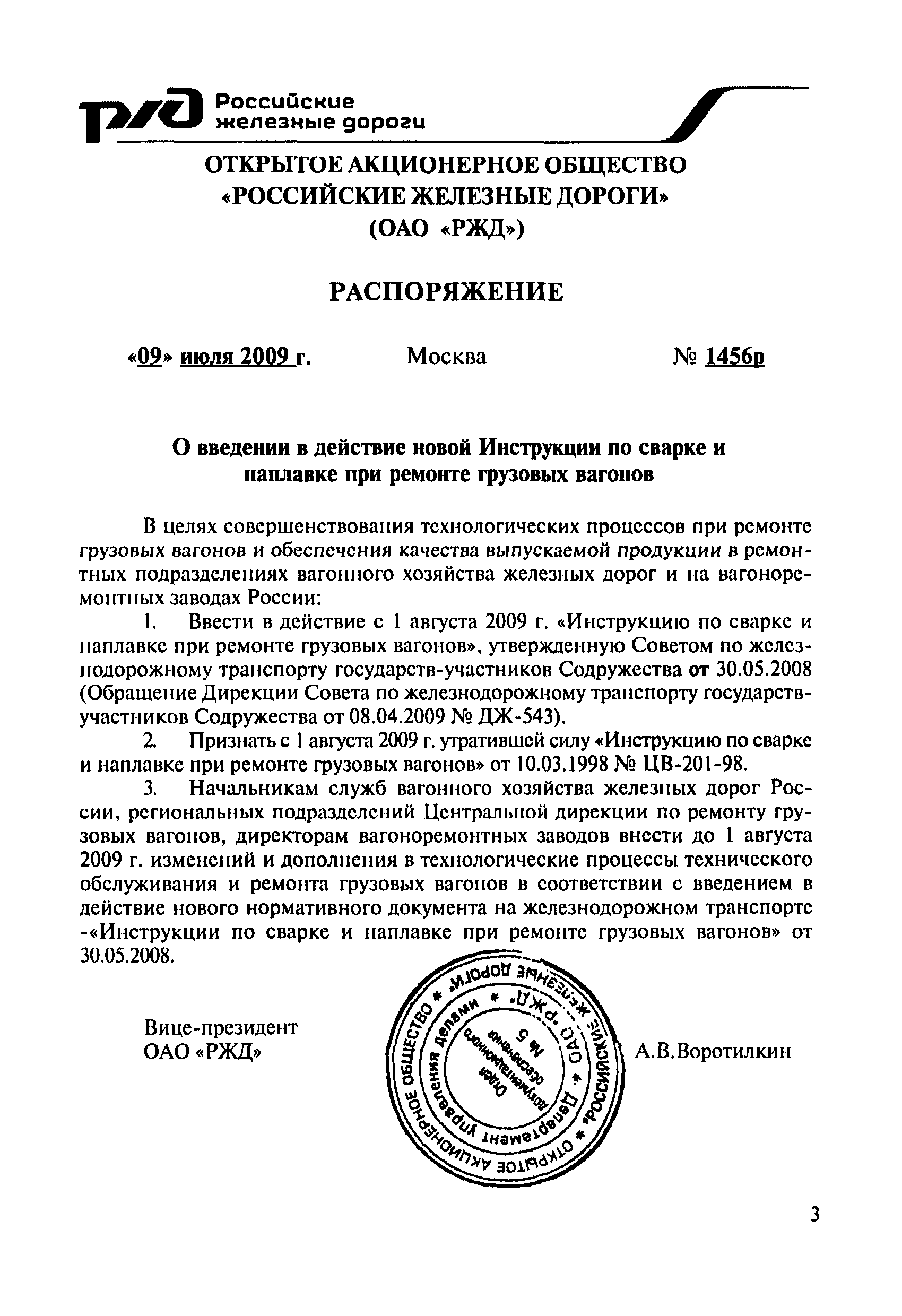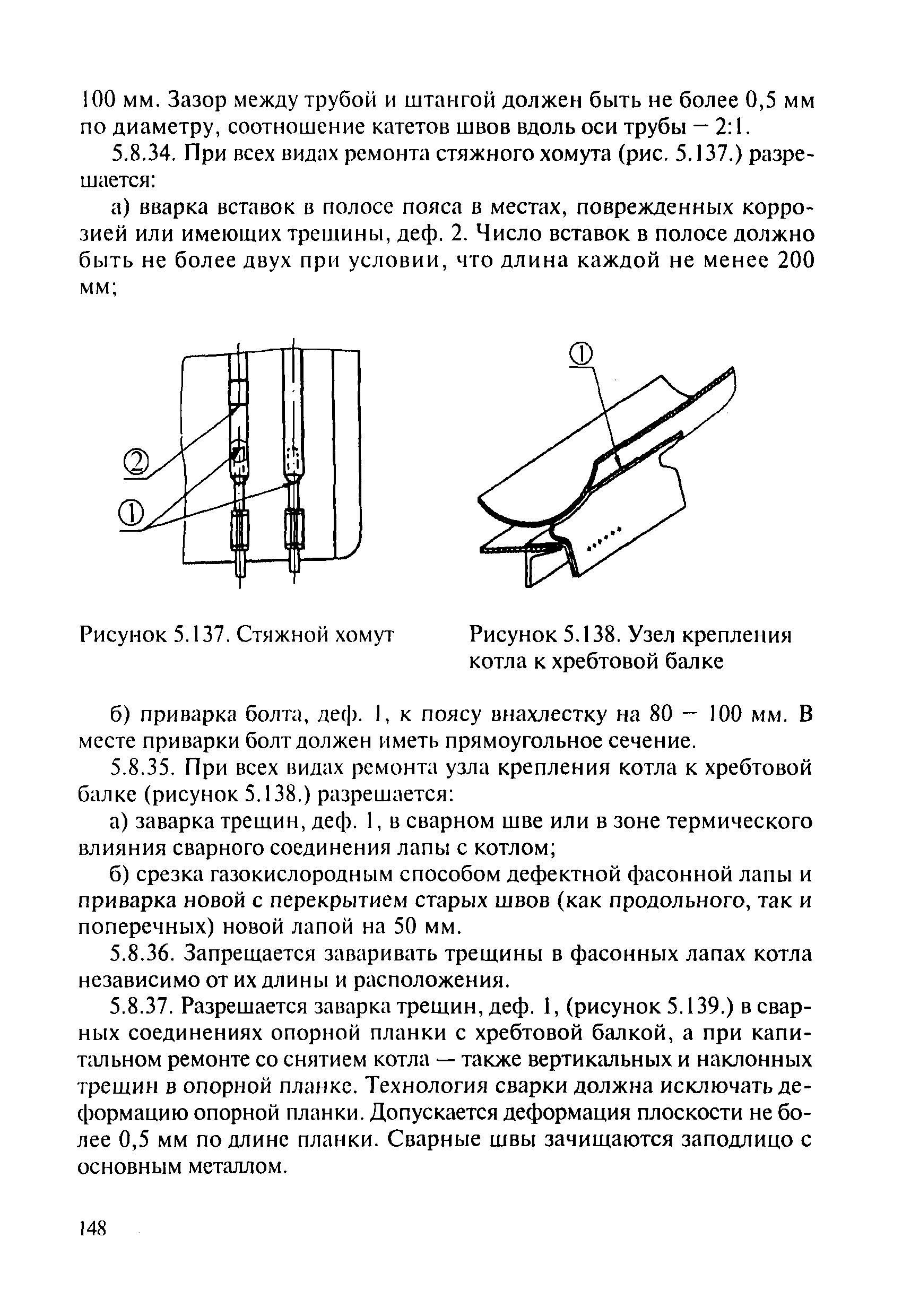 | Оглавление: | 1. Область применения 2. Нормативные ссылки 3. Основные указания по организации и выполнению сварочно-наплавочных работ 3.1 Организация сварочно-наплавочных работ 3.2 Общие требования к проведению сварочно-наплавочных работ 3.3 Подготовка узлов и деталей вагонов к сварке и наплавке 3.4 Наплавка изношенных поверхностей 3.5 Сварка 3.6 Контроль качества сварных соединений 3.7 Виды дефектов и способы их устранения 3.8 Заварка трещин и усиление поврежденных мест 3.9 Приемка выполненных работ 4. Требования безопасности и охраны окружающей среды 5. Требования к ремонту сваркой деталей и узлов 5.1 Тележка модели 18-100, 18-101 5.2 Тележка рефрижераторного типа КВЗ-И2 5.3 Детали тормозов 5.4 Автосцепное устройство 5.5 Вагонная рама и ее детали 5.6 Кузова вагонов 5.7 Внутреннее оборудование рефрижераторных вагонов секций ЦБ-5, БМЗ-5 и АРВ 5.8 Цистерны 5.9 Вагон для битума 5.10 Вагон (хоппер) для зерна, цемента, сырья минеральных удобрений 5.11 Хоппер-дозатор, вагон (хоппер) для горячих окатышей и агломерата |