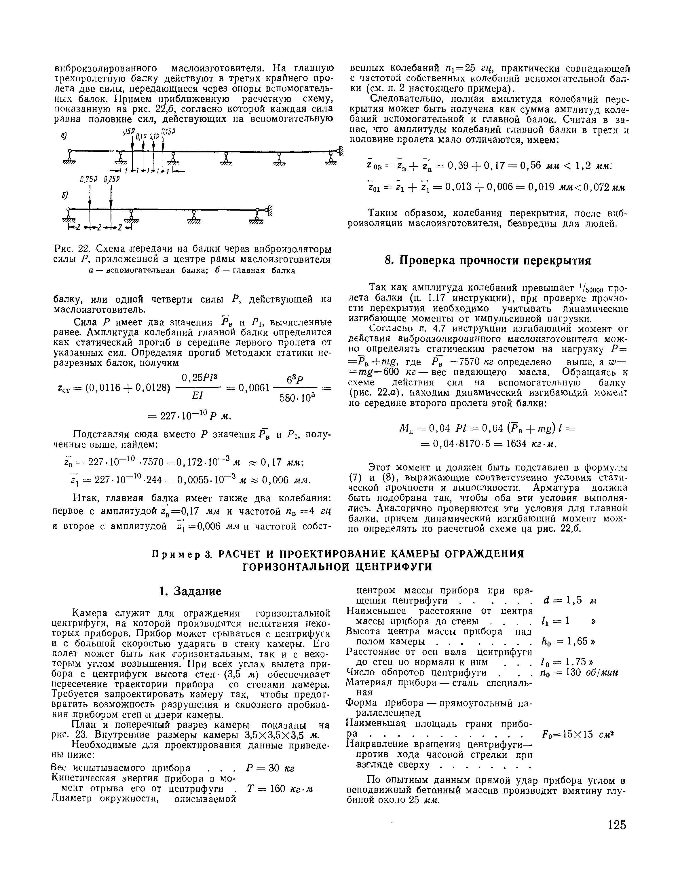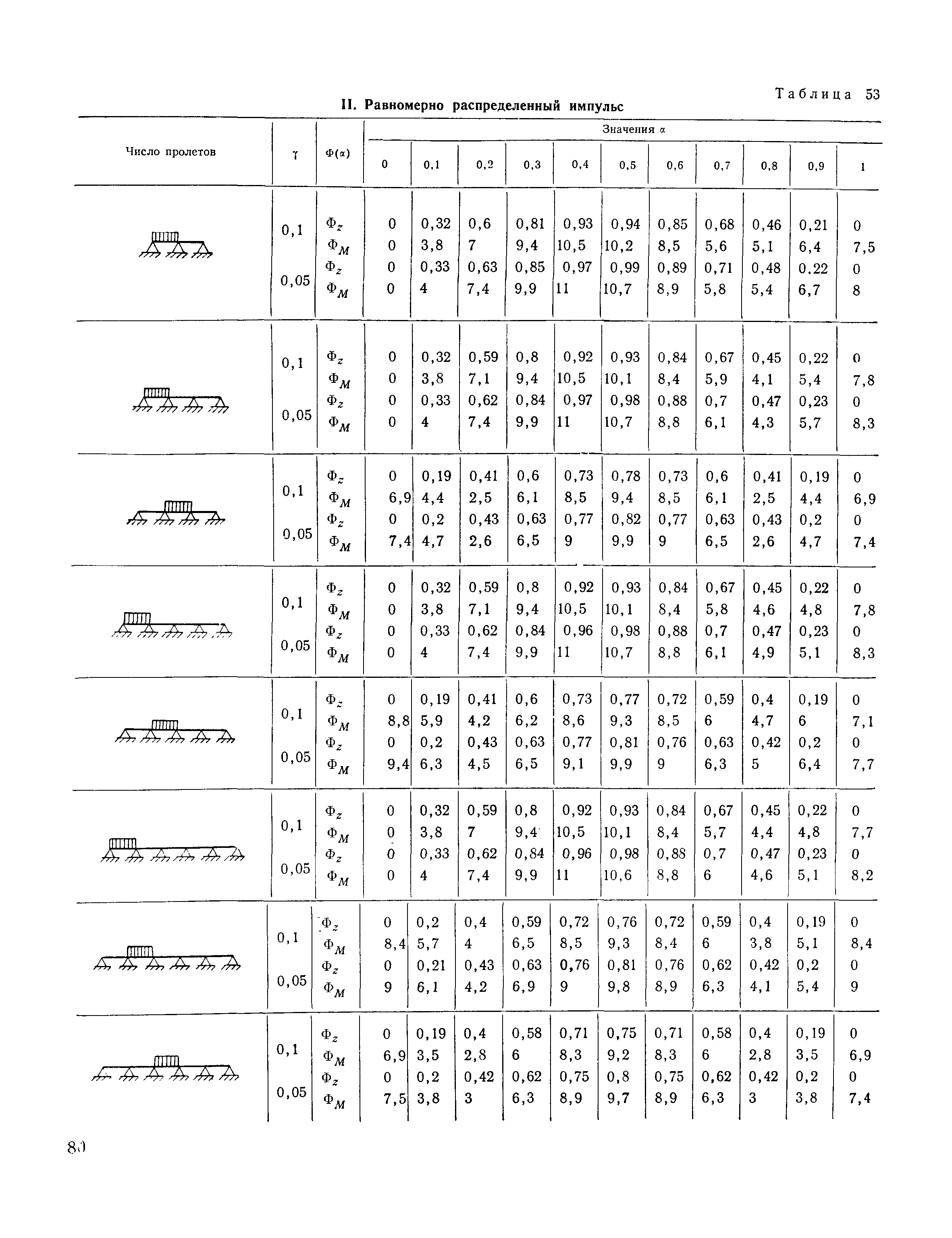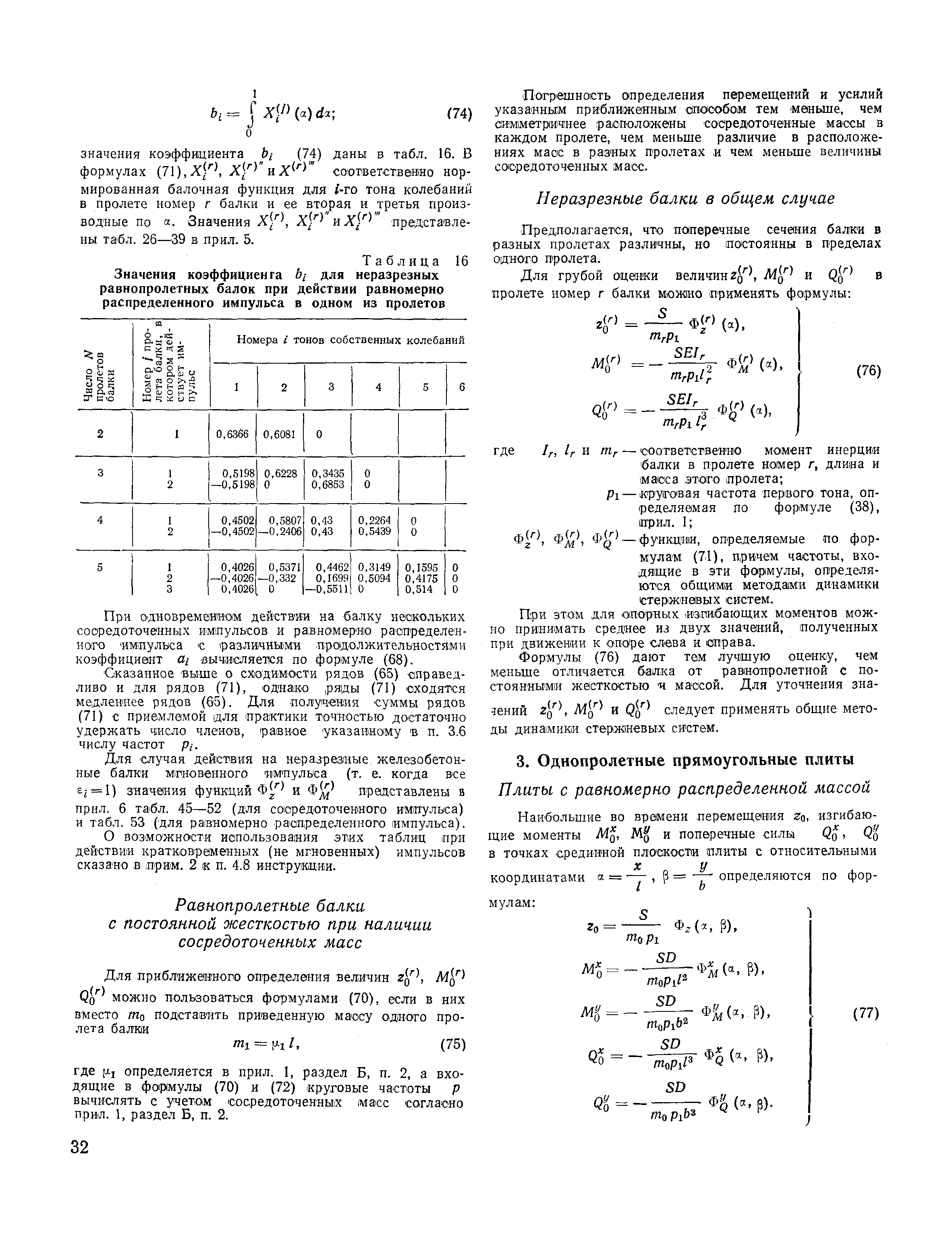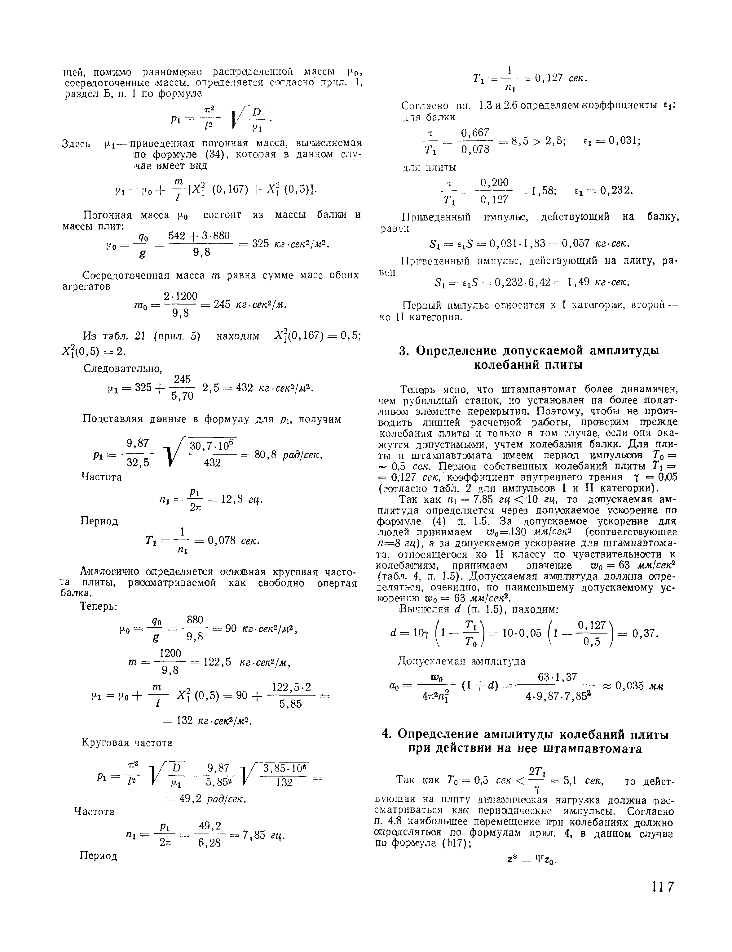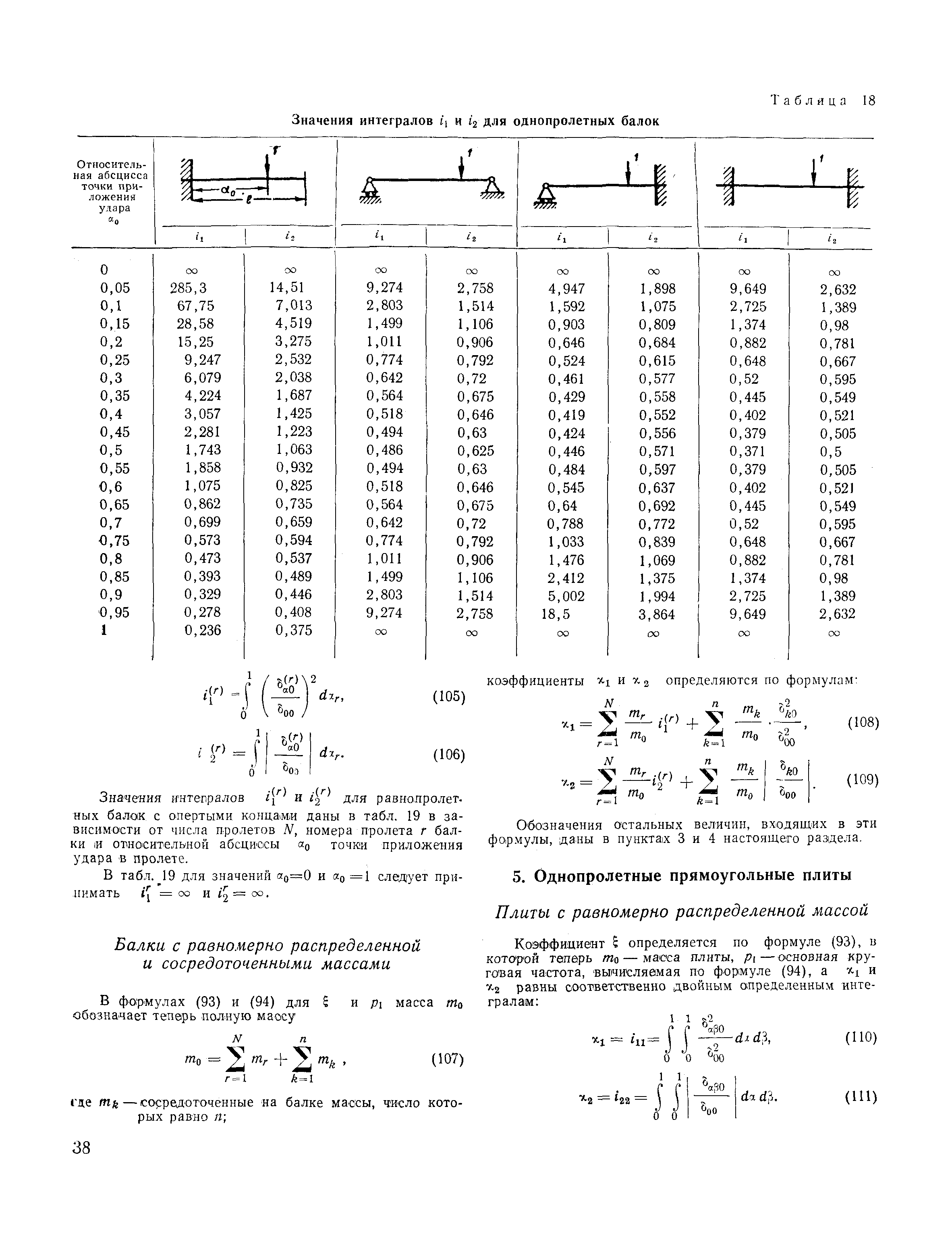 | Оглавление: | 1. Общие указания Состав задания на проектирование Указания по проектированию Основные расчетные положения 2. Импульсные нагрузки 3. Частоты собственных колебаний 4. Наибольшие перемещения и внутренние усилия при действии импульсивных нагрузок 5. Способы уменьшения колебаний, возникающих в конструкциях под действием импульсивных нагрузок Увеличение массы конструкции Увеличение жесткости конструкции Одновременное увеличение массы и жесткости конструкции Изменение мест приложения импульсов или ударов на перекрытия Виброизоляция установок с импульсивными нагрузками Приложение 1. Определение частот собственных колебаний Приложение 2. Определение наибольших перемещений и внутренних усилий, вызванных действием однократных импульсов Приложение 3. Определение наибольших переменных перемещений и внутренних усилий при однократных ударах тел Приложение 4. Определение наибольших перемещений и внутренних усилий, вызванных действием периодических импульсов и ударов Приложение 5. Таблицы балочных функций и их производных Приложение 6. Таблицы функций Фz и Фм для определения наибольших перемещений Zо и изгибающих моментов Мо, возникающих в железобетонных балках и плитах при действии на них мгновенных импульсов Приложение 7. Примеры расчета Приложение 8. Пояснения к основным параграфам инструкции |