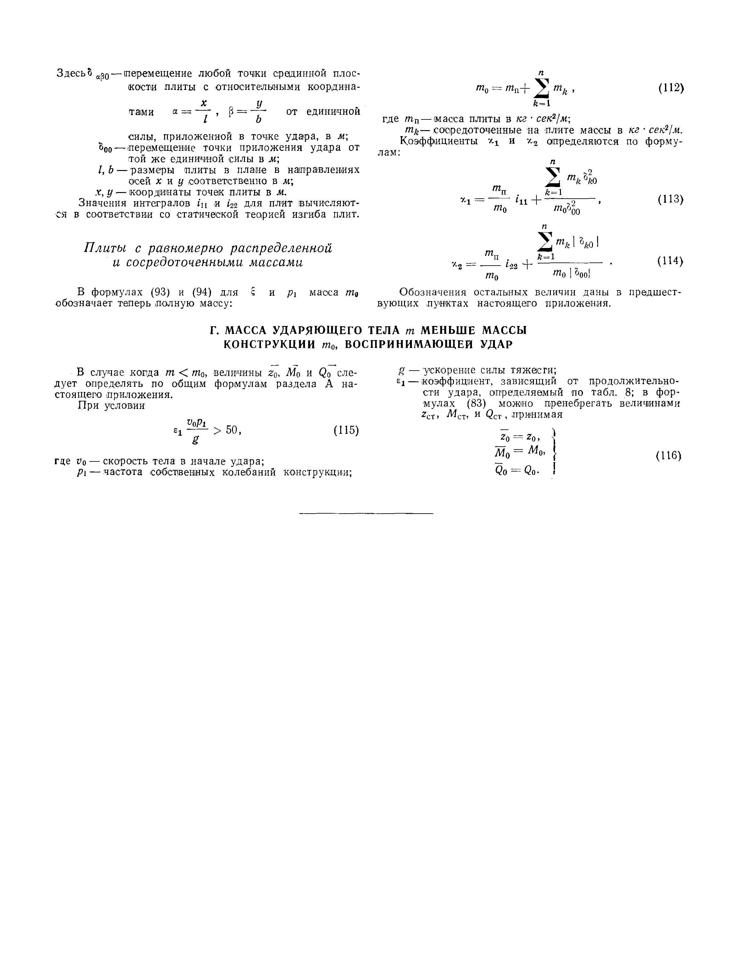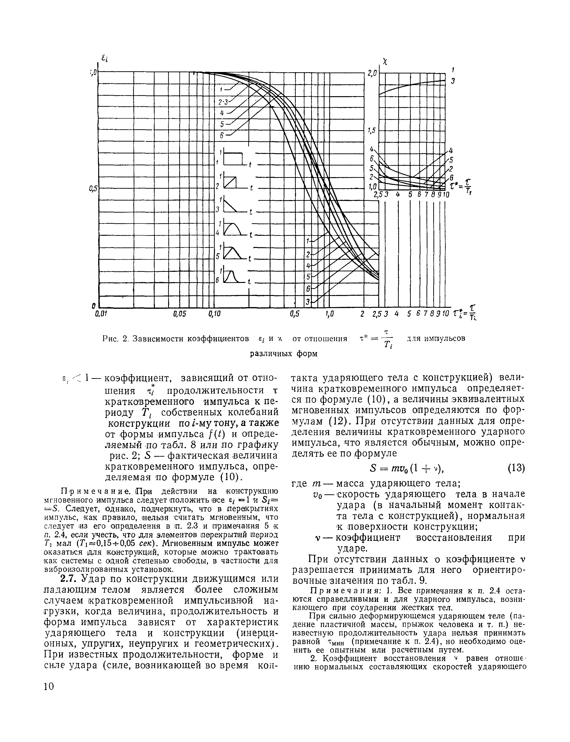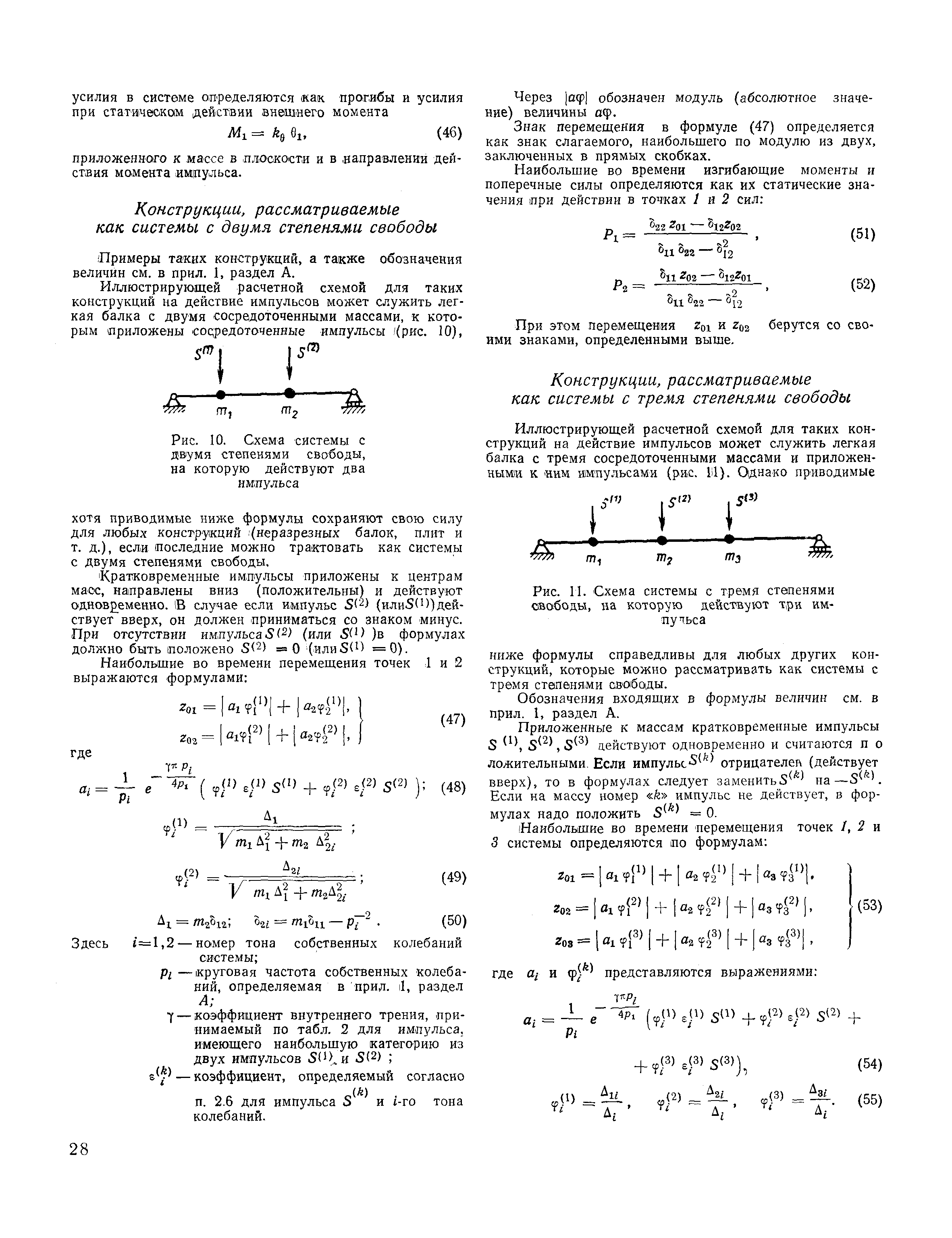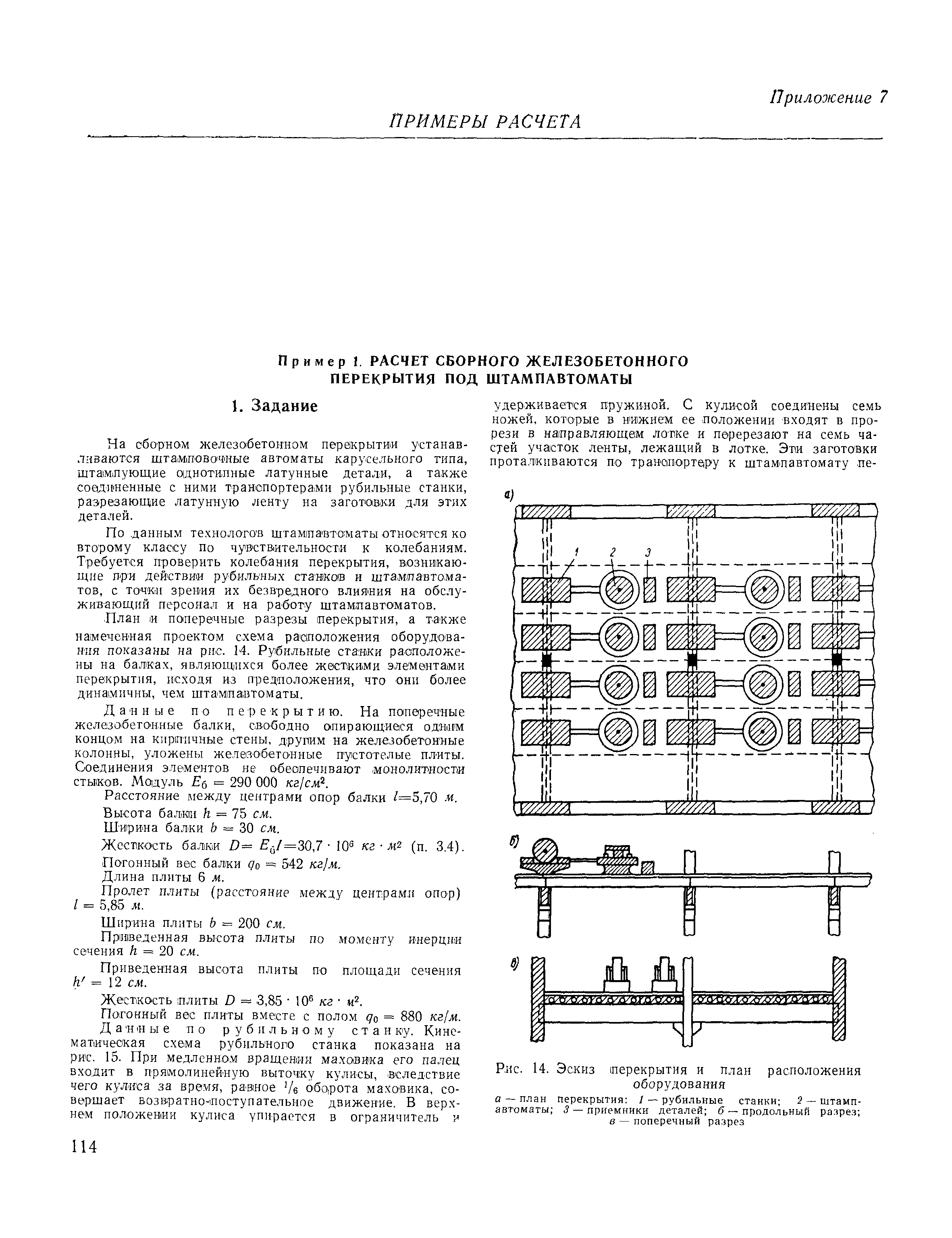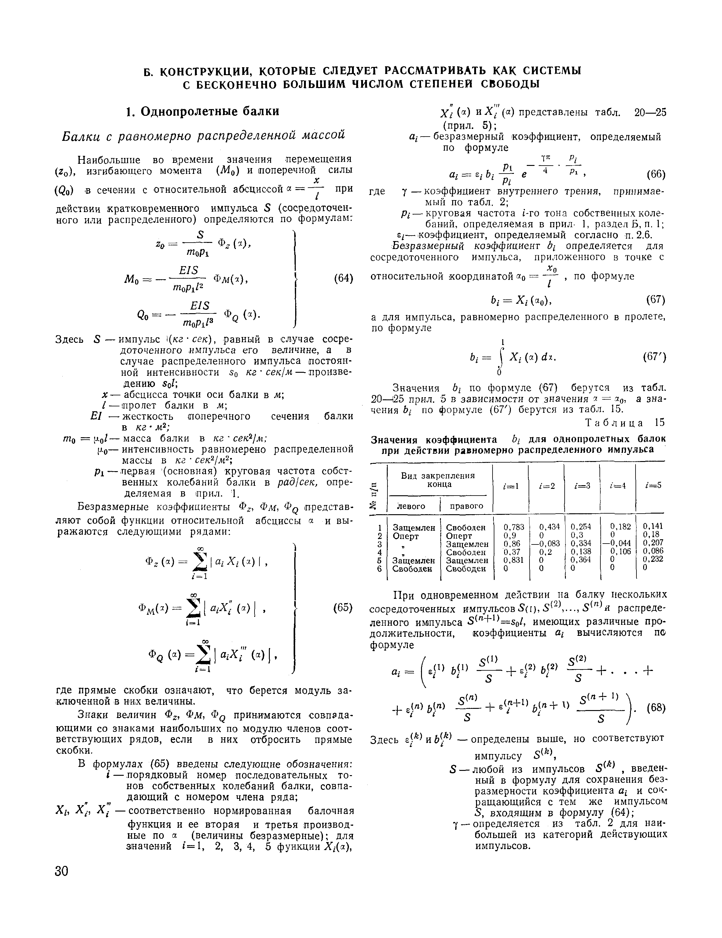 | Оглавление: | 1. Общие указания Состав задания на проектирование Указания по проектированию Основные расчетные положения 2. Импульсные нагрузки 3. Частоты собственных колебаний 4. Наибольшие перемещения и внутренние усилия при действии импульсивных нагрузок 5. Способы уменьшения колебаний, возникающих в конструкциях под действием импульсивных нагрузок Увеличение массы конструкции Увеличение жесткости конструкции Одновременное увеличение массы и жесткости конструкции Изменение мест приложения импульсов или ударов на перекрытия Виброизоляция установок с импульсивными нагрузками Приложение 1. Определение частот собственных колебаний Приложение 2. Определение наибольших перемещений и внутренних усилий, вызванных действием однократных импульсов Приложение 3. Определение наибольших переменных перемещений и внутренних усилий при однократных ударах тел Приложение 4. Определение наибольших перемещений и внутренних усилий, вызванных действием периодических импульсов и ударов Приложение 5. Таблицы балочных функций и их производных Приложение 6. Таблицы функций Фz и Фм для определения наибольших перемещений Zо и изгибающих моментов Мо, возникающих в железобетонных балках и плитах при действии на них мгновенных импульсов Приложение 7. Примеры расчета Приложение 8. Пояснения к основным параграфам инструкции |