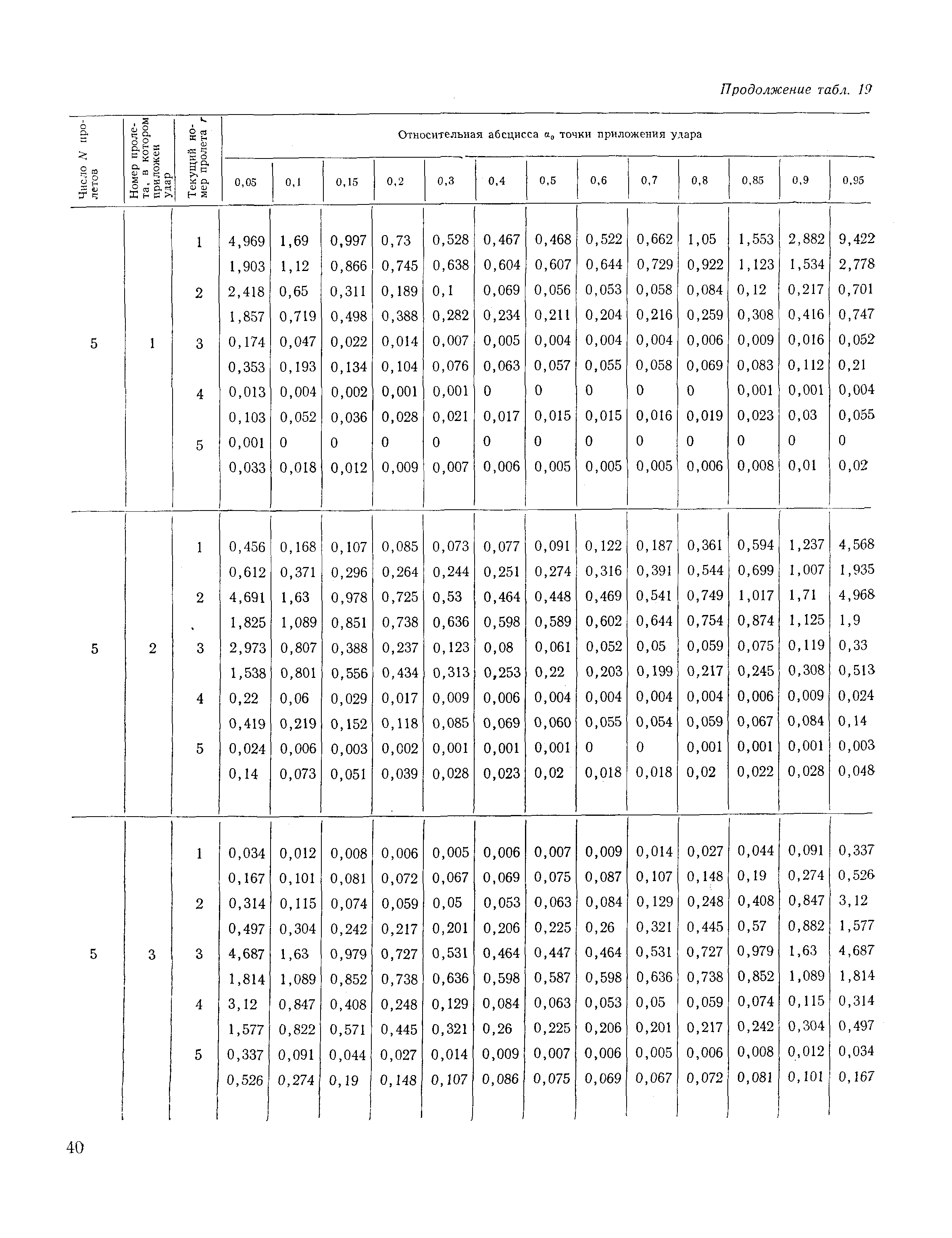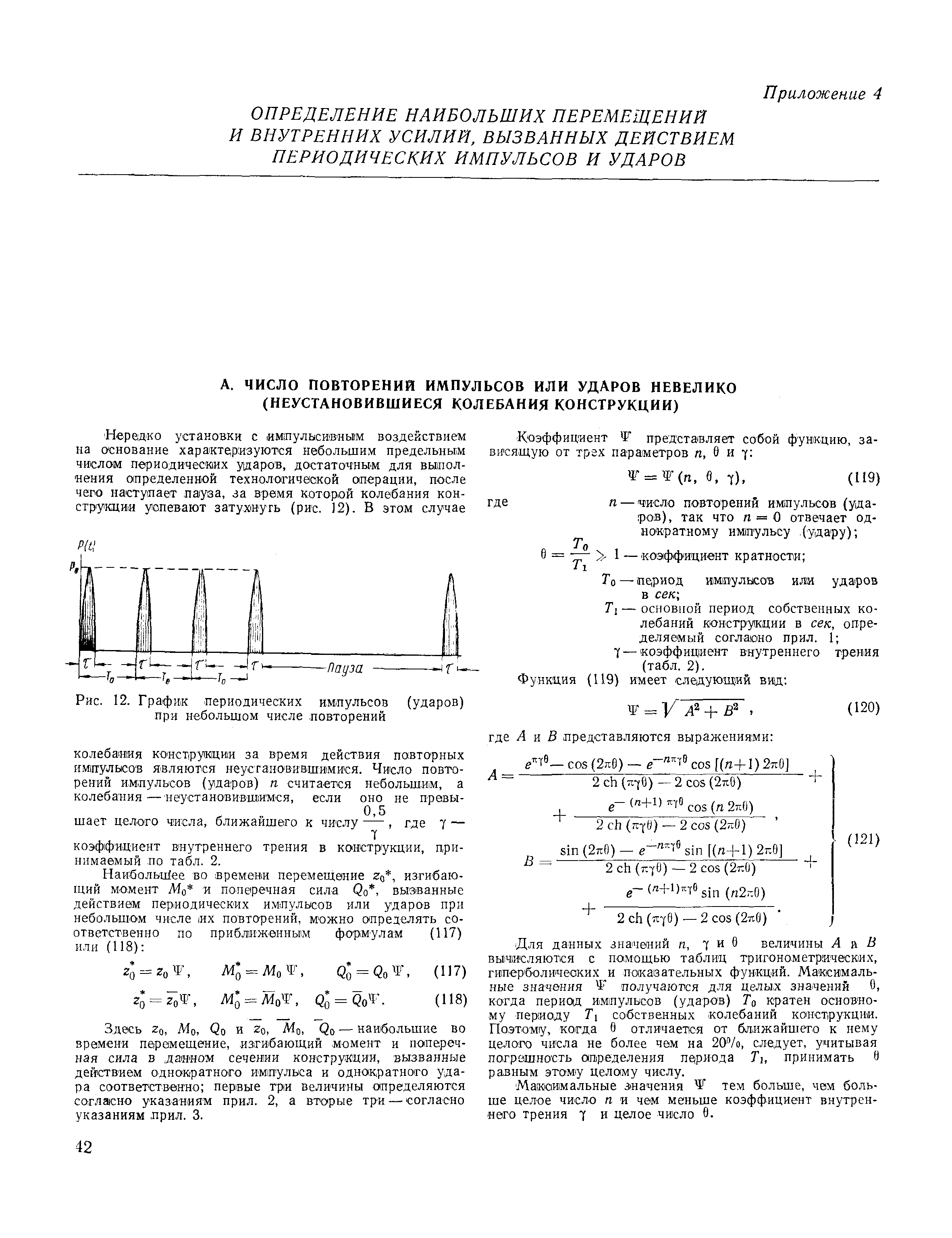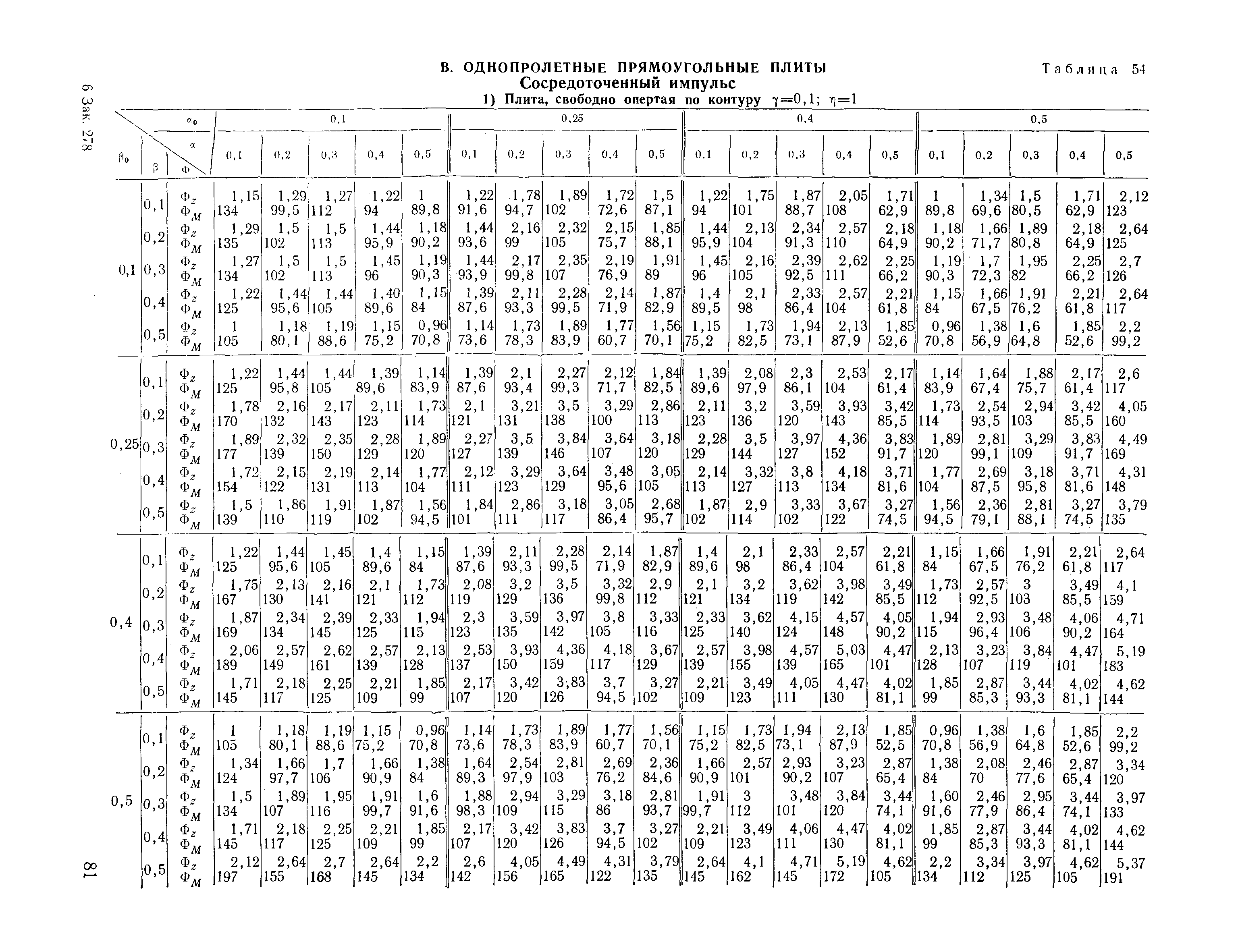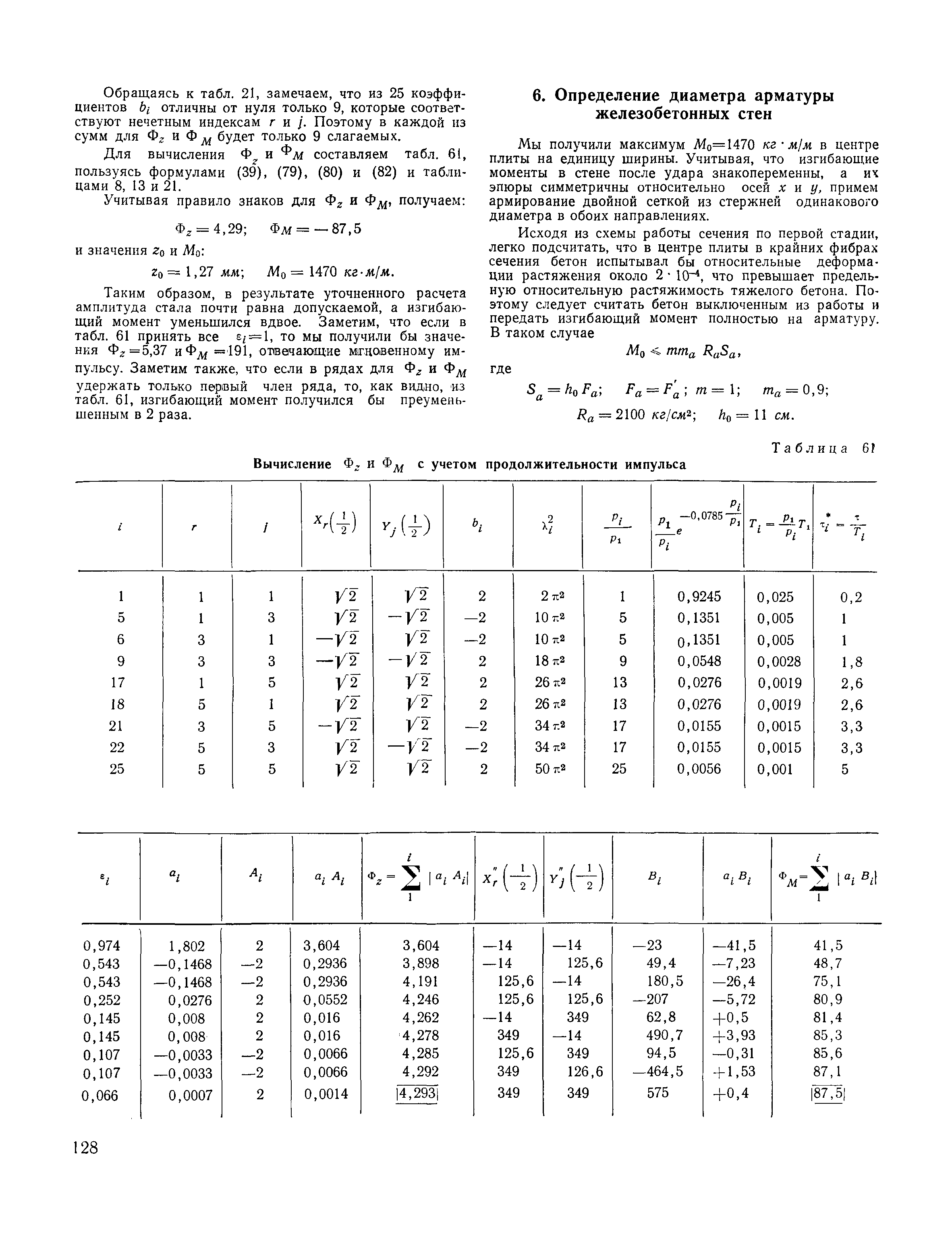 | Оглавление: | 1. Общие указания Состав задания на проектирование Указания по проектированию Основные расчетные положения 2. Импульсные нагрузки 3. Частоты собственных колебаний 4. Наибольшие перемещения и внутренние усилия при действии импульсивных нагрузок 5. Способы уменьшения колебаний, возникающих в конструкциях под действием импульсивных нагрузок Увеличение массы конструкции Увеличение жесткости конструкции Одновременное увеличение массы и жесткости конструкции Изменение мест приложения импульсов или ударов на перекрытия Виброизоляция установок с импульсивными нагрузками Приложение 1. Определение частот собственных колебаний Приложение 2. Определение наибольших перемещений и внутренних усилий, вызванных действием однократных импульсов Приложение 3. Определение наибольших переменных перемещений и внутренних усилий при однократных ударах тел Приложение 4. Определение наибольших перемещений и внутренних усилий, вызванных действием периодических импульсов и ударов Приложение 5. Таблицы балочных функций и их производных Приложение 6. Таблицы функций Фz и Фм для определения наибольших перемещений Zо и изгибающих моментов Мо, возникающих в железобетонных балках и плитах при действии на них мгновенных импульсов Приложение 7. Примеры расчета Приложение 8. Пояснения к основным параграфам инструкции |