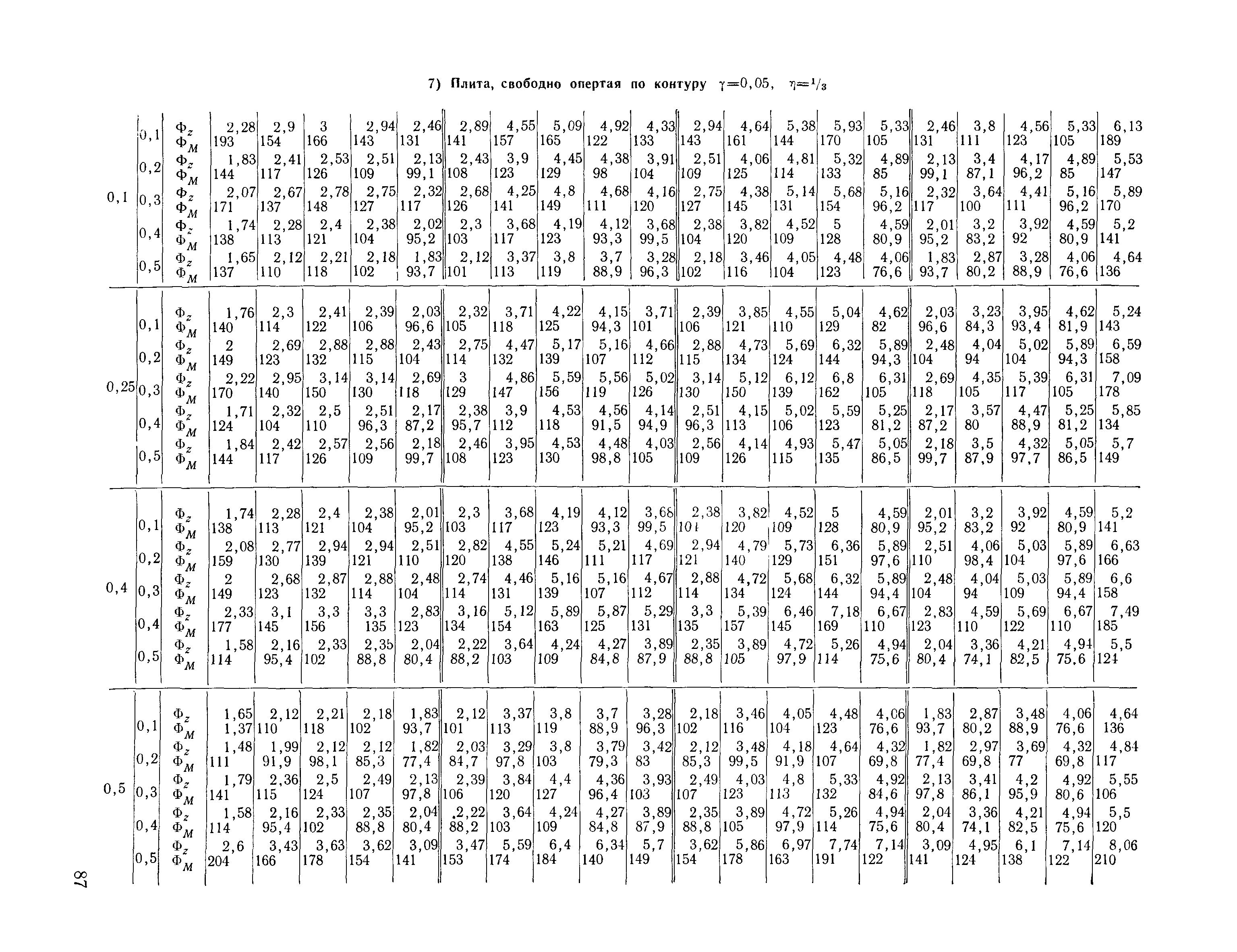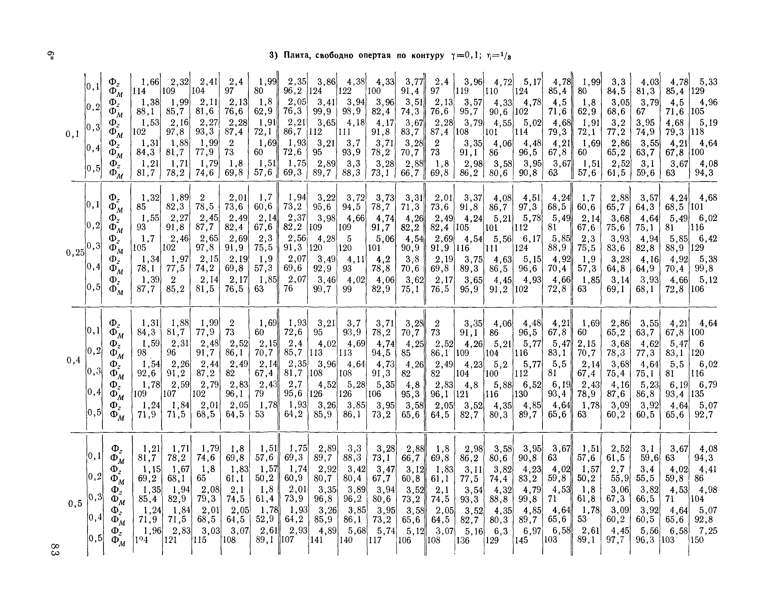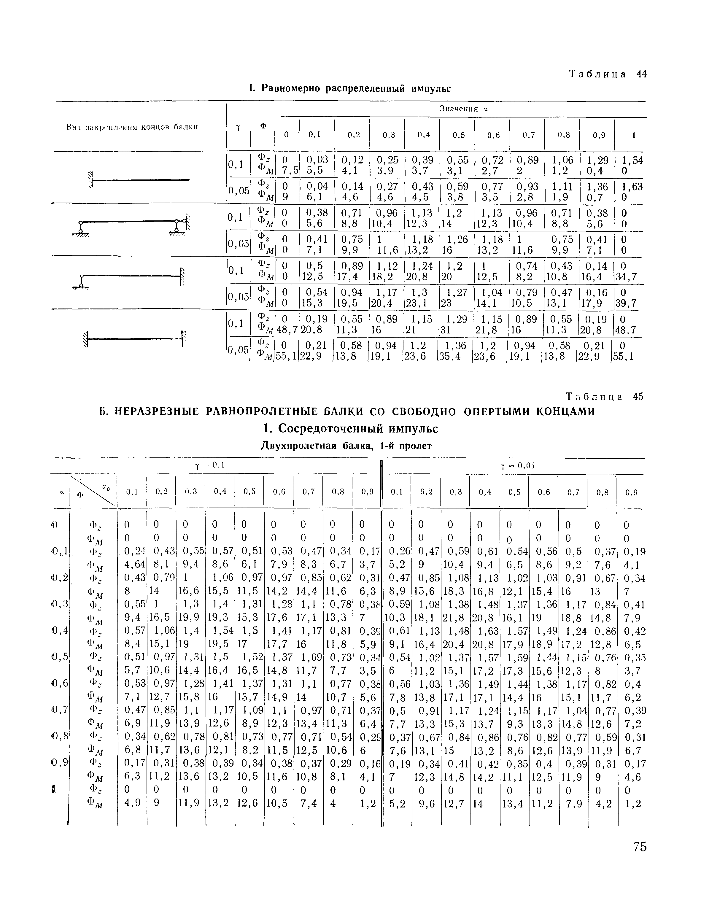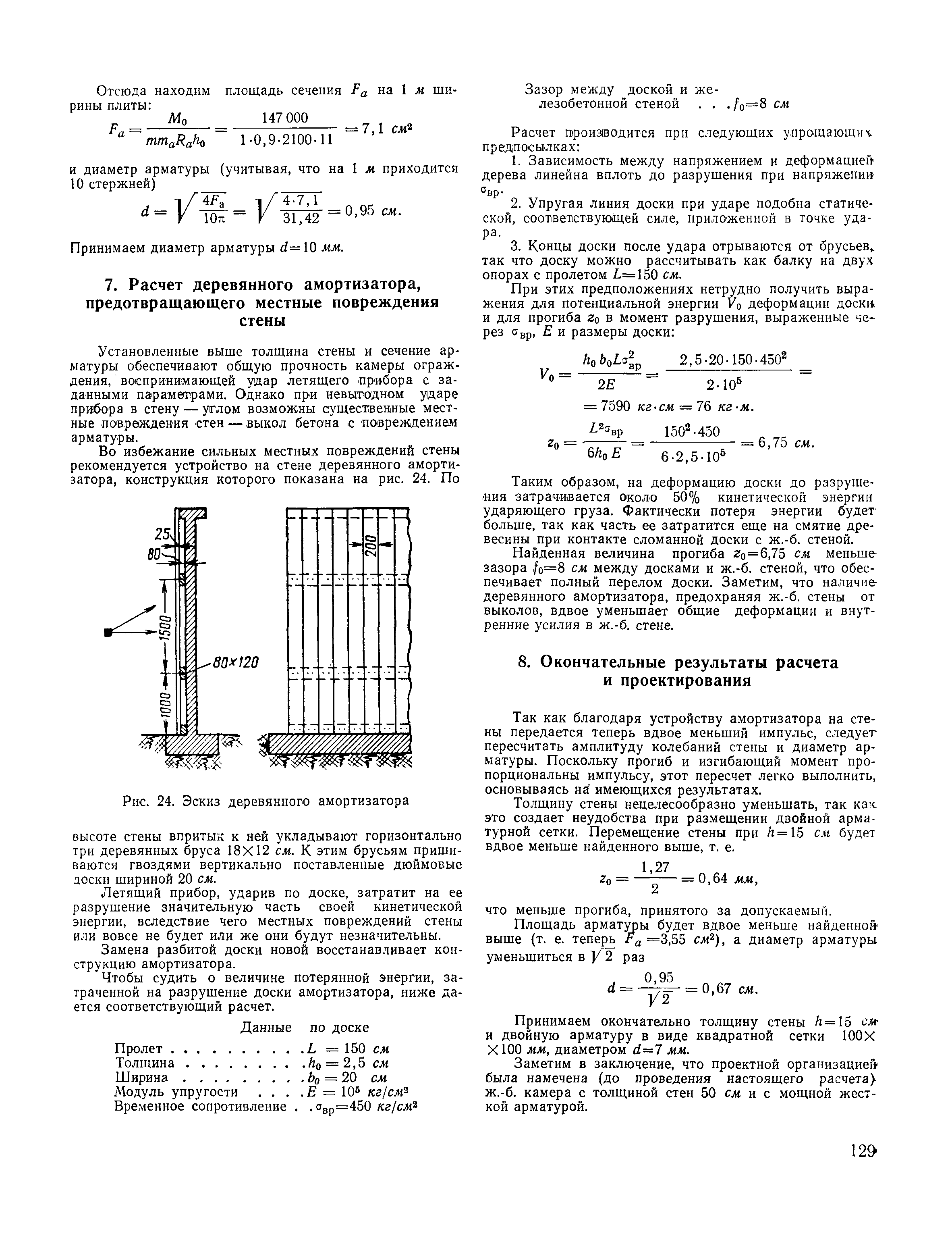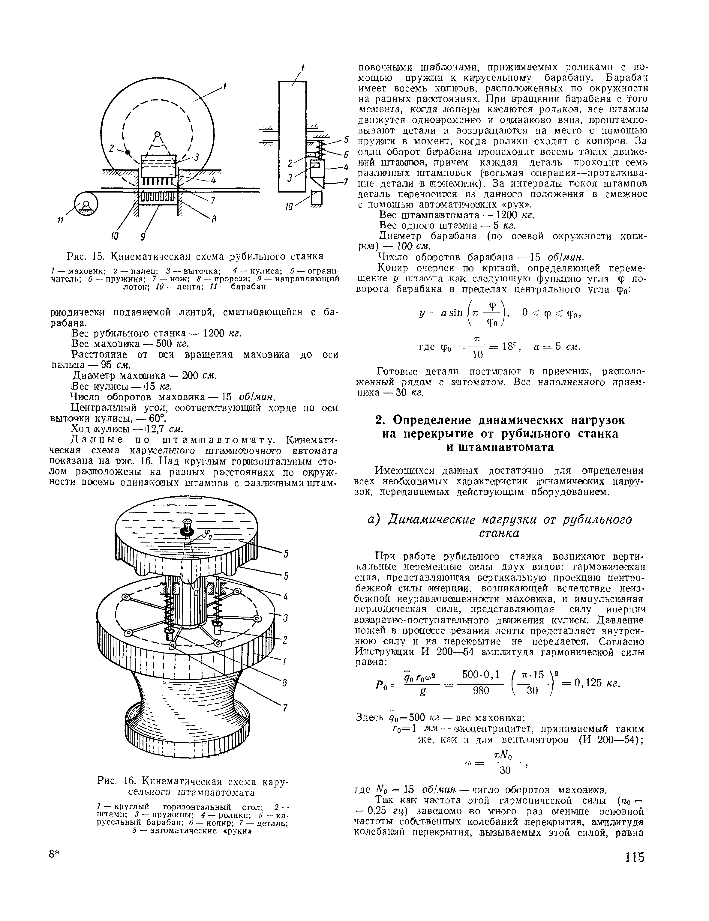 | Оглавление: | 1. Общие указания Состав задания на проектирование Указания по проектированию Основные расчетные положения 2. Импульсные нагрузки 3. Частоты собственных колебаний 4. Наибольшие перемещения и внутренние усилия при действии импульсивных нагрузок 5. Способы уменьшения колебаний, возникающих в конструкциях под действием импульсивных нагрузок Увеличение массы конструкции Увеличение жесткости конструкции Одновременное увеличение массы и жесткости конструкции Изменение мест приложения импульсов или ударов на перекрытия Виброизоляция установок с импульсивными нагрузками Приложение 1. Определение частот собственных колебаний Приложение 2. Определение наибольших перемещений и внутренних усилий, вызванных действием однократных импульсов Приложение 3. Определение наибольших переменных перемещений и внутренних усилий при однократных ударах тел Приложение 4. Определение наибольших перемещений и внутренних усилий, вызванных действием периодических импульсов и ударов Приложение 5. Таблицы балочных функций и их производных Приложение 6. Таблицы функций Фz и Фм для определения наибольших перемещений Zо и изгибающих моментов Мо, возникающих в железобетонных балках и плитах при действии на них мгновенных импульсов Приложение 7. Примеры расчета Приложение 8. Пояснения к основным параграфам инструкции |
