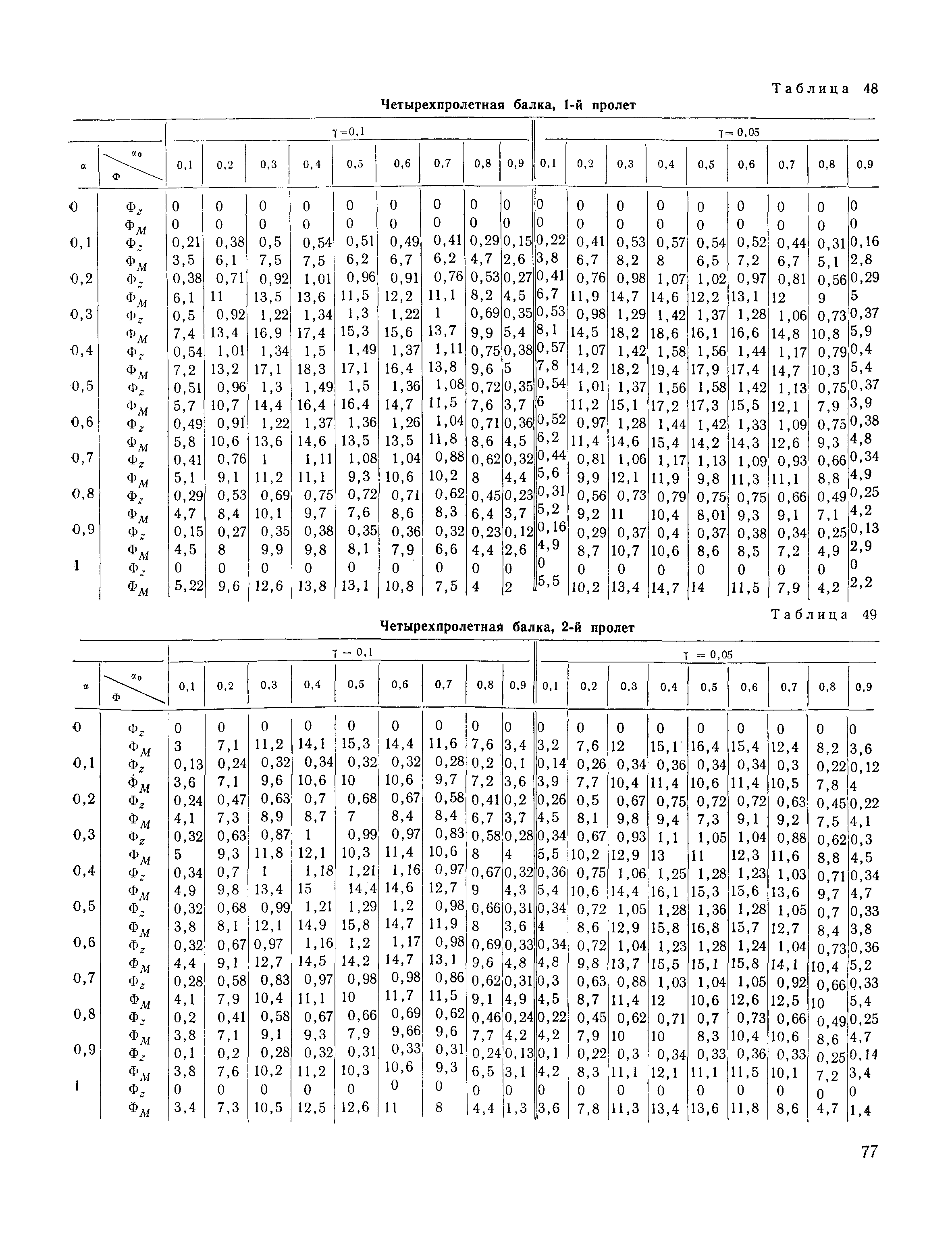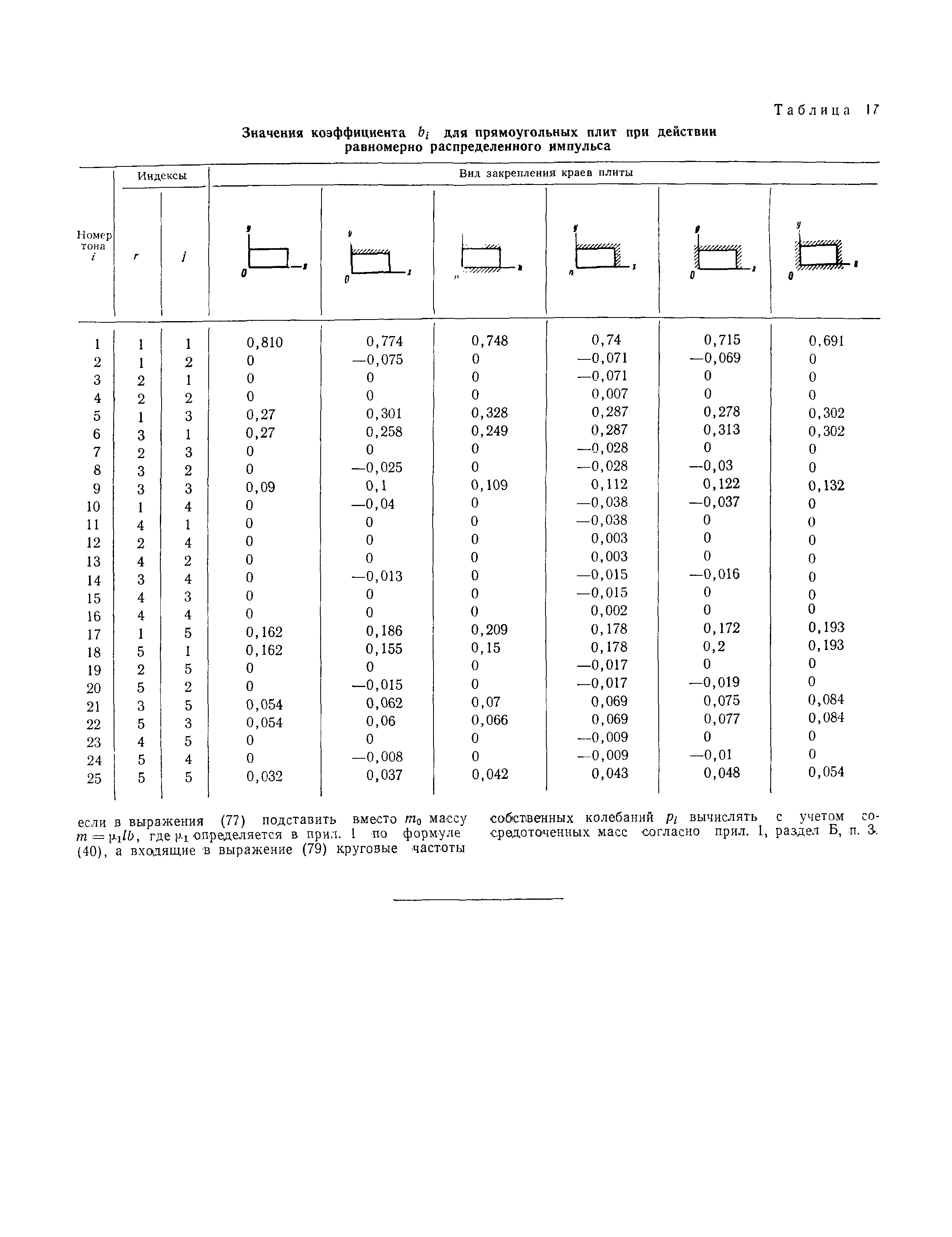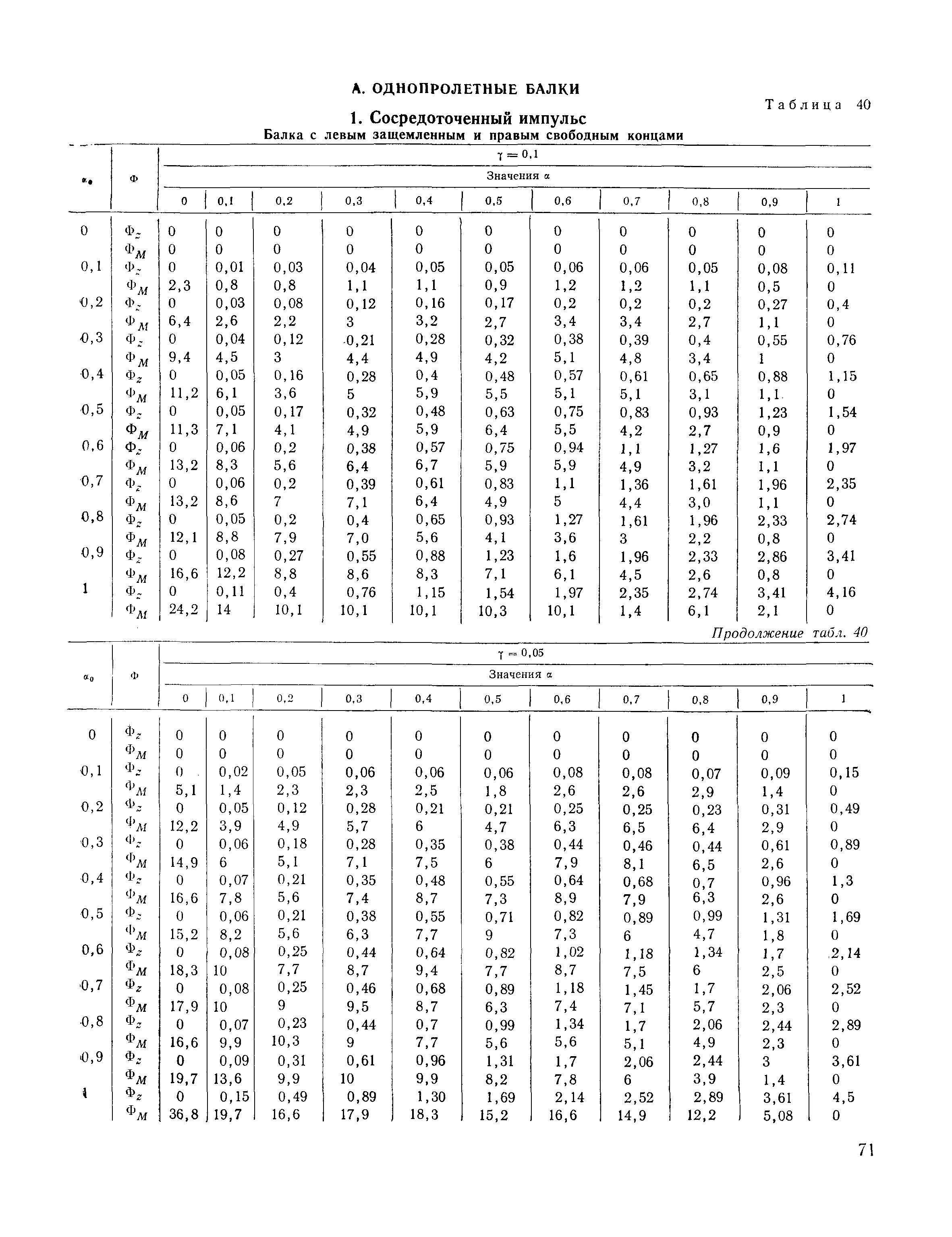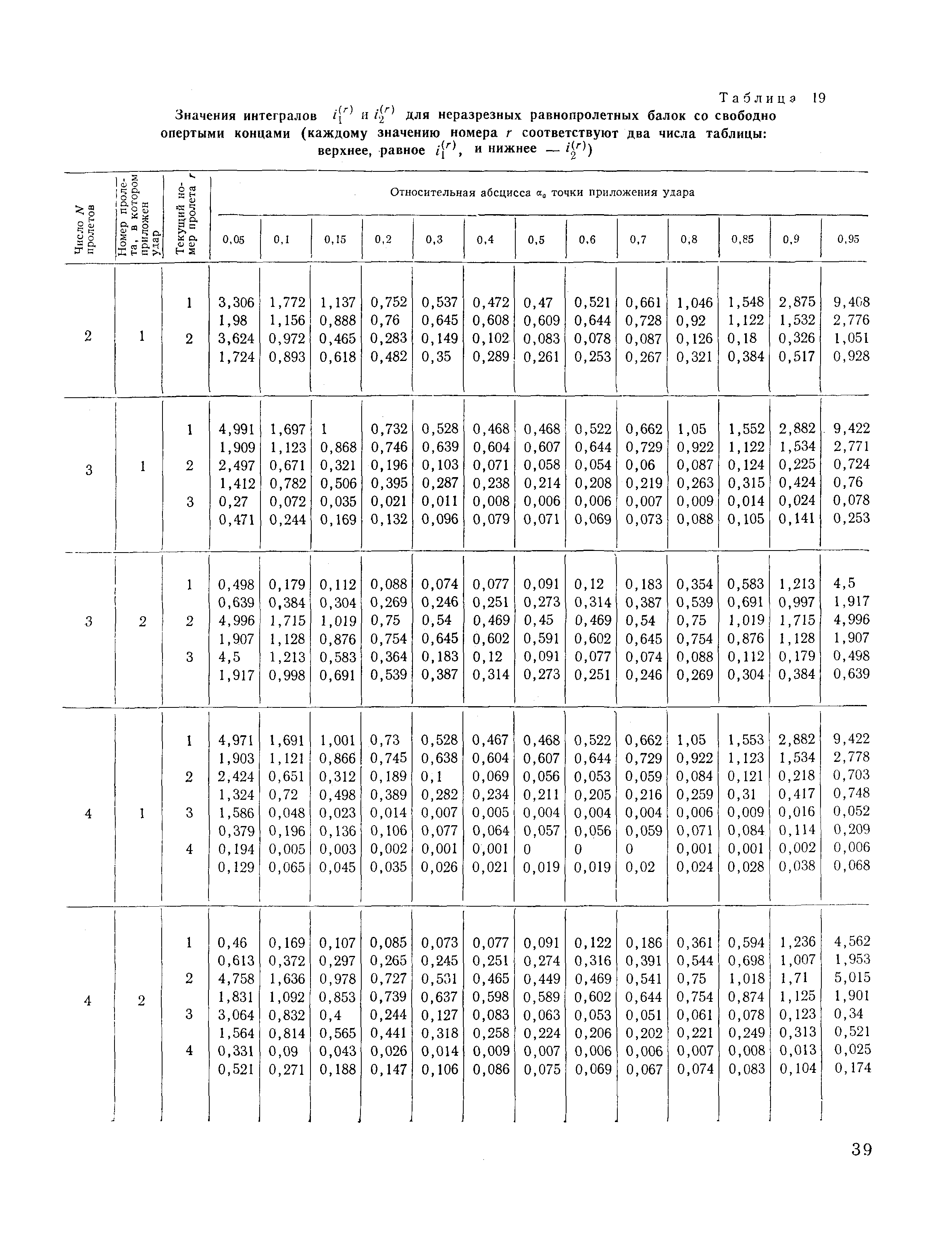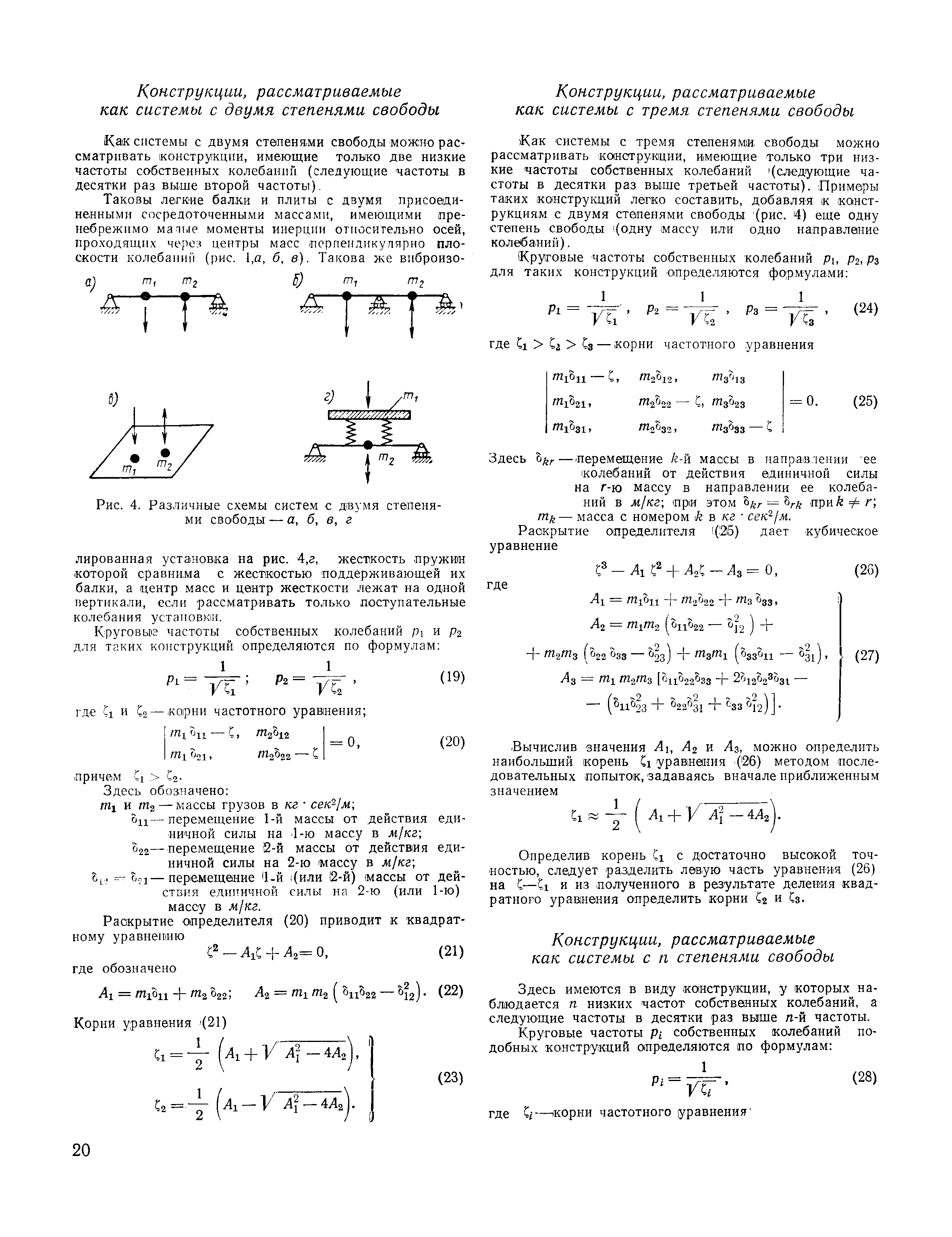 | Оглавление: | 1. Общие указания Состав задания на проектирование Указания по проектированию Основные расчетные положения 2. Импульсные нагрузки 3. Частоты собственных колебаний 4. Наибольшие перемещения и внутренние усилия при действии импульсивных нагрузок 5. Способы уменьшения колебаний, возникающих в конструкциях под действием импульсивных нагрузок Увеличение массы конструкции Увеличение жесткости конструкции Одновременное увеличение массы и жесткости конструкции Изменение мест приложения импульсов или ударов на перекрытия Виброизоляция установок с импульсивными нагрузками Приложение 1. Определение частот собственных колебаний Приложение 2. Определение наибольших перемещений и внутренних усилий, вызванных действием однократных импульсов Приложение 3. Определение наибольших переменных перемещений и внутренних усилий при однократных ударах тел Приложение 4. Определение наибольших перемещений и внутренних усилий, вызванных действием периодических импульсов и ударов Приложение 5. Таблицы балочных функций и их производных Приложение 6. Таблицы функций Фz и Фм для определения наибольших перемещений Zо и изгибающих моментов Мо, возникающих в железобетонных балках и плитах при действии на них мгновенных импульсов Приложение 7. Примеры расчета Приложение 8. Пояснения к основным параграфам инструкции |