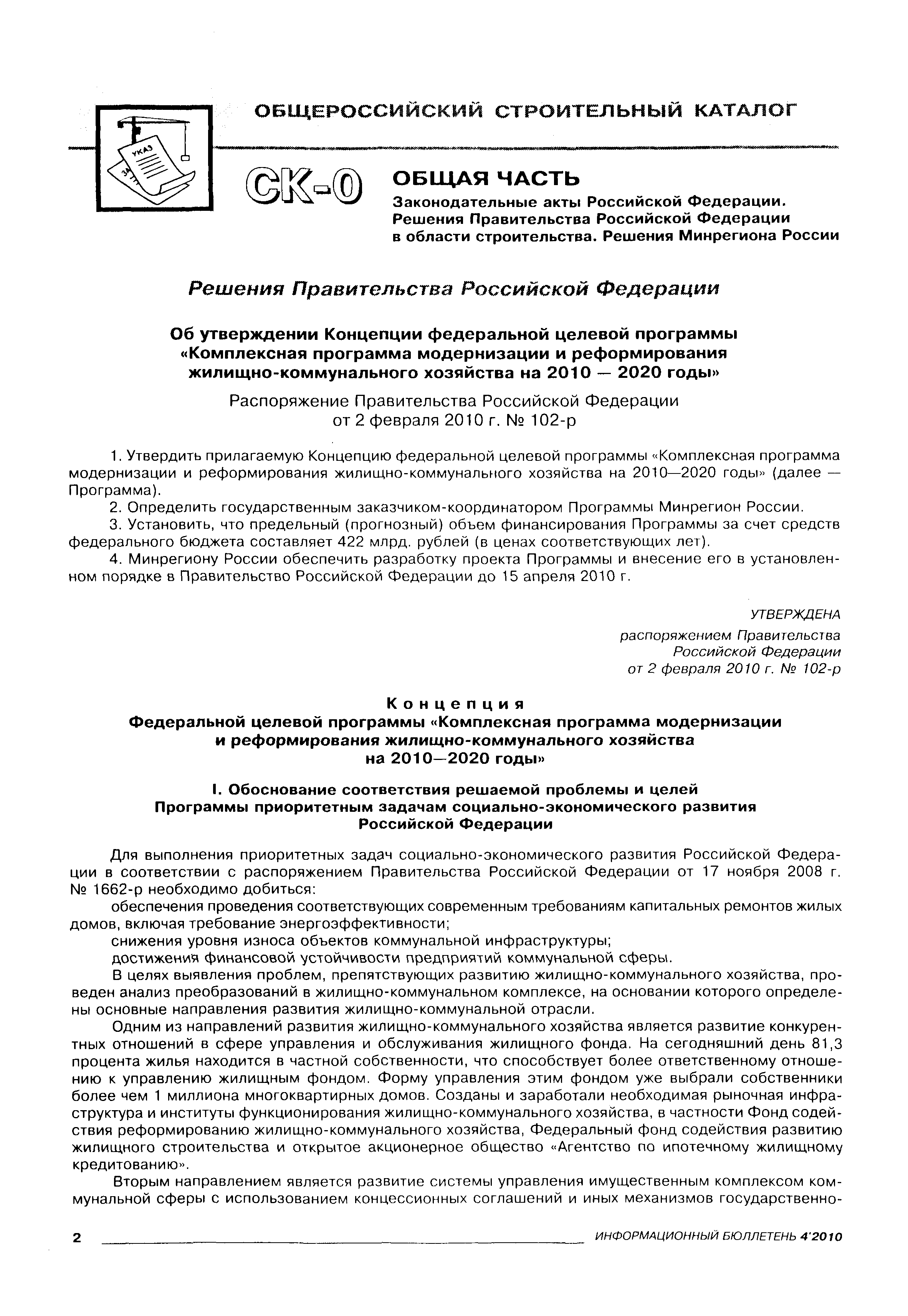 | Утверждён: | 02.02.2010 Правительство РФ (Government of the Russian Federation 102-р)