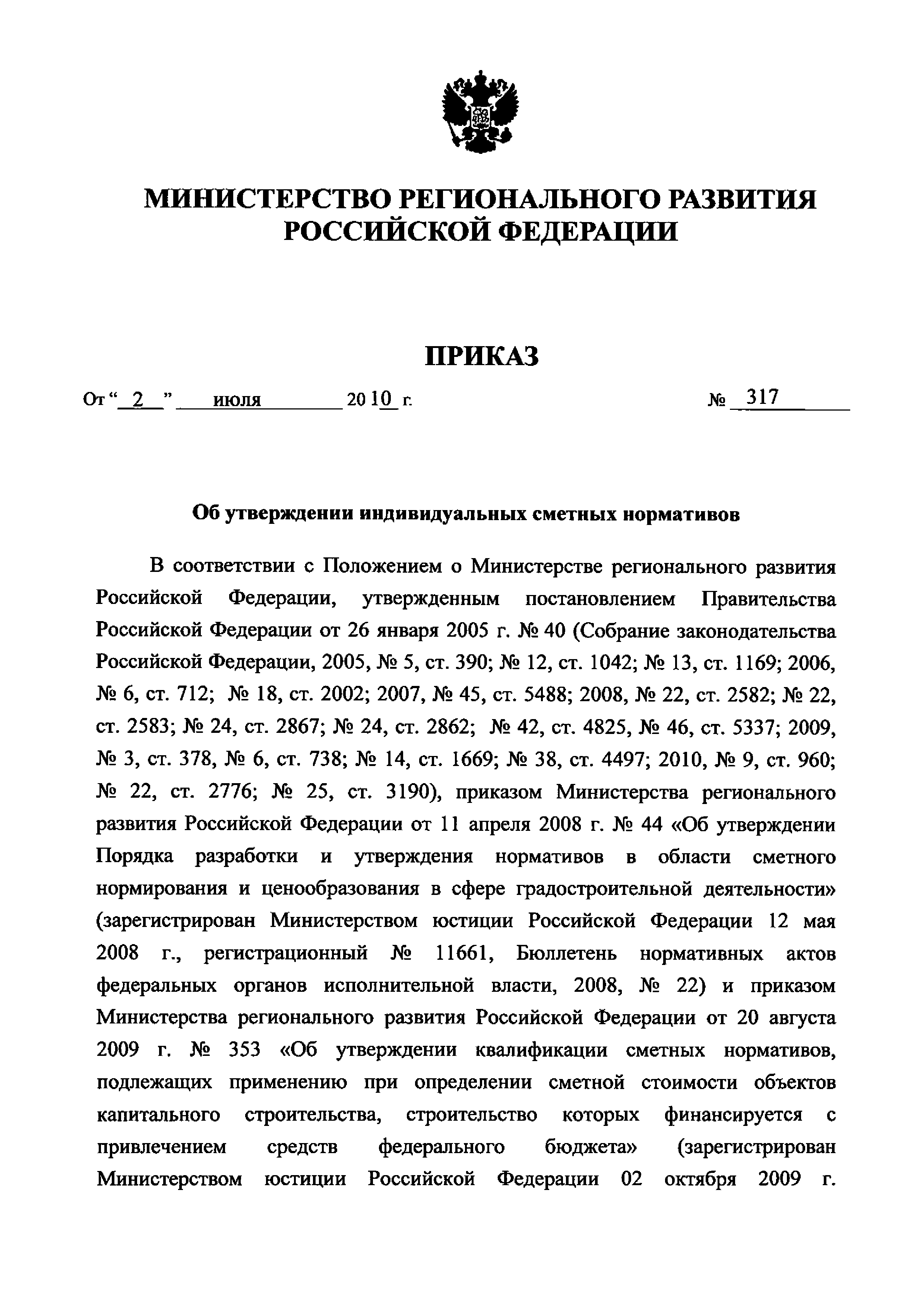 | Утверждён: | 02.07.2010 Минрегион России (317) |